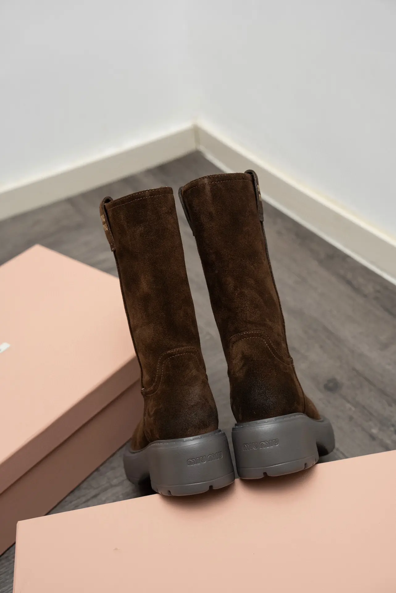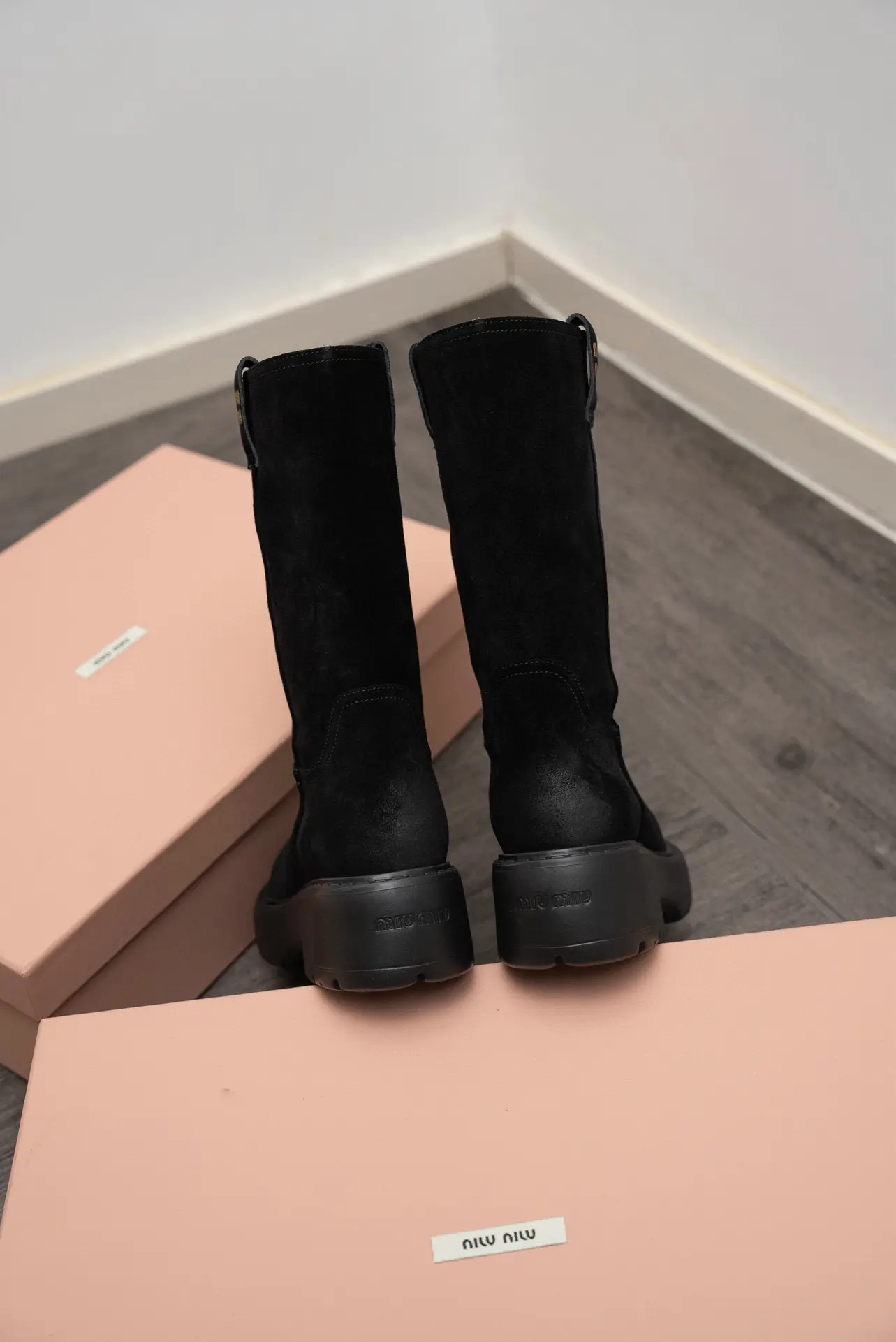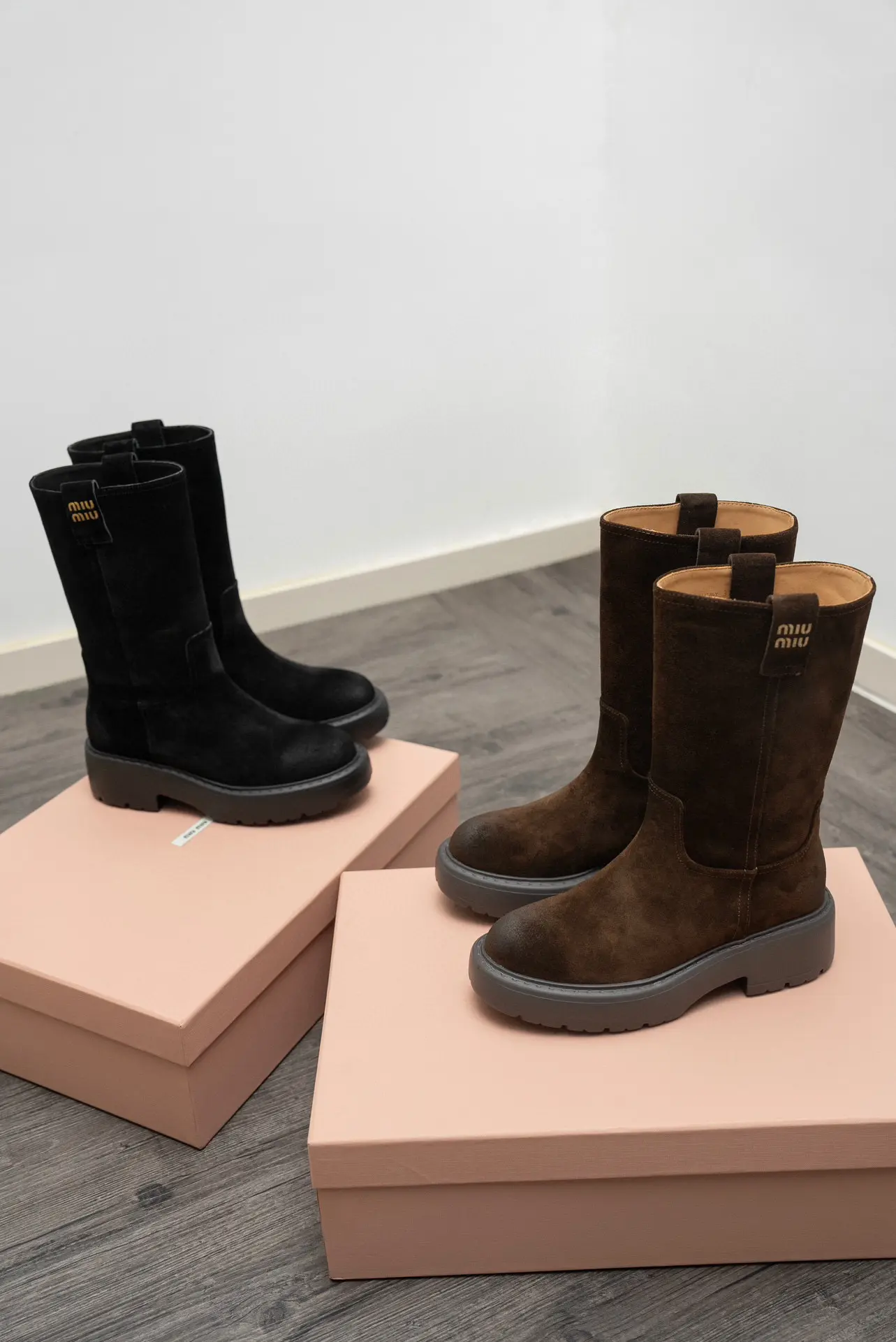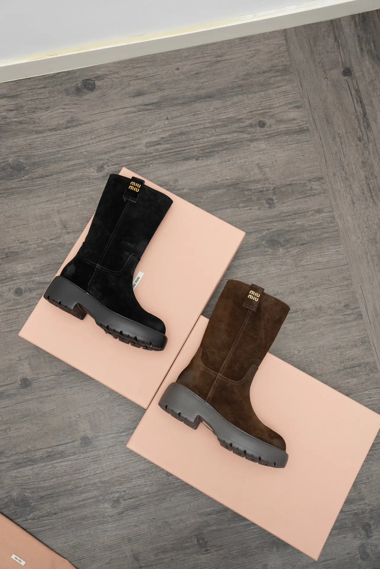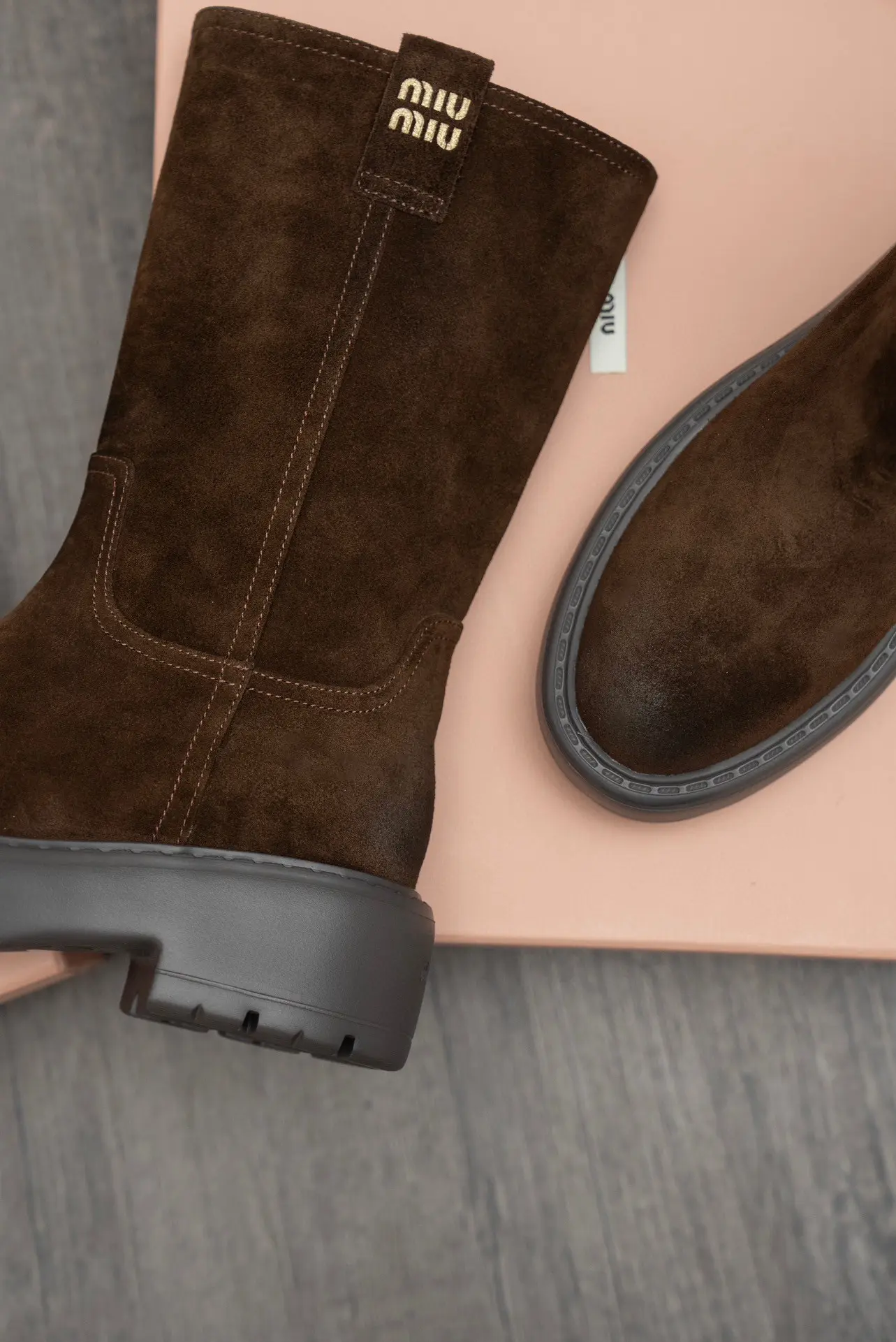The use of imported calf suede is a hallmark of Miu Miu’s luxury approach. These boots often feature: