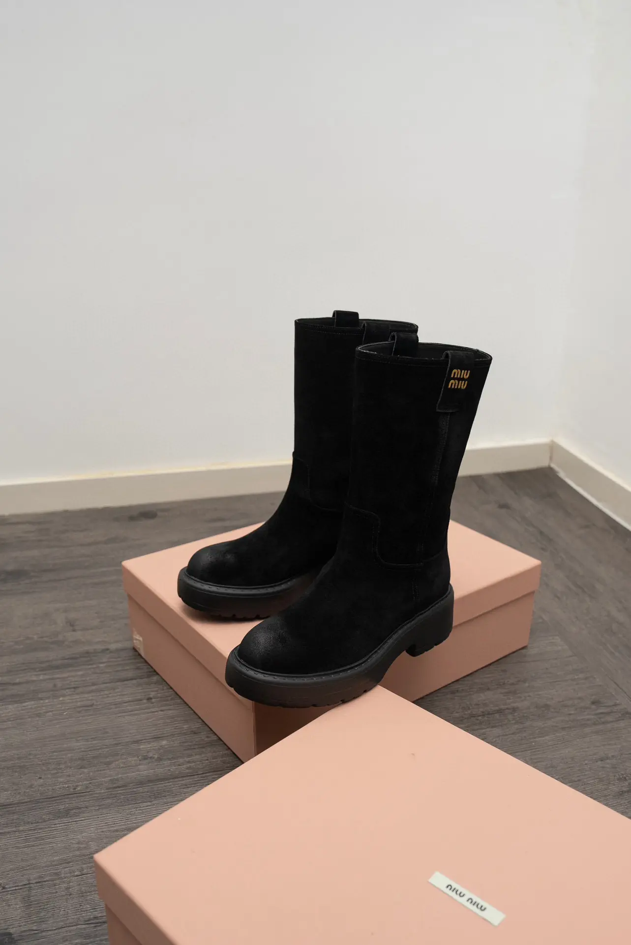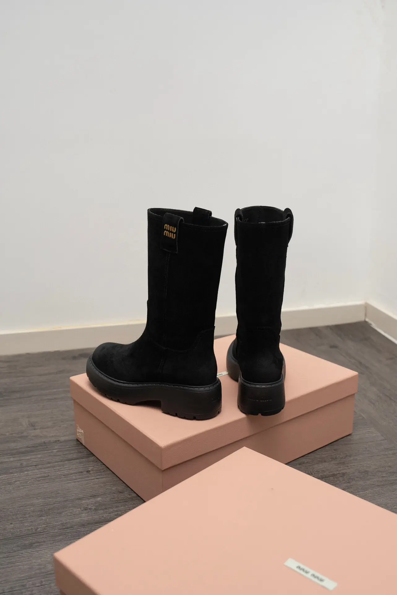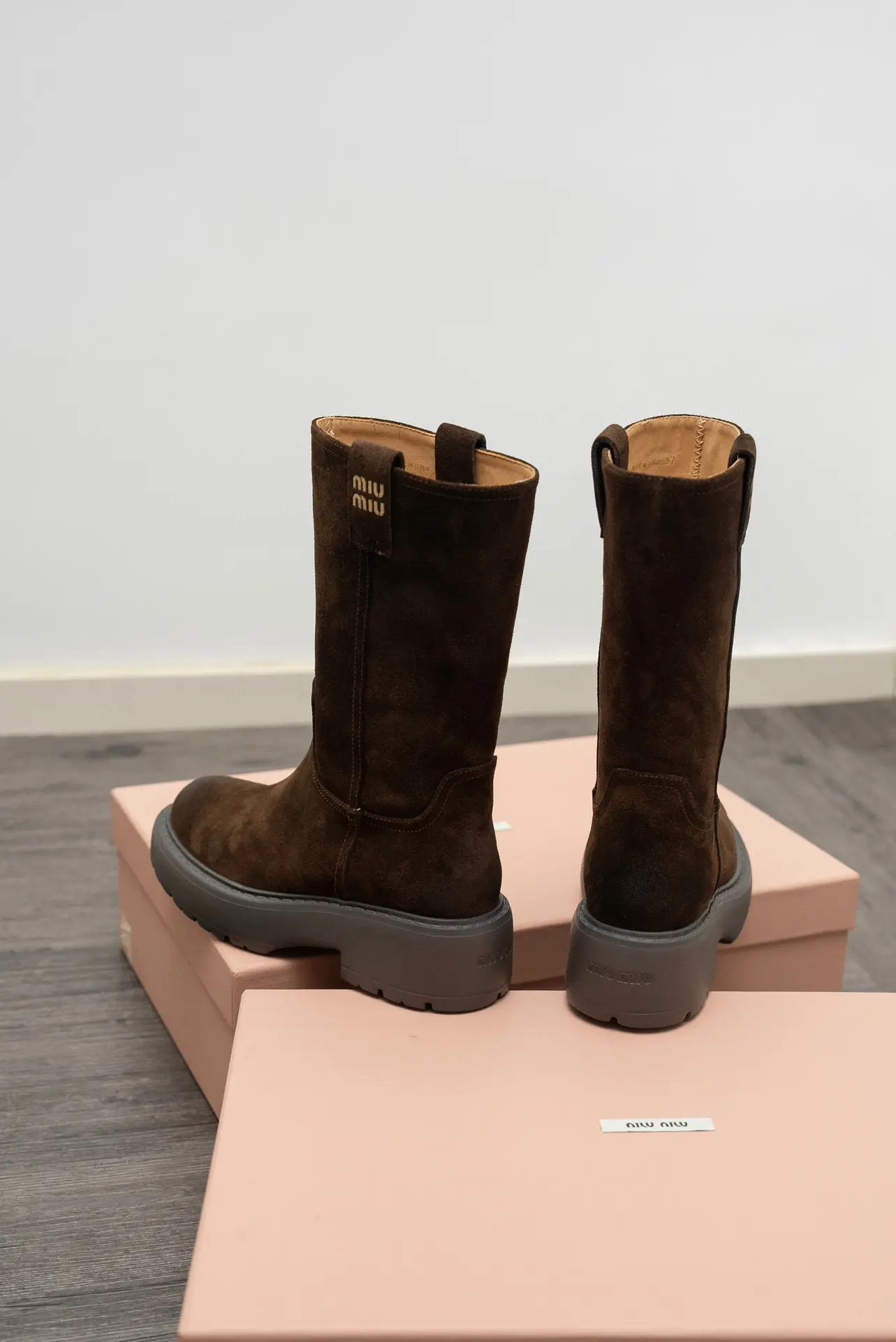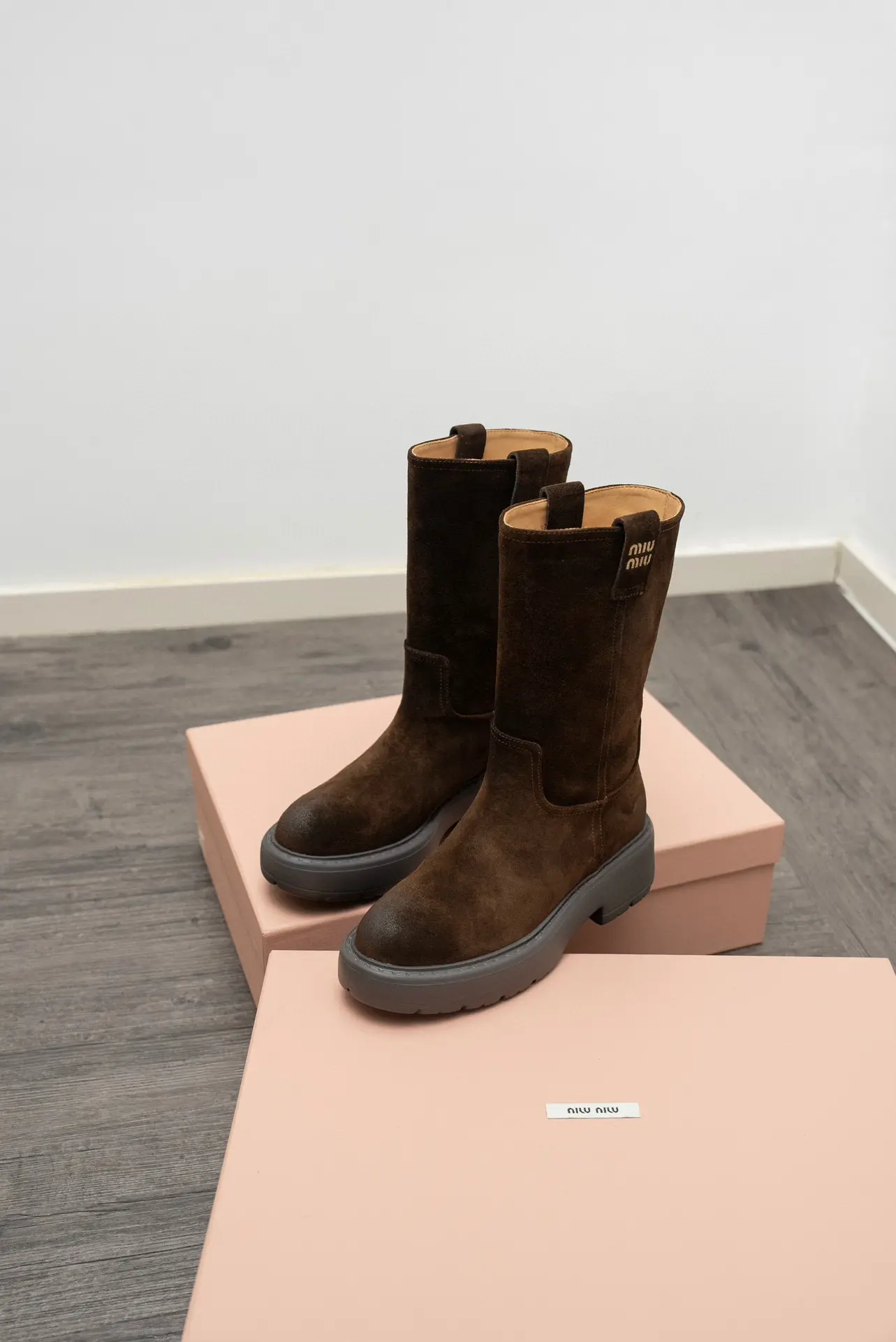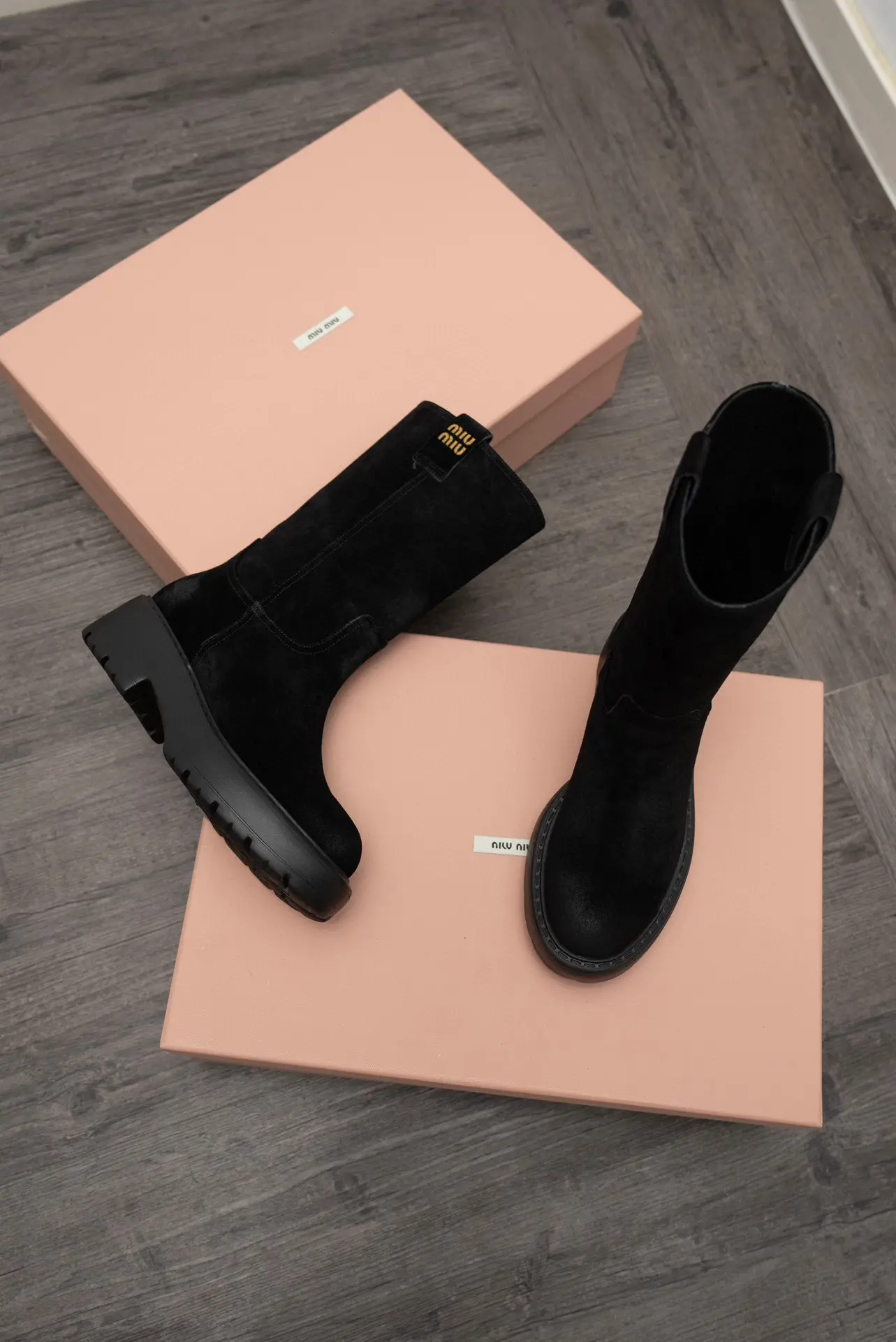 The use of imported calf suede is a hallmark of Miu Miu’s luxury approach. These boots often feature: