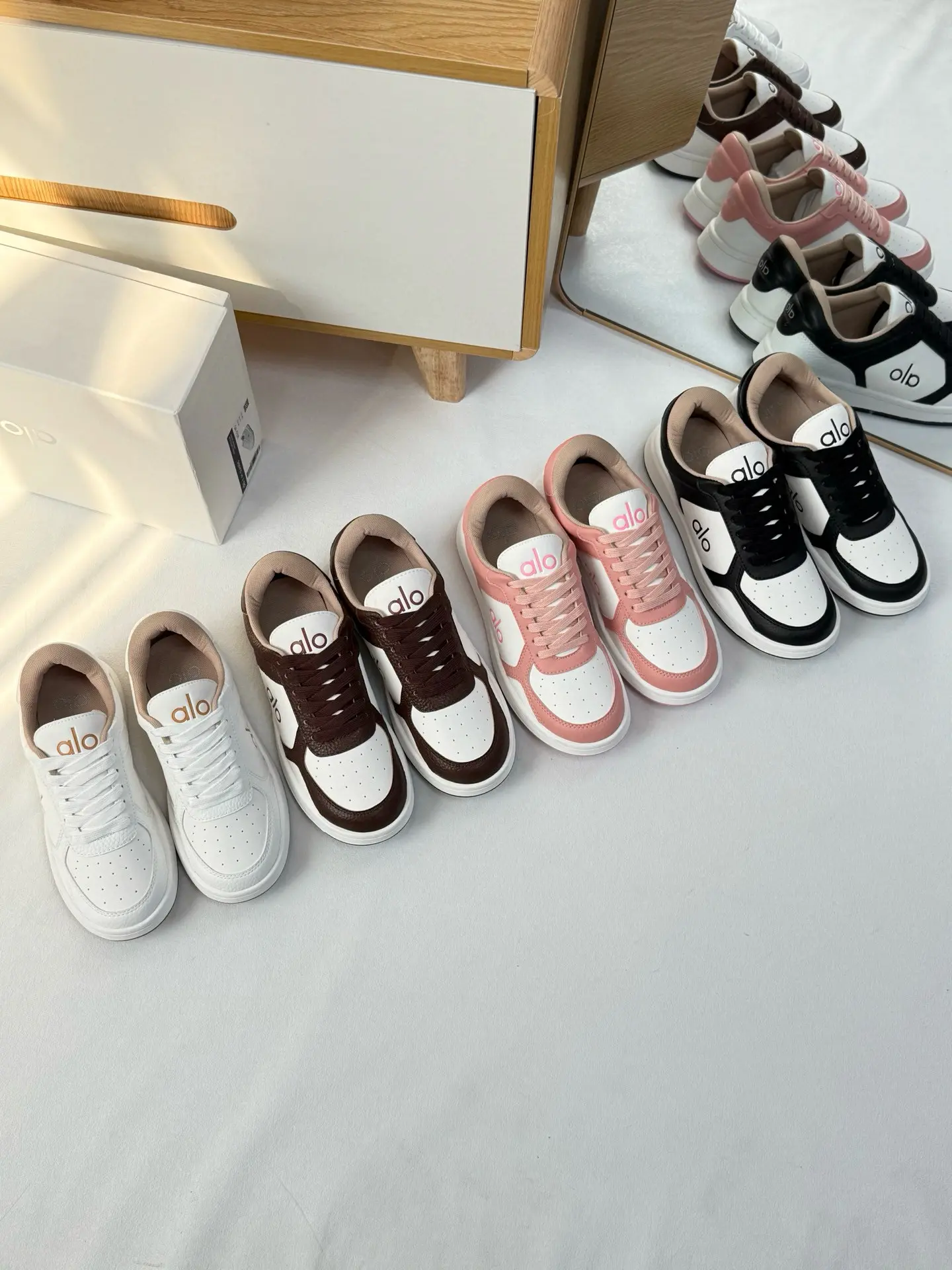 Alo’s new color-blocked white sneakers factory wholesale