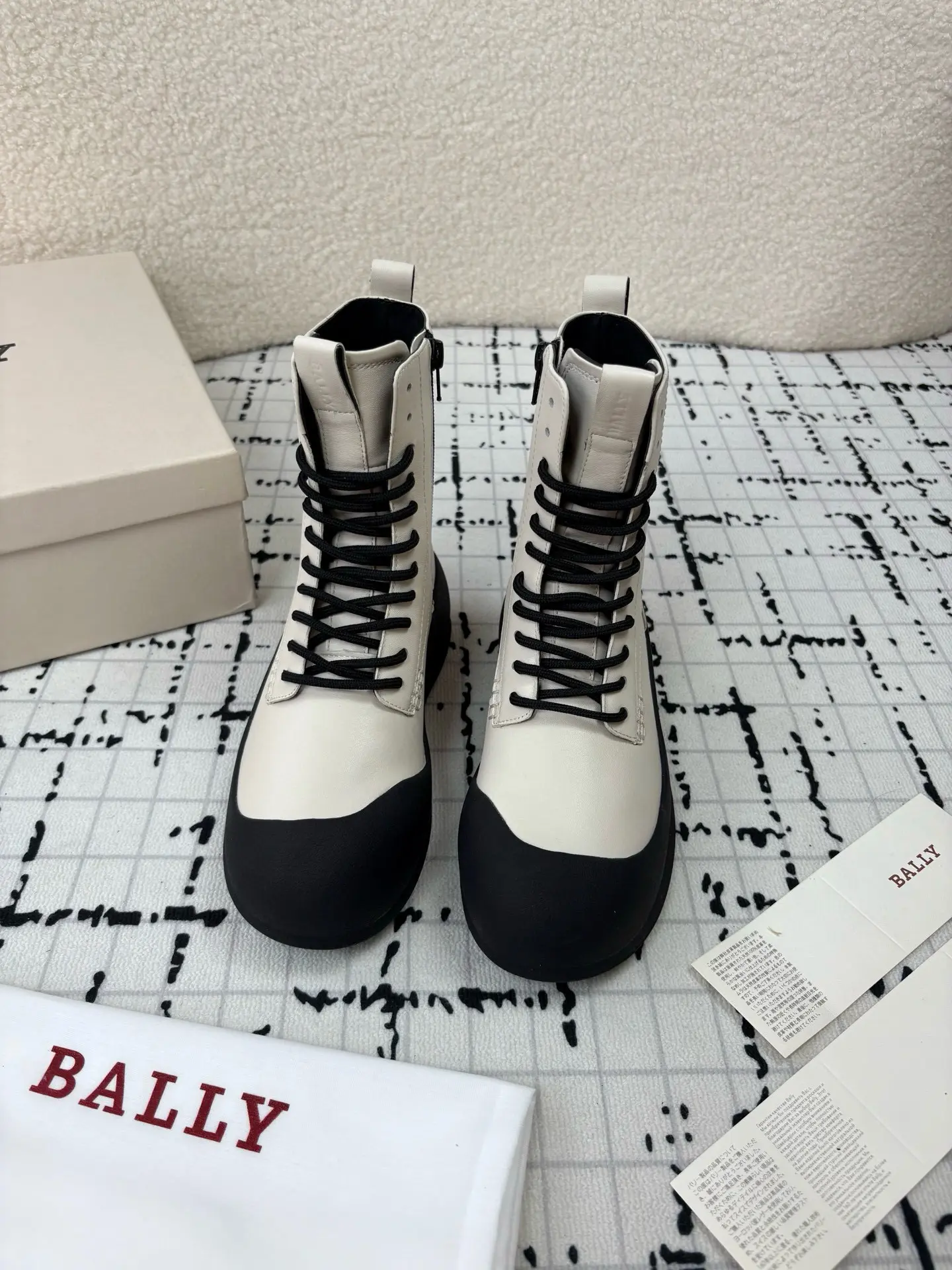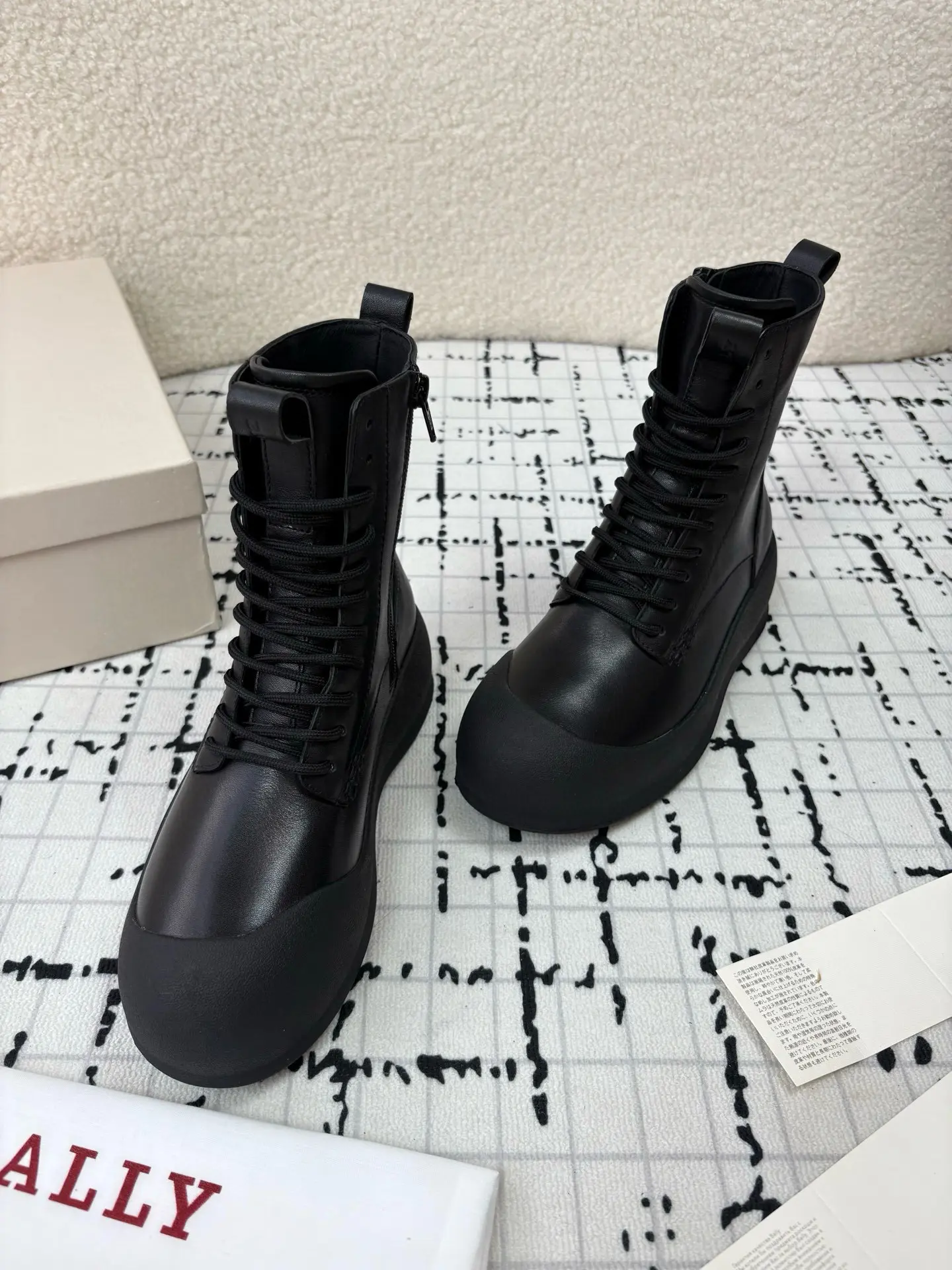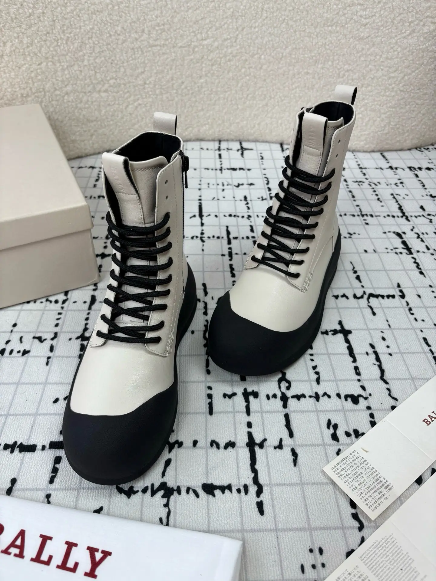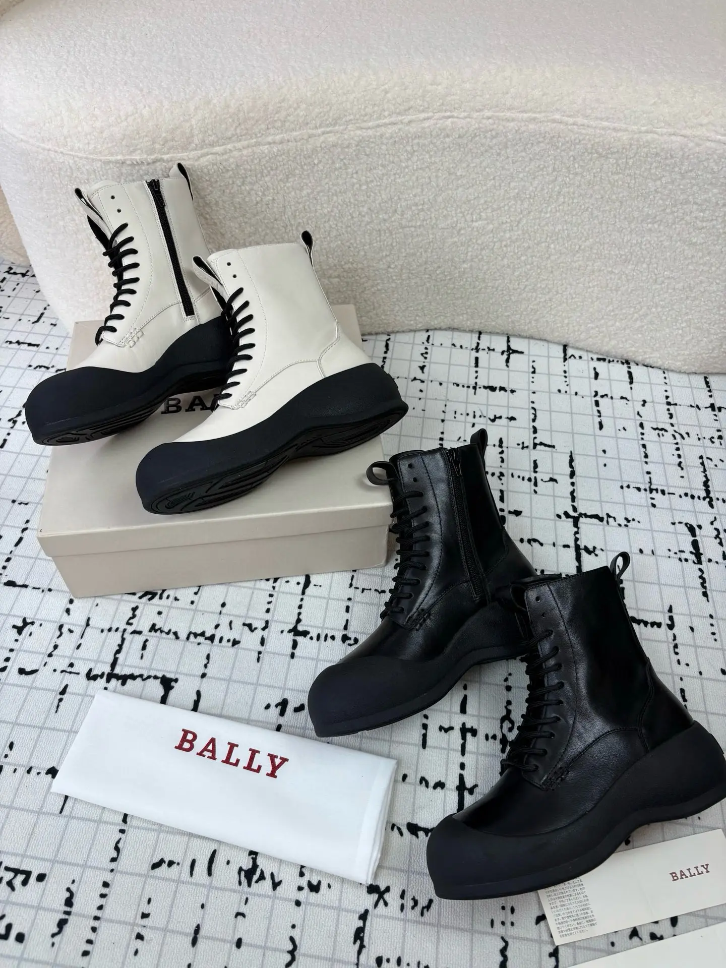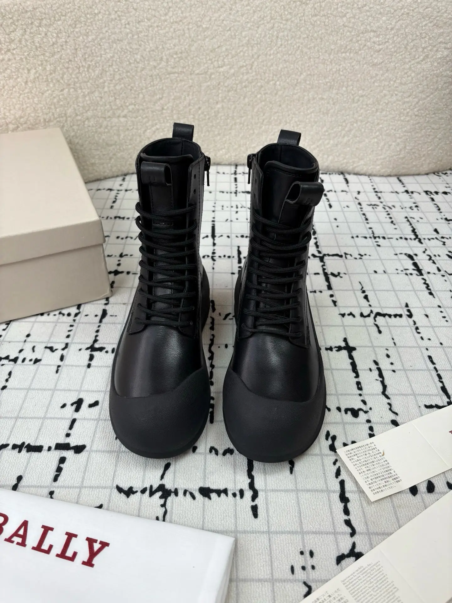 Product Title: BALLY Autumn/Winter Lace-Up Ankle Boot with Side Zipper