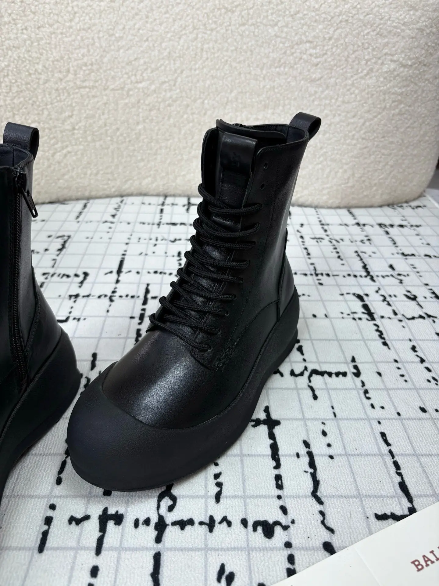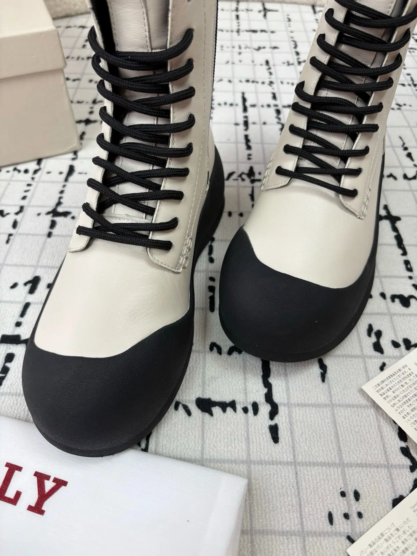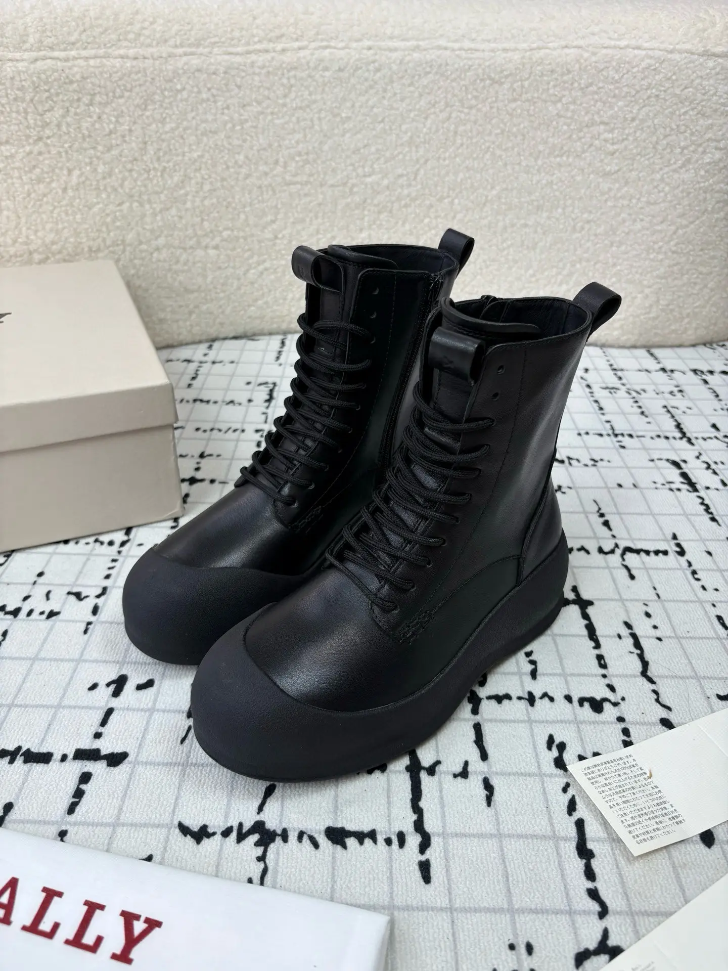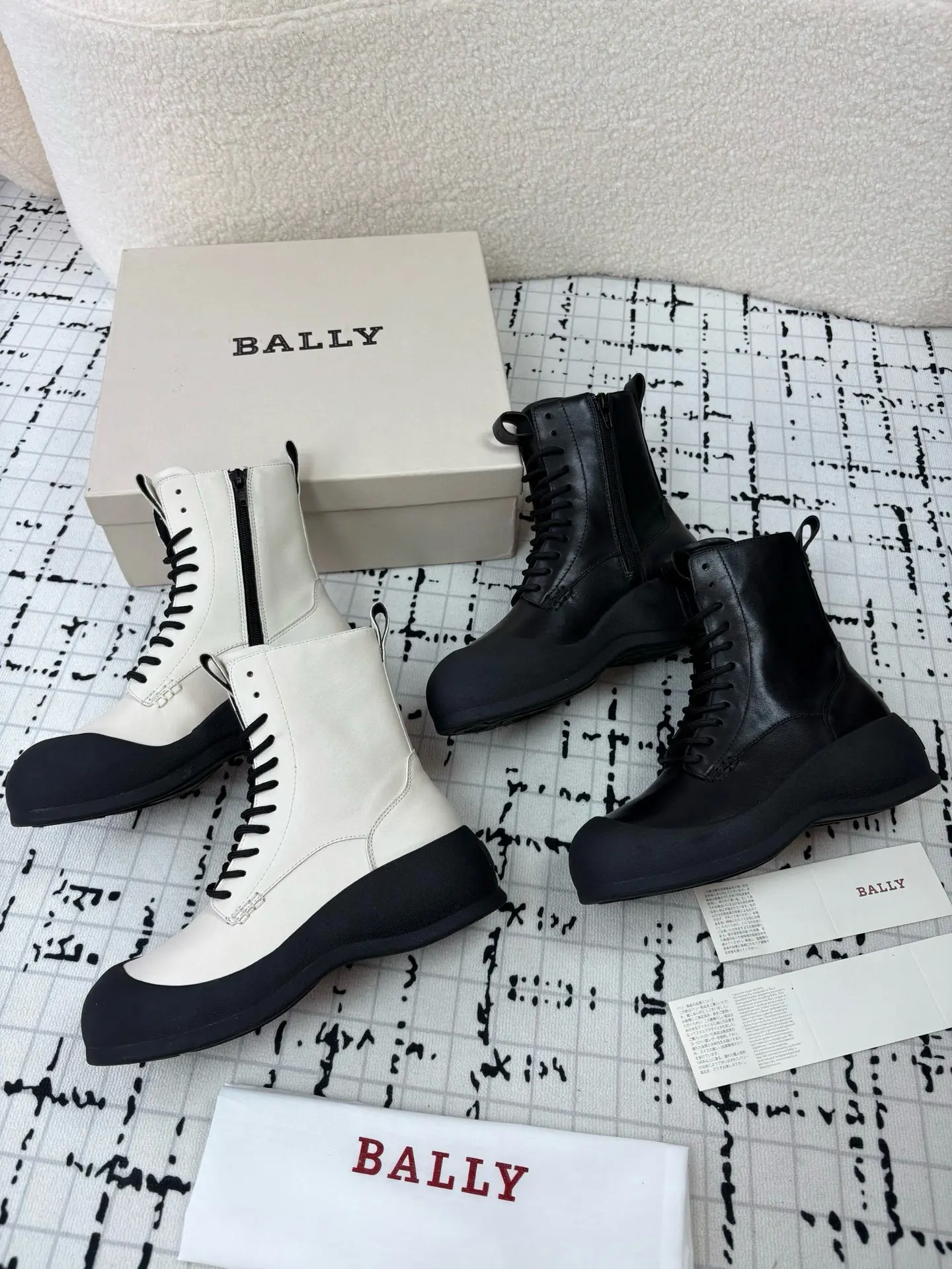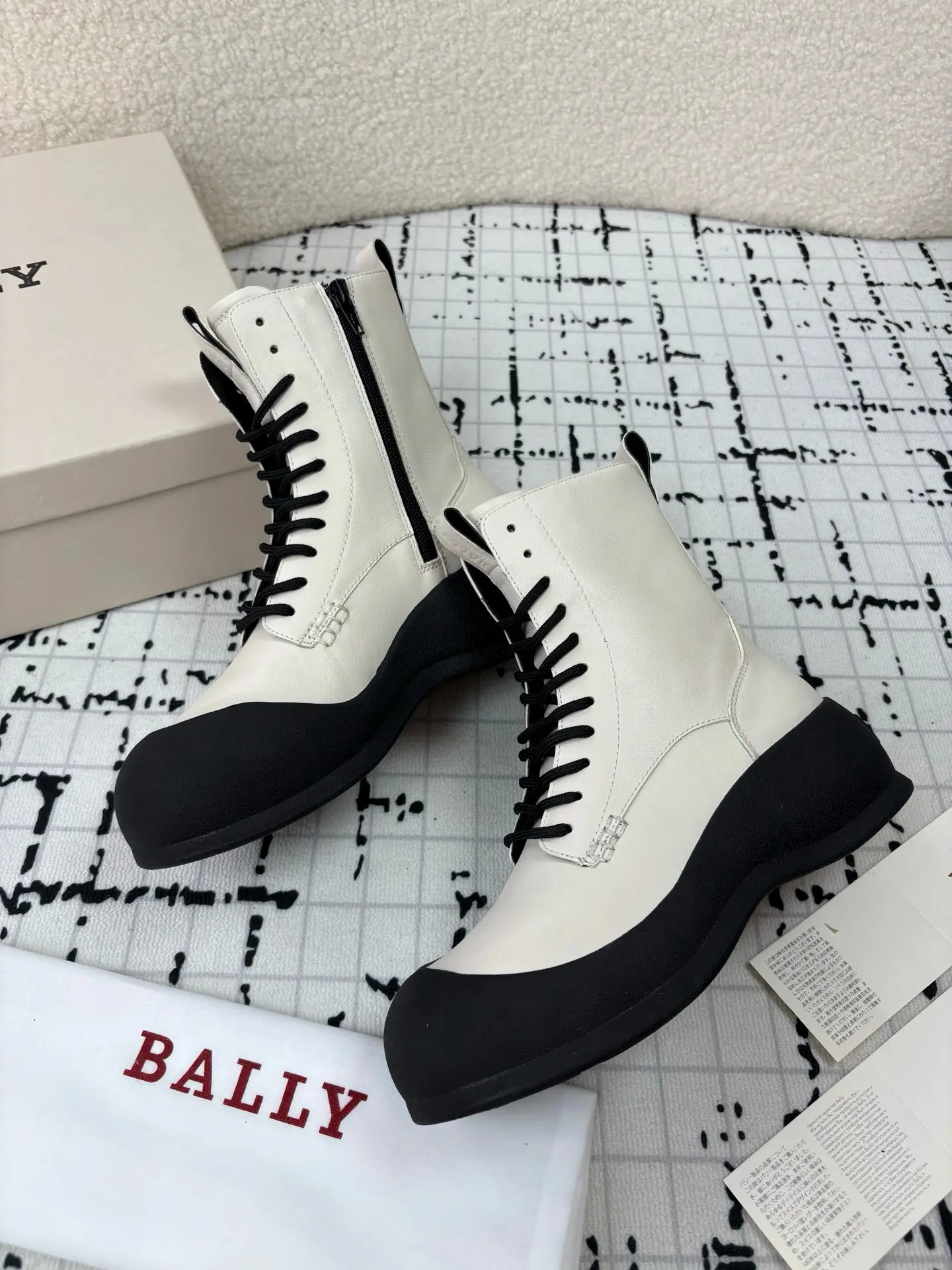 Product Title: BALLY Autumn/Winter Lace-Up Ankle Boot with Side Zipper