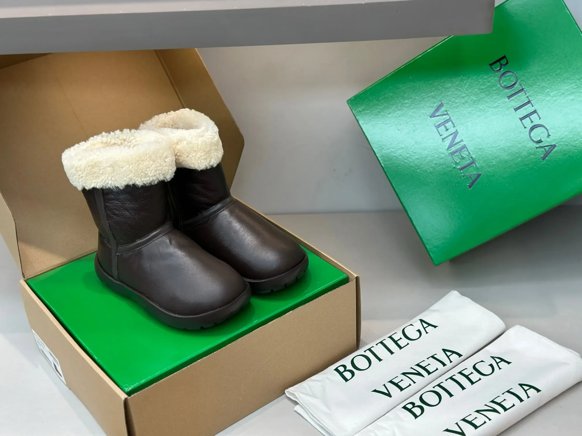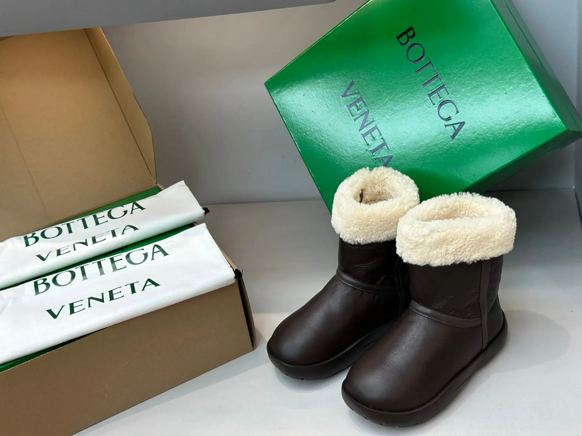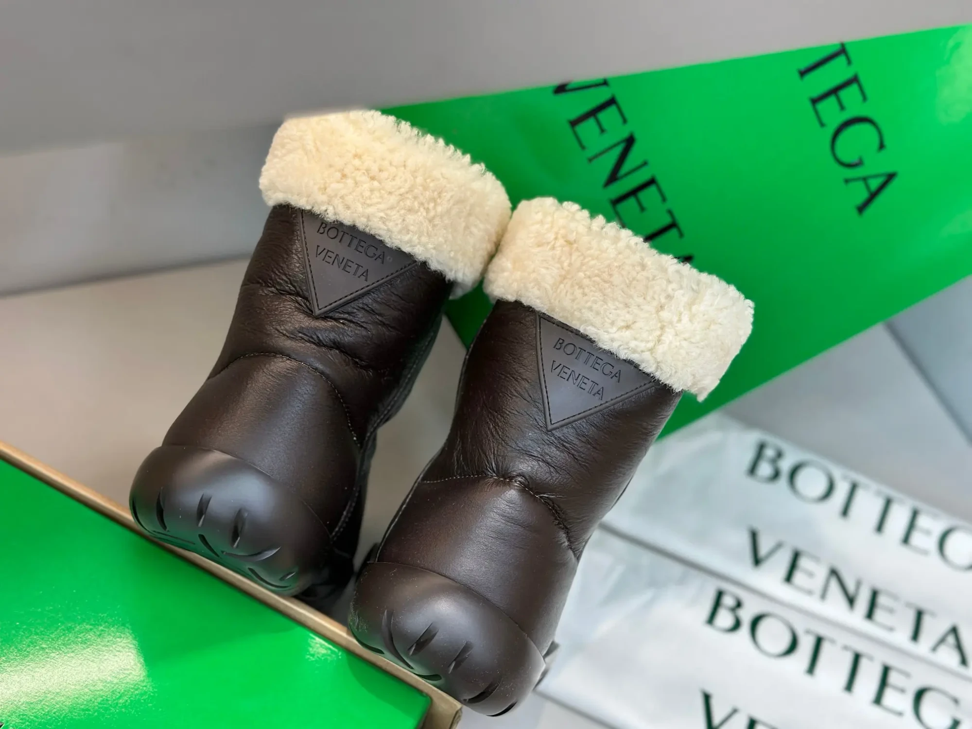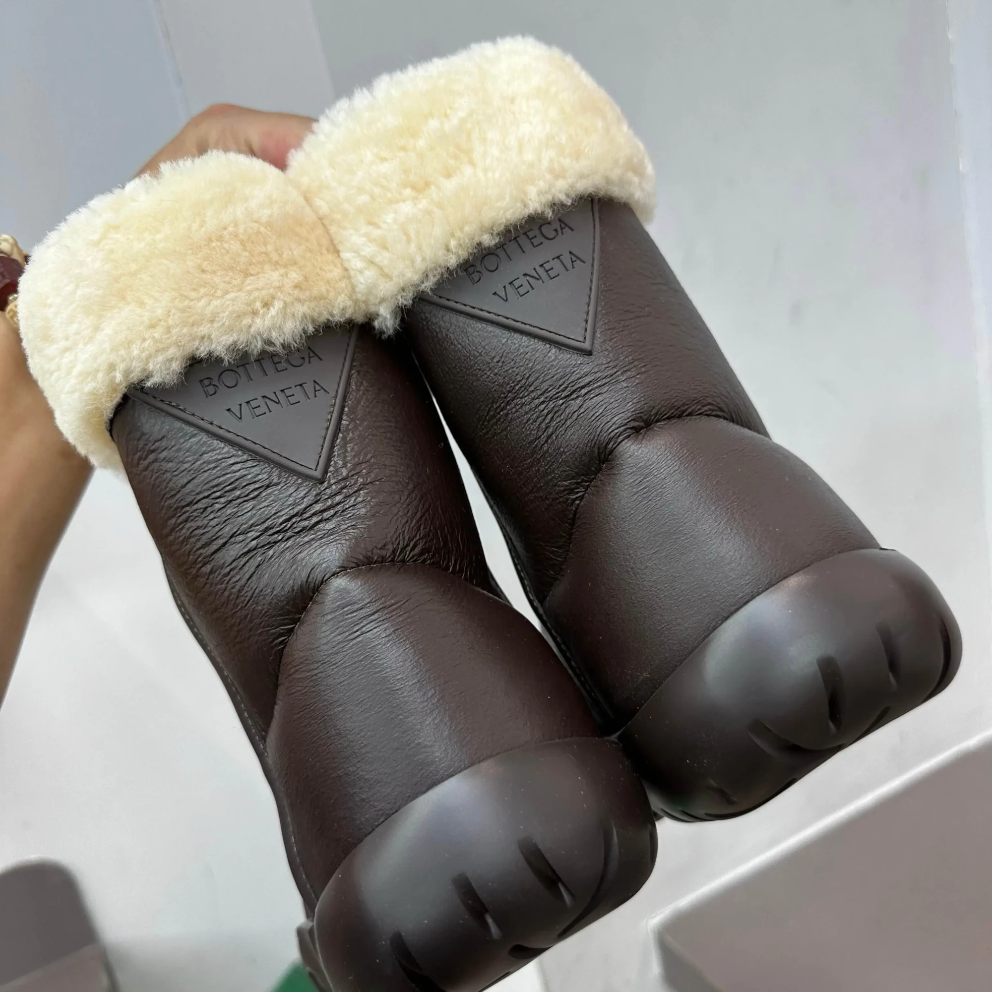 Bottega Veneta BV New Autumn/Winter Sheepskin and Fur Snap Waterproof Snow Boots – Premium Edition❗️Purchased from ZP to compare with the original, every detail is identical to the one on the counter: upper leather, insole lining leather, logo engraving, sole material, last, shoe shape, and box packaging – all premium editions🔝⚠️ Please distinguish from low-end market-issued boots❗️ (These boots have been cost-effectively crafted, and we only stick to the originals).