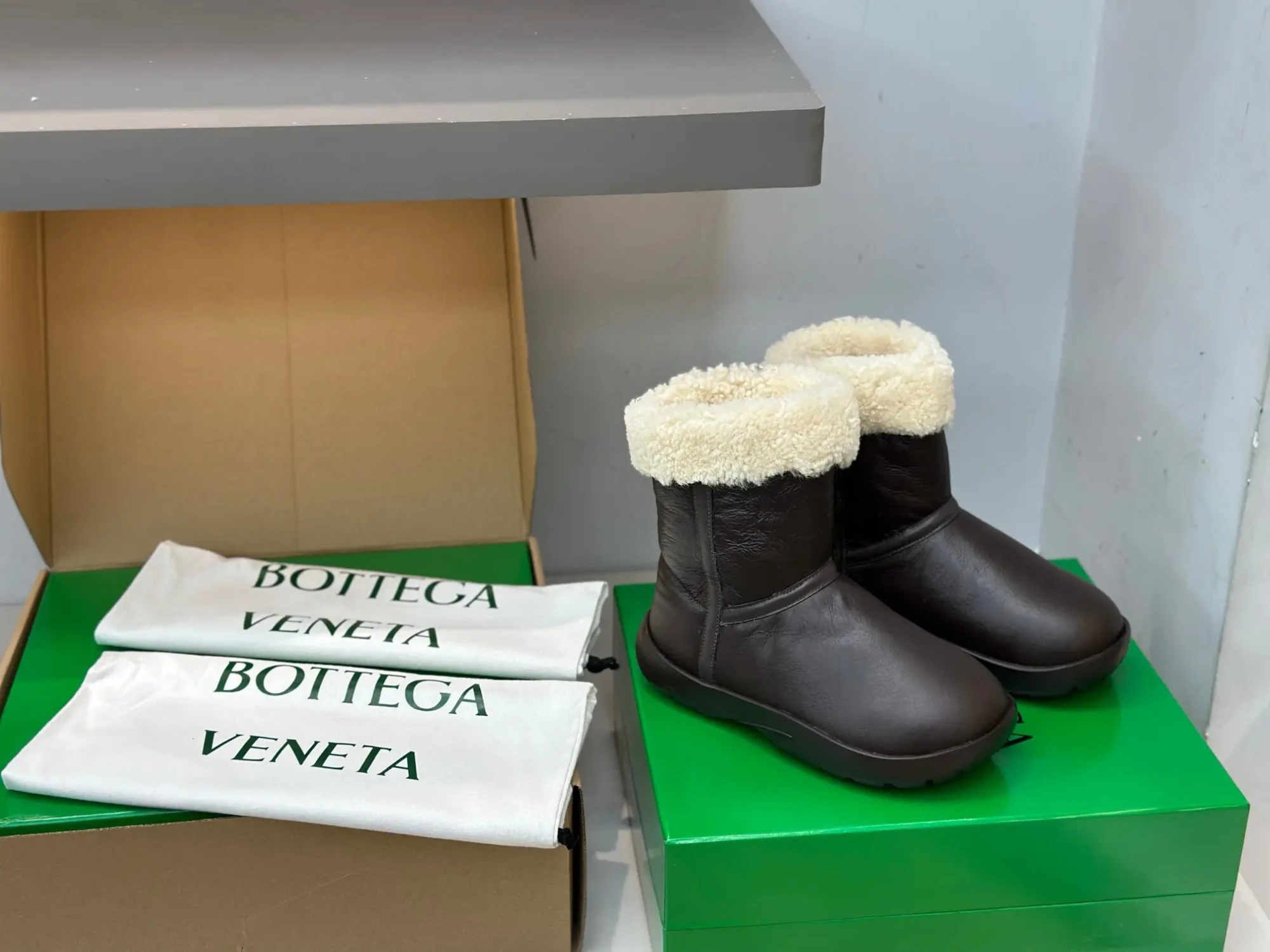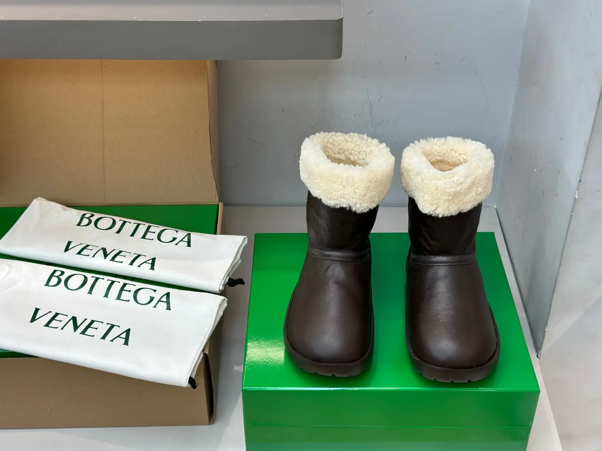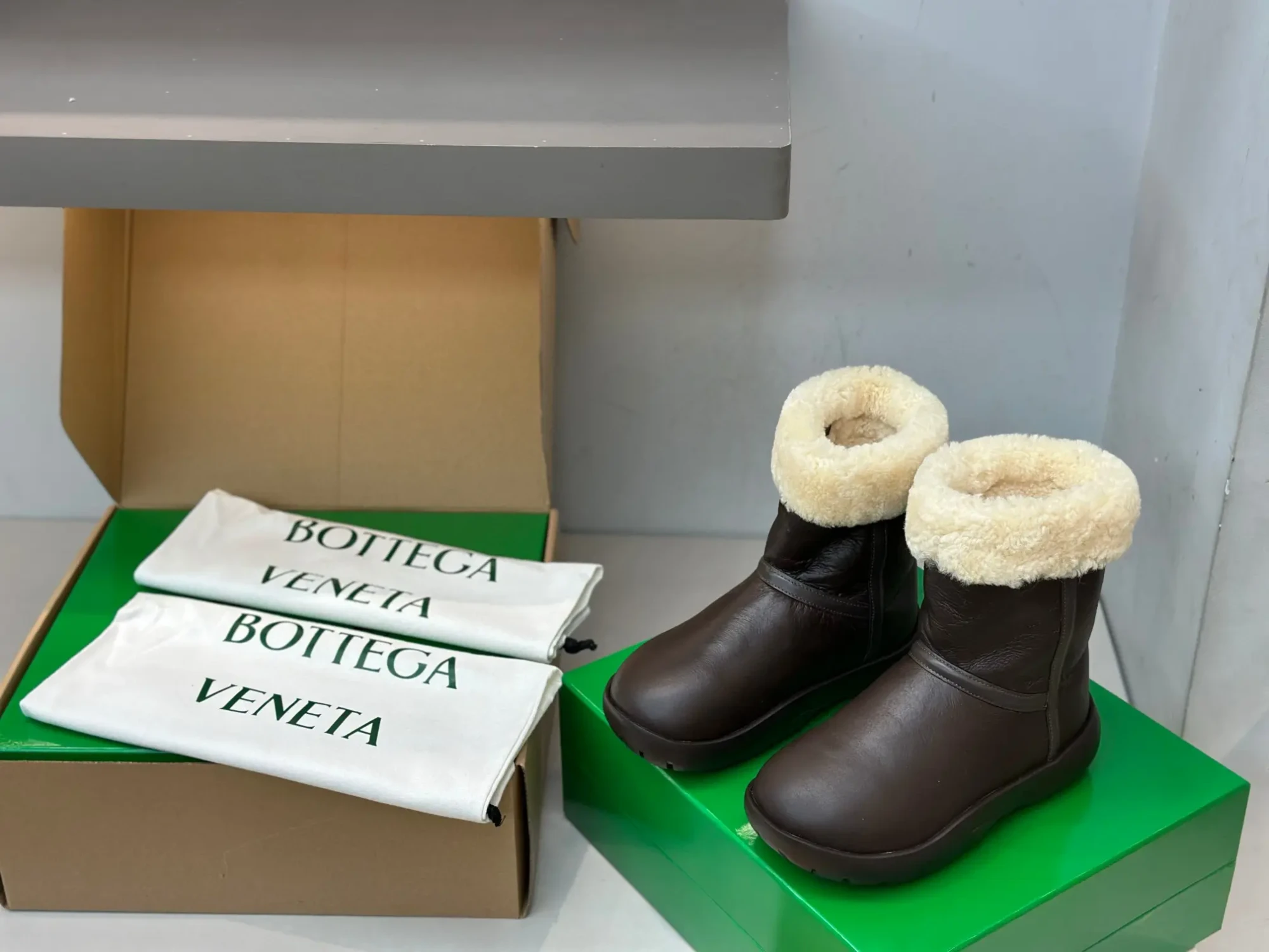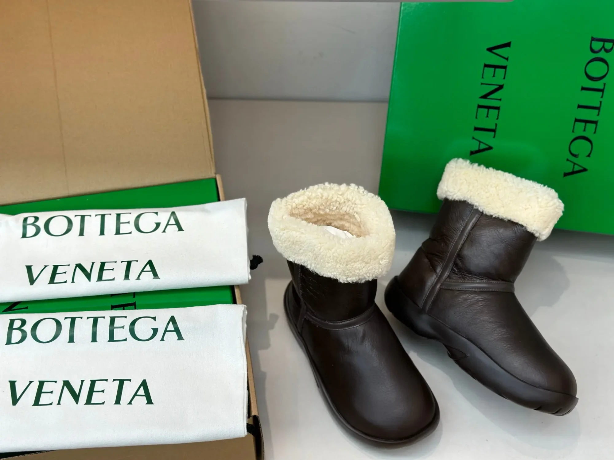 Bottega Veneta BV New Autumn/Winter Sheepskin and Fur Snap Waterproof Snow Boots – Premium Edition❗️Purchased from ZP to compare with the original, every detail is identical to the one on the counter: upper leather, insole lining leather, logo engraving, sole material, last, shoe shape, and box packaging – all premium editions🔝⚠️ Please distinguish from low-end market-issued boots❗️ (These boots have been cost-effectively crafted, and we only stick to the originals).