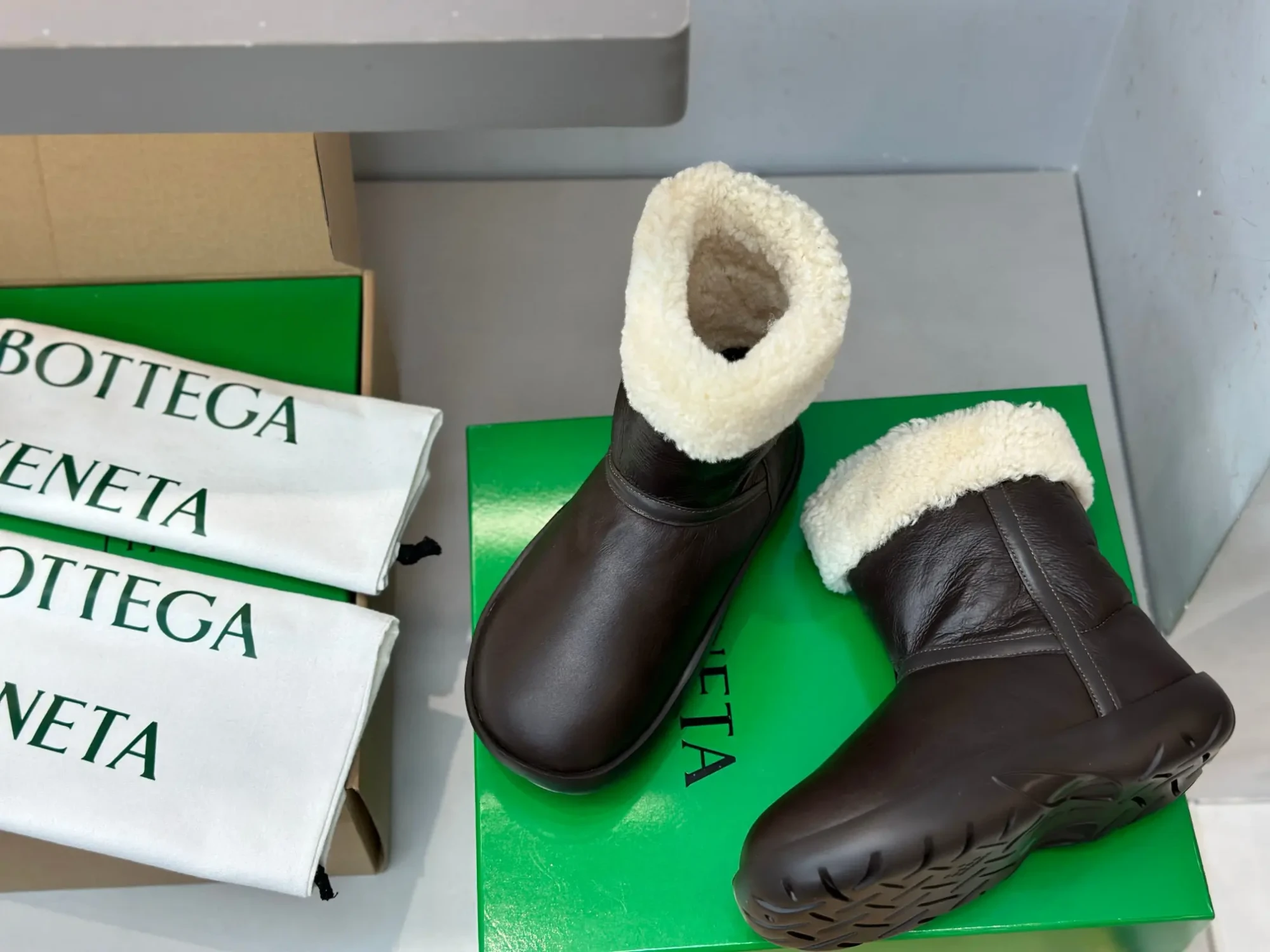 The seller is offering what they claim to be a top-tier, “mirror” replica of the BV snow boots, complete with high-quality materials and packaging. The description is designed to appeal to buyers who want the designer aesthetic without the designer price tag but are aware of and want to avoid low-quality fakes.