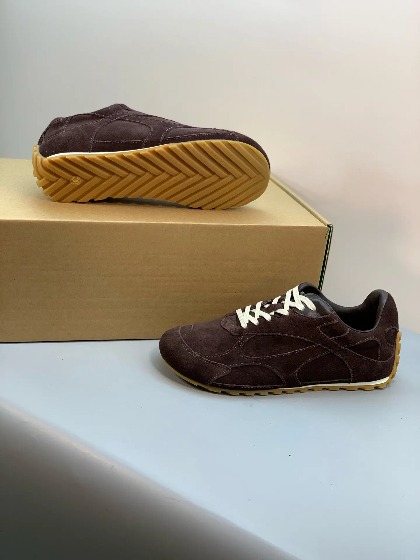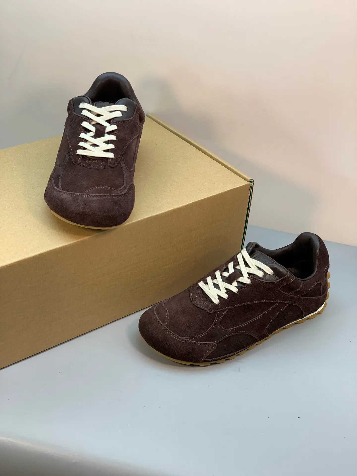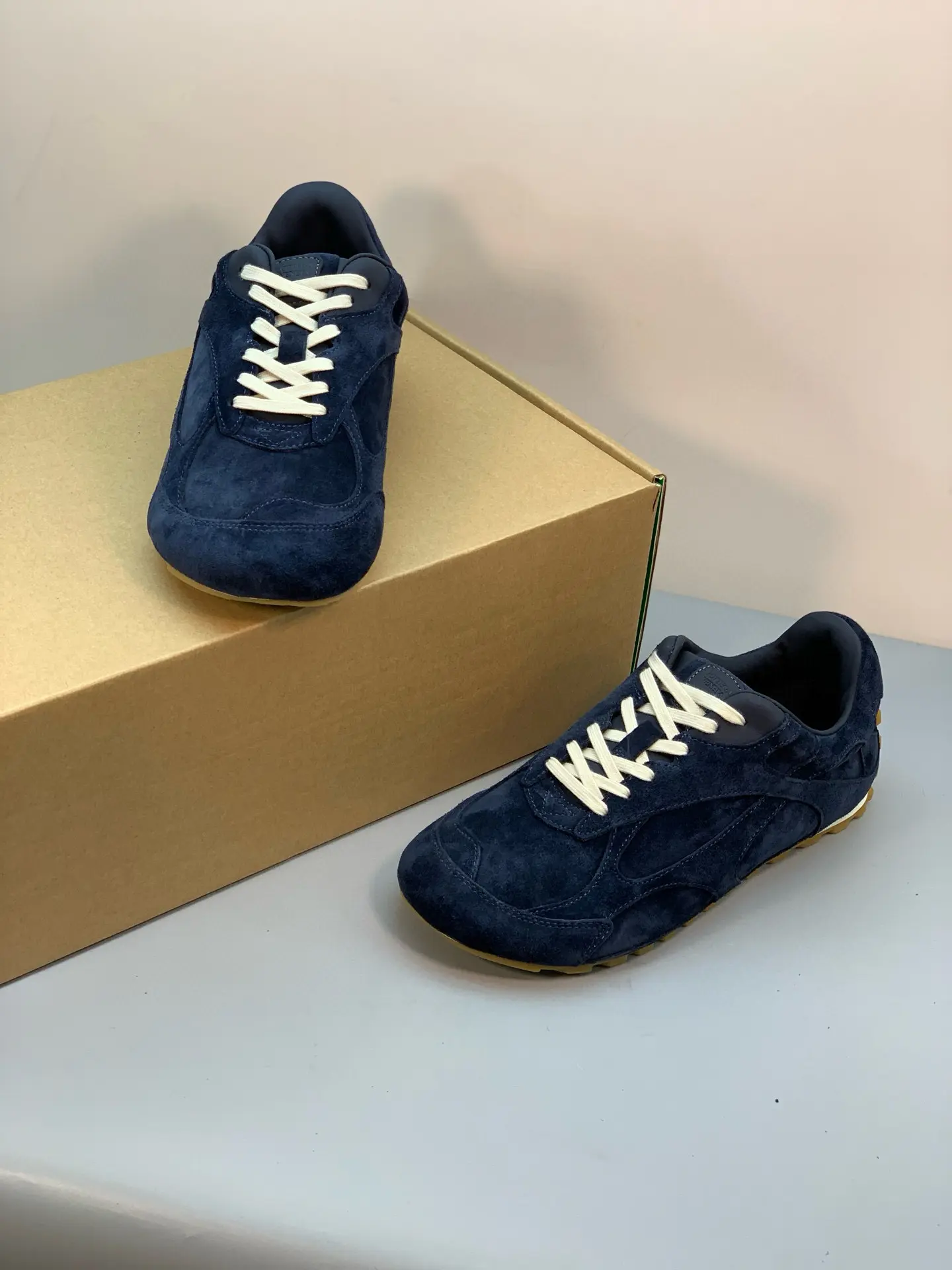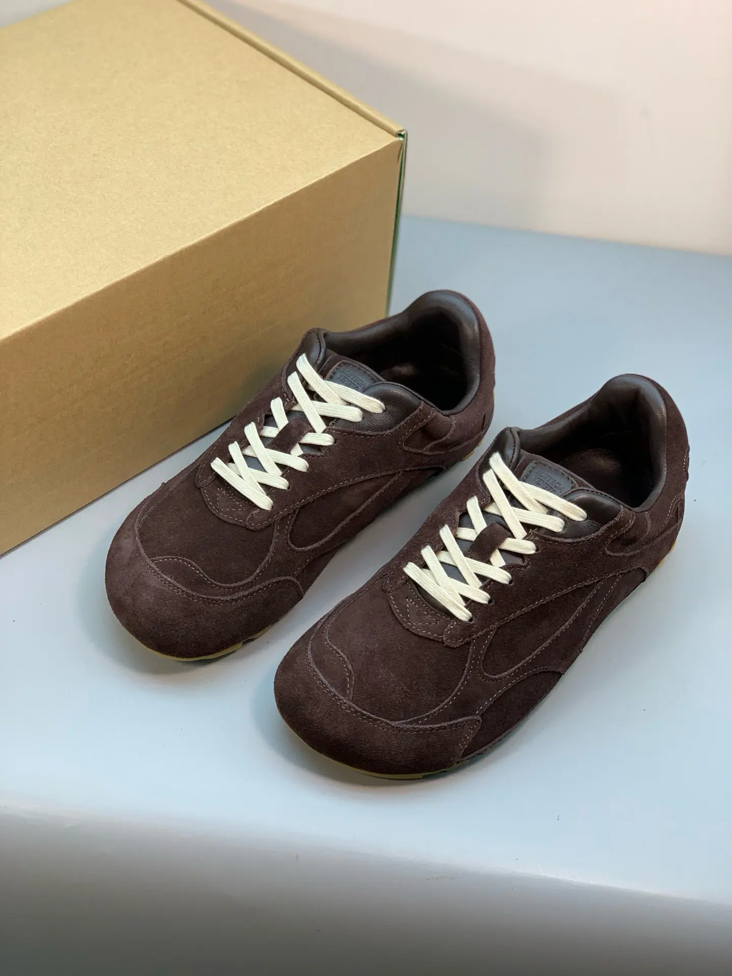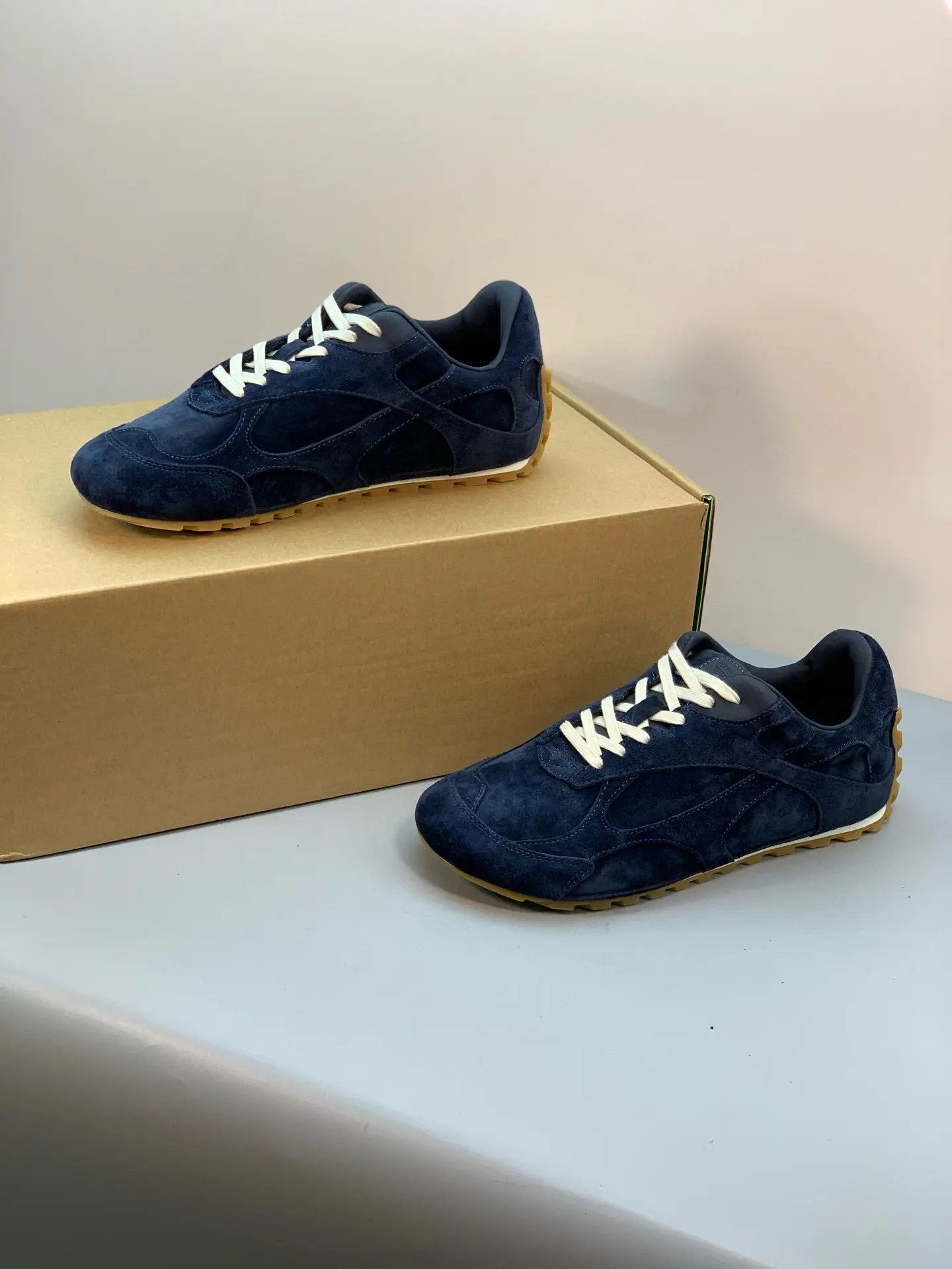 Inspired by 90s retro style, the upper features velvet and suede, echoing the brand’s signature intrecciato weave, showcasing a sophisticated and avant-garde design. Crafted from lightweight technical fabric, suede, and suede, the low-top lace-up design offers casual comfort without sacrificing refined design.