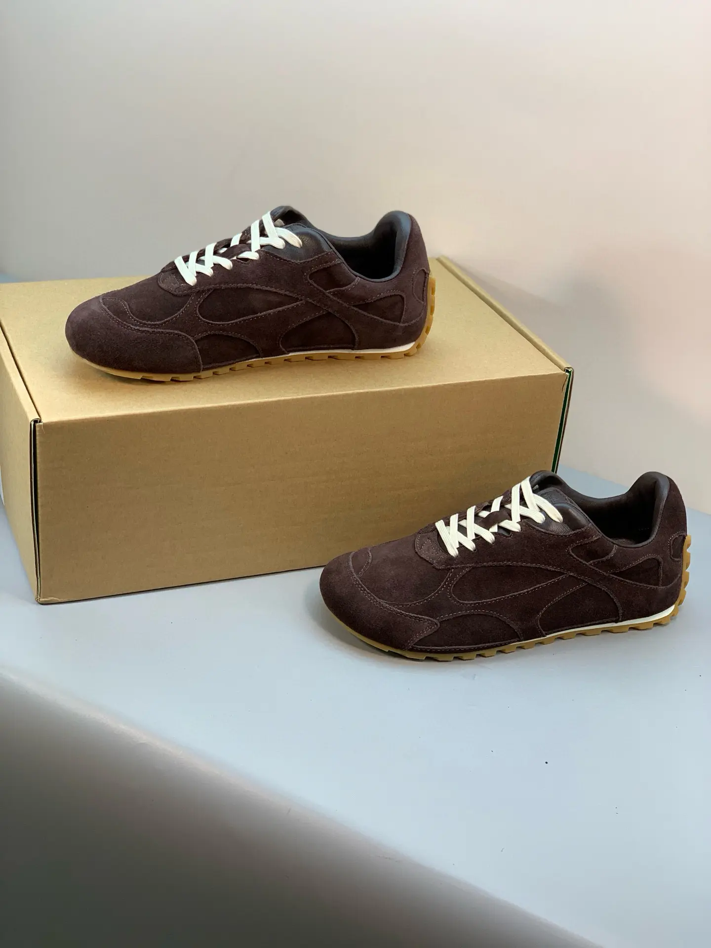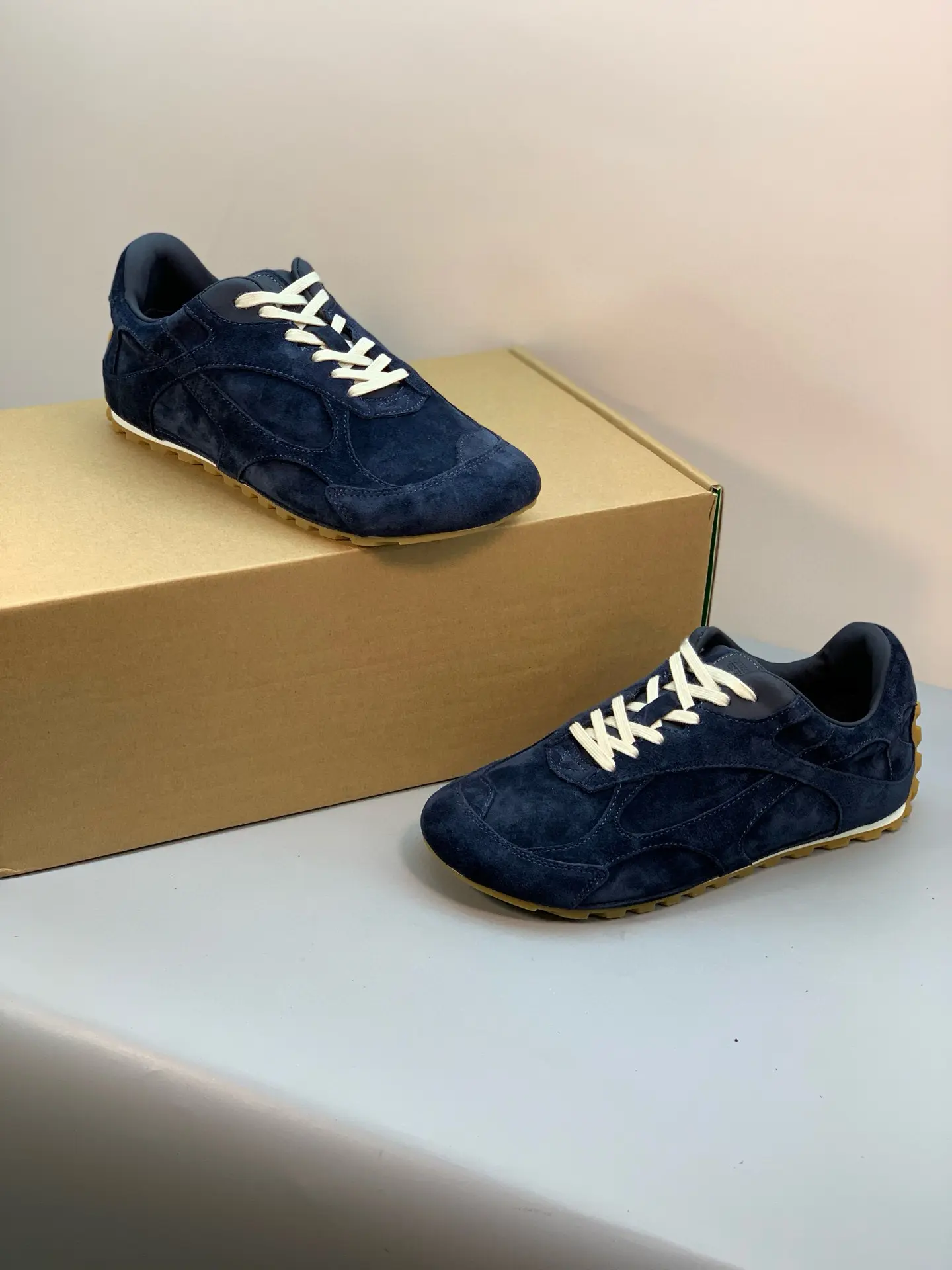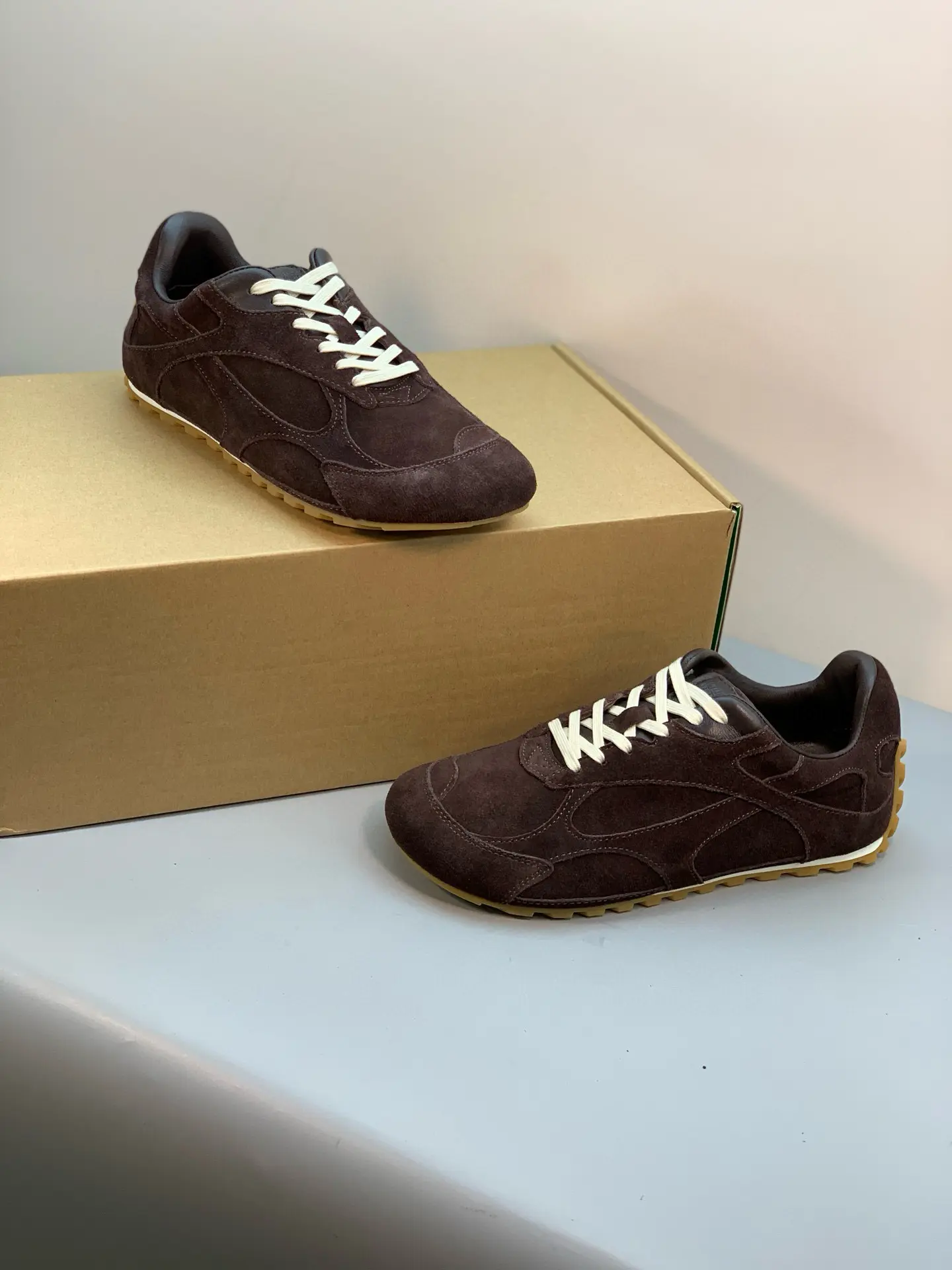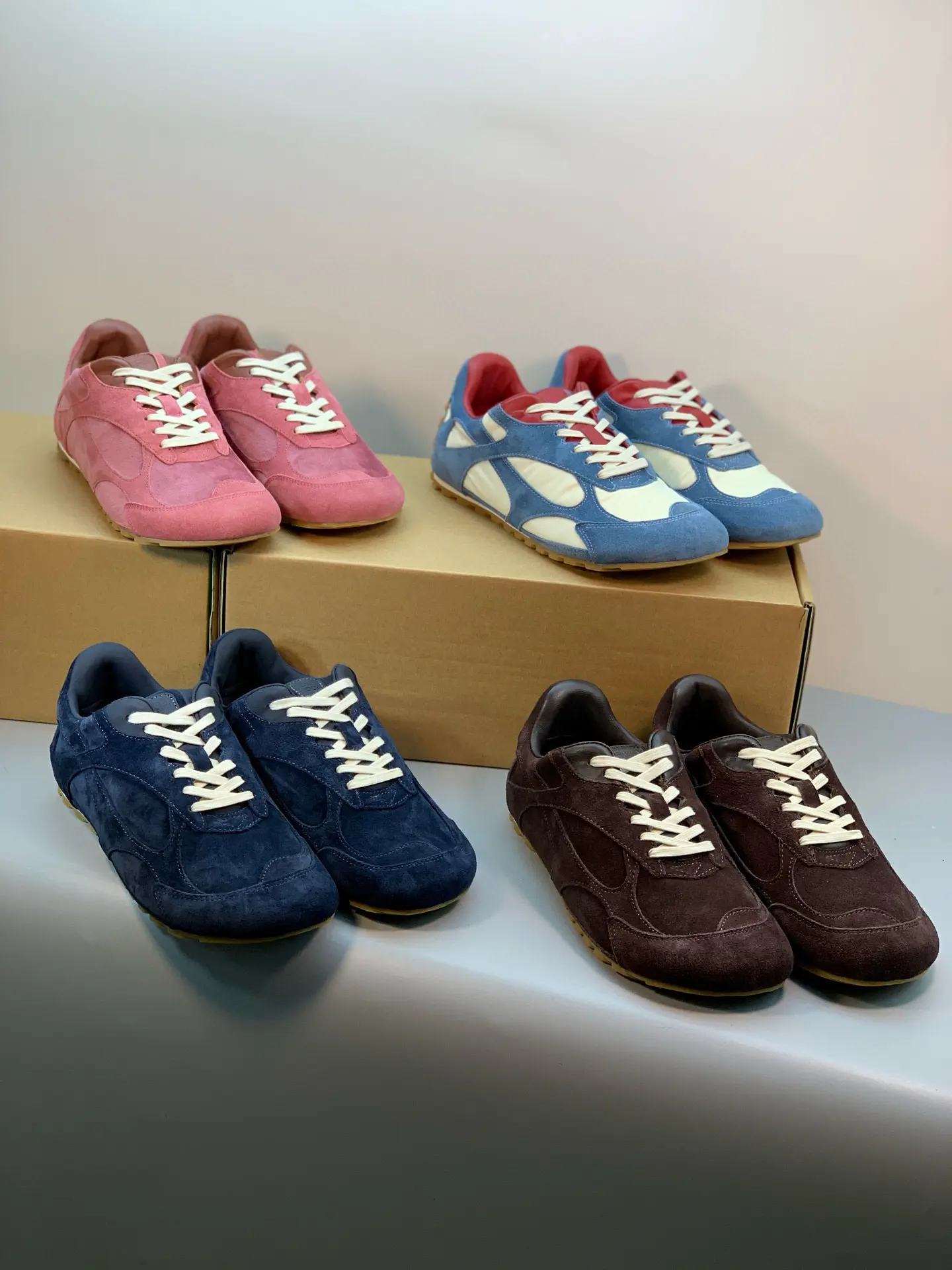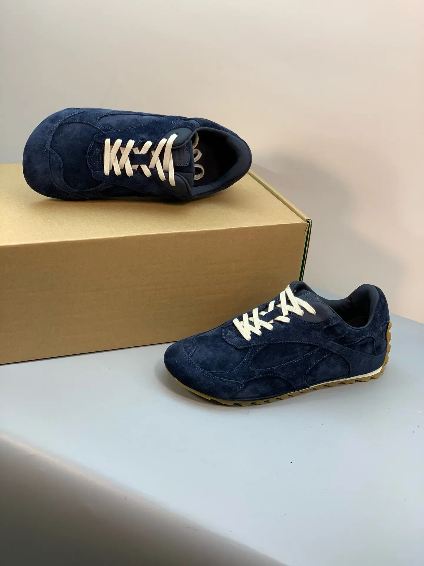 Inspired by 90s retro style, the upper features velvet and suede, echoing the brand’s signature intrecciato weave, showcasing a sophisticated and avant-garde design. Crafted from lightweight technical fabric, suede, and suede, the low-top lace-up design offers casual comfort without sacrificing refined design.