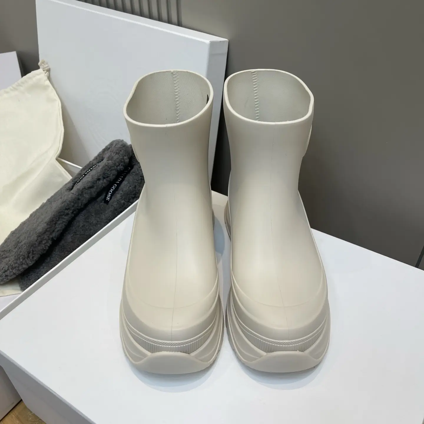 Made of 100% waterproof PU material, the upper is simple yet adorned with classic badges for a premium feel! The thick rubber sole provides excellent grip, suitable for various terrains. Includes a removable winter insole, making them suitable for all seasons! The moderate boot height and pull tab design make them easy to put on and take off, stylish and practical, perfect for rainy days or daily commutes, and can be easily styled with casual outfits.