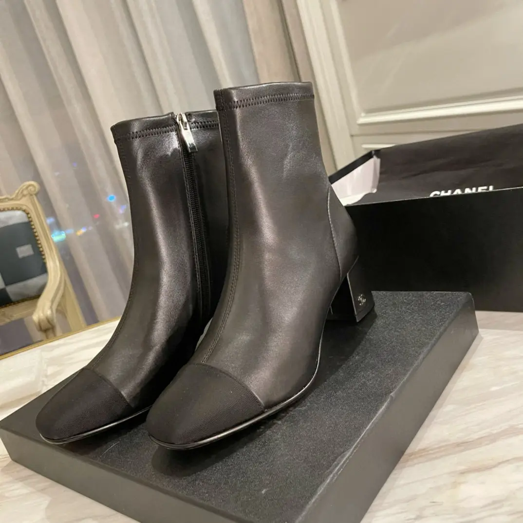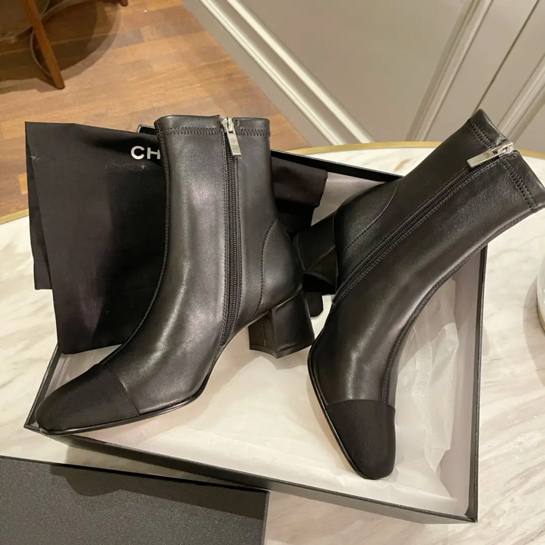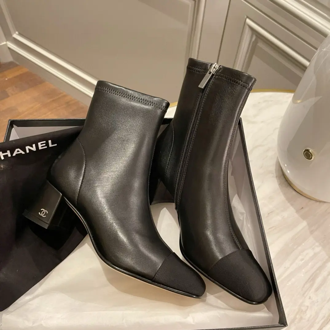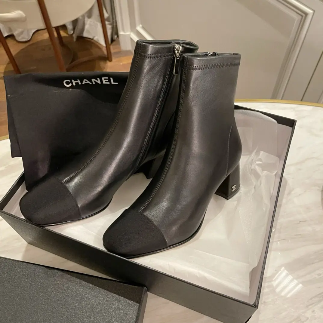 Chanel chunky-heeled stretch boots! Simple yet elegant ankle boots!