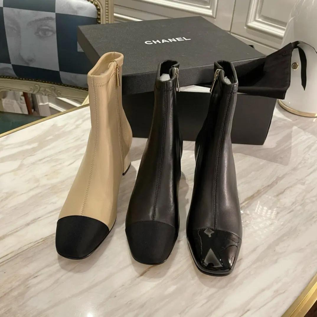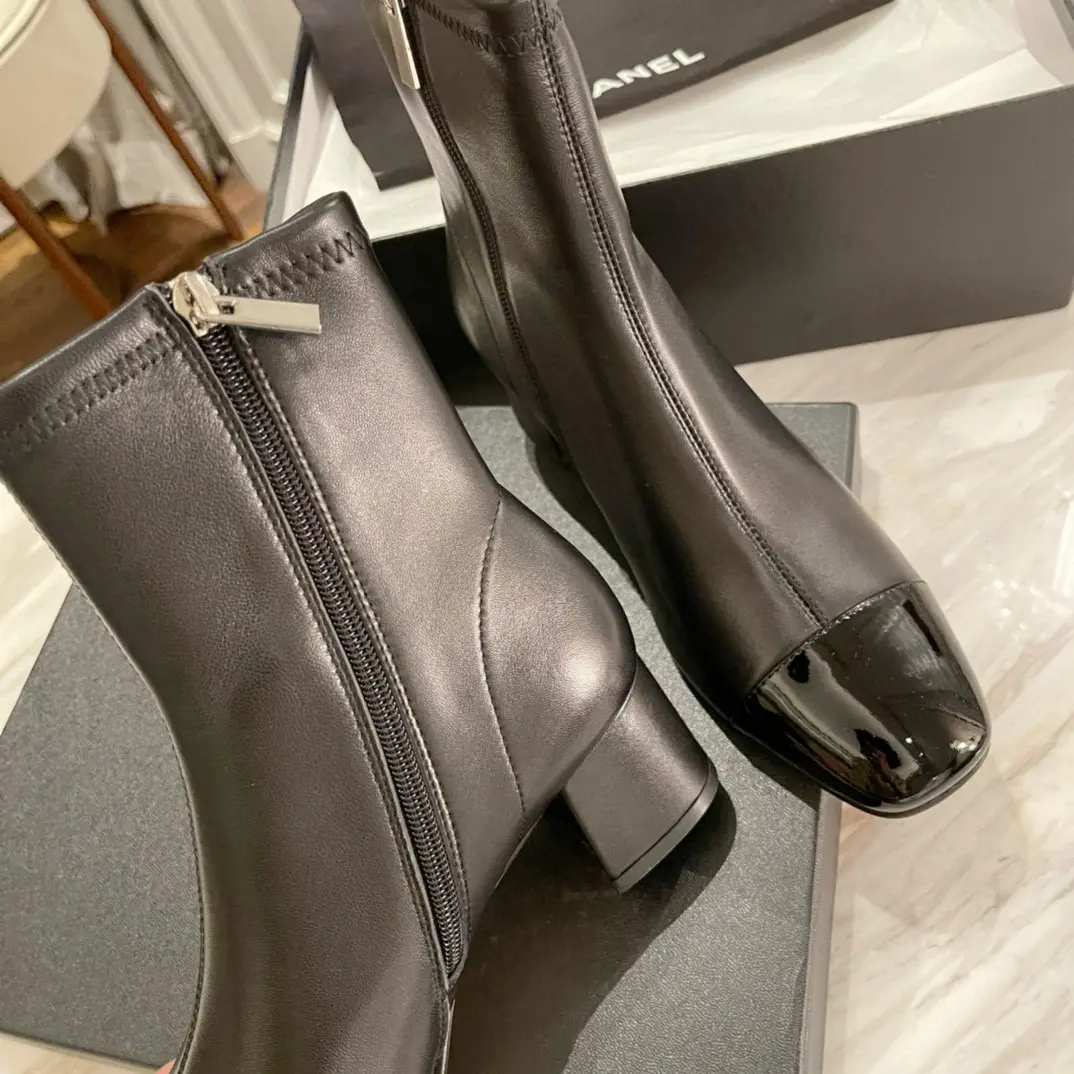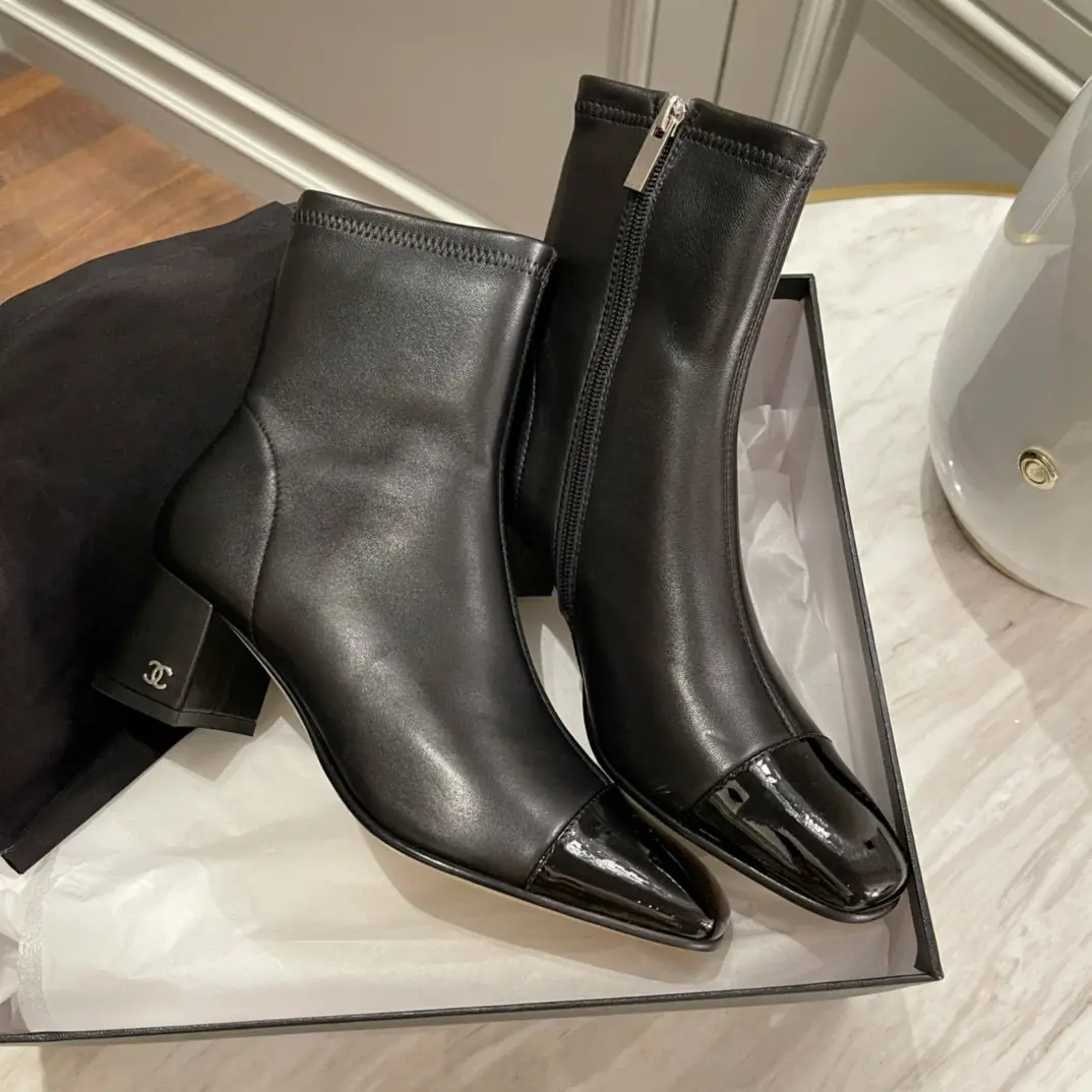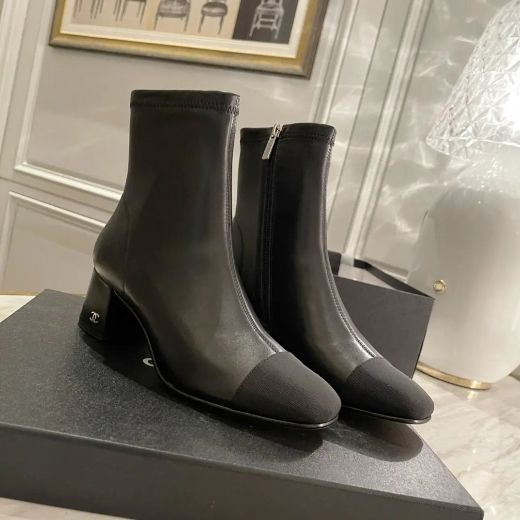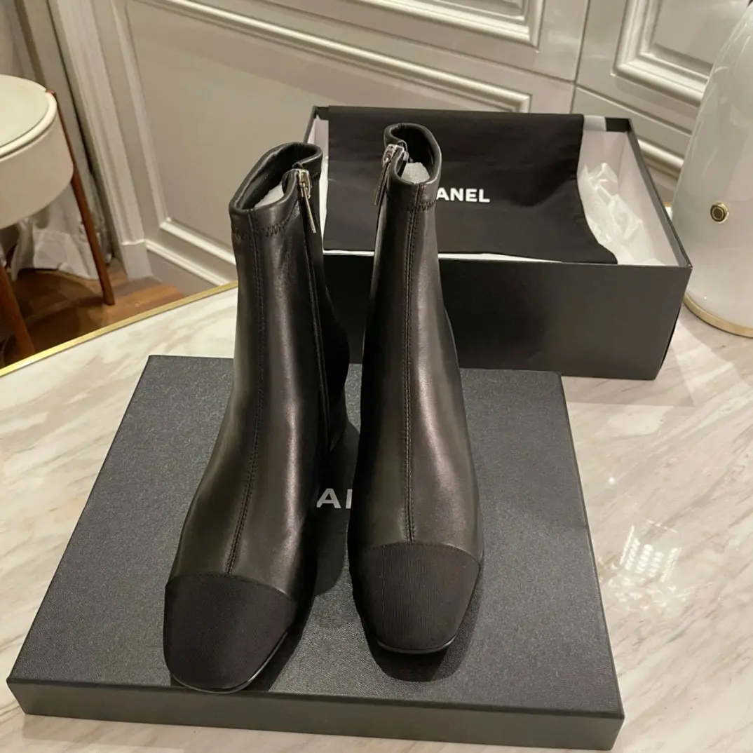 Chanel chunky-heeled stretch boots! Simple yet elegant ankle boots!