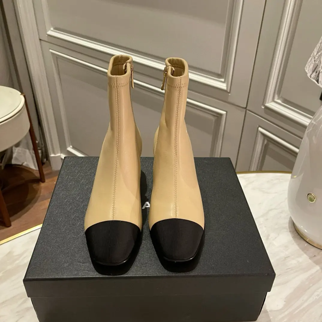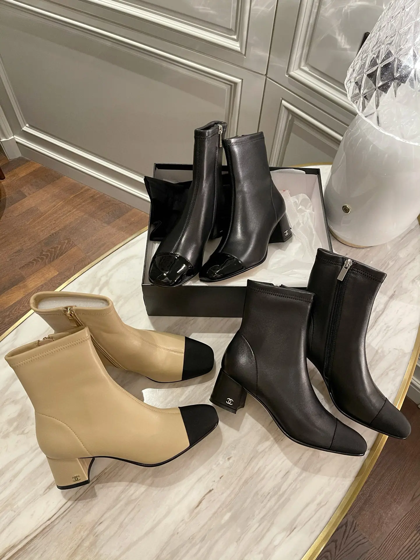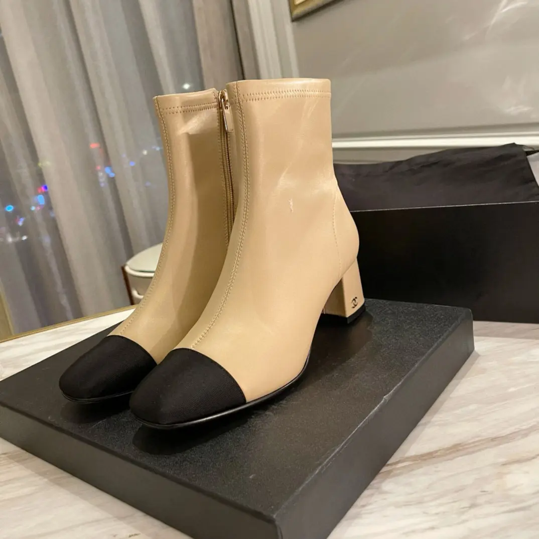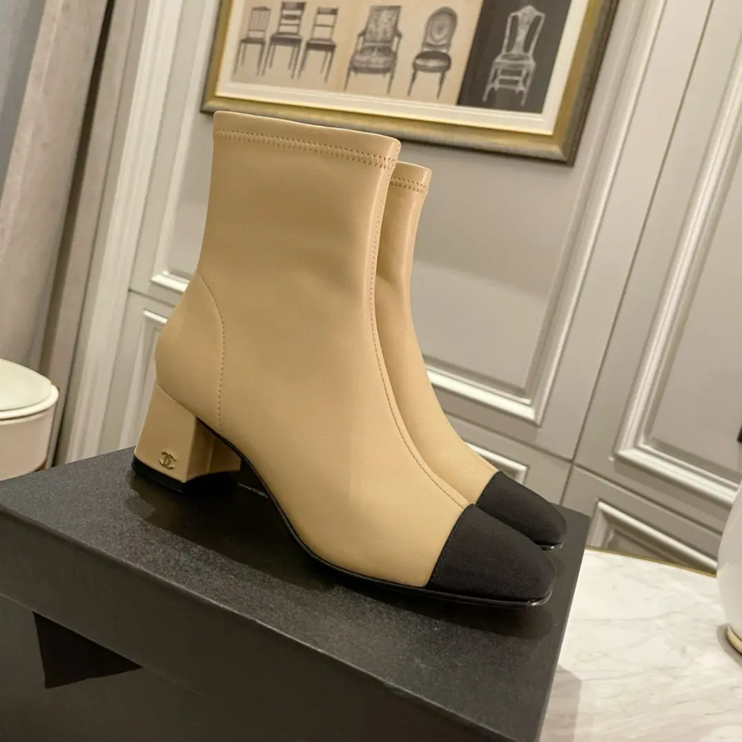 Chanel chunky-heeled stretch boots! Simple yet elegant ankle boots!