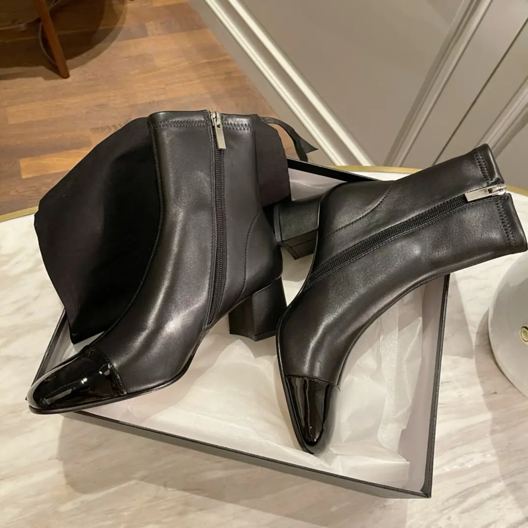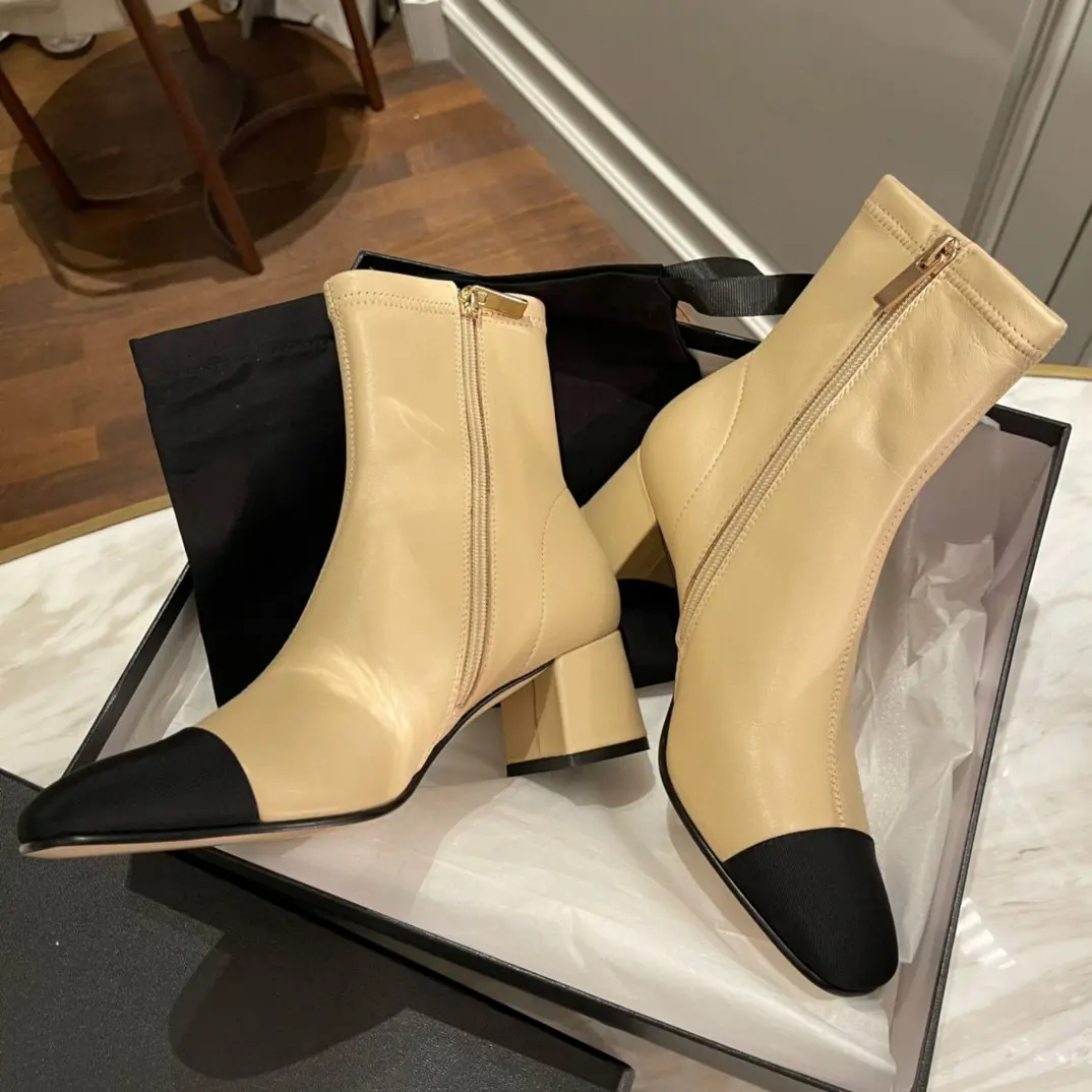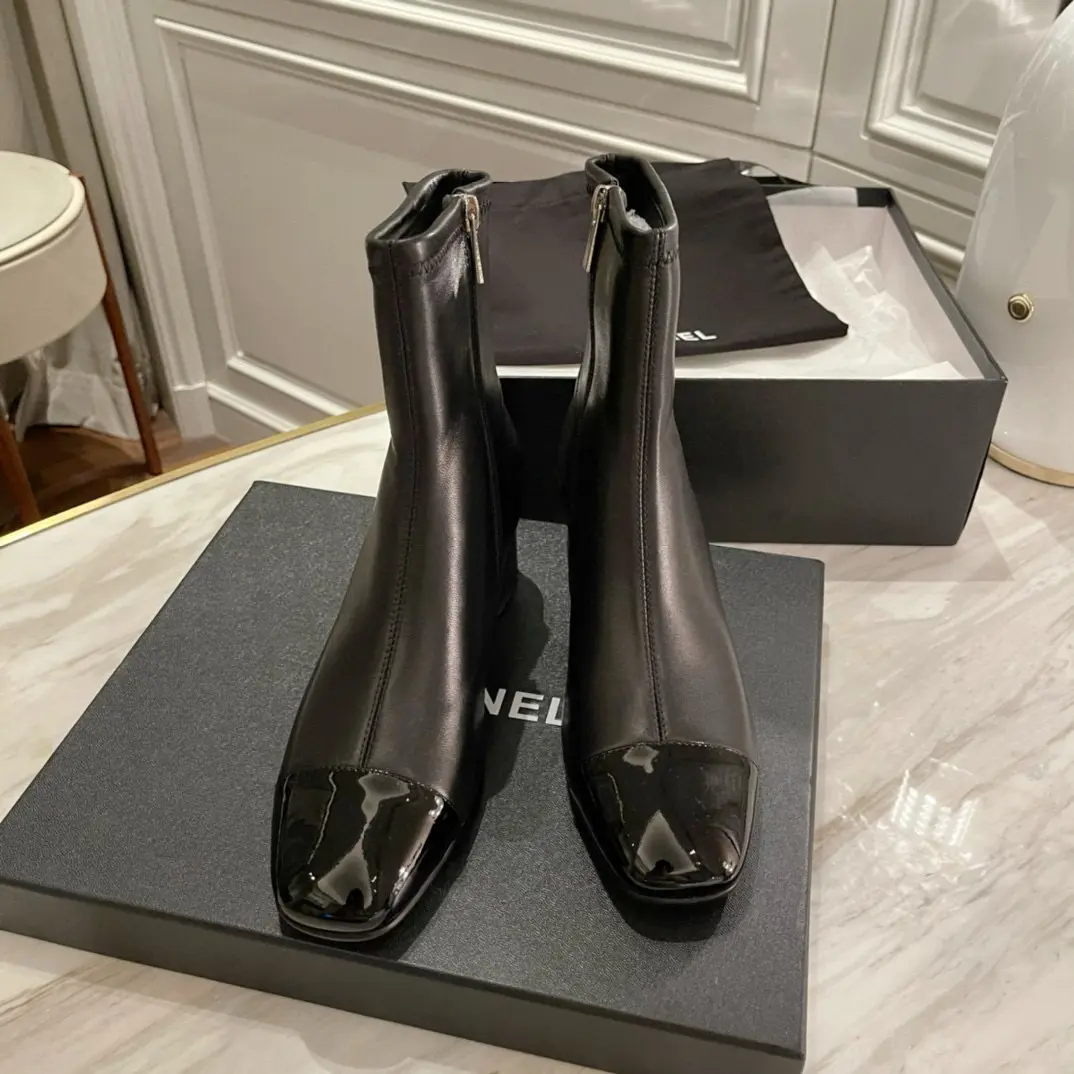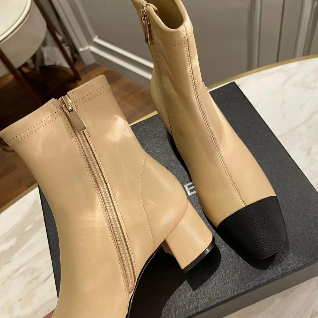 Chanel chunky-heeled stretch boots! Simple yet elegant ankle boots!