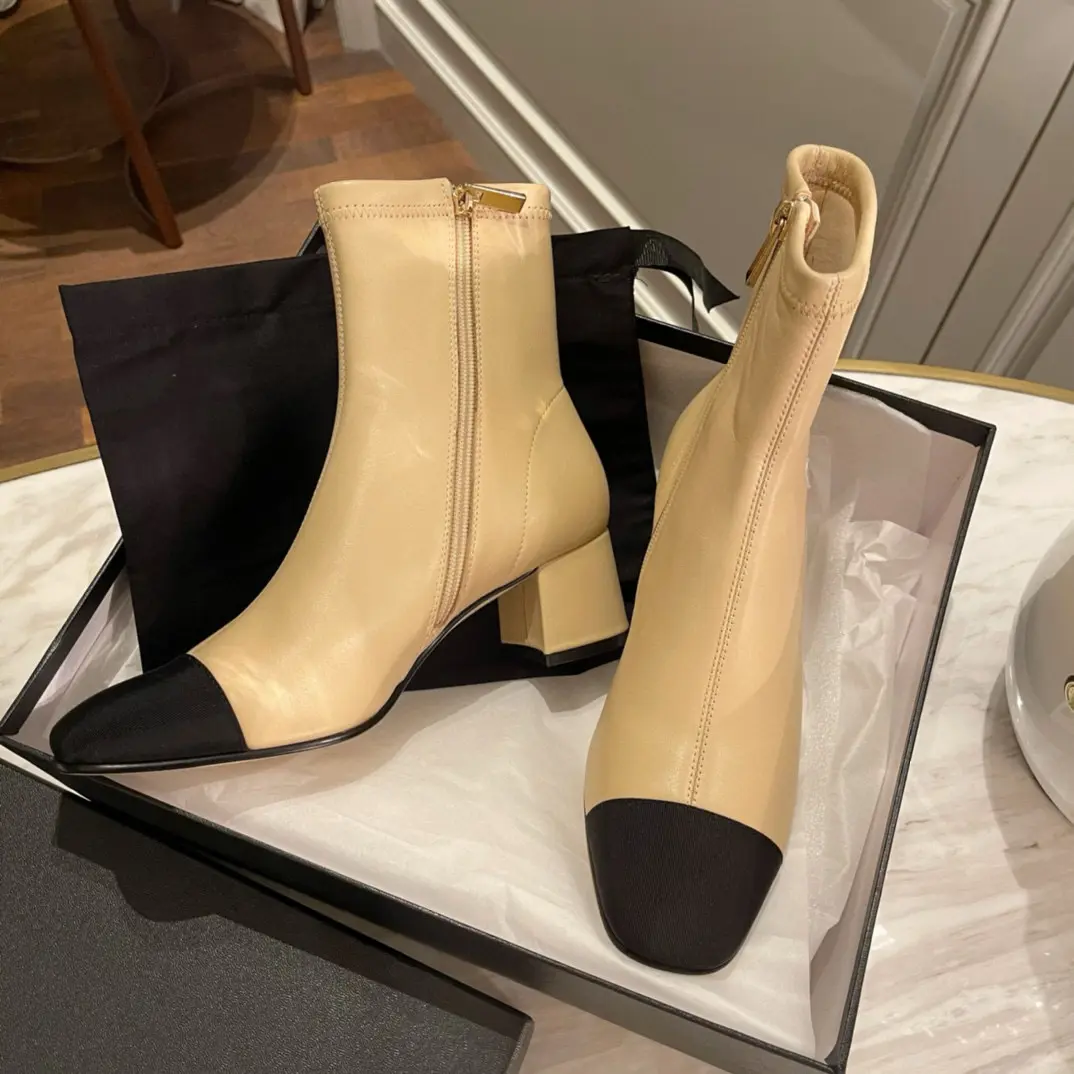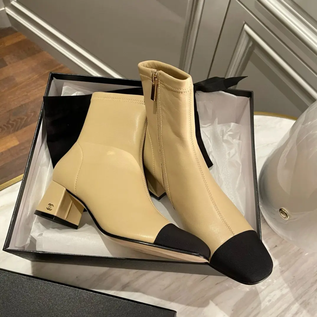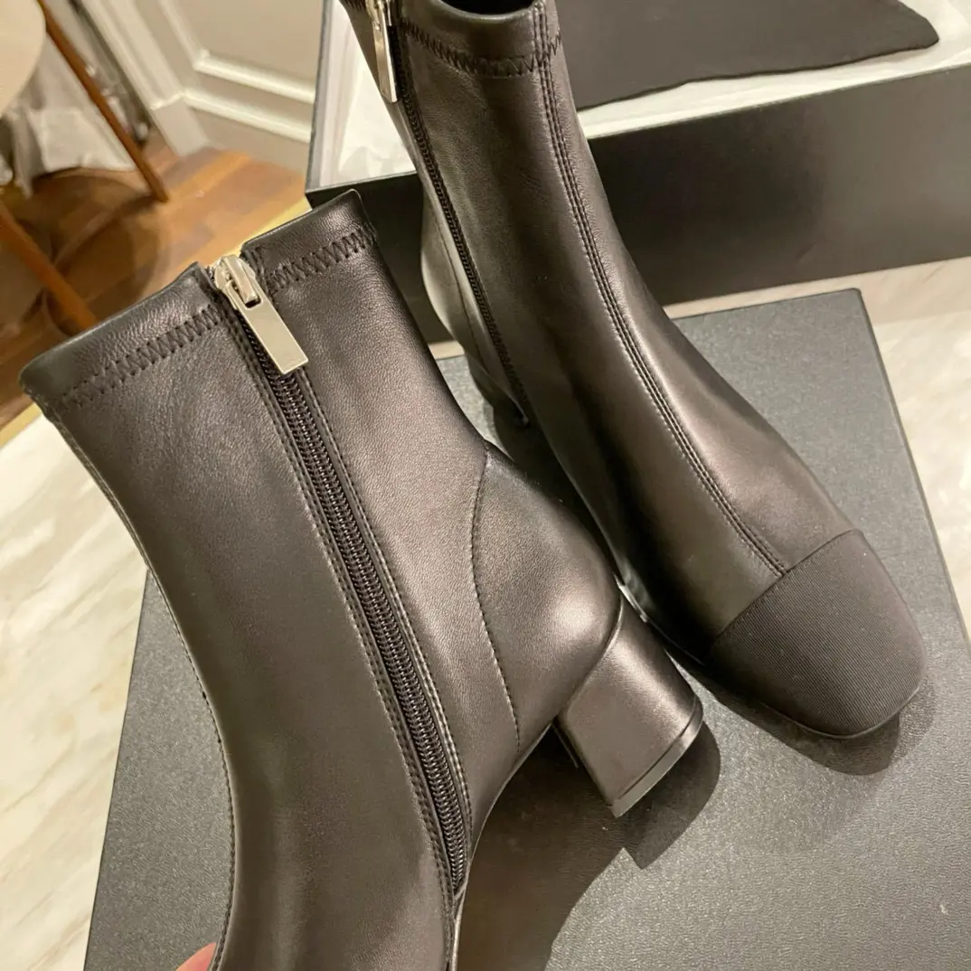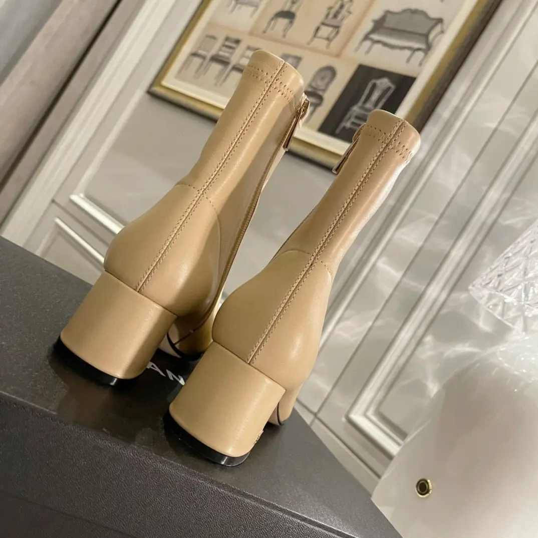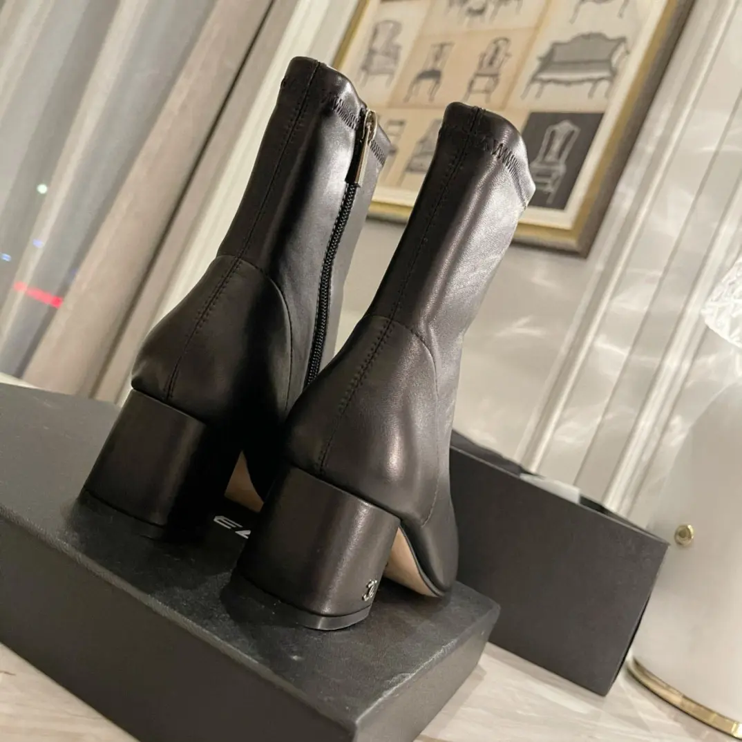 This product is positioned as a premium, comfort-focused replica of a Chanel boot style. Its primary differentiator from the previous model is the use of stretch lambskin, targeting a customer who prioritizes a precise, comfortable fit and understated elegance over heavy branding.