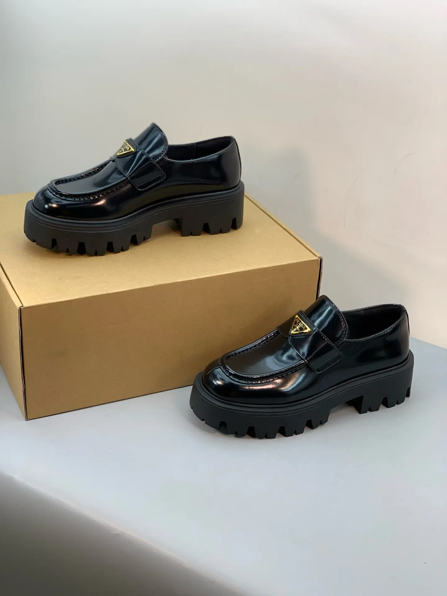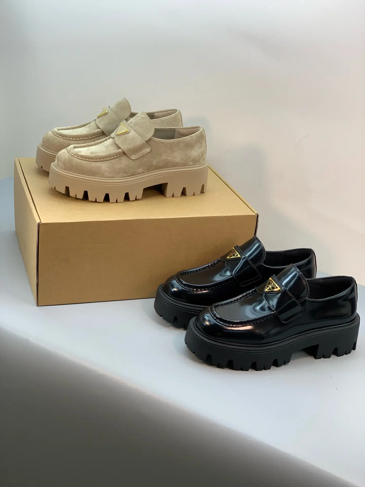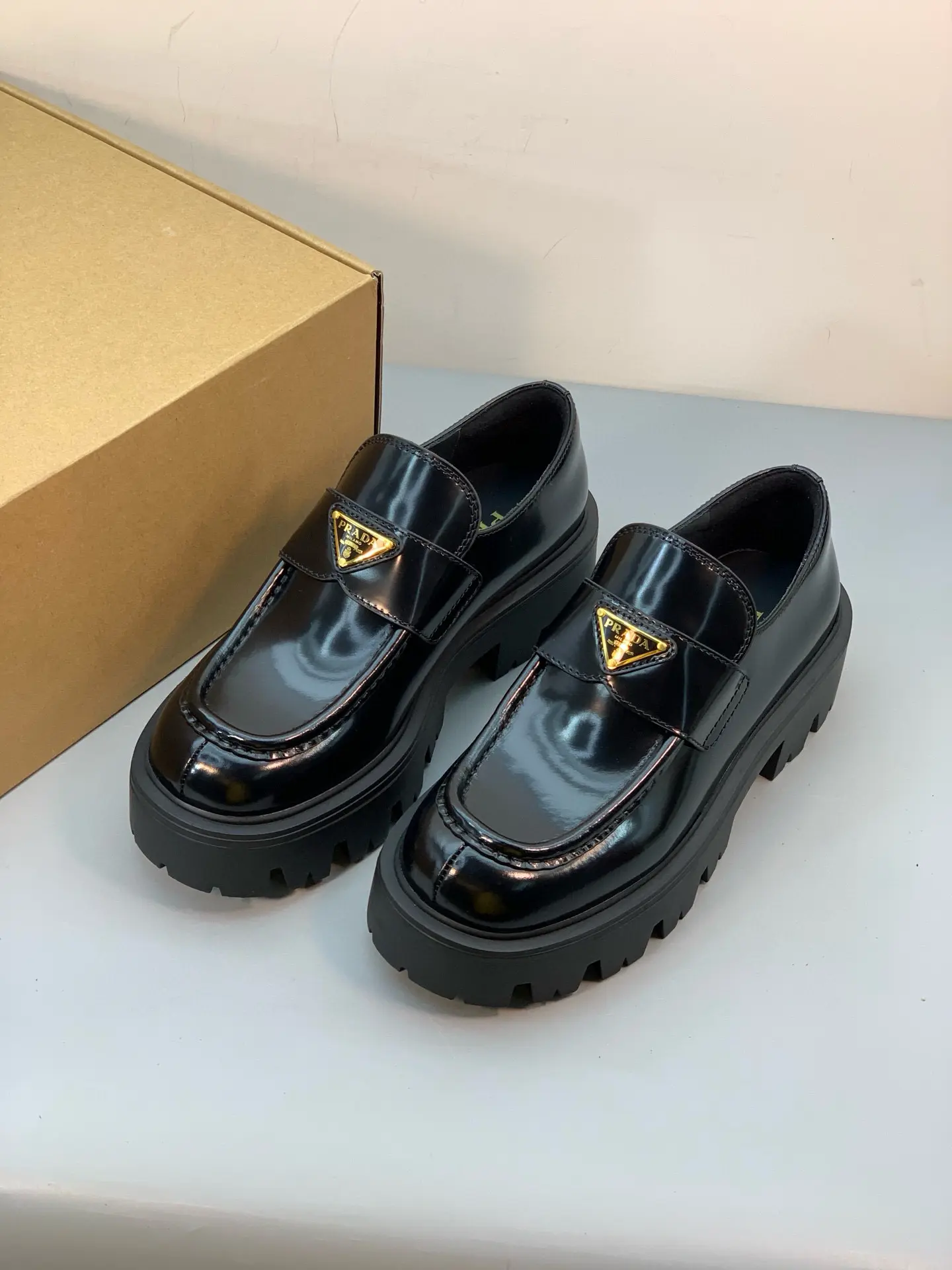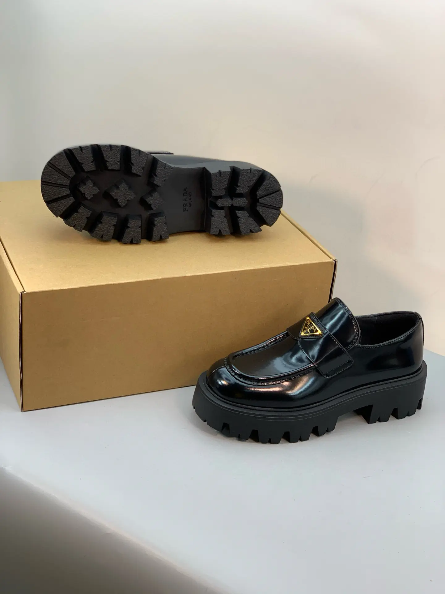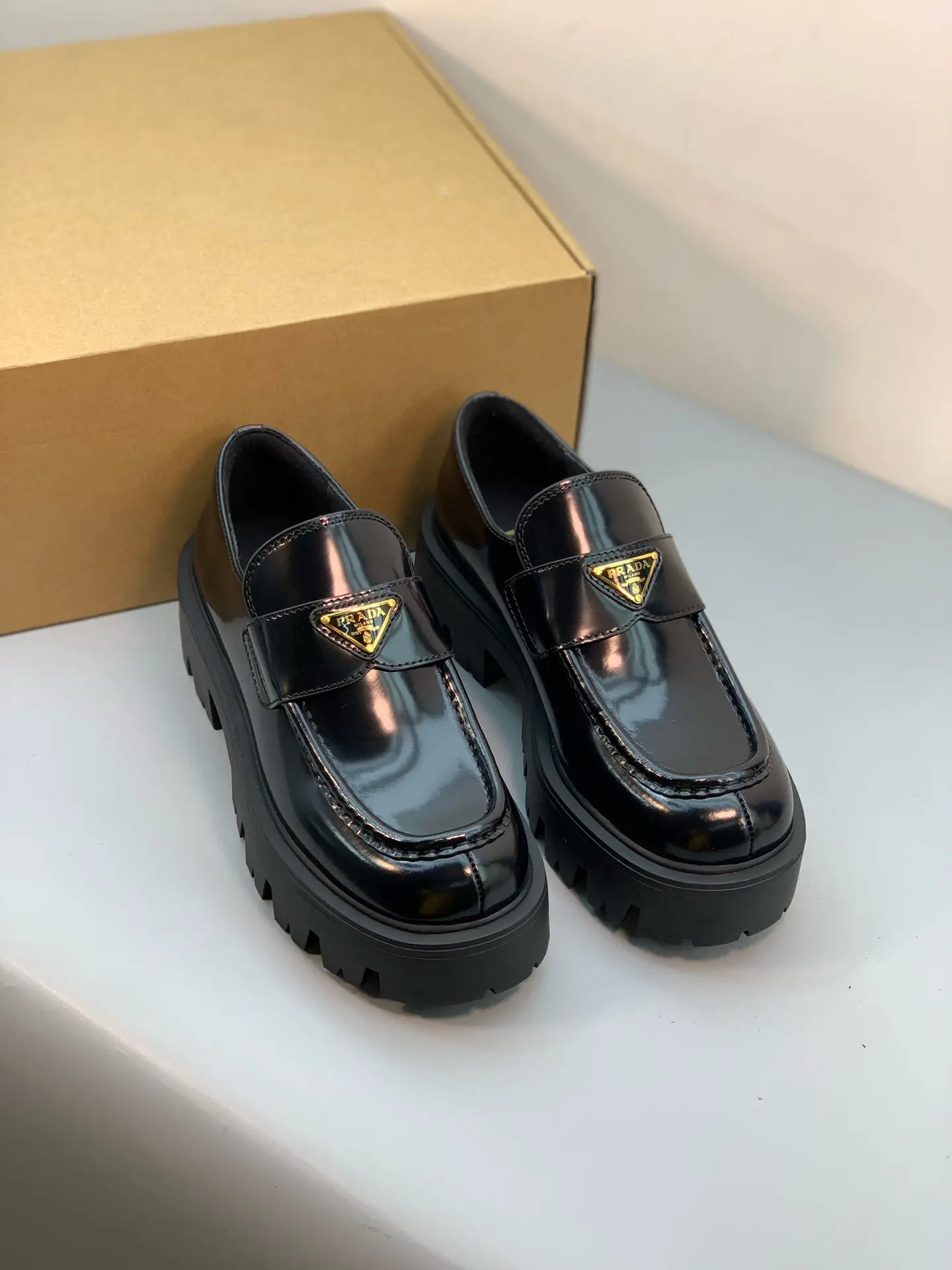 Elevate your everyday style with the Prada loafer, a perfect fusion of heritage design and contemporary attitude. Its thick, sawtooth-sprocket sole and iconic triangular buckle create a powerful, fashion-forward statement.