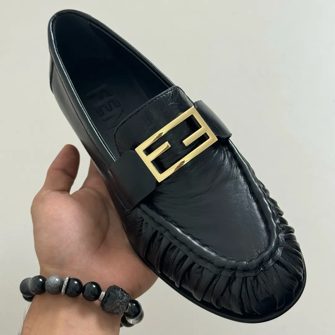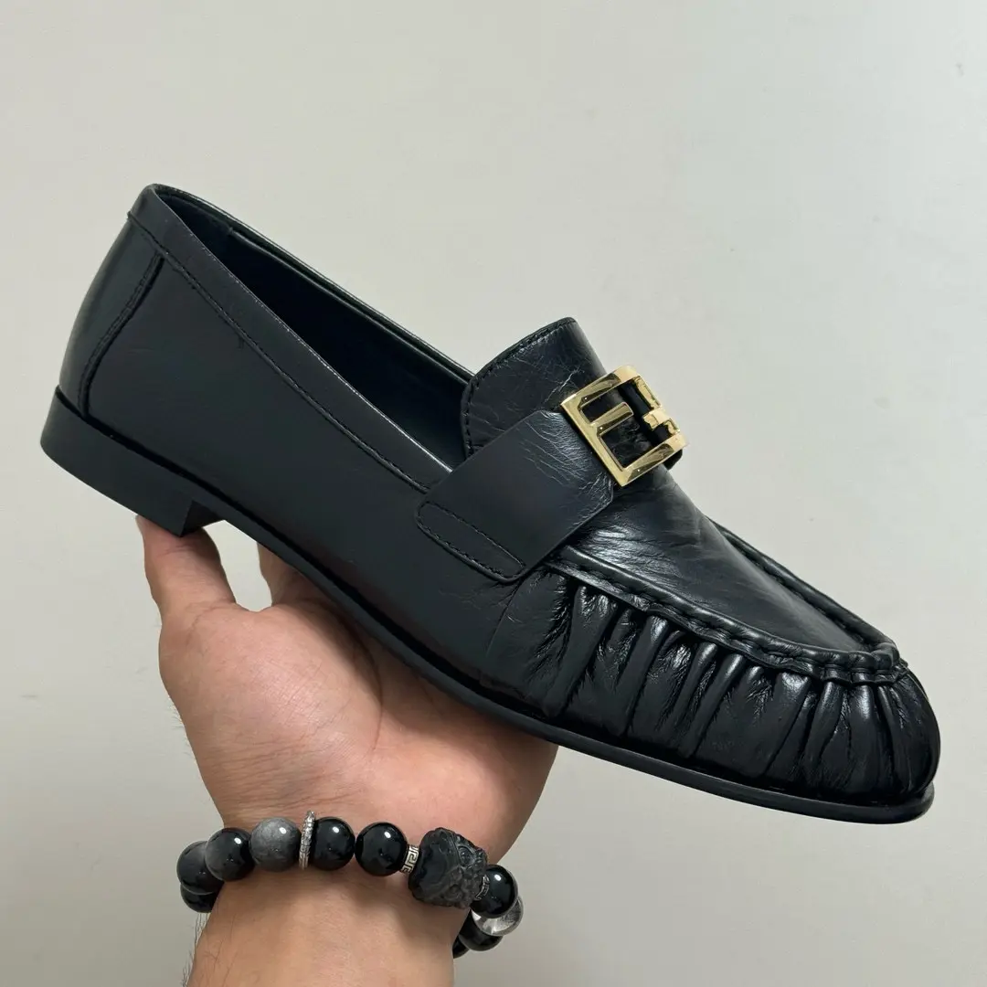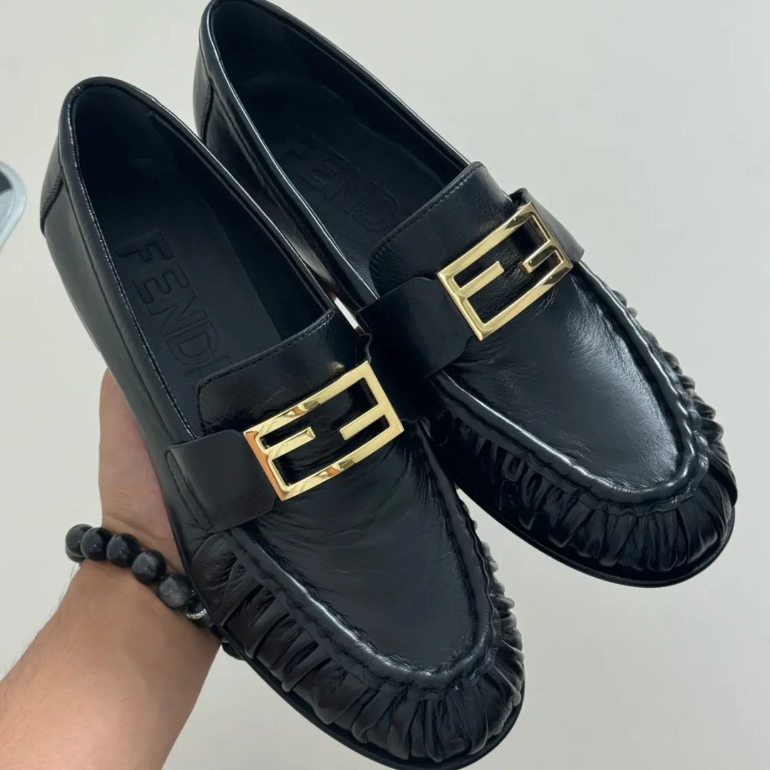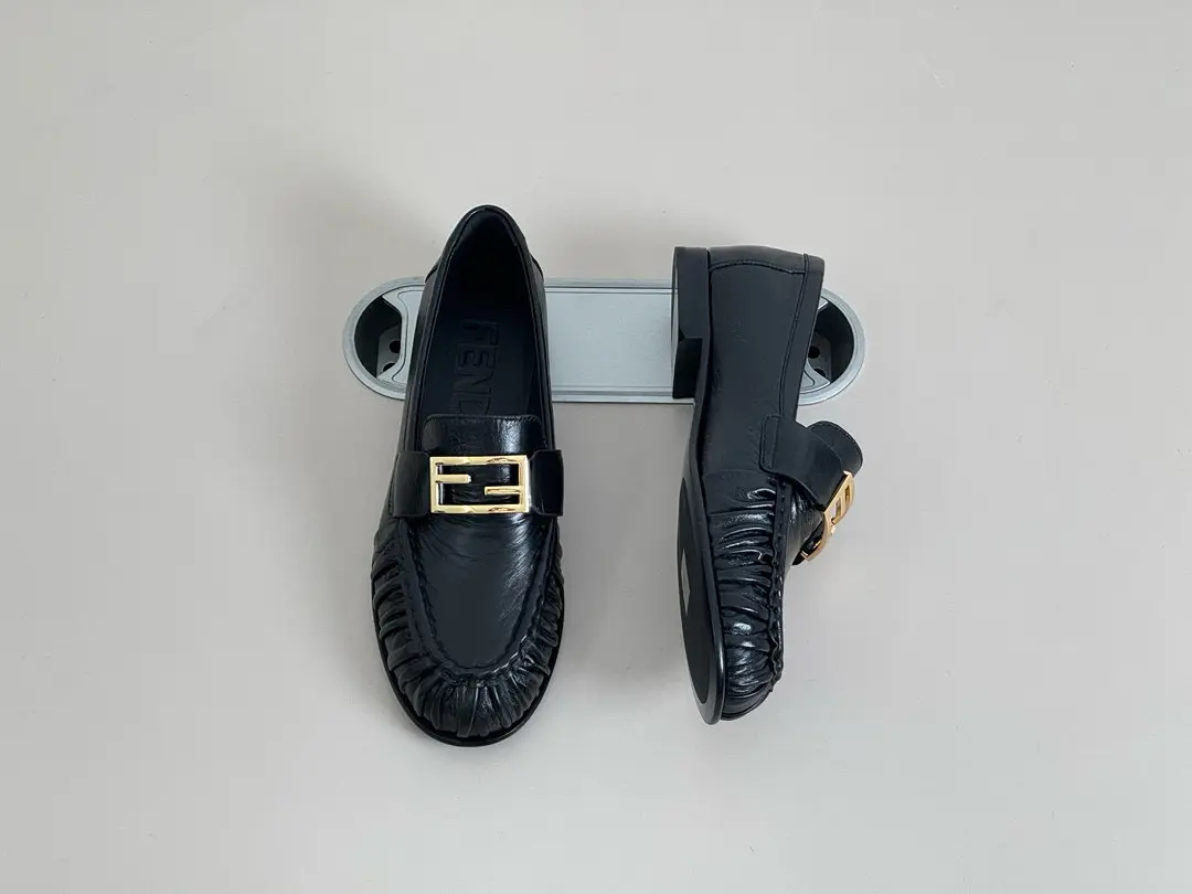“Fendi Pleated Loafers | Black Leather + Gold Buckle = A Formula for Elegance. The slip-on feel is perfect for commuting or dates; wearing them makes you the epitome of sophistication.” 👞