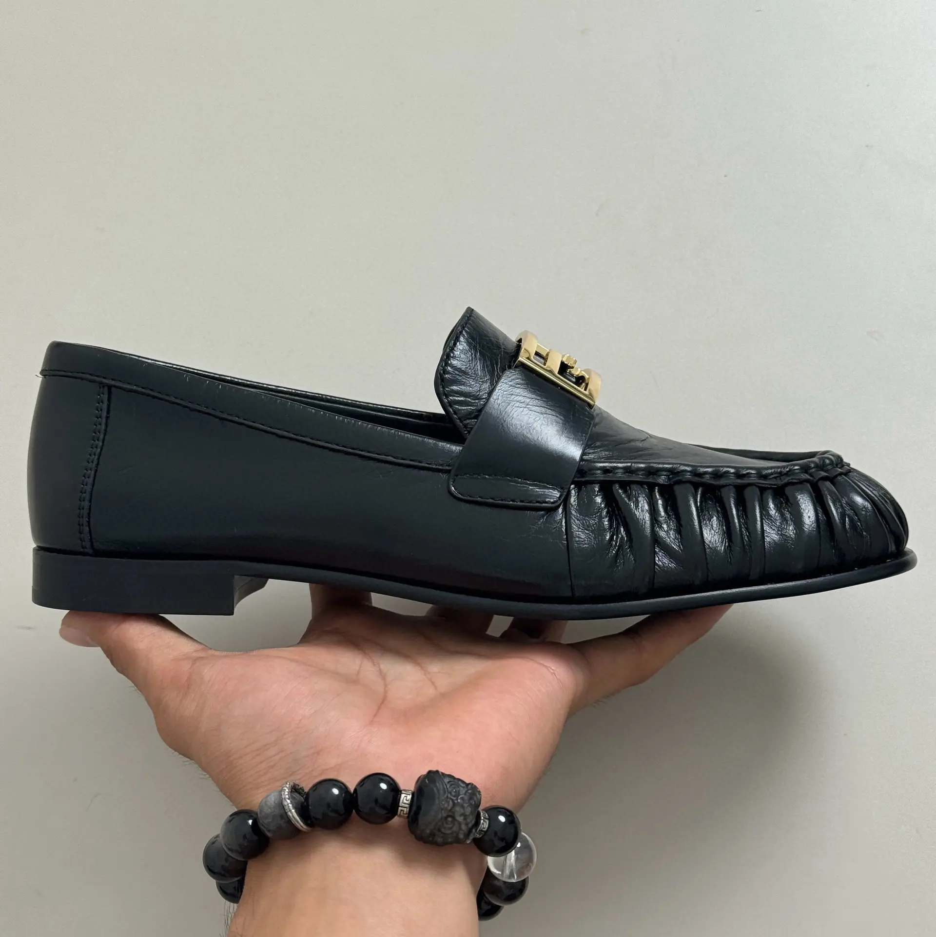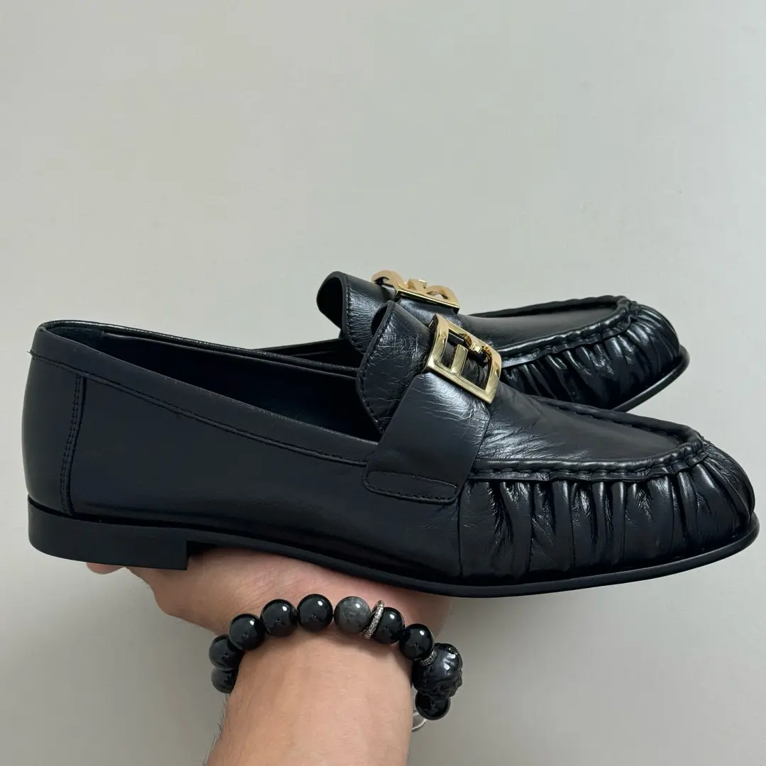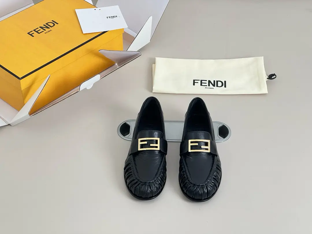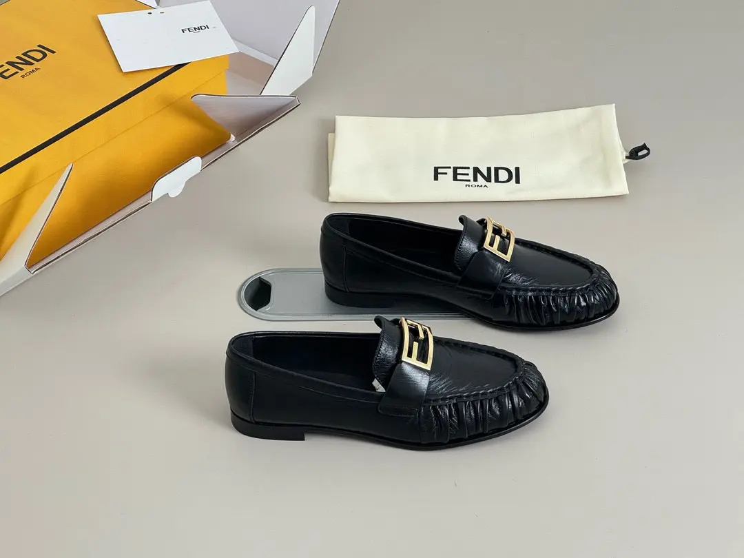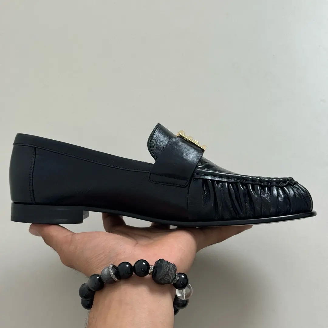 “Fendi Pleated Loafers | Black Leather + Gold Buckle = A Formula for Elegance. The slip-on feel is perfect for commuting or dates; wearing them makes you the epitome of sophistication.” 👞