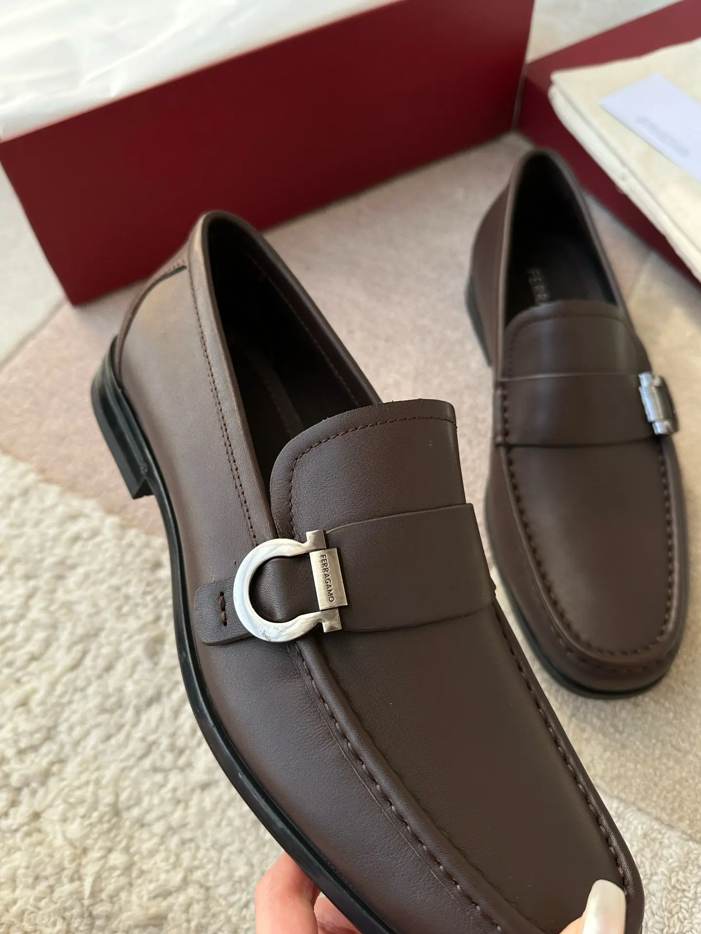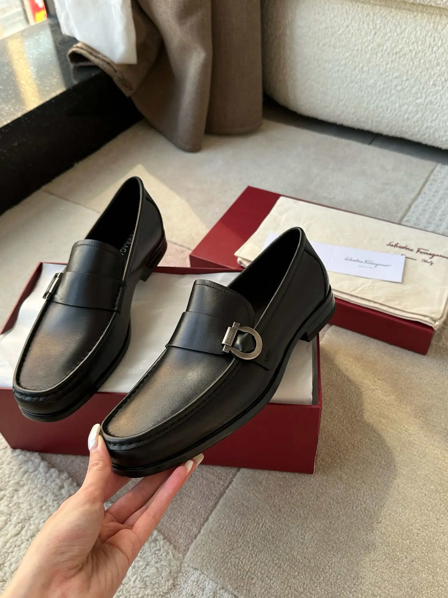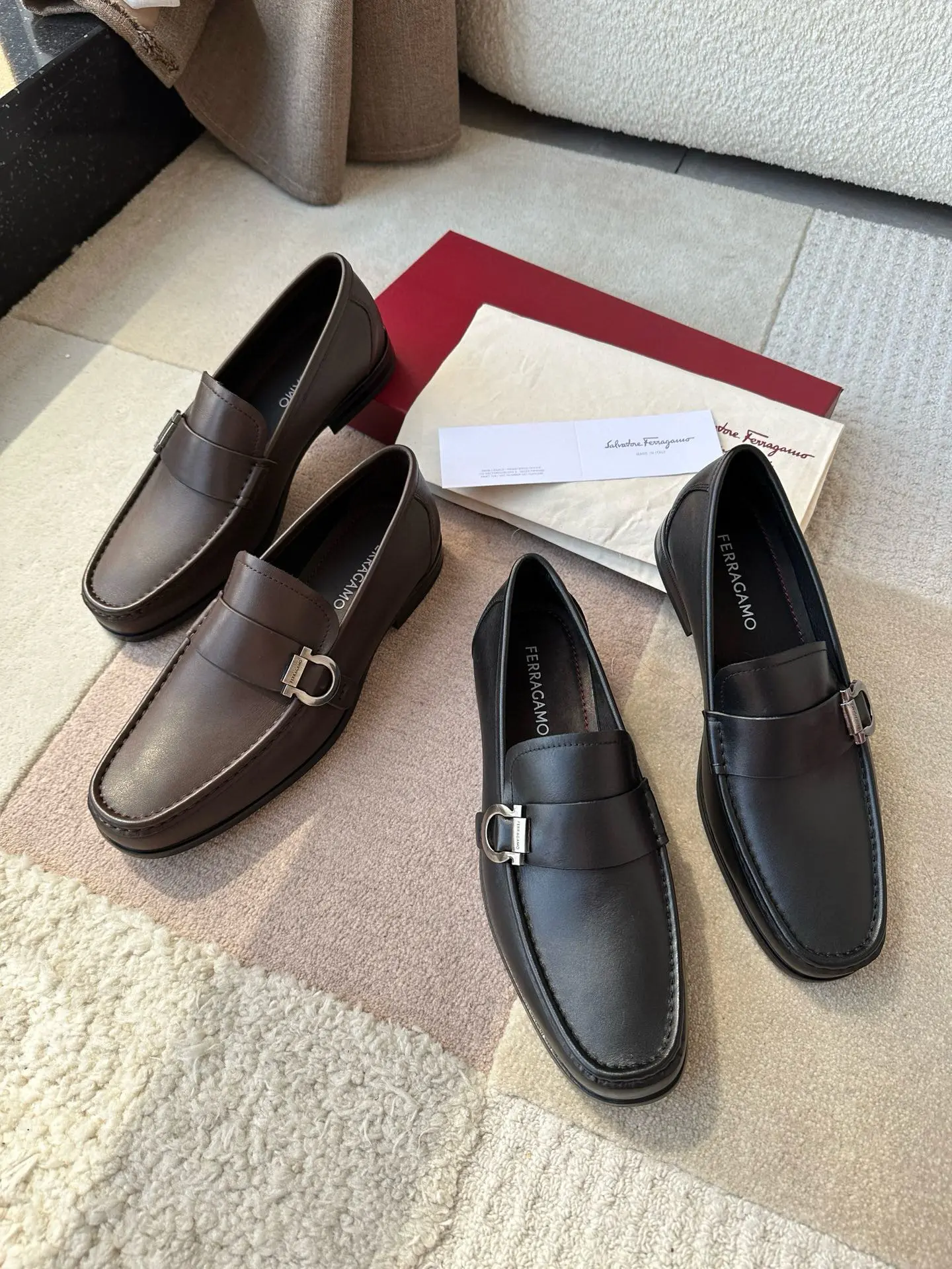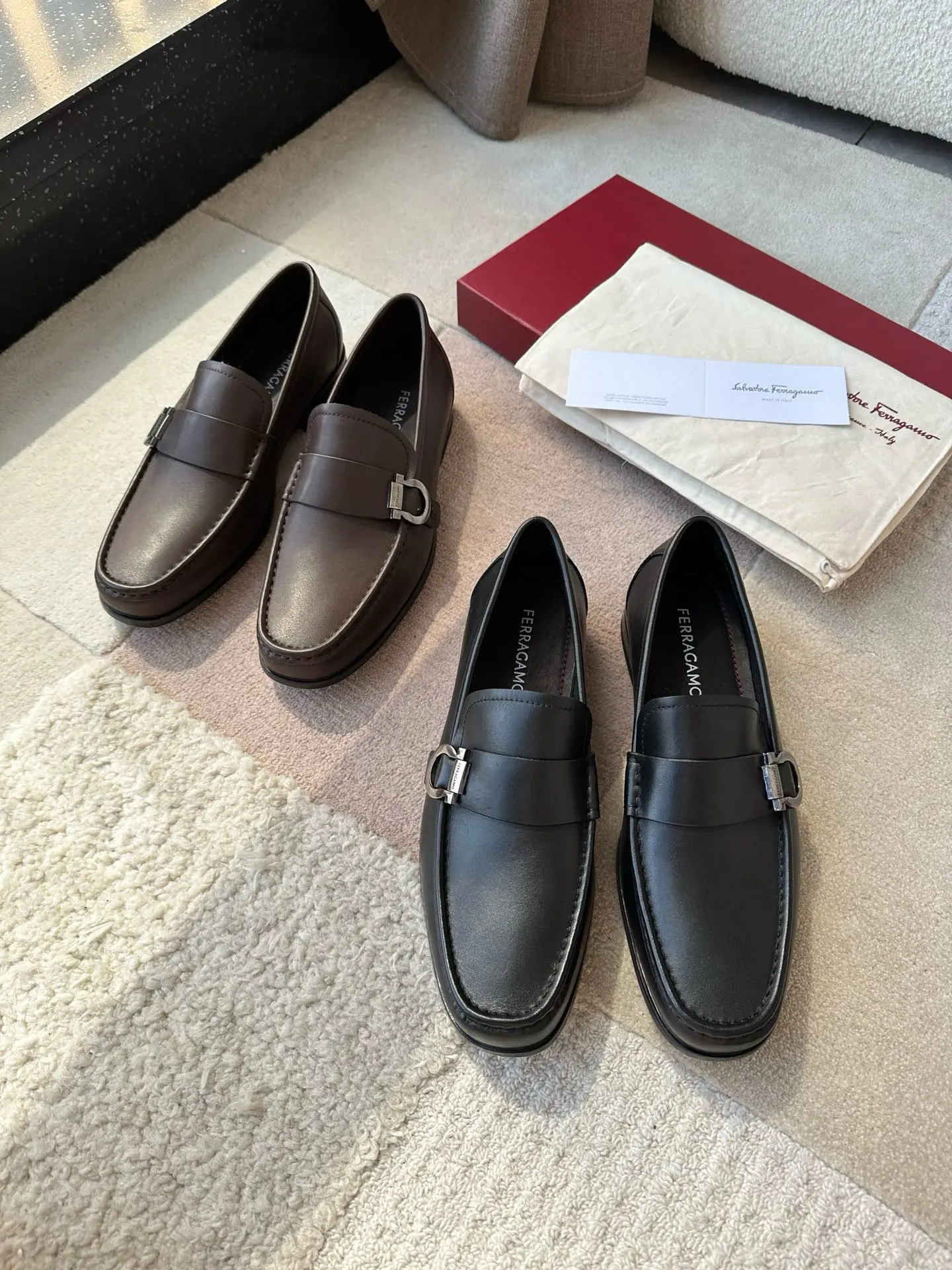 Ferragamo—A hit among Ferragamo men’s slip-on shoes! These stylish, masculine shoes are irresistible, and I absolutely love them! The fine leather texture is truly exceptional, and the brand maintains a meticulous approach to craftsmanship!