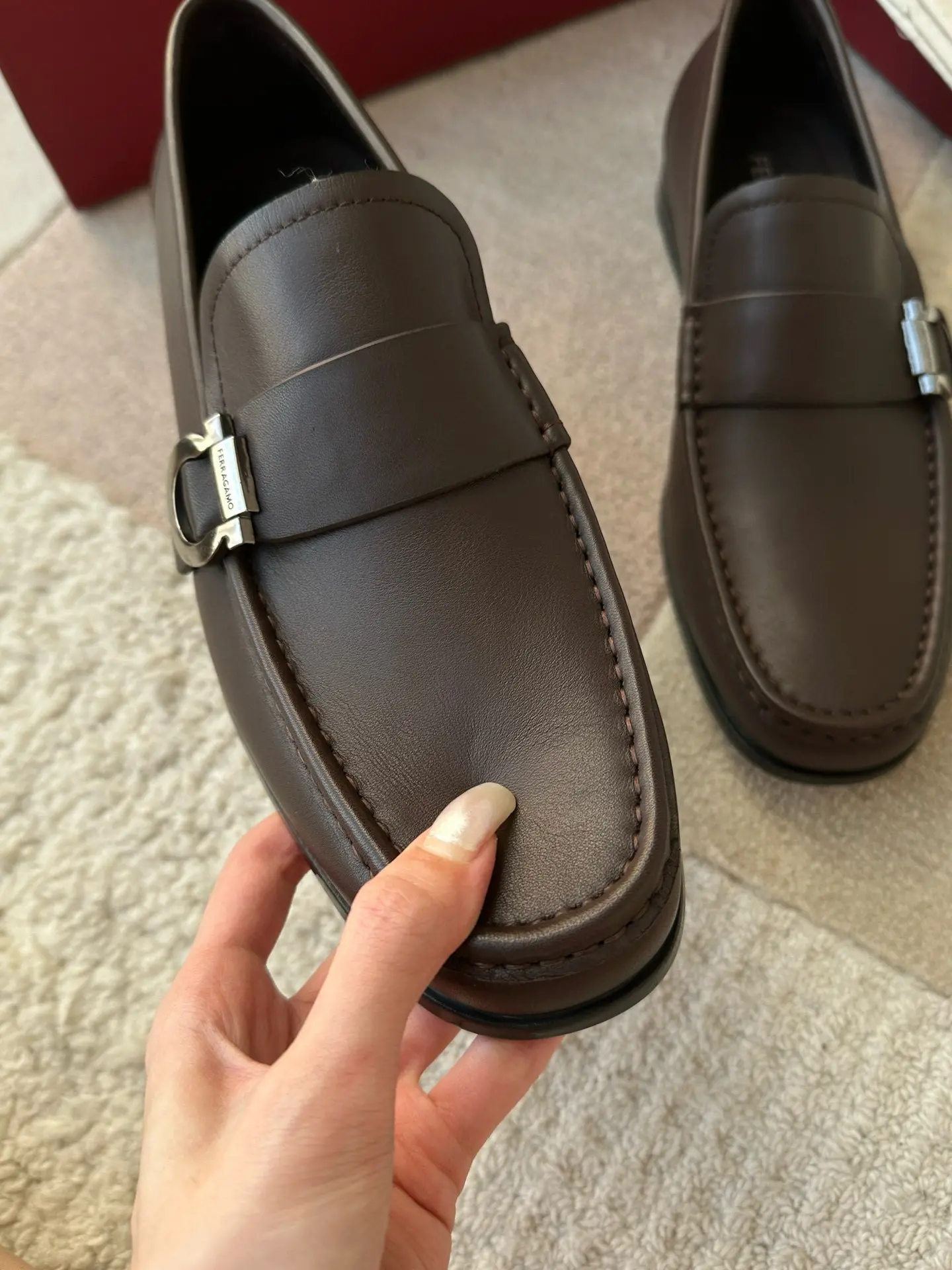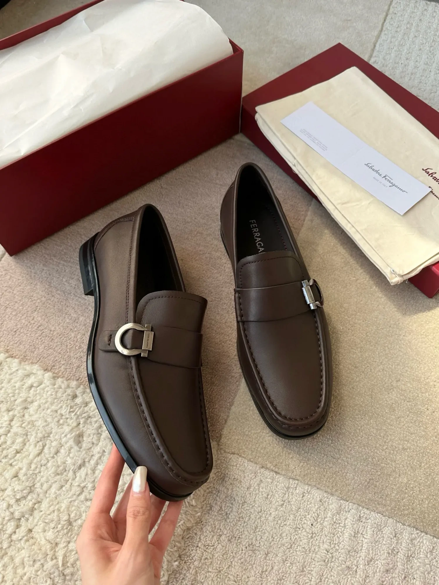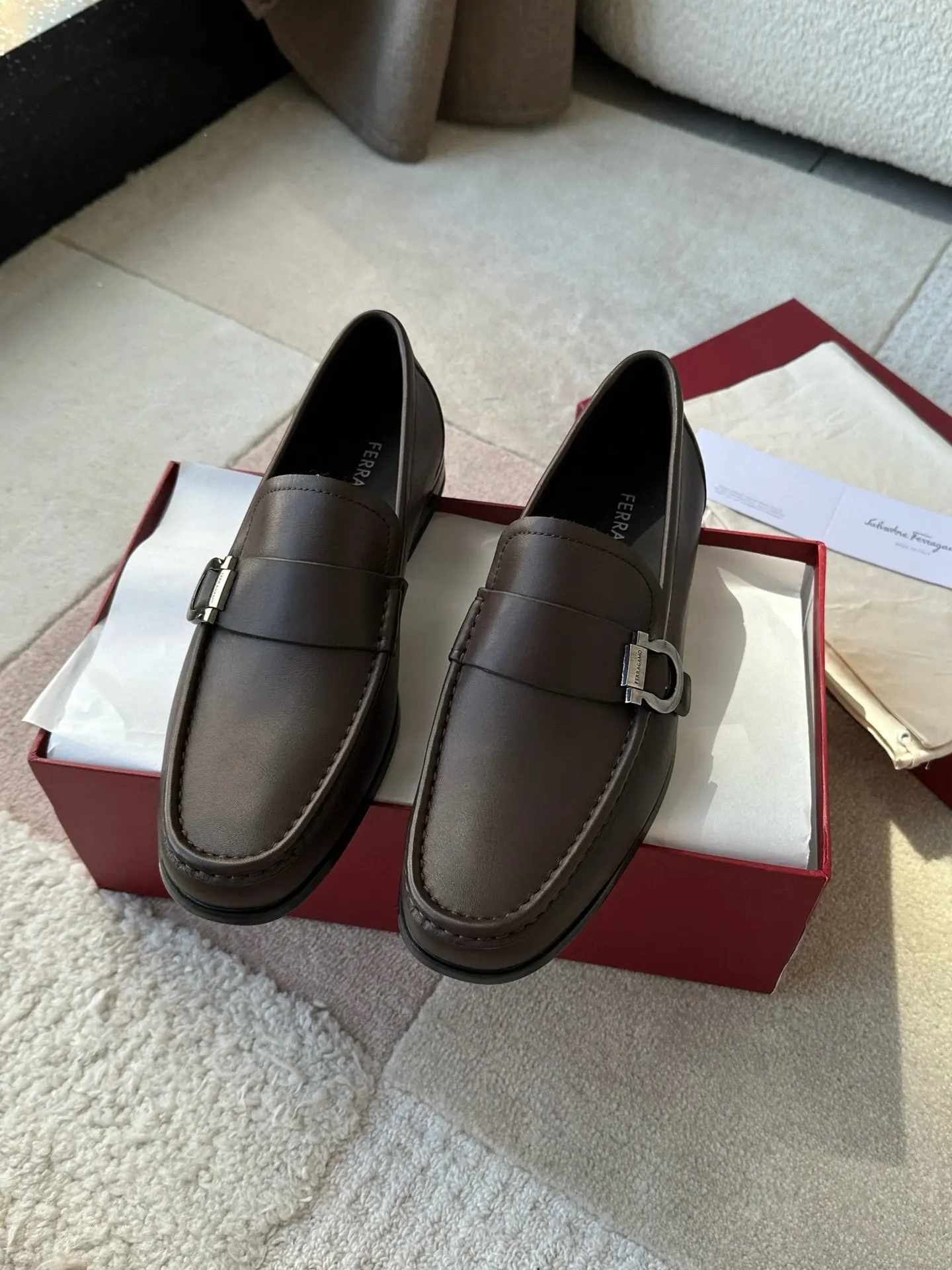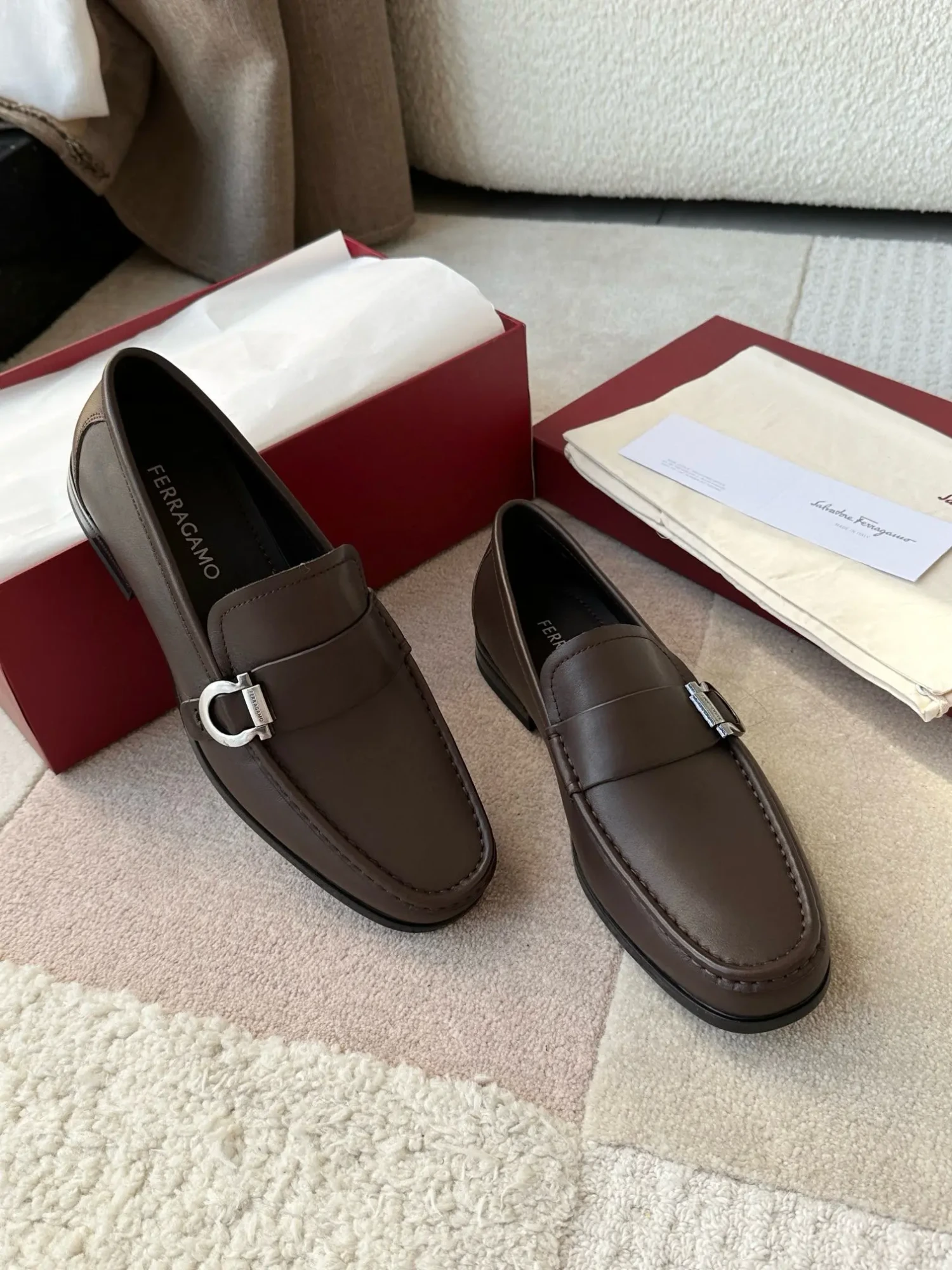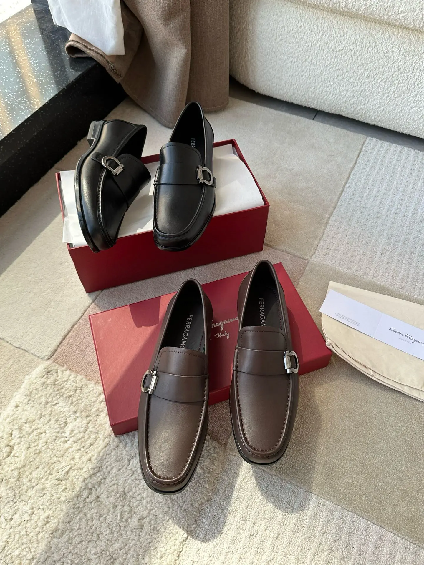 Ferragamo—A hit among Ferragamo men’s slip-on shoes! These stylish, masculine shoes are irresistible, and I absolutely love them! The fine leather texture is truly exceptional, and the brand maintains a meticulous approach to craftsmanship!