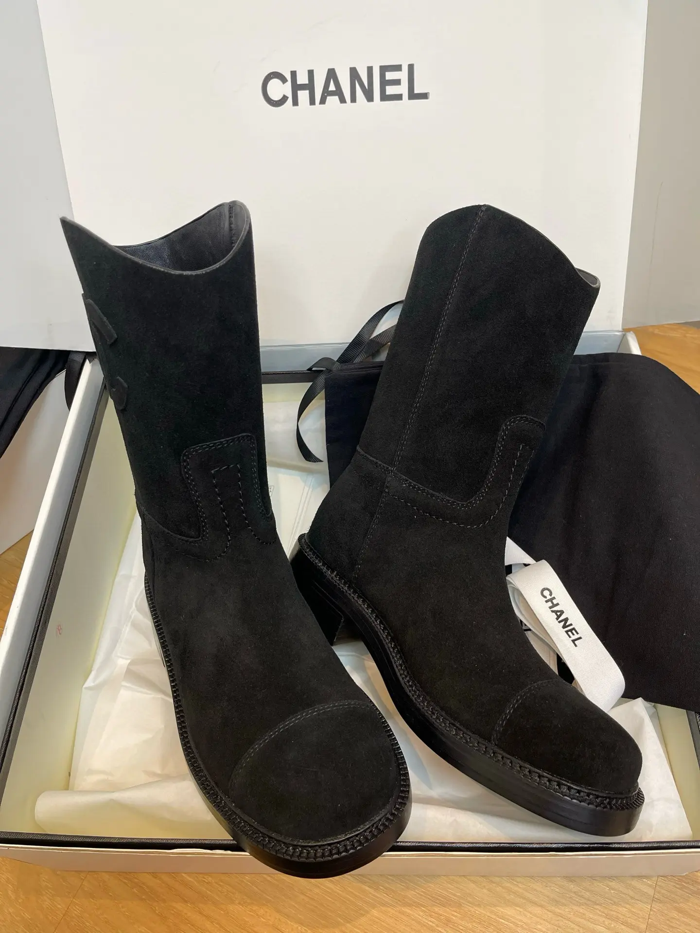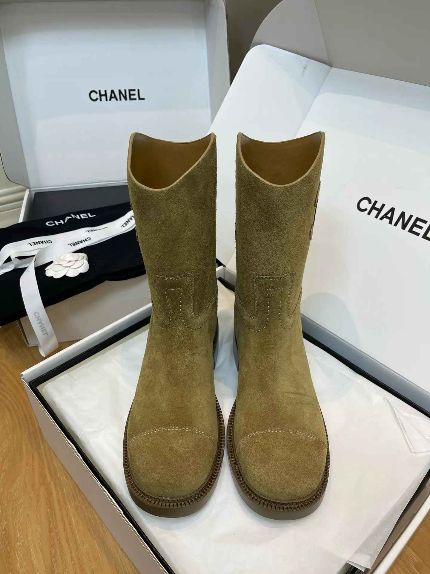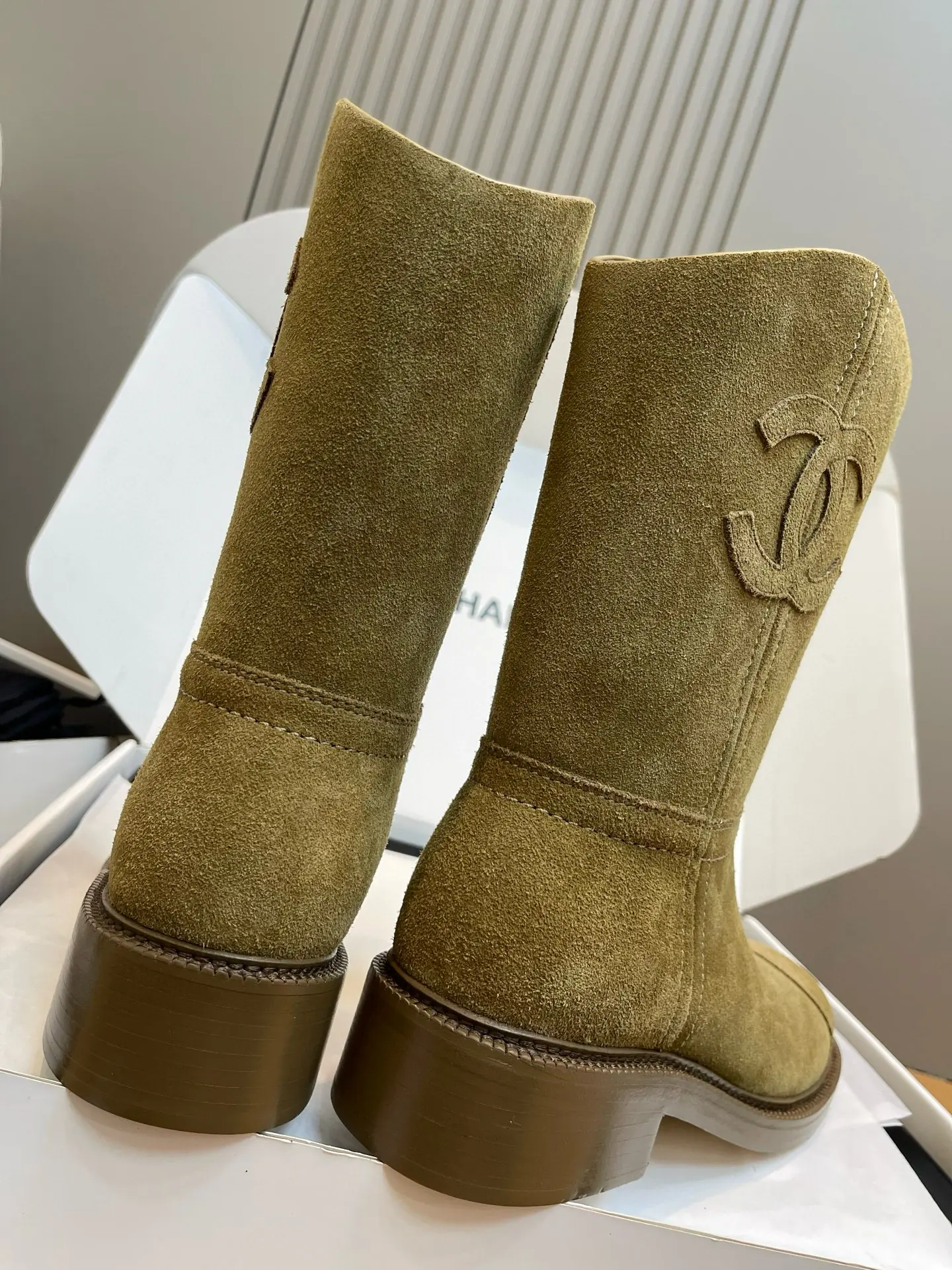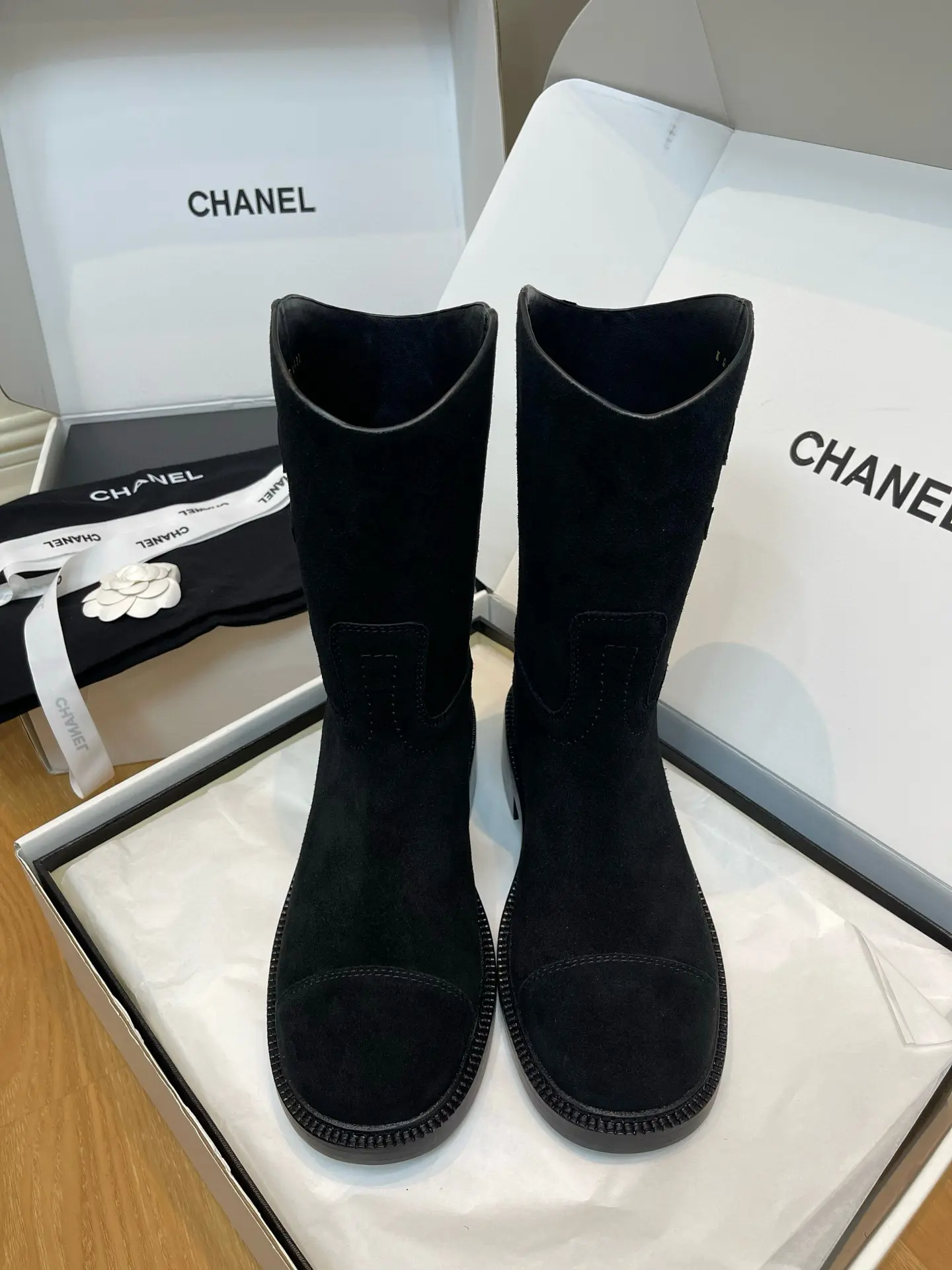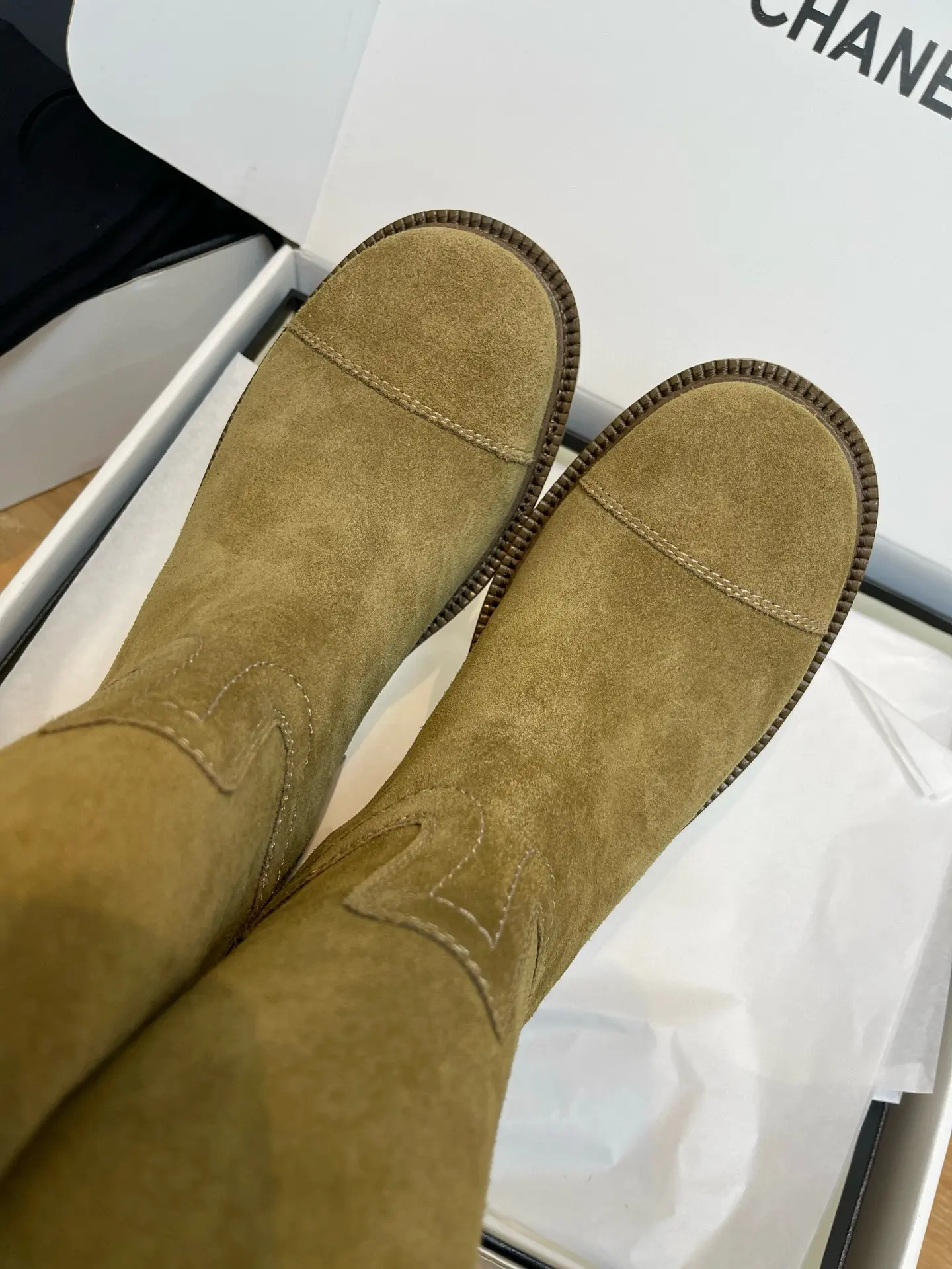 High-quality suede Chanel riding boots for autumn/winter, available in both knee-high and ankle versions.