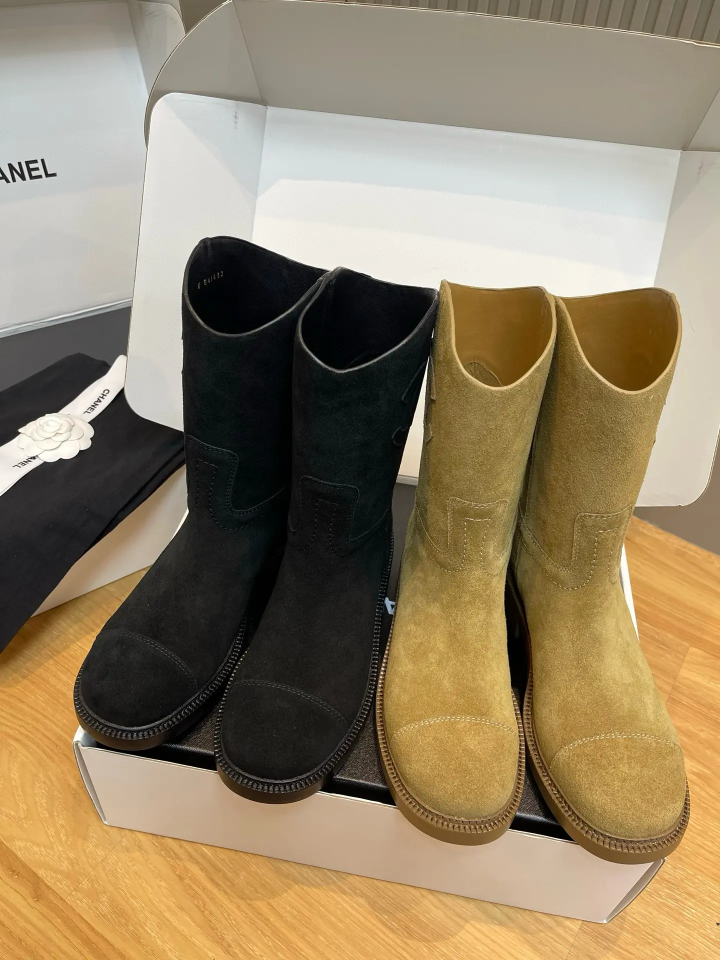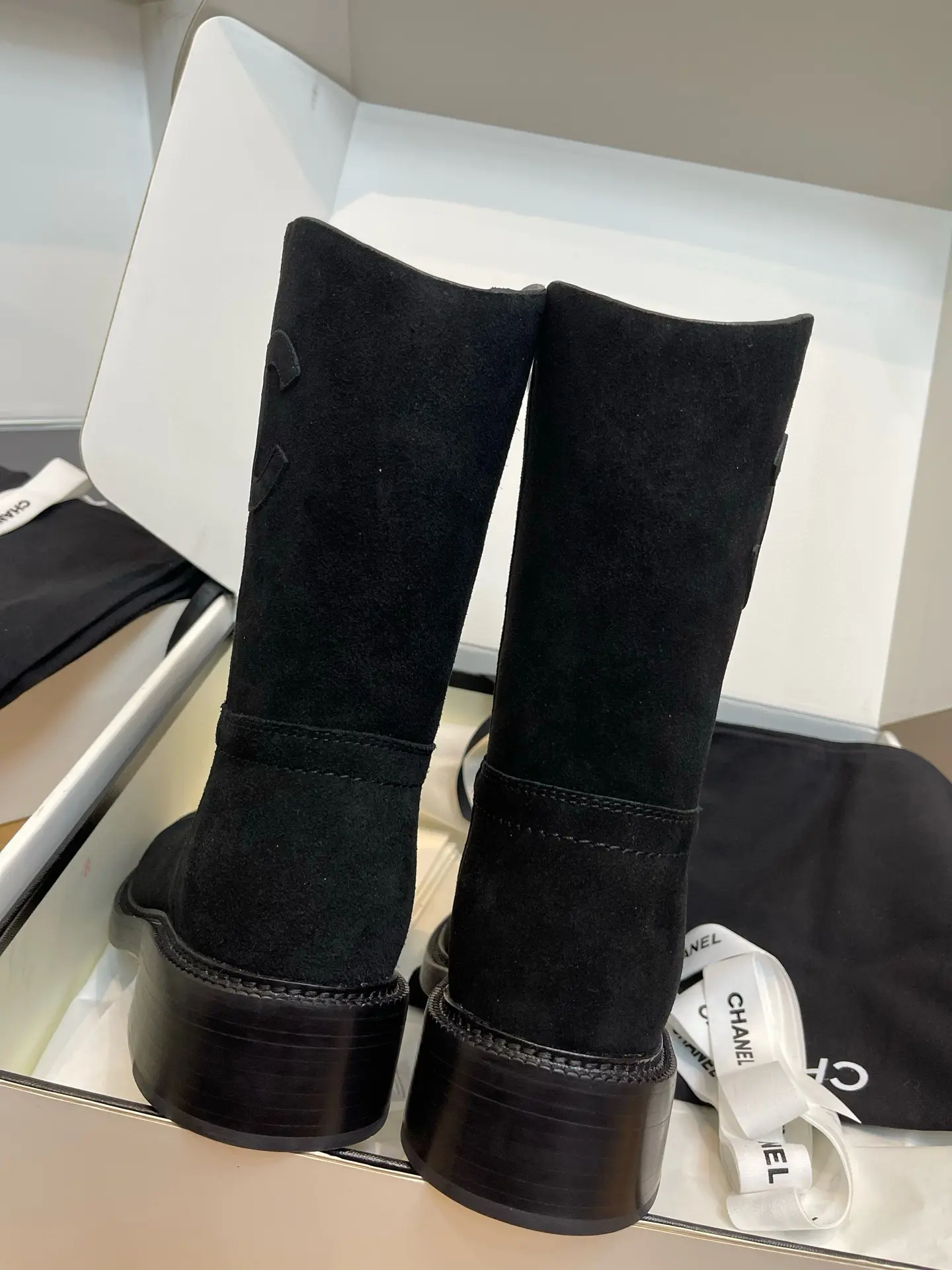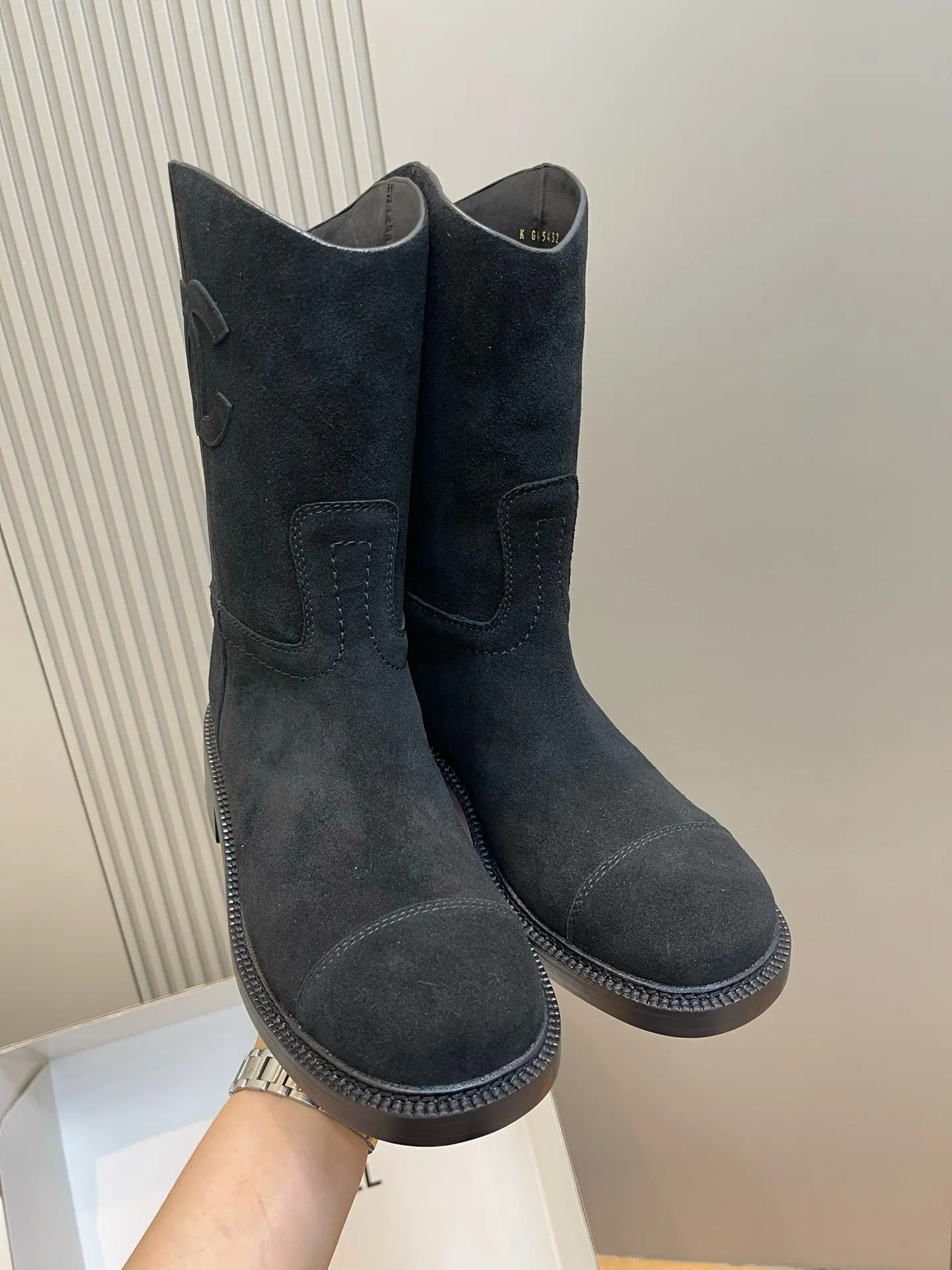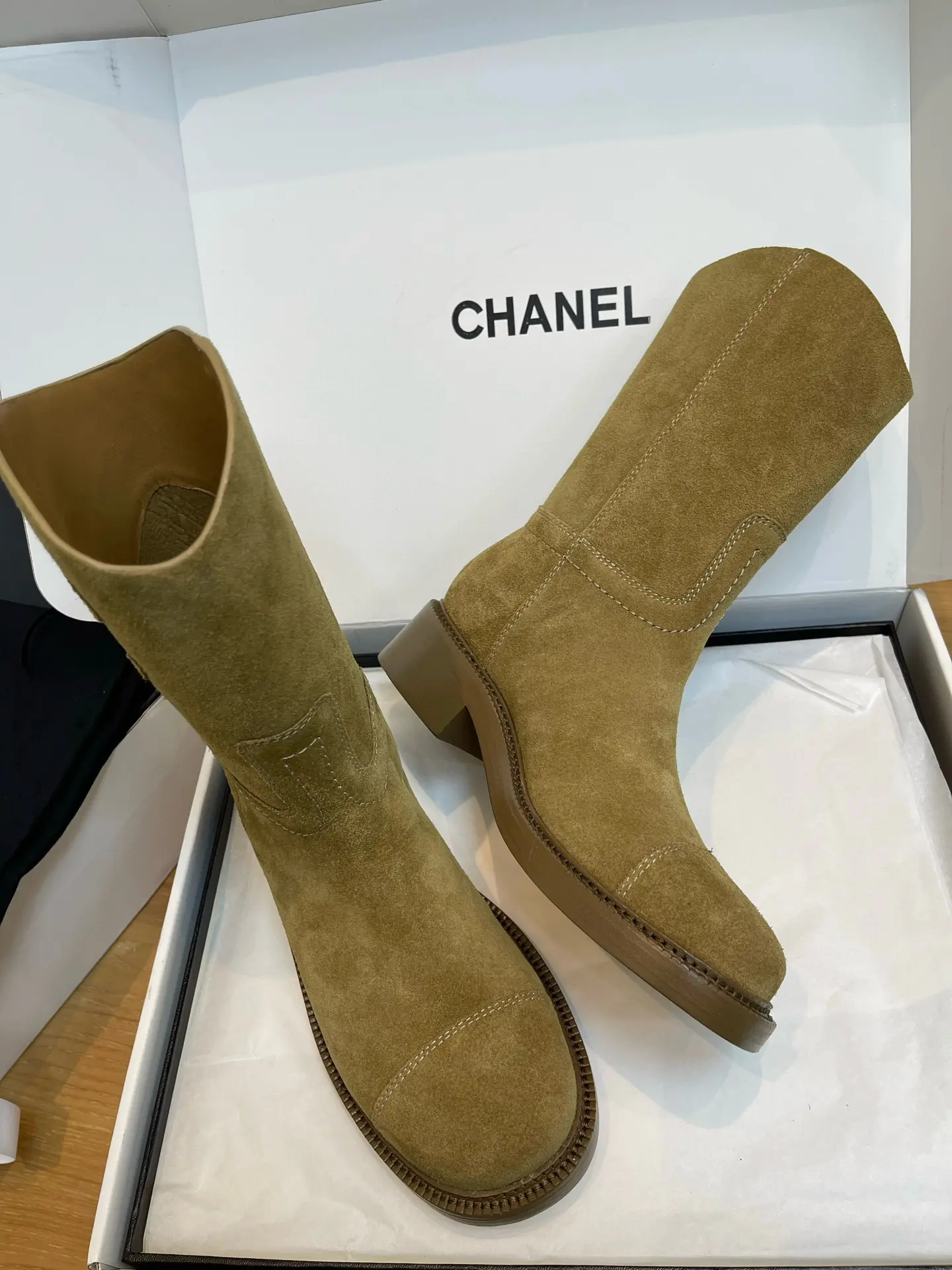 High-quality suede Chanel riding boots for autumn/winter, available in both knee-high and ankle versions.