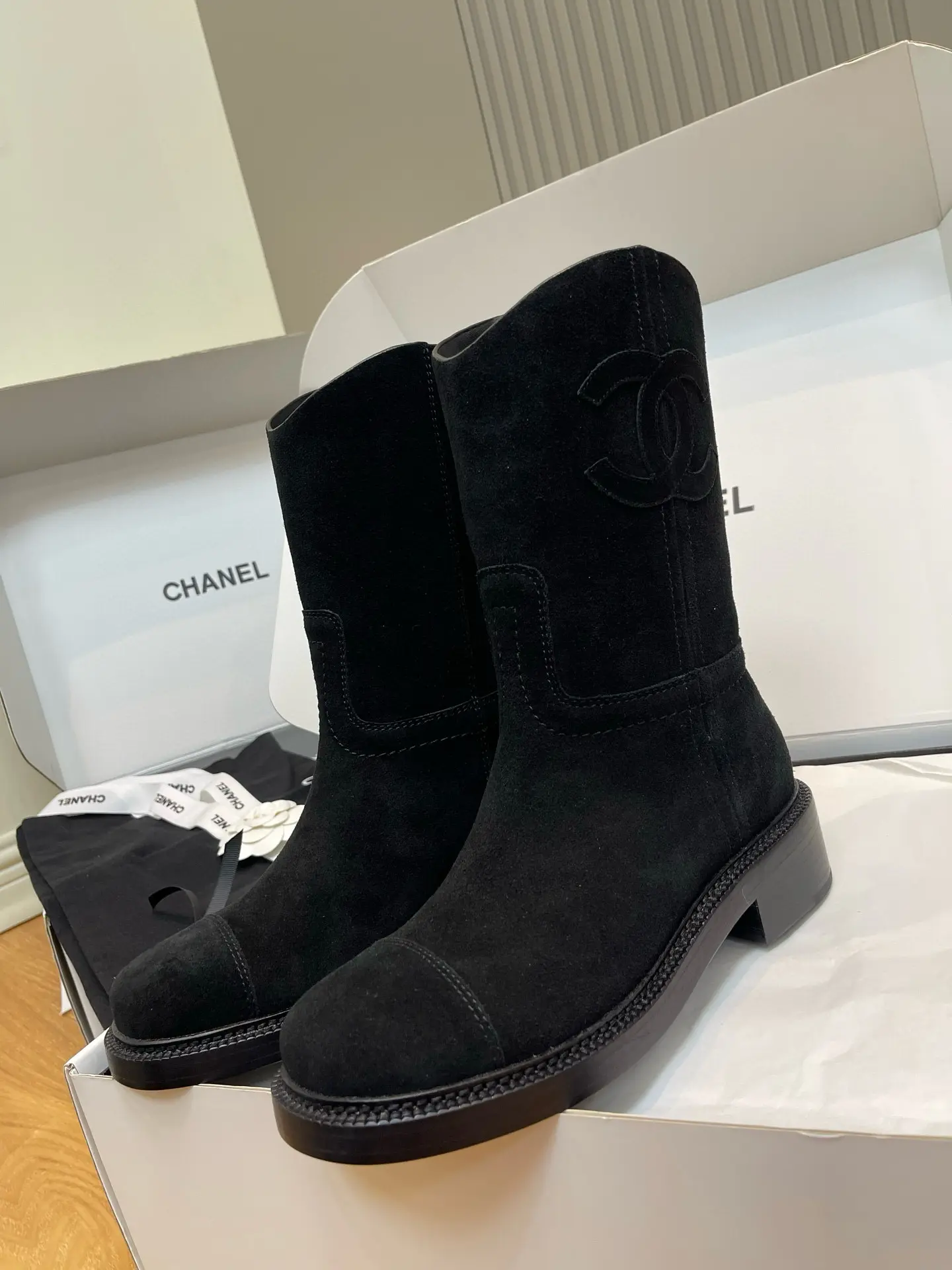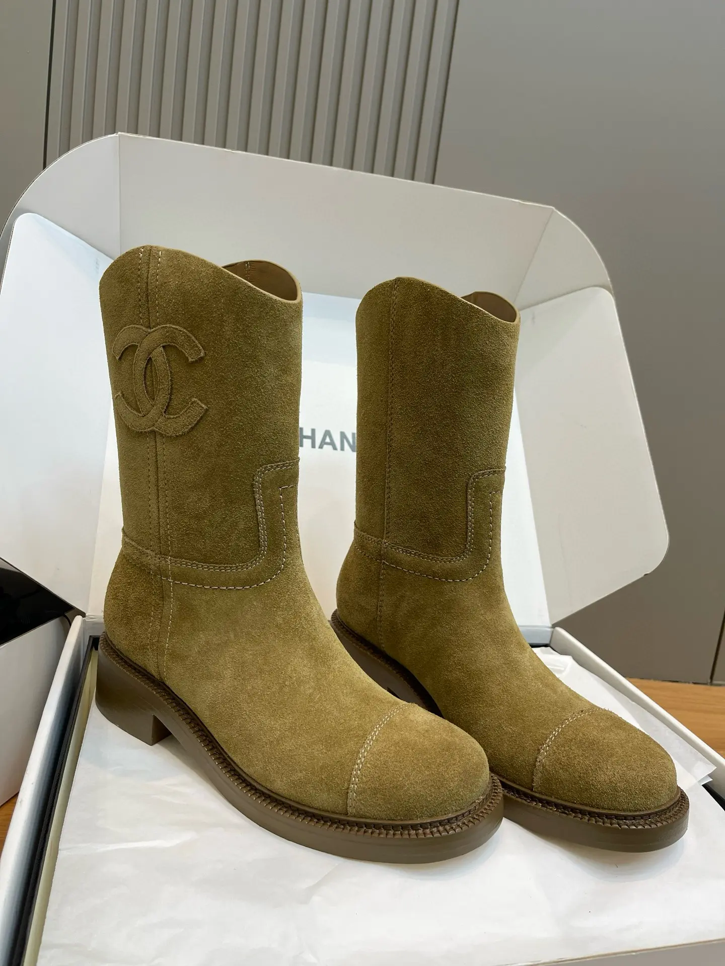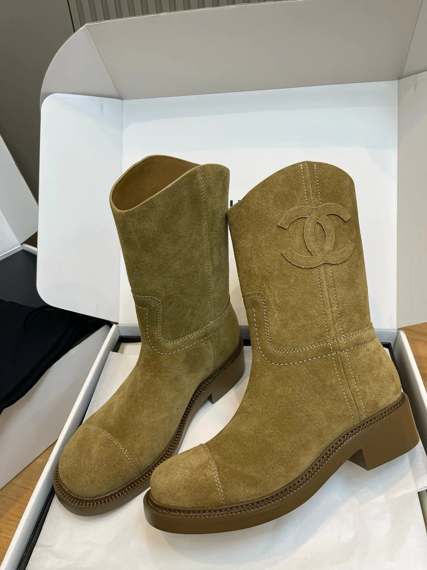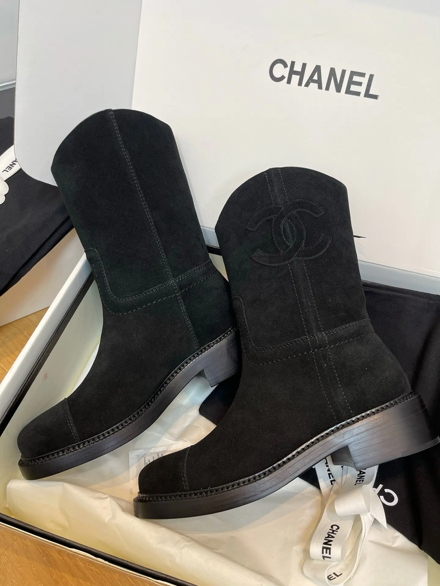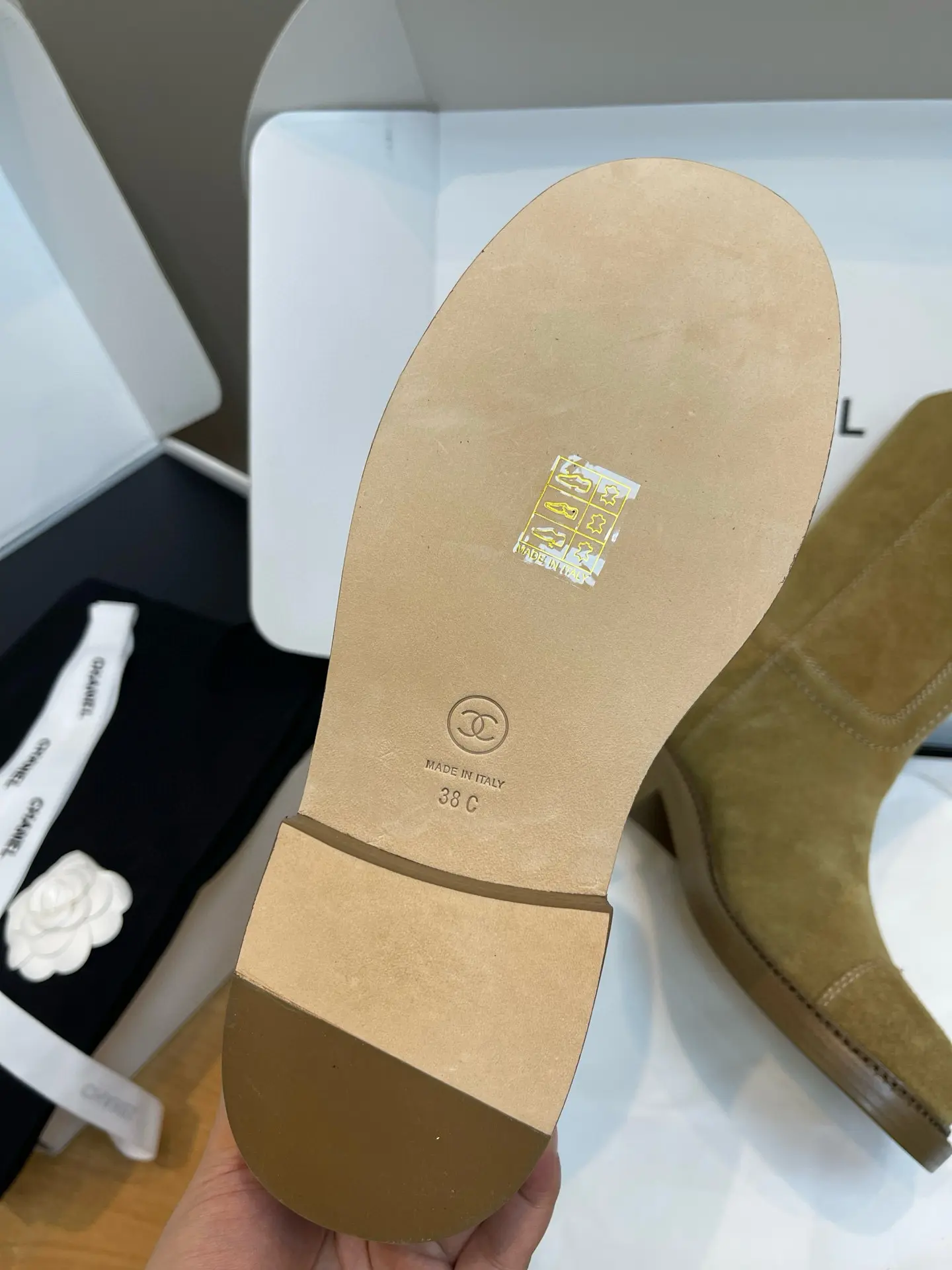 High-quality suede Chanel riding boots for autumn/winter, available in both knee-high and ankle versions.