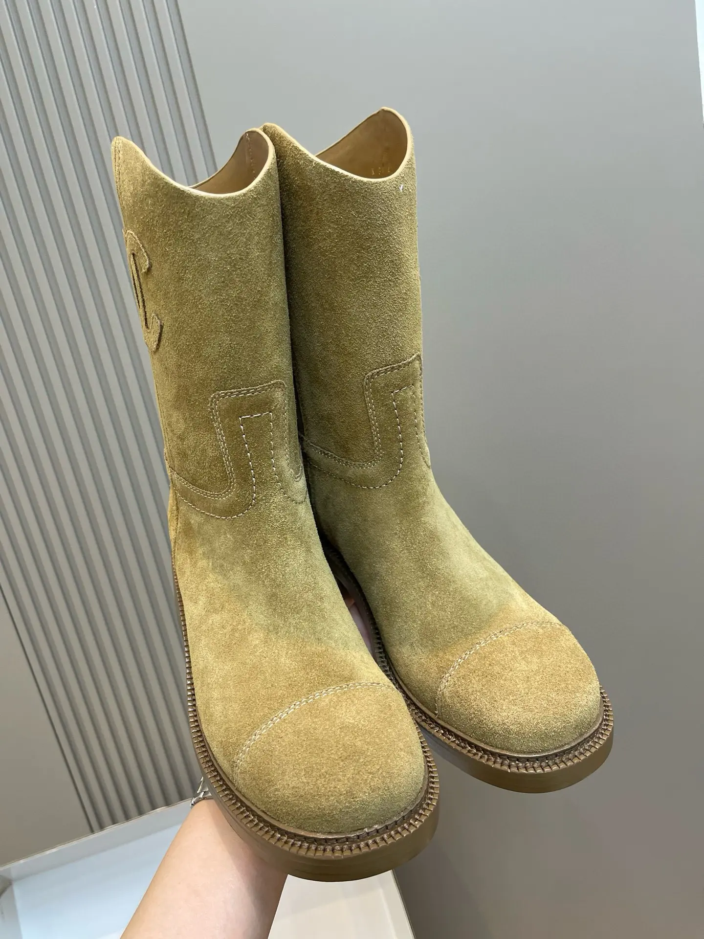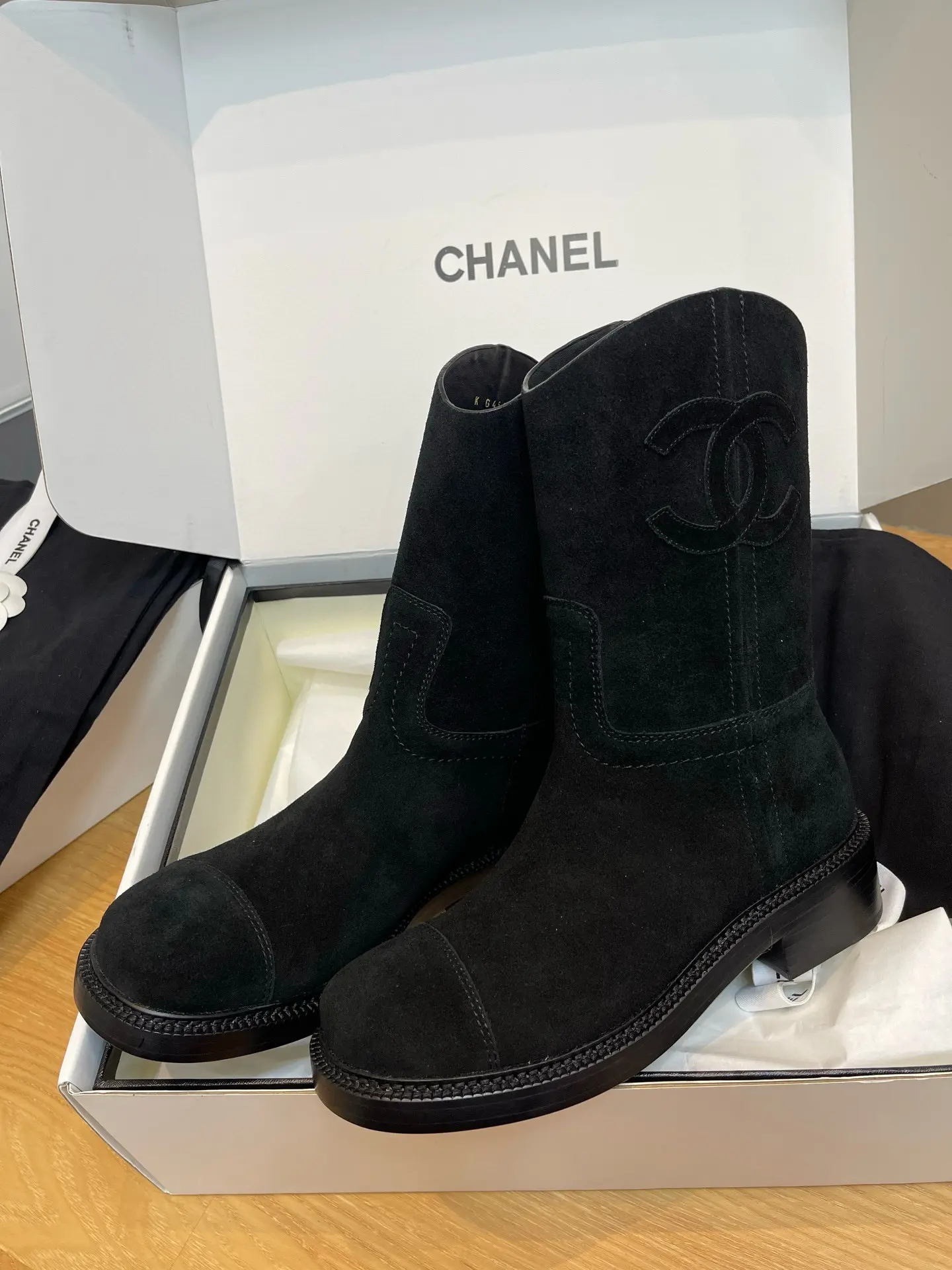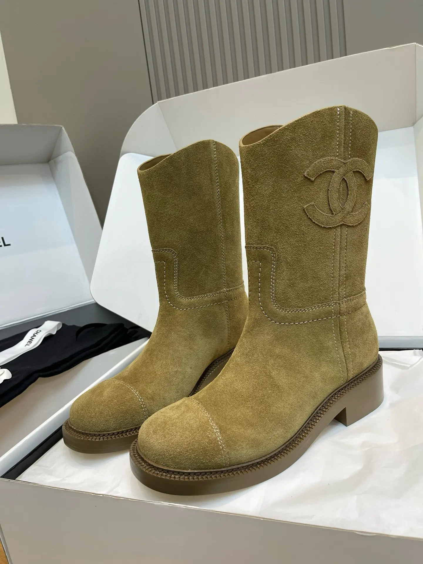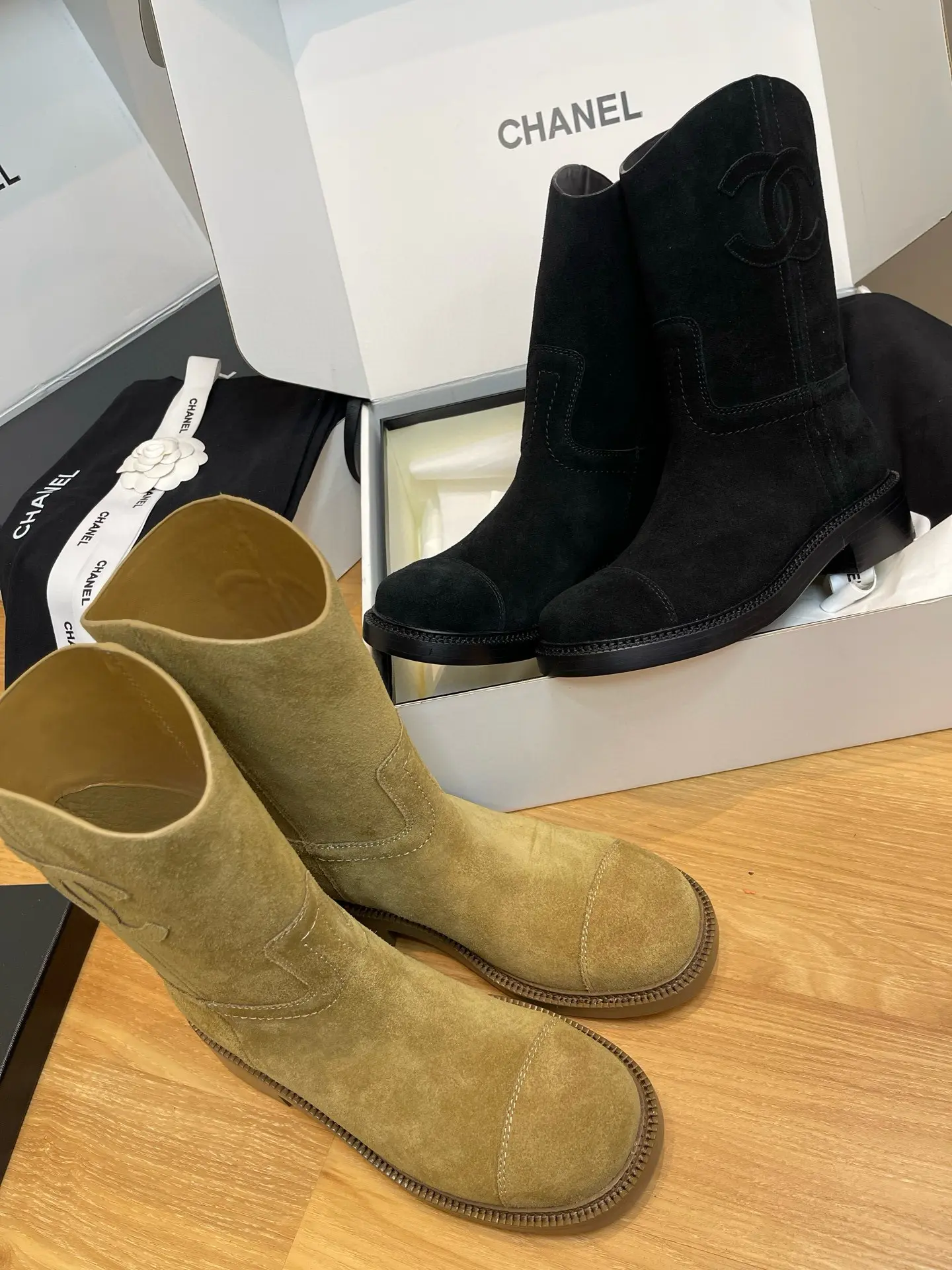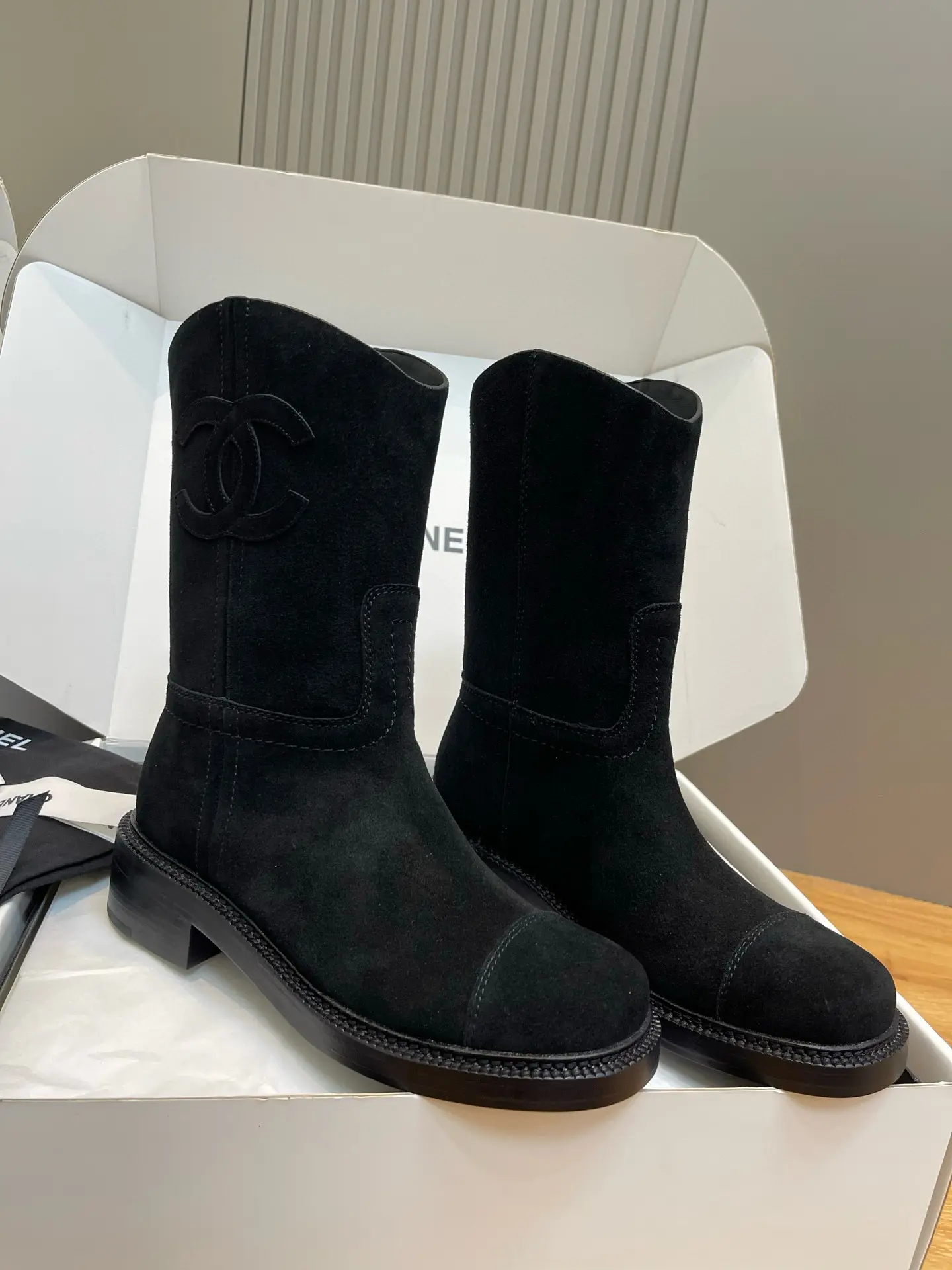 High-quality suede Chanel riding boots for autumn/winter, available in both knee-high and ankle versions.