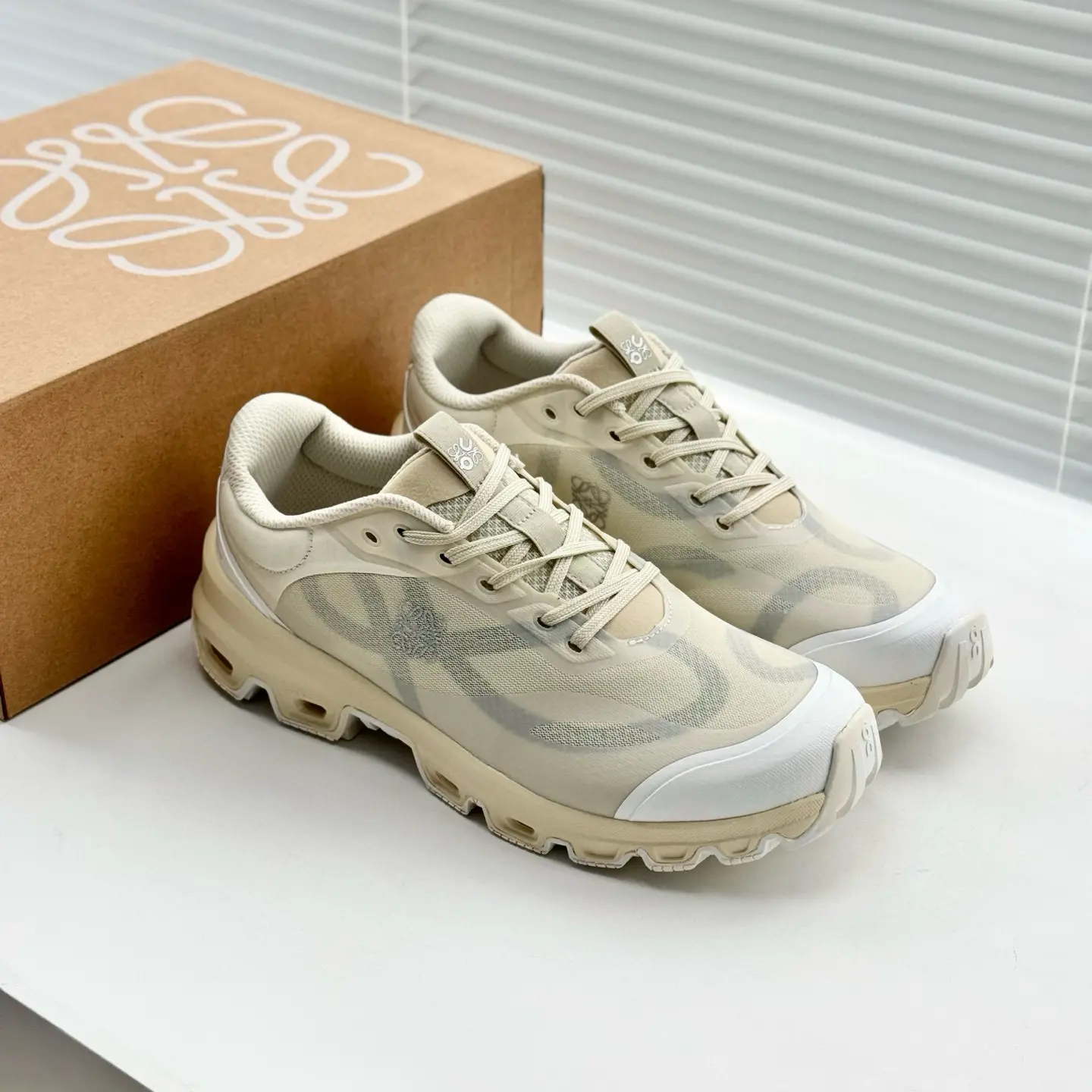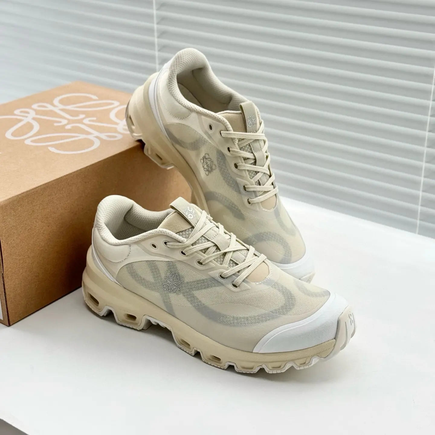 ✔ Co-Branded Design – A fusion of LOEWE’s luxury craftsmanship and On’s innovative sportswear technology.