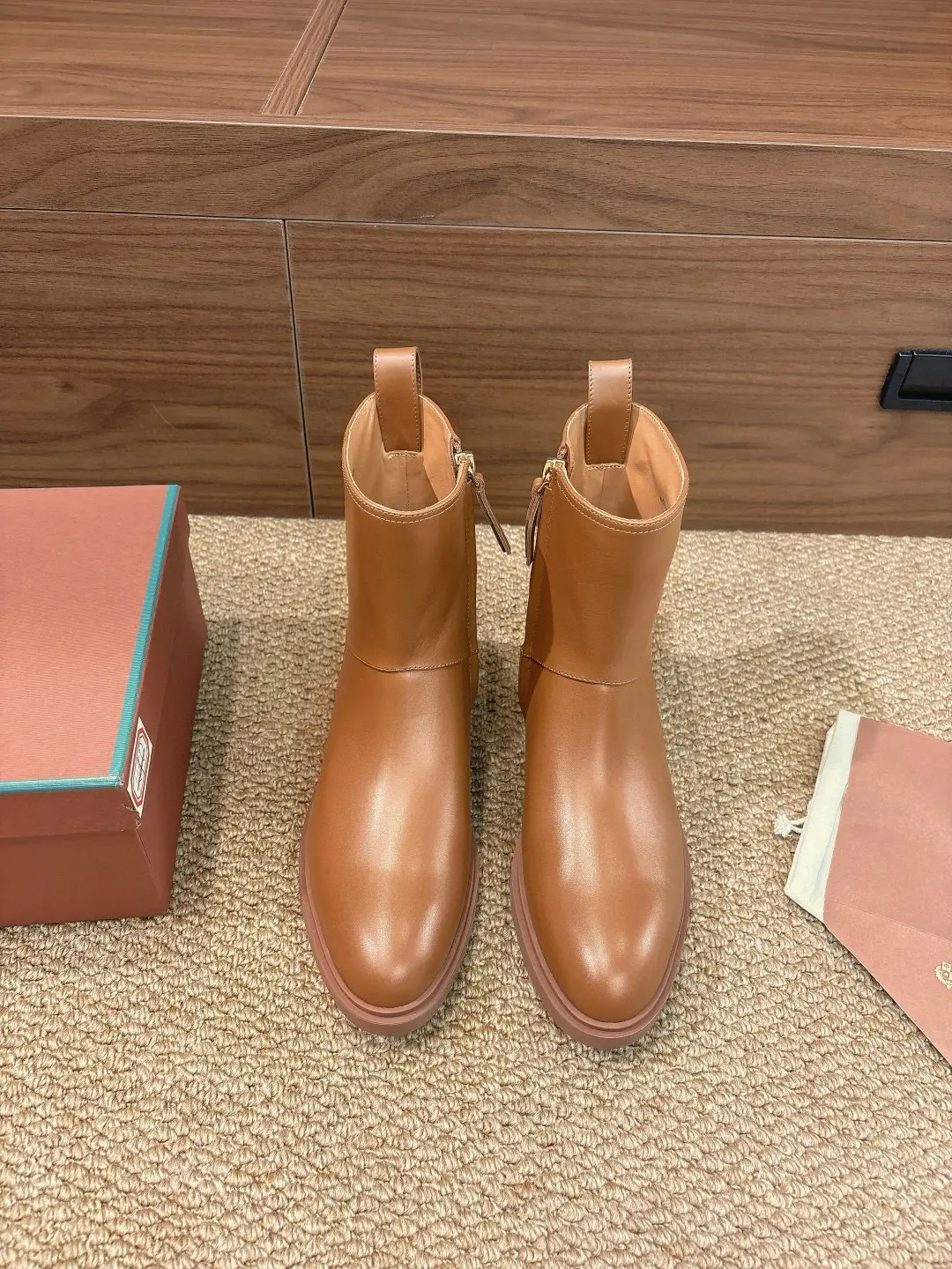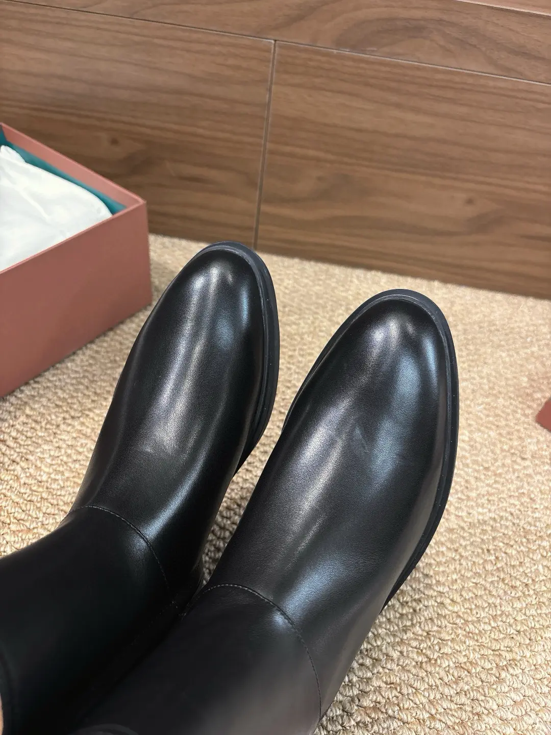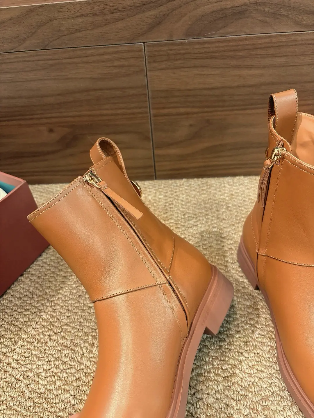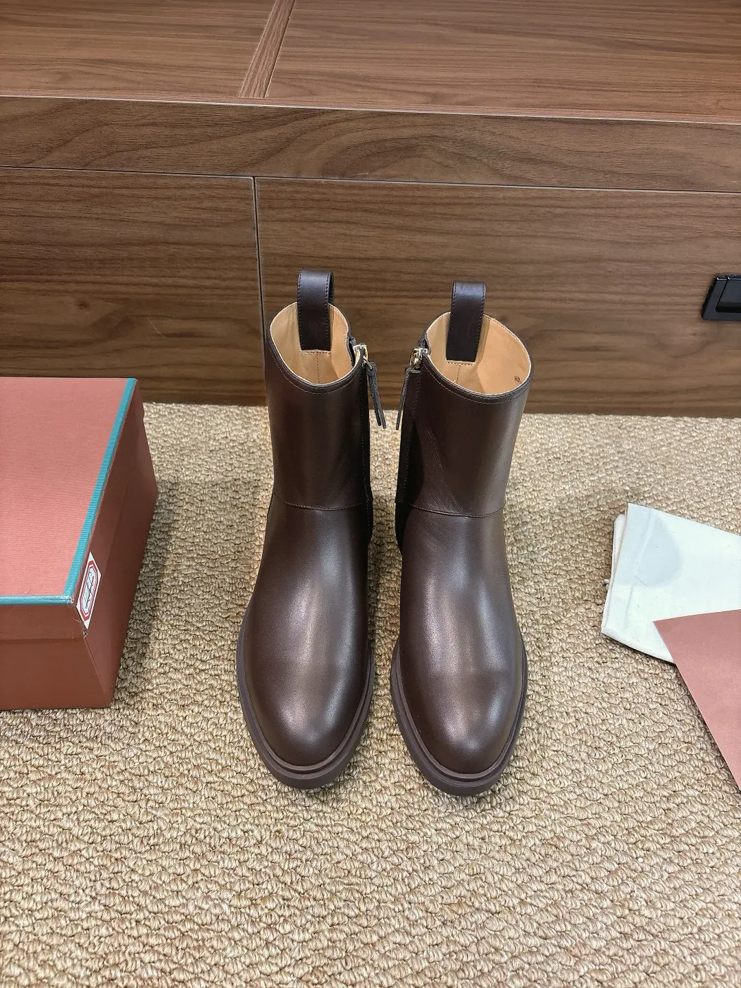 The soul of a good pair of boots lies in the toe box! We adhere to the principle of stylish without being bulky: the rounded, full almond toe is both elegant and minimalist. It also conforms to your foot shape without feeling constricted, creating a slimming effect without bulk. The calfskin leather has a lustrous sheen, and the quality shines through.