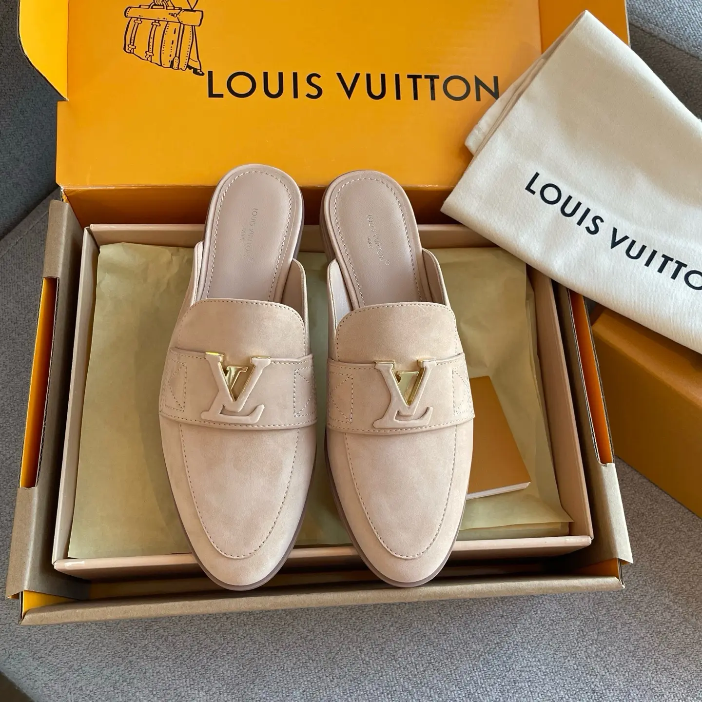 These LV Nude Pink Suede Slippers sound like the epitome of understated luxury and comfort. You’ve described them beautifully!