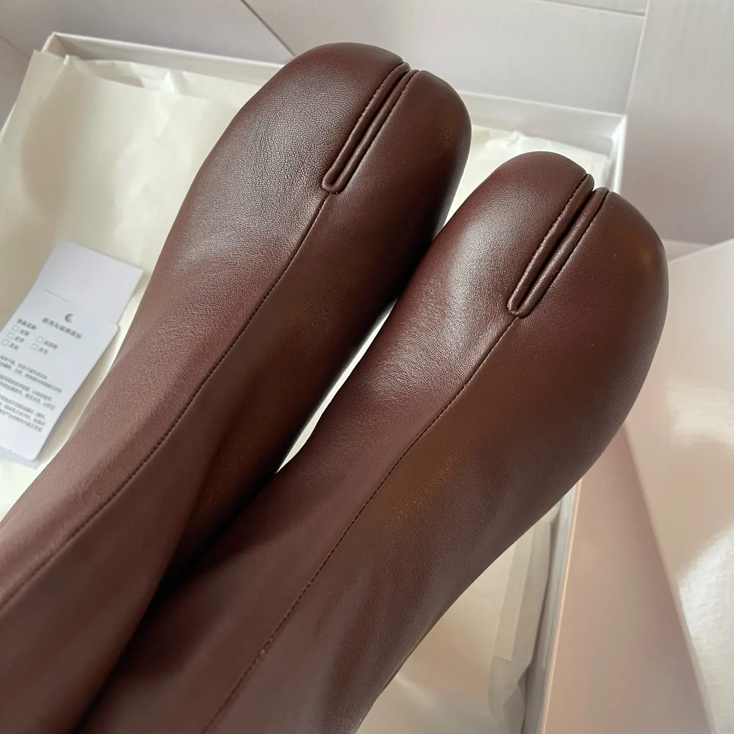 The search results do contain several MM6 Maison Margiela and Maison Margiela footwear items, including split-toe (Tabi) designs, but none perfectly align with your detailed description. Here’s what I found related to split-toe styles:
