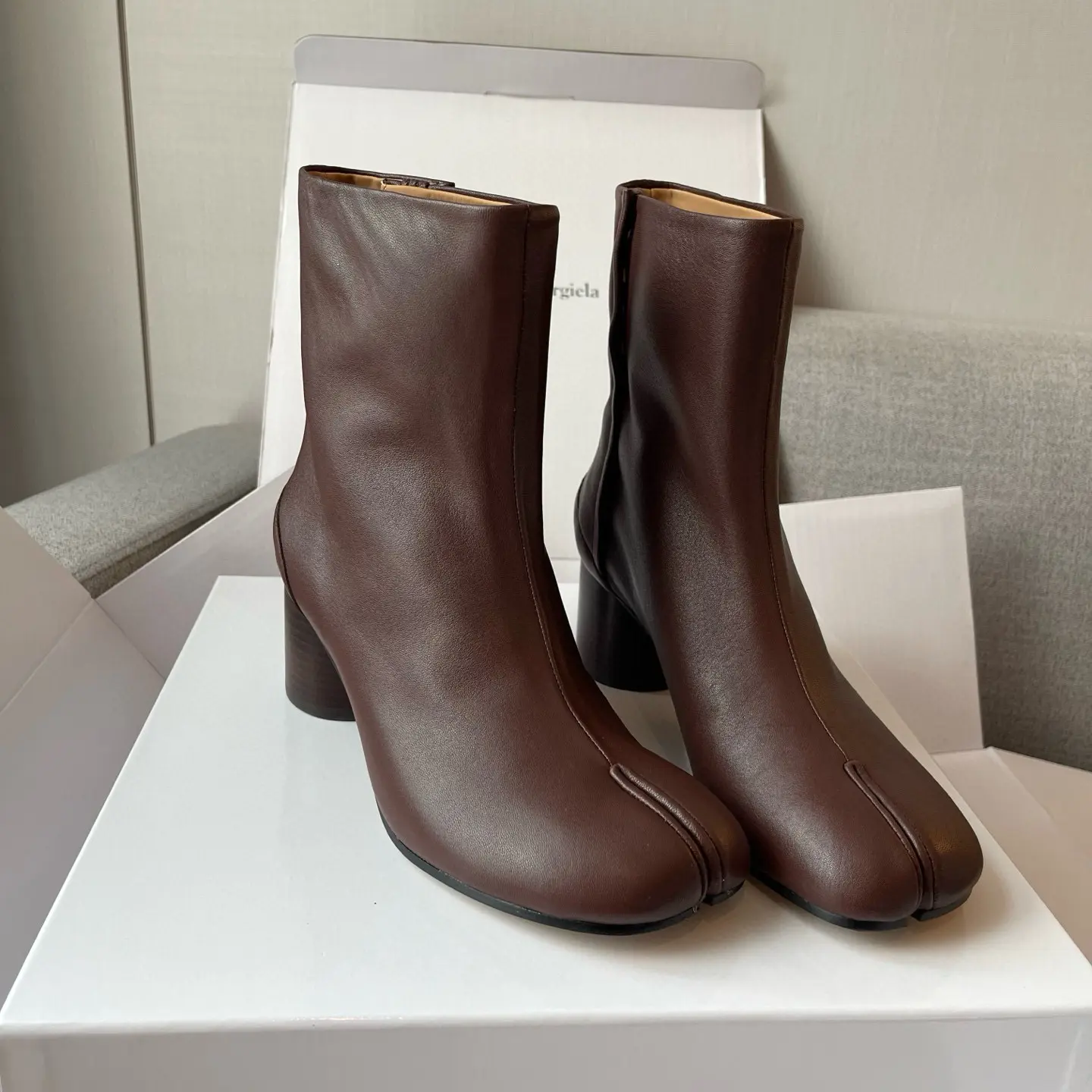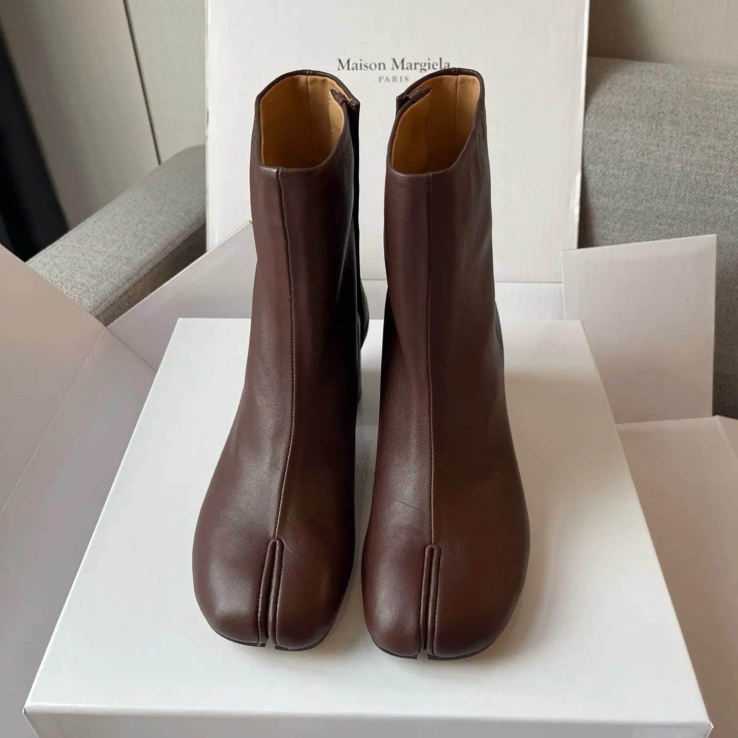 Maison Margiela MM6 split-toe ankle boots with a chunky heel.
