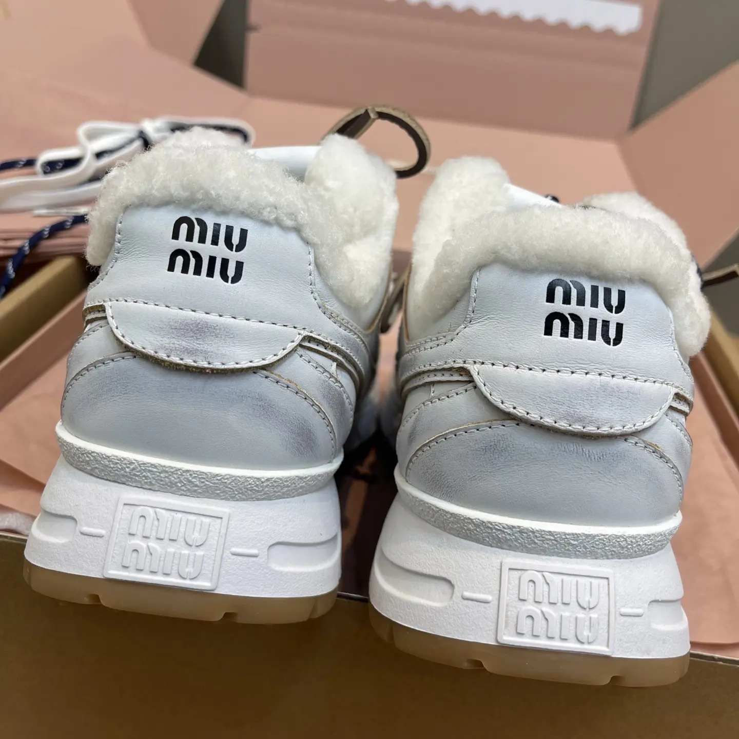 Product Title: [HOT LAUNCH] Miu Miu x New Balance Collaborative Platform Sneaker in Distressed White