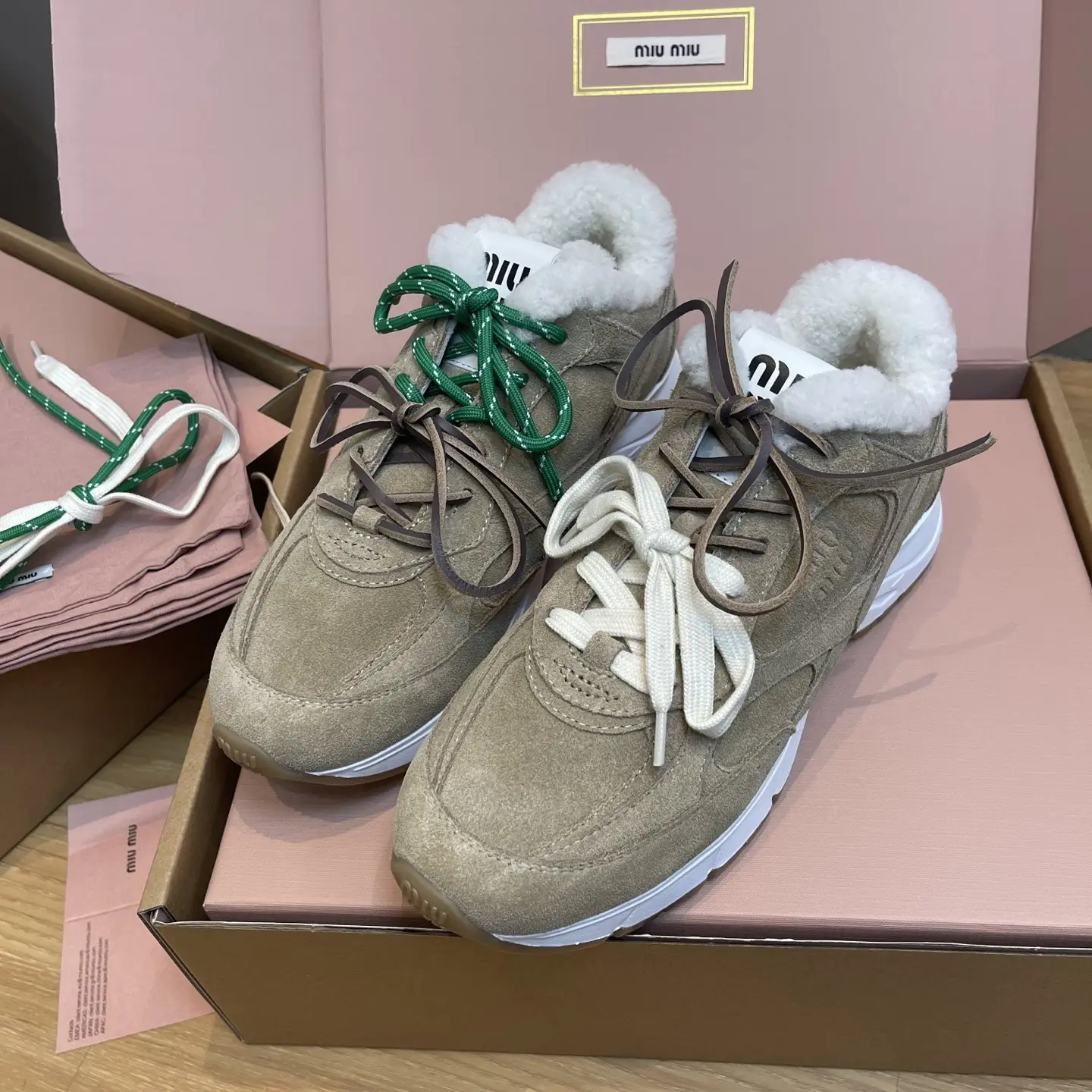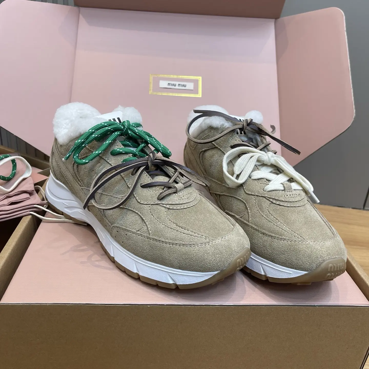 The wait is over! Following the massive success of their first collaboration, Miu Miu and New Balance have done it again with this brand-new platform sneaker series. Say goodbye to flat, thin-soled shoes—this design features a cleverly engineered platform sole, offering a significant height boost that’s a true blessing for our shorter fashionistas!