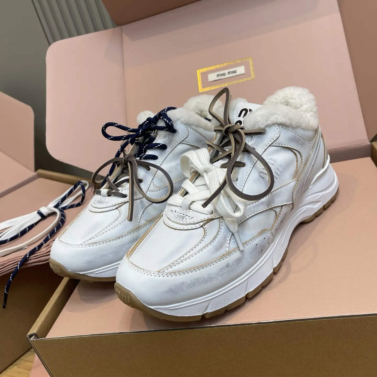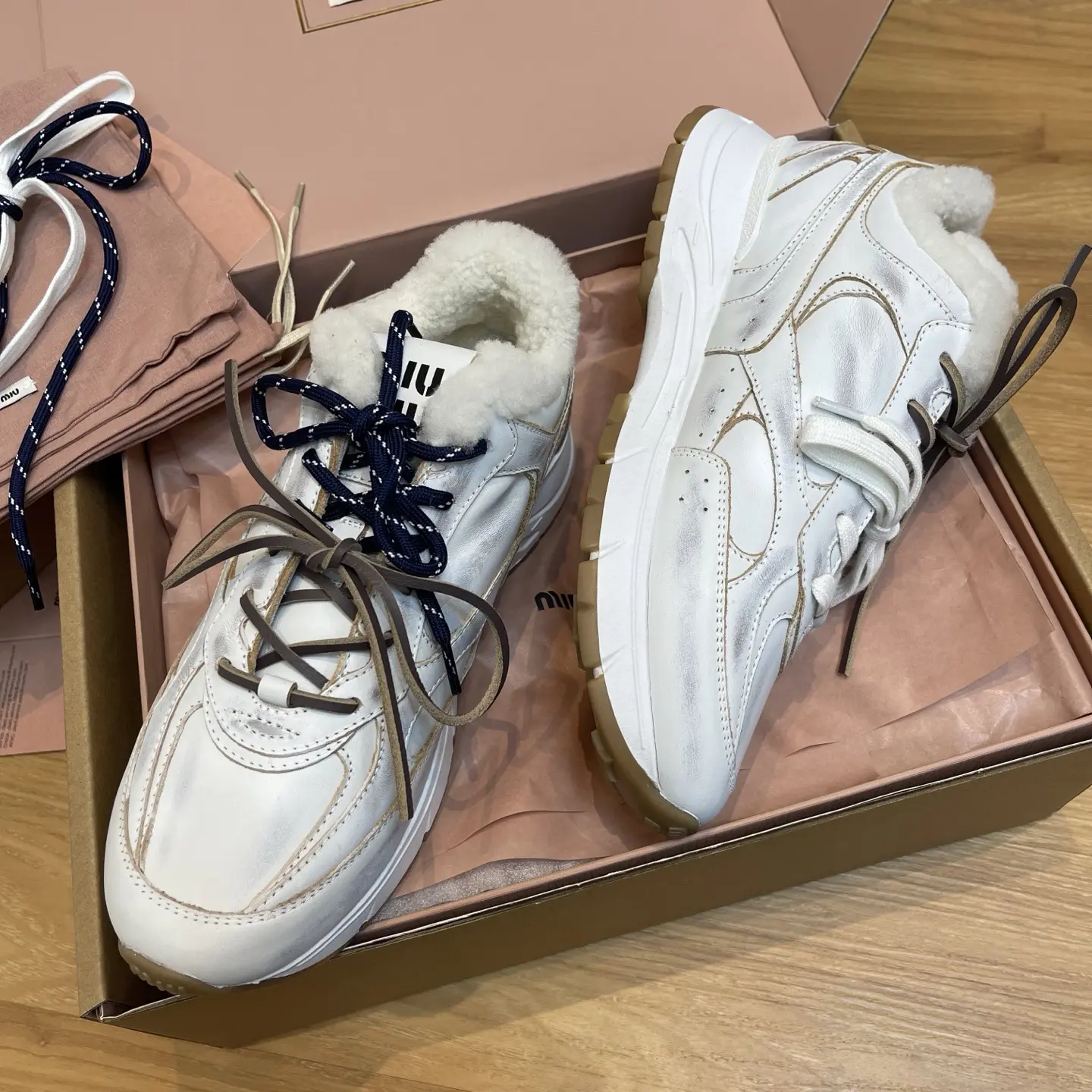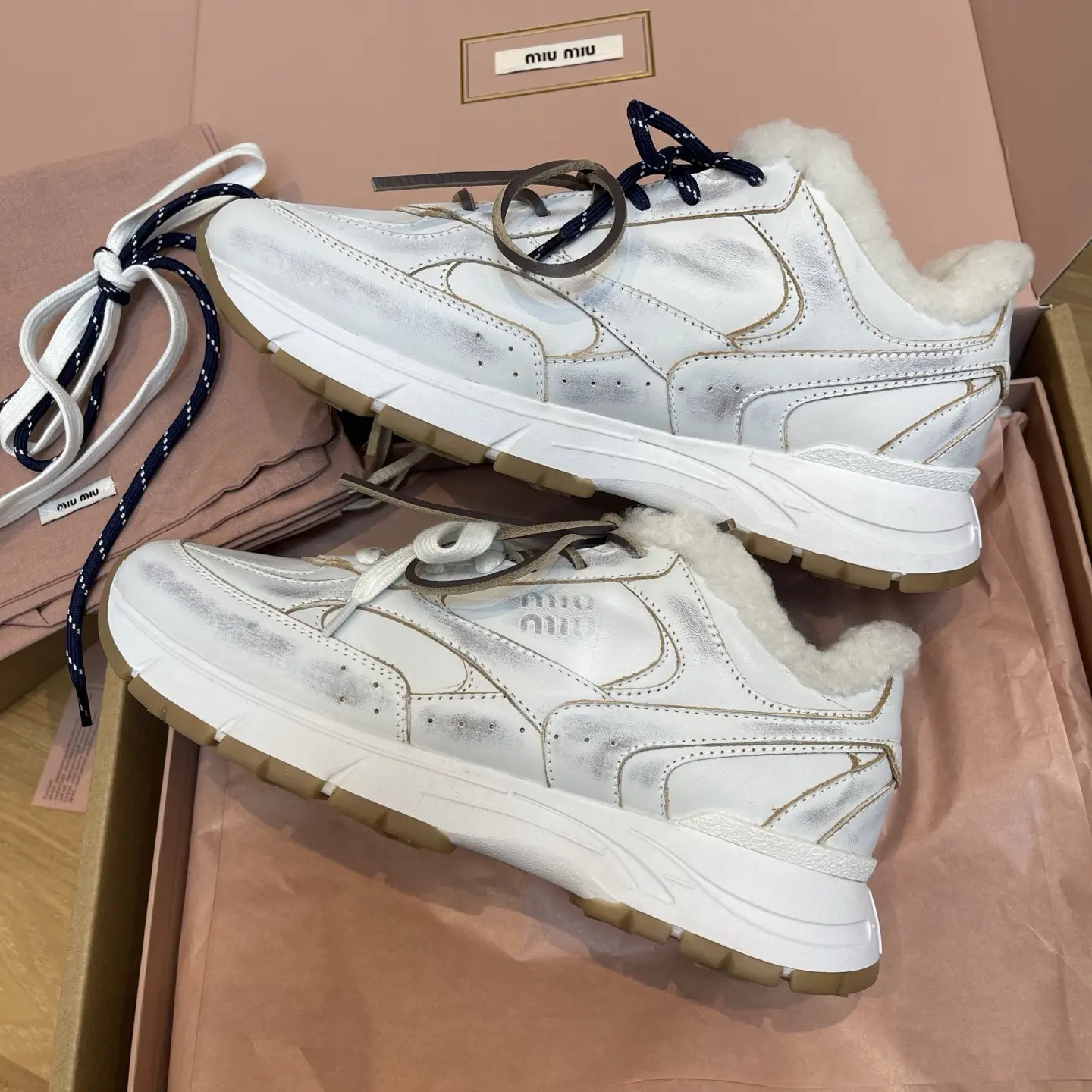 We’ve secured a pair for an exclusive try-on: they run true to size and are incredibly comfortable right out of the box. The combination of white hand-brushed leather and rich brown suede creates a perfectly imperfect, artisanal look that is utterly irresistible.