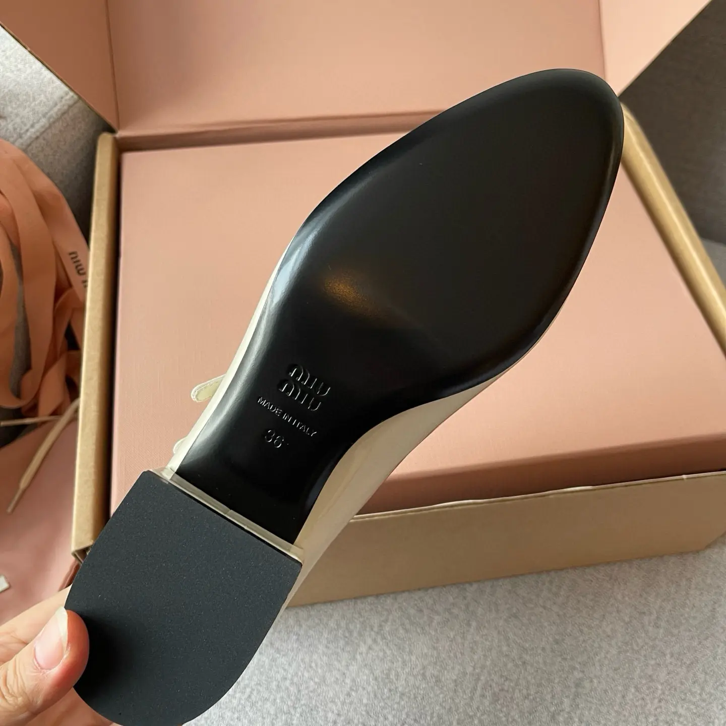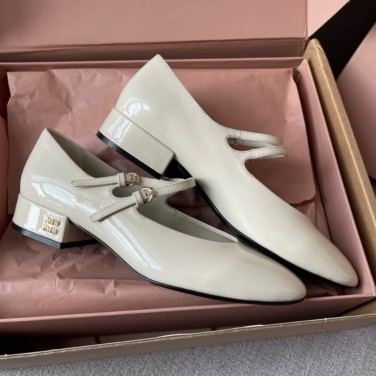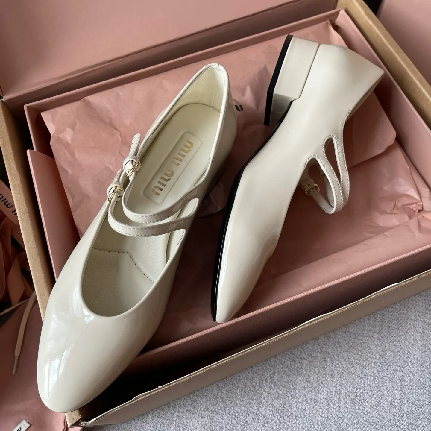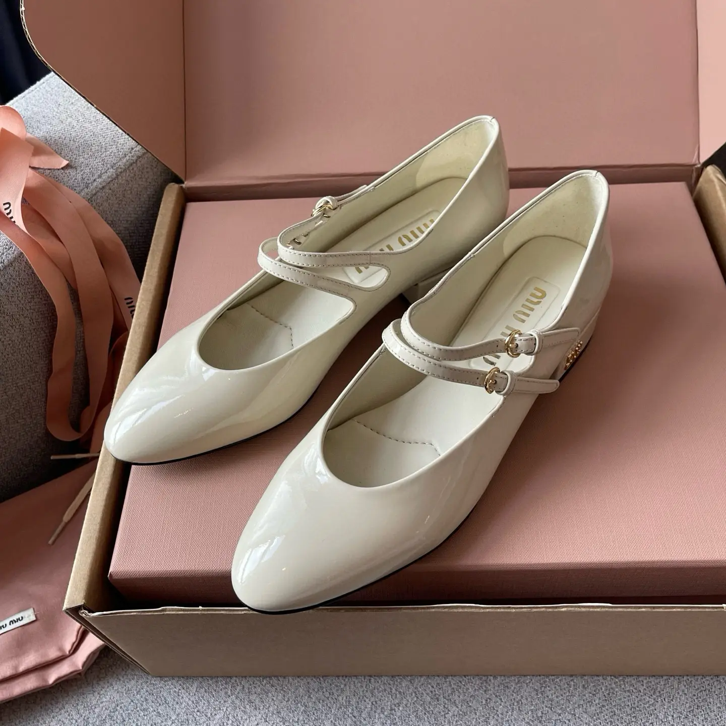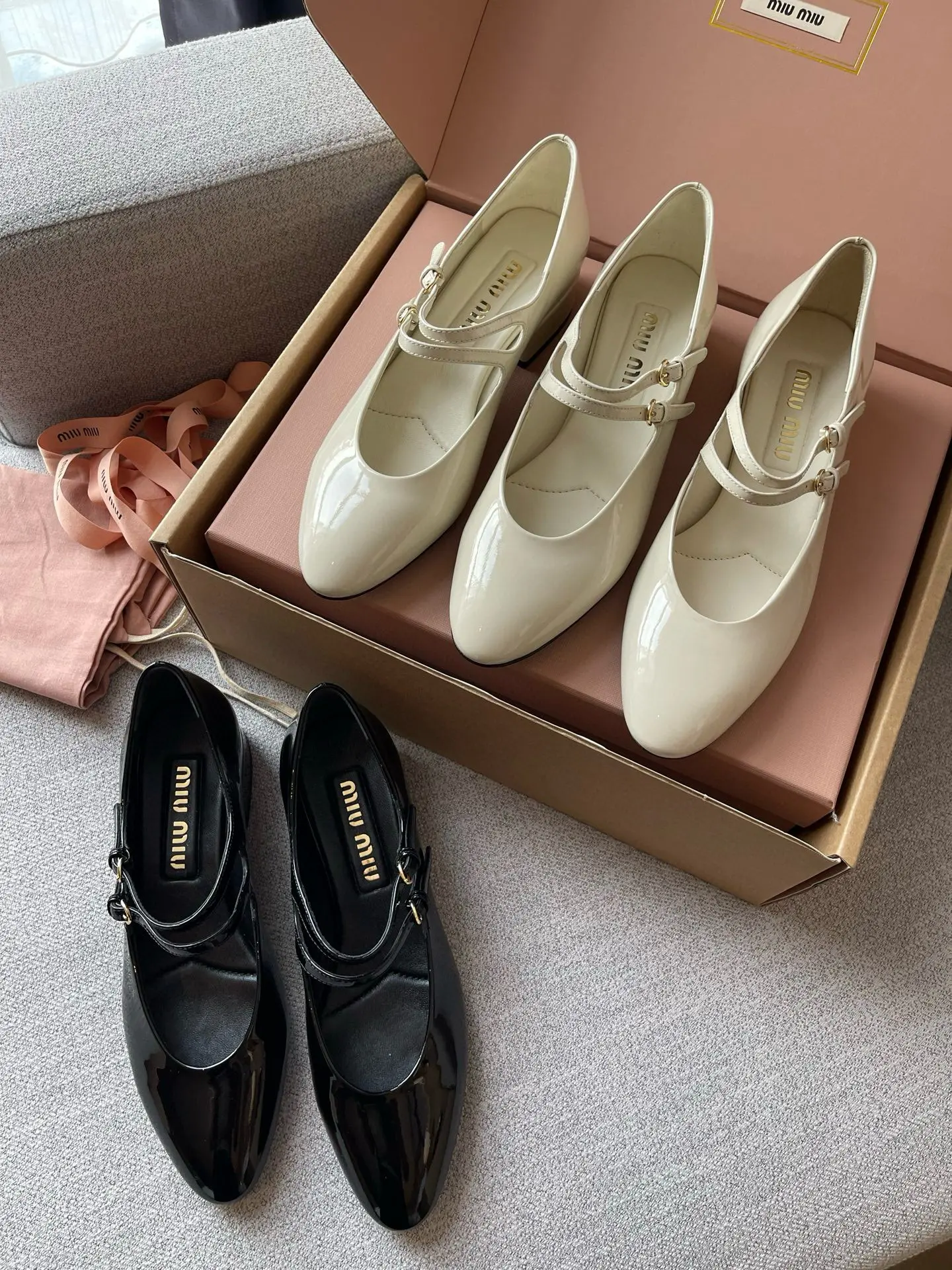 Embrace timeless elegance with Miu’s new low-heel Mary Janes. Designed with a beautifully feminine silhouette, these shoes are crafted to highlight the natural lines of your foot for a gentle and sophisticated look.