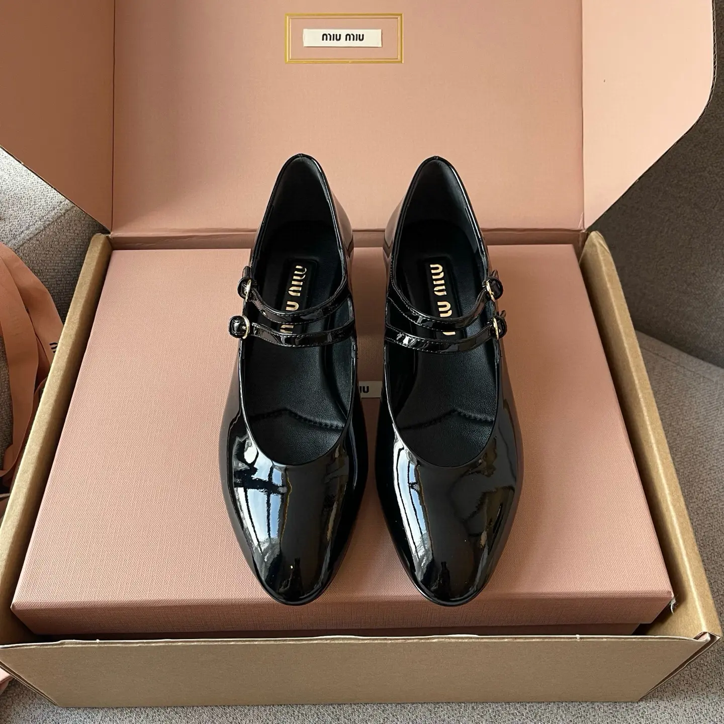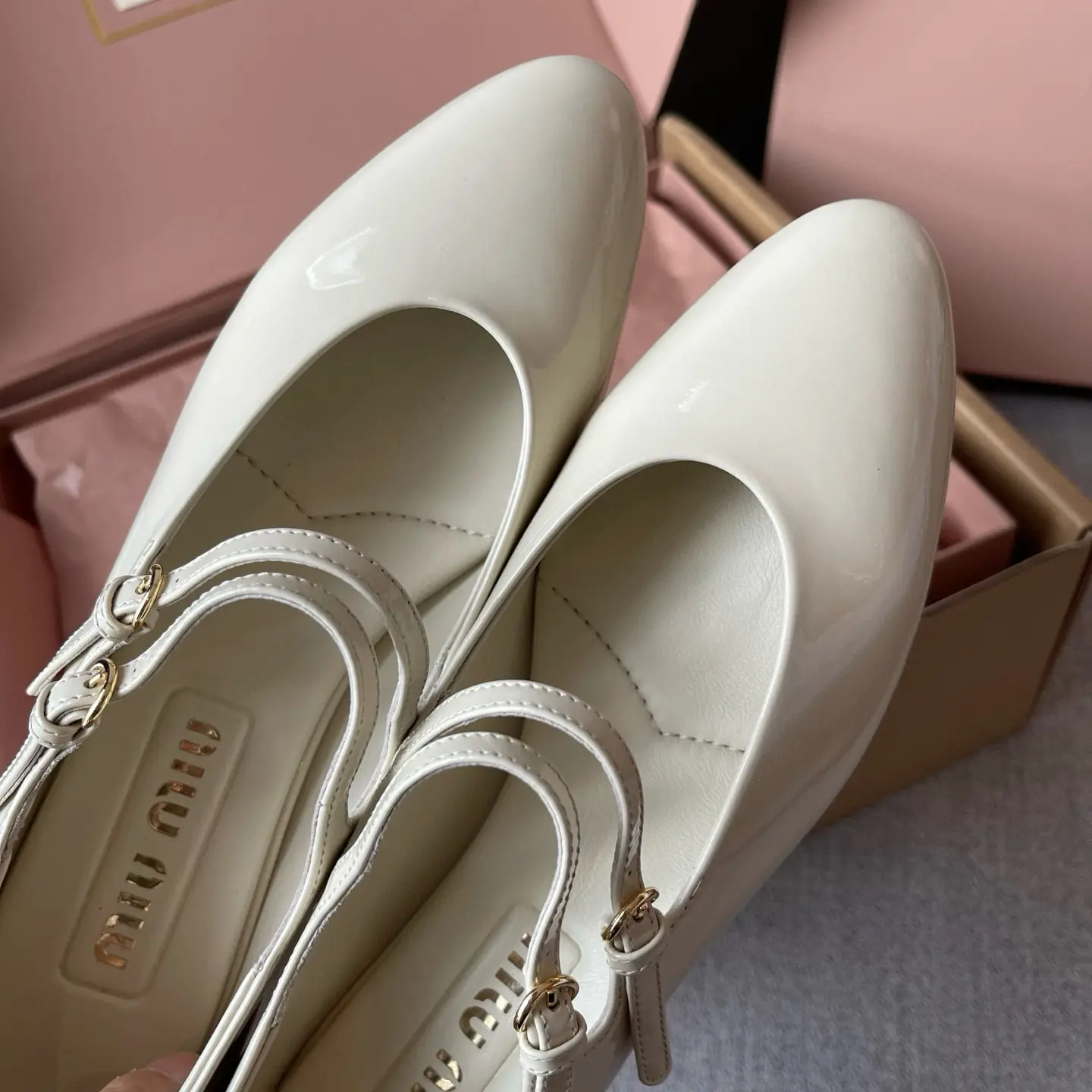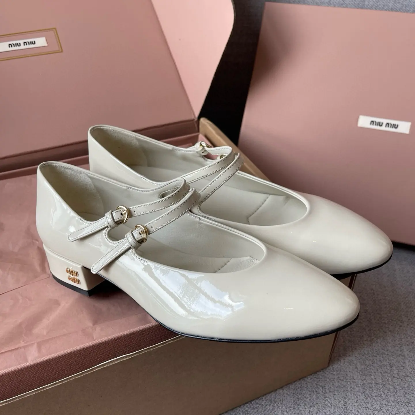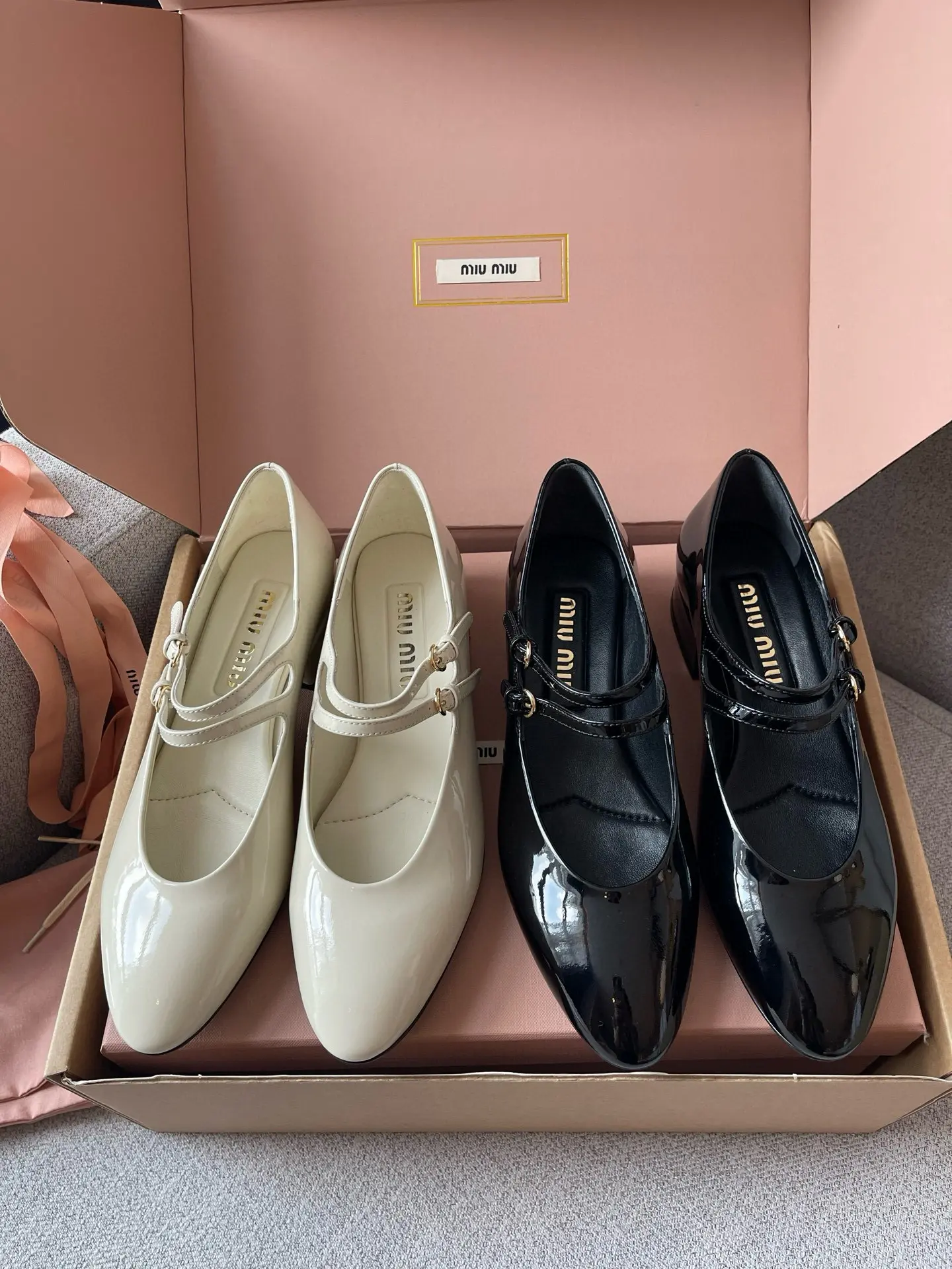Embrace timeless elegance with Miu’s new low-heel Mary Janes. Designed with a beautifully feminine silhouette, these shoes are crafted to highlight the natural lines of your foot for a gentle and sophisticated look.
