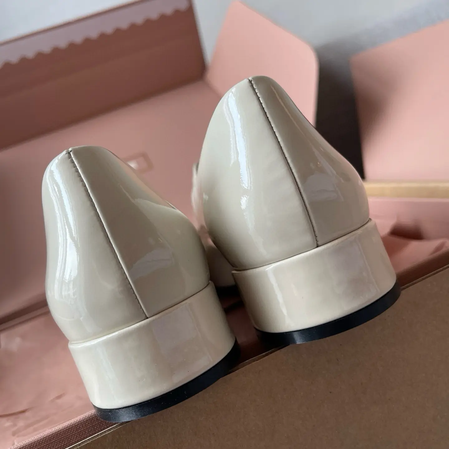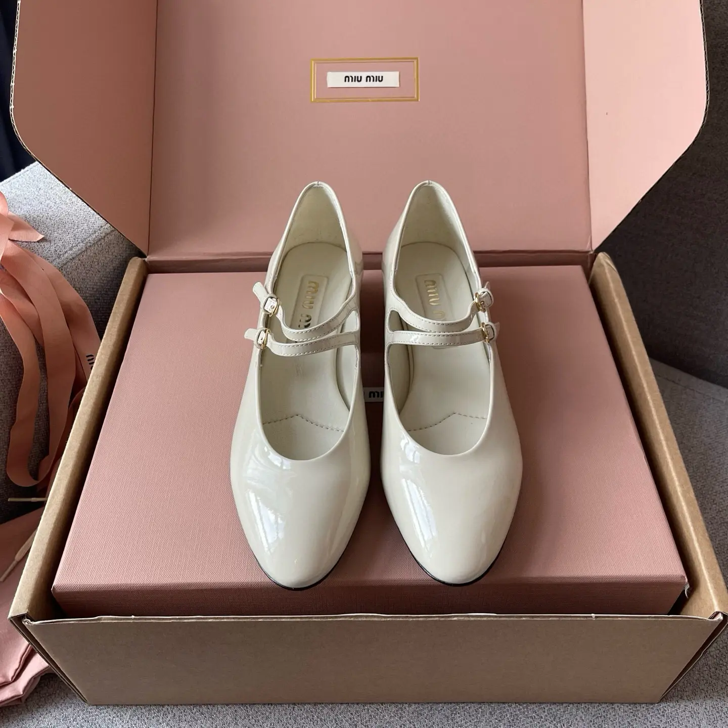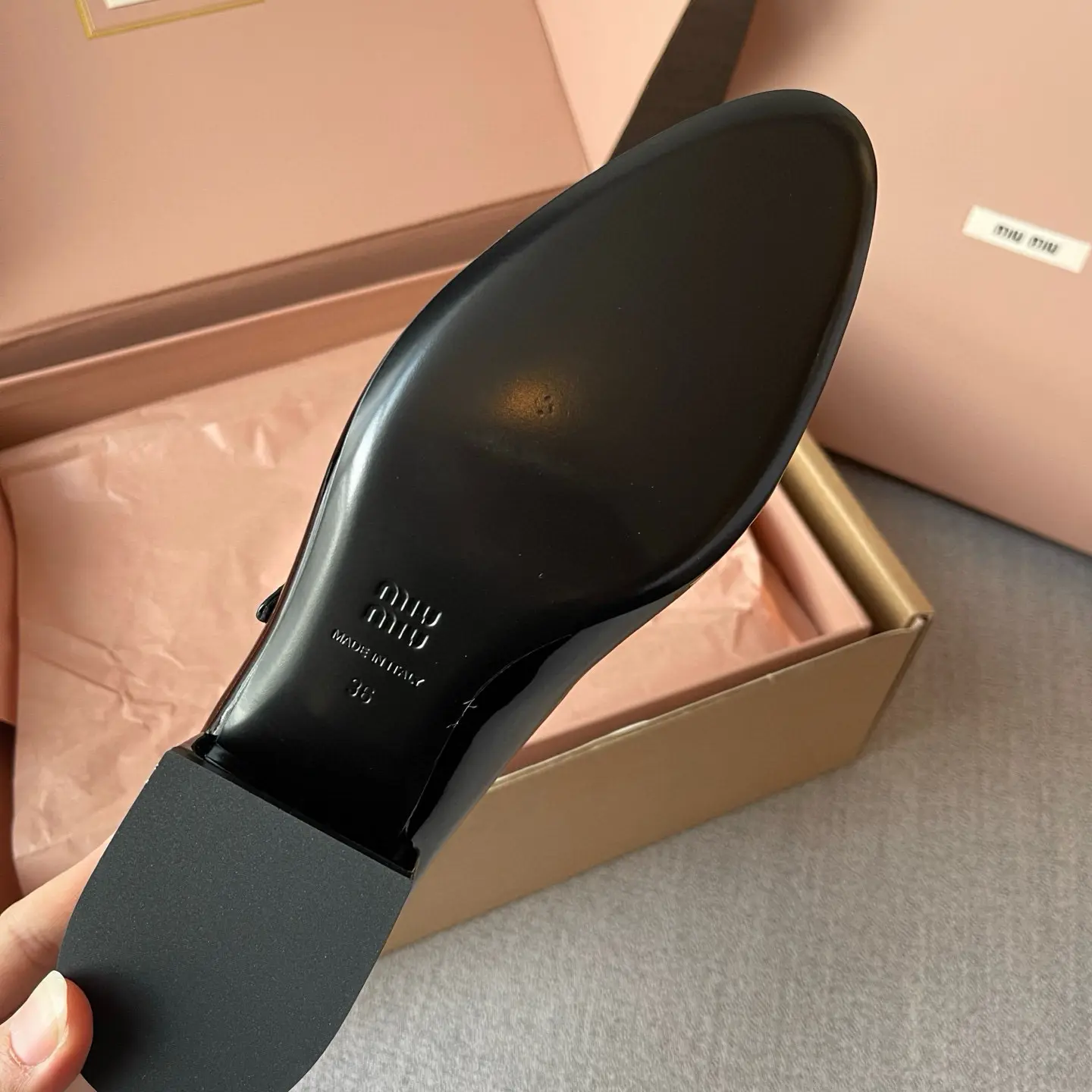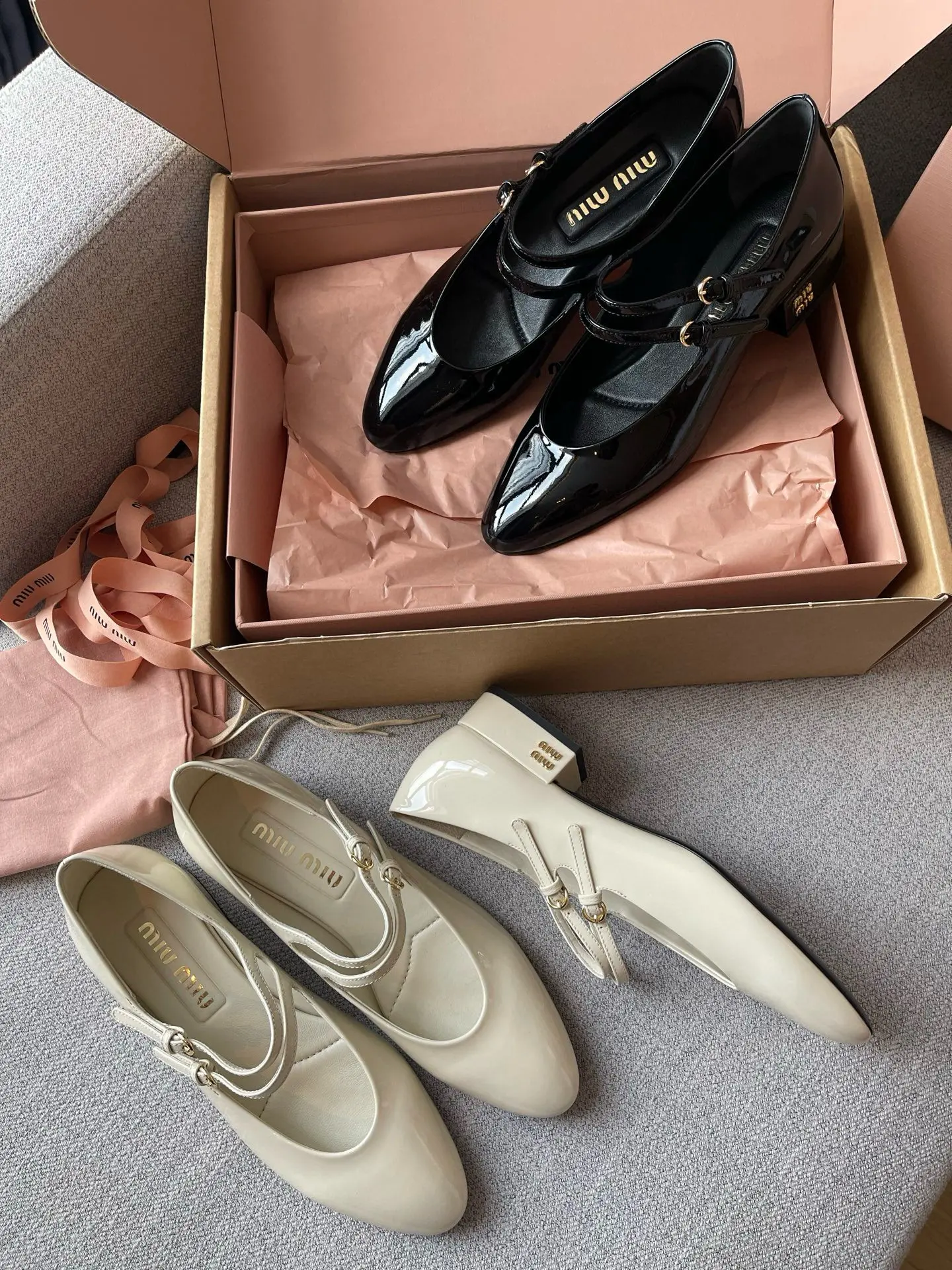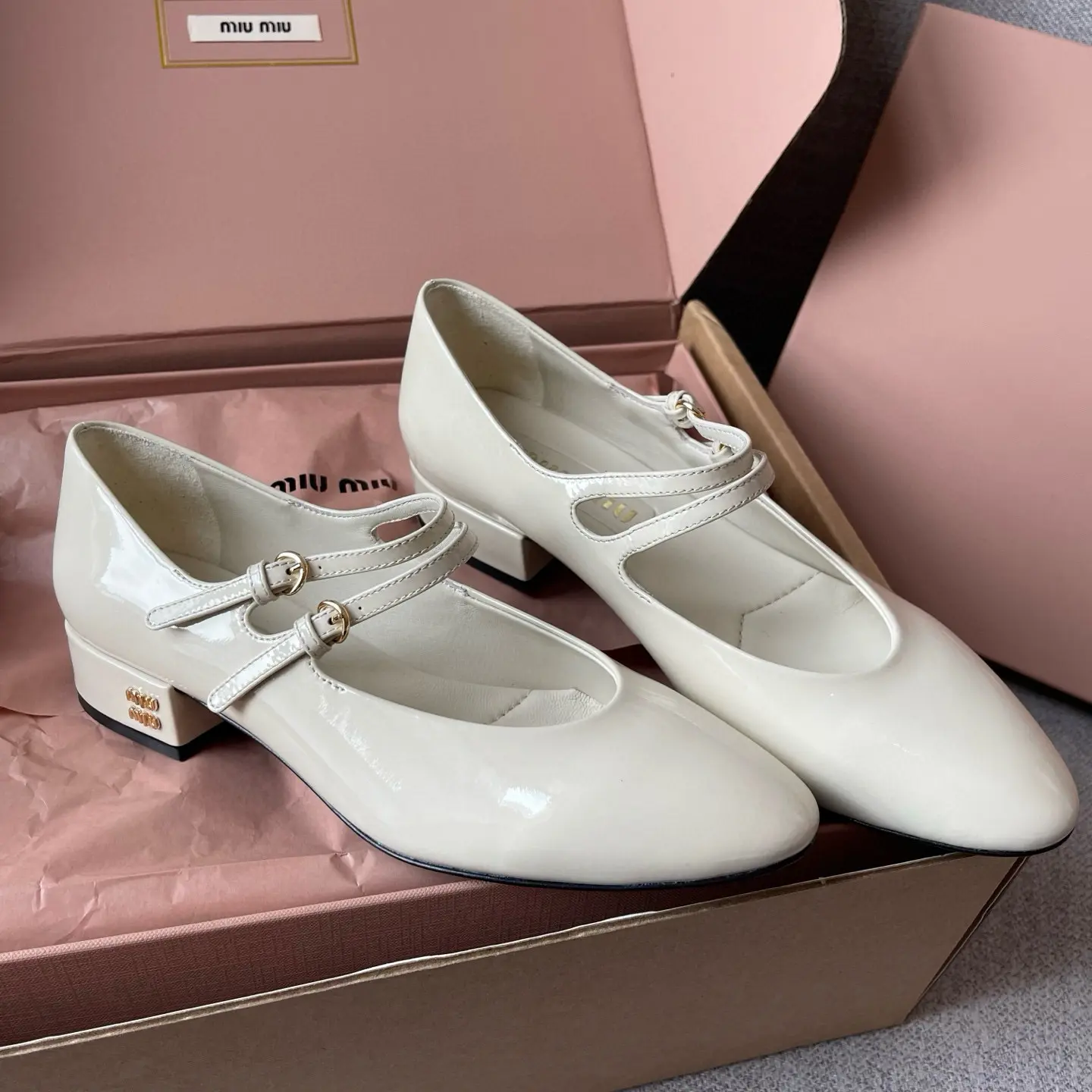Embrace timeless elegance with Miu’s new low-heel Mary Janes. Designed with a beautifully feminine silhouette, these shoes are crafted to highlight the natural lines of your foot for a gentle and sophisticated look.