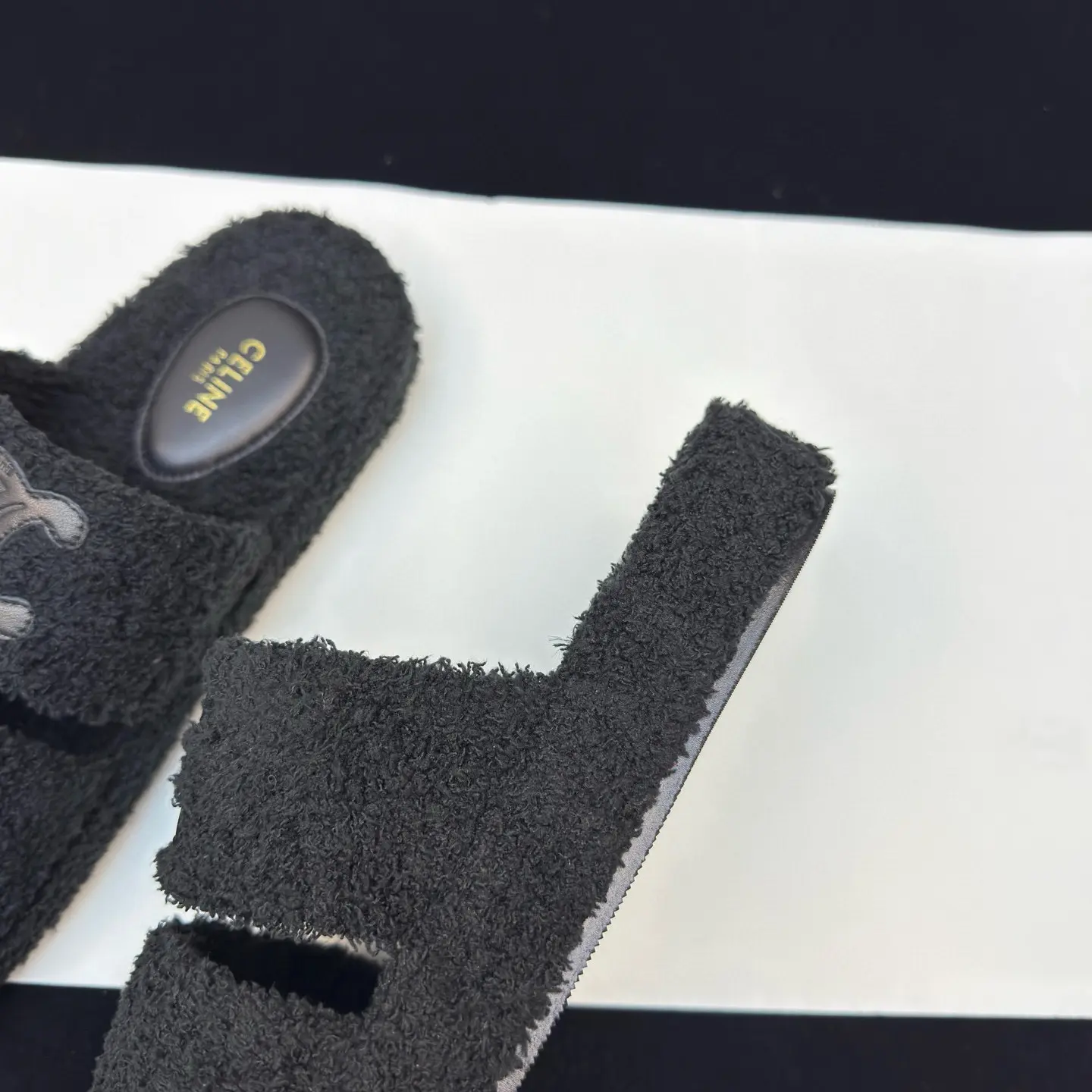 First, I need to check the search results to see what information is available. Looking through these search results, 1 is the official Celine page for the slippers. It gives details like price, materials, and care instructions. The price is NT$29,500, and it’s made of 100% shearling. That’s key for highlighting the luxury aspect. 6 also mentions the same product with a reference price of ¥7300, which might be useful for cost comparisons.