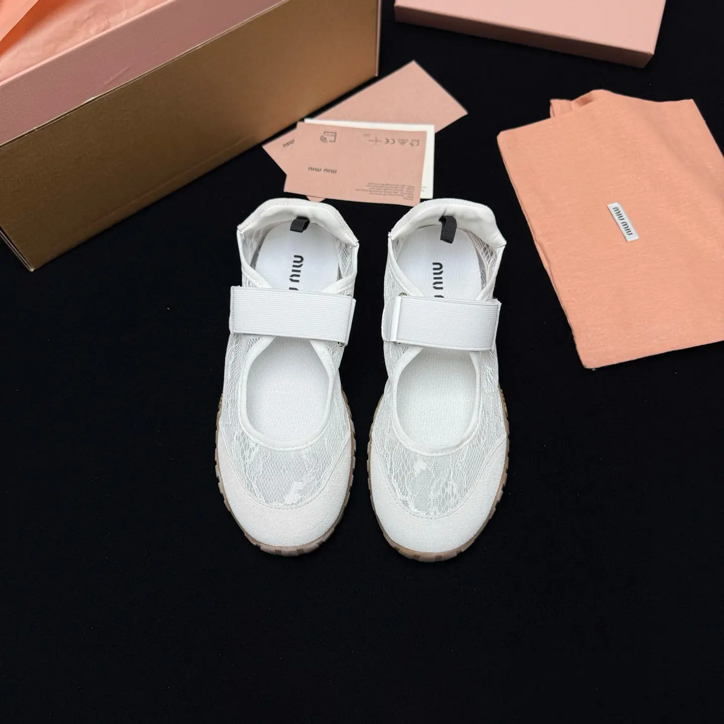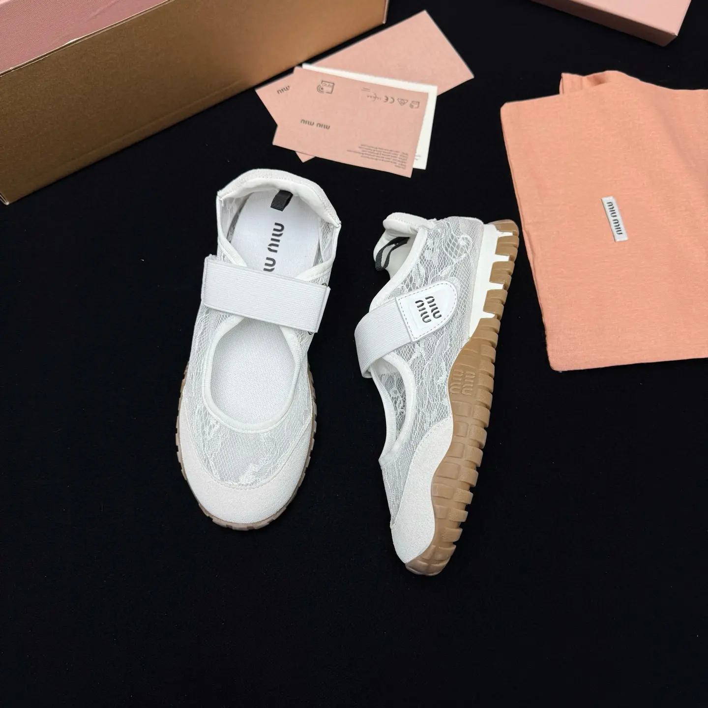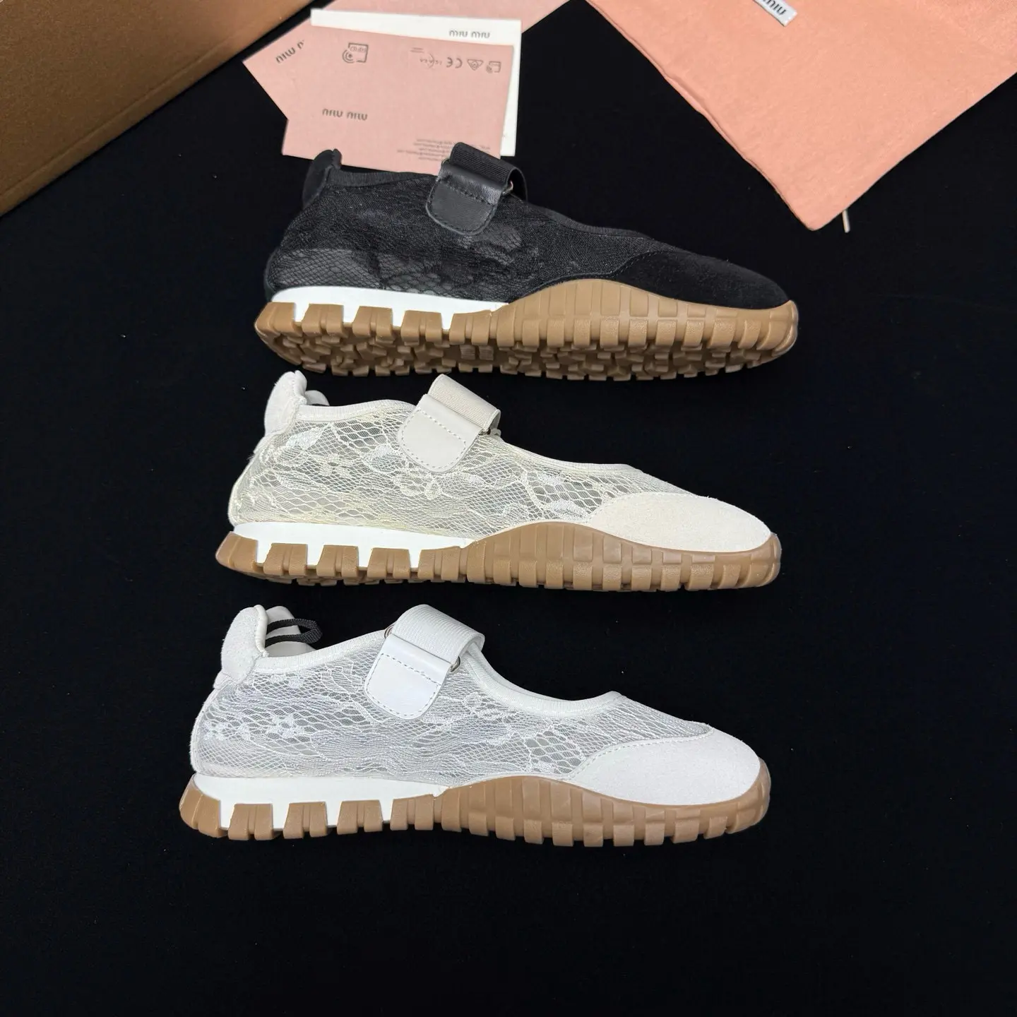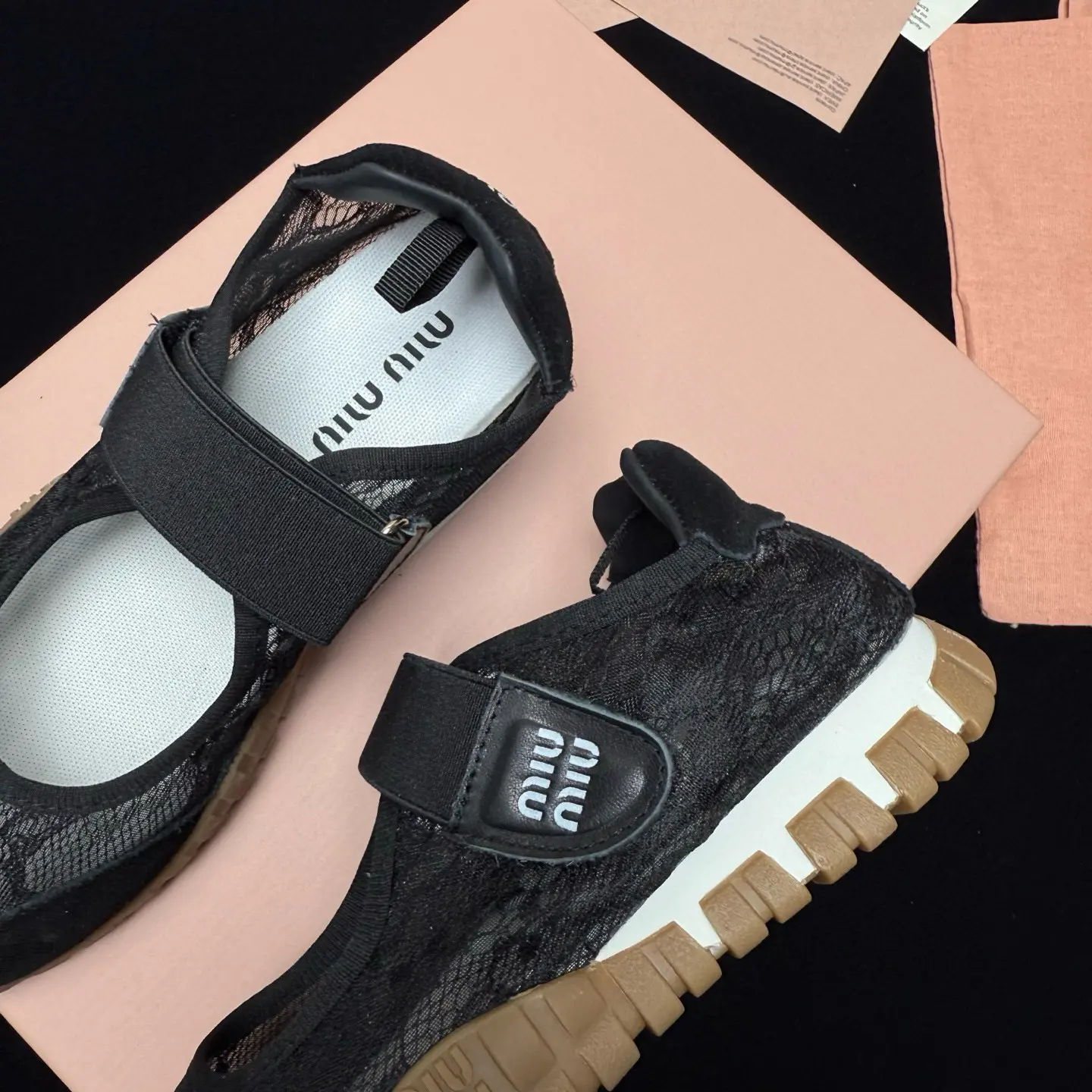 Miu Miu Summer Embroidered Lace Mary Jane Casual Shoes