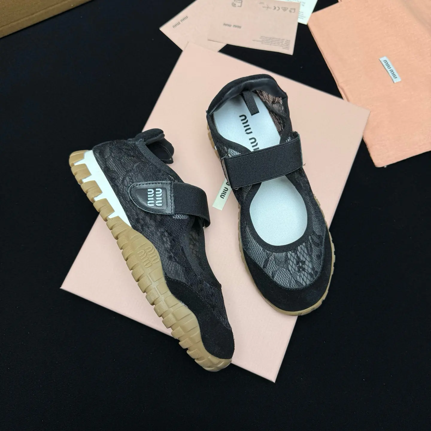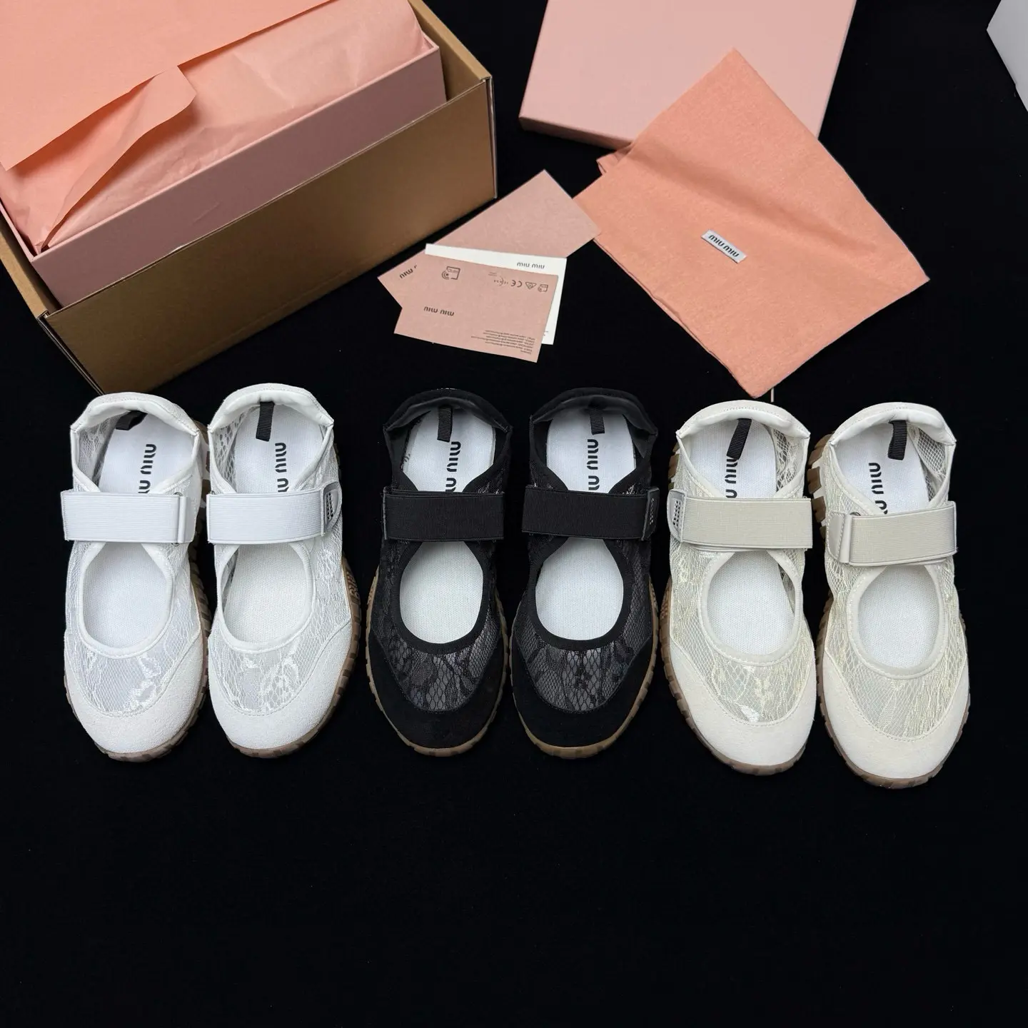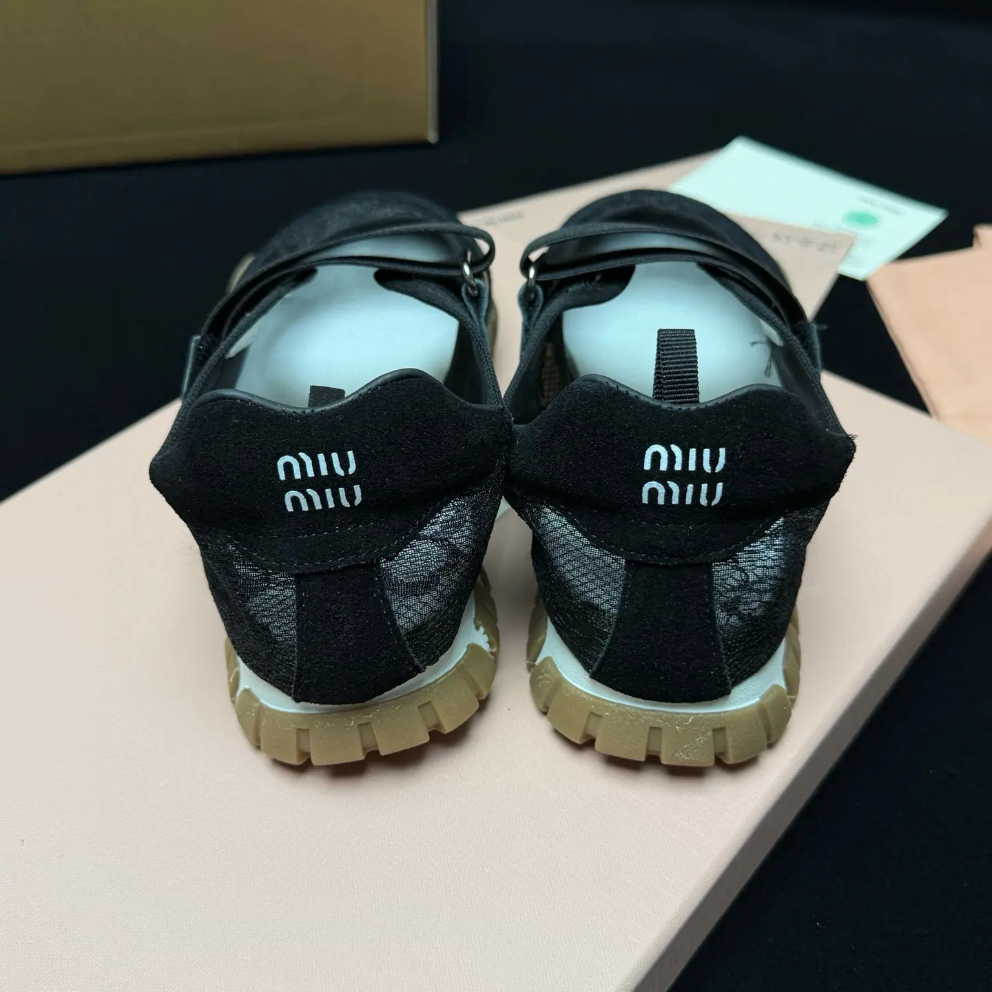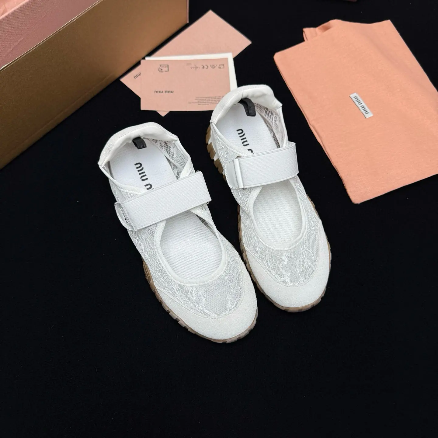 Miu Miu Summer Embroidered Lace Mary Jane Casual Shoes