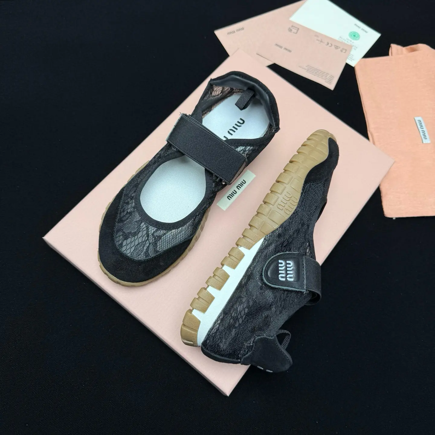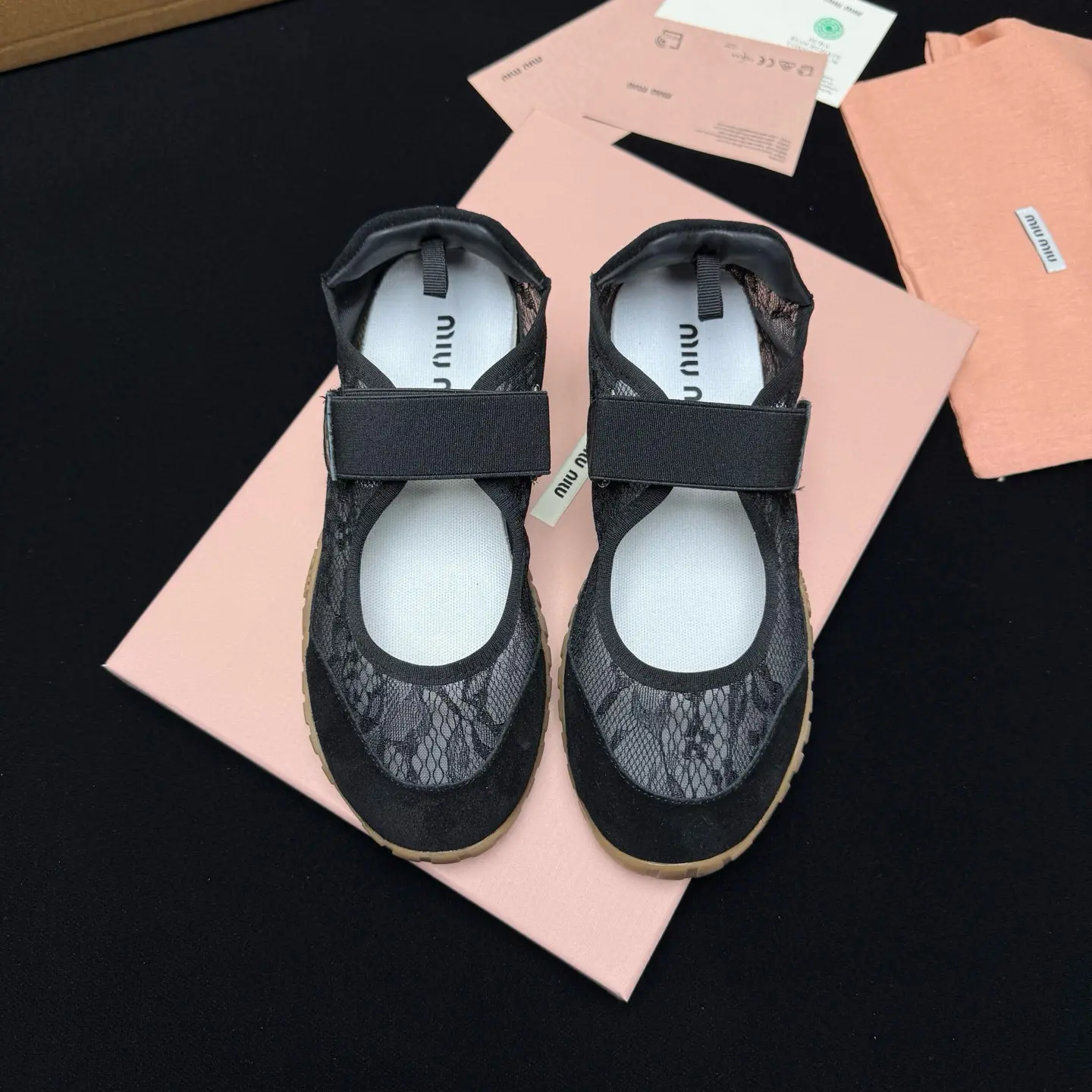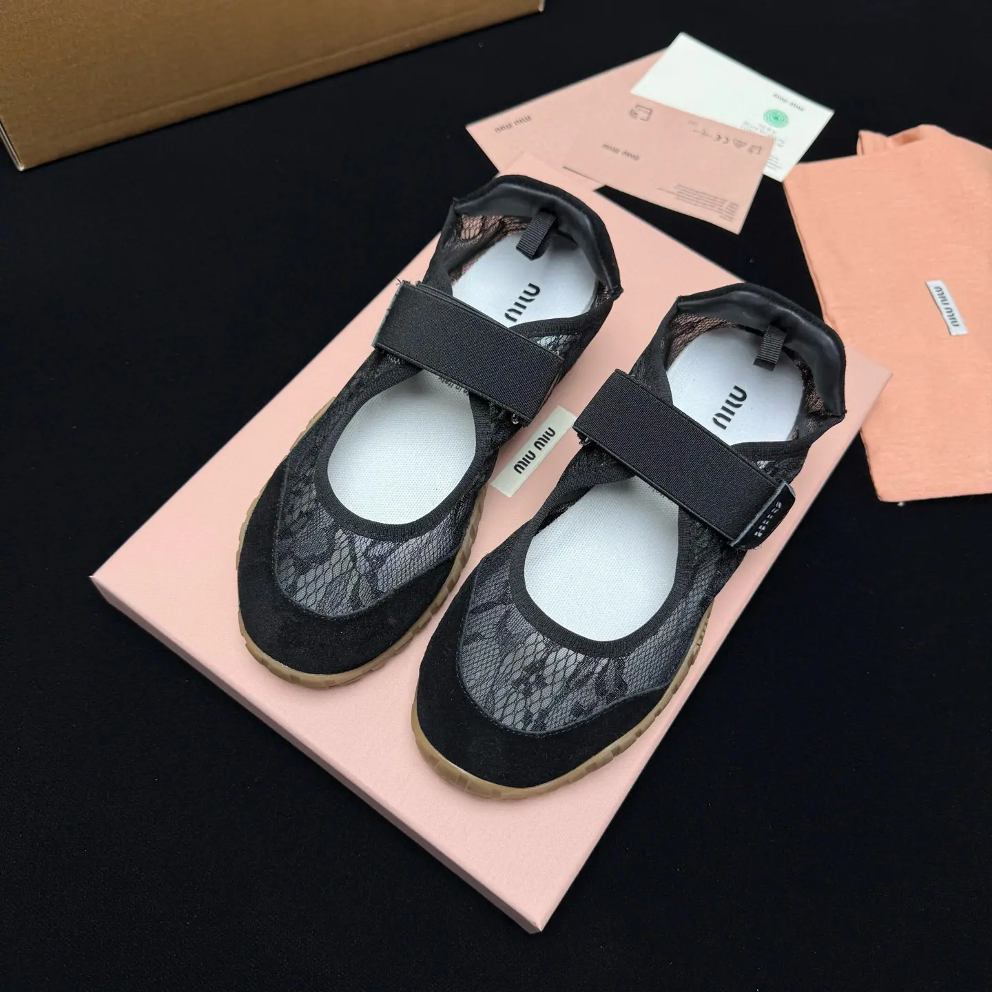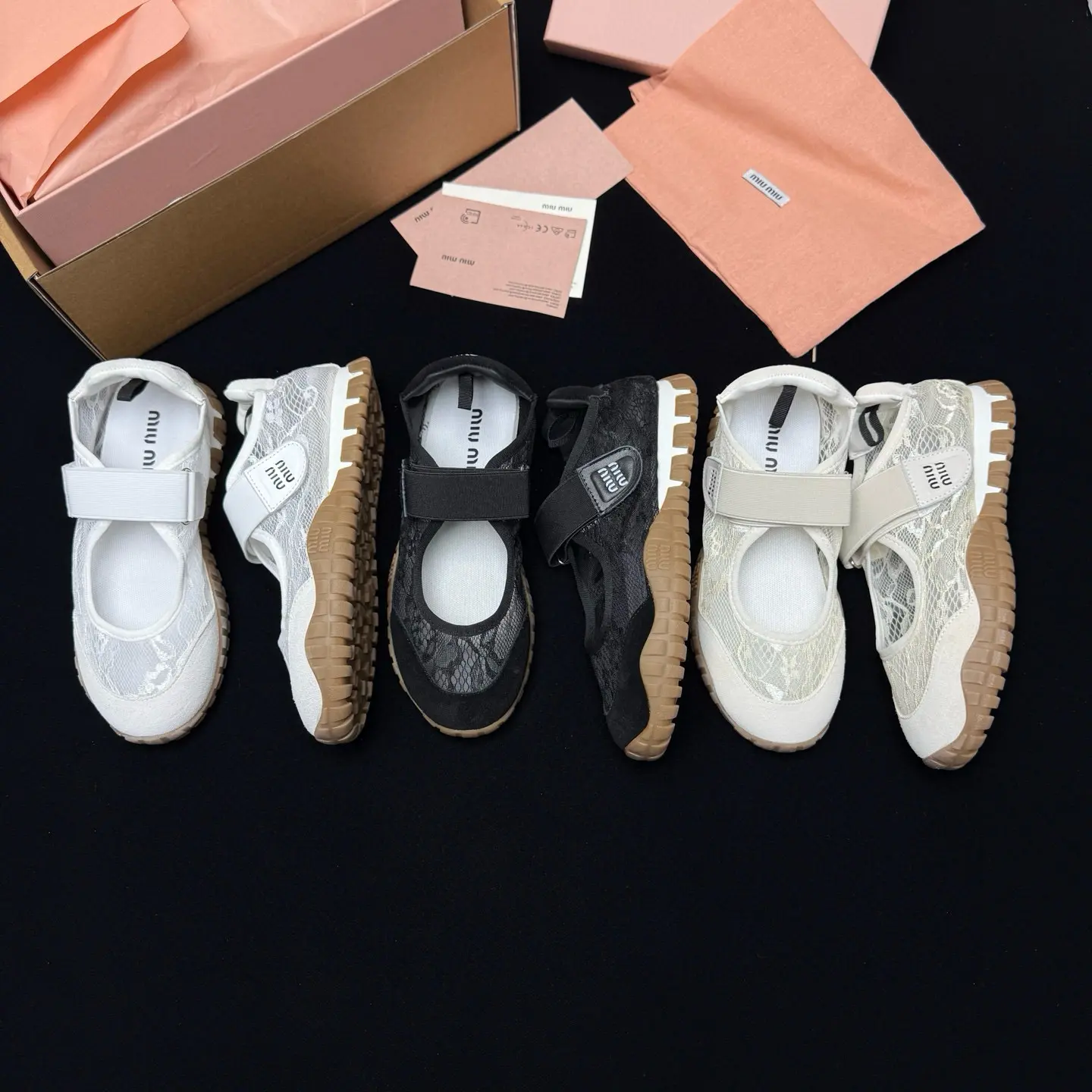 Miu Miu Summer Embroidered Lace Mary Jane Casual Shoes
