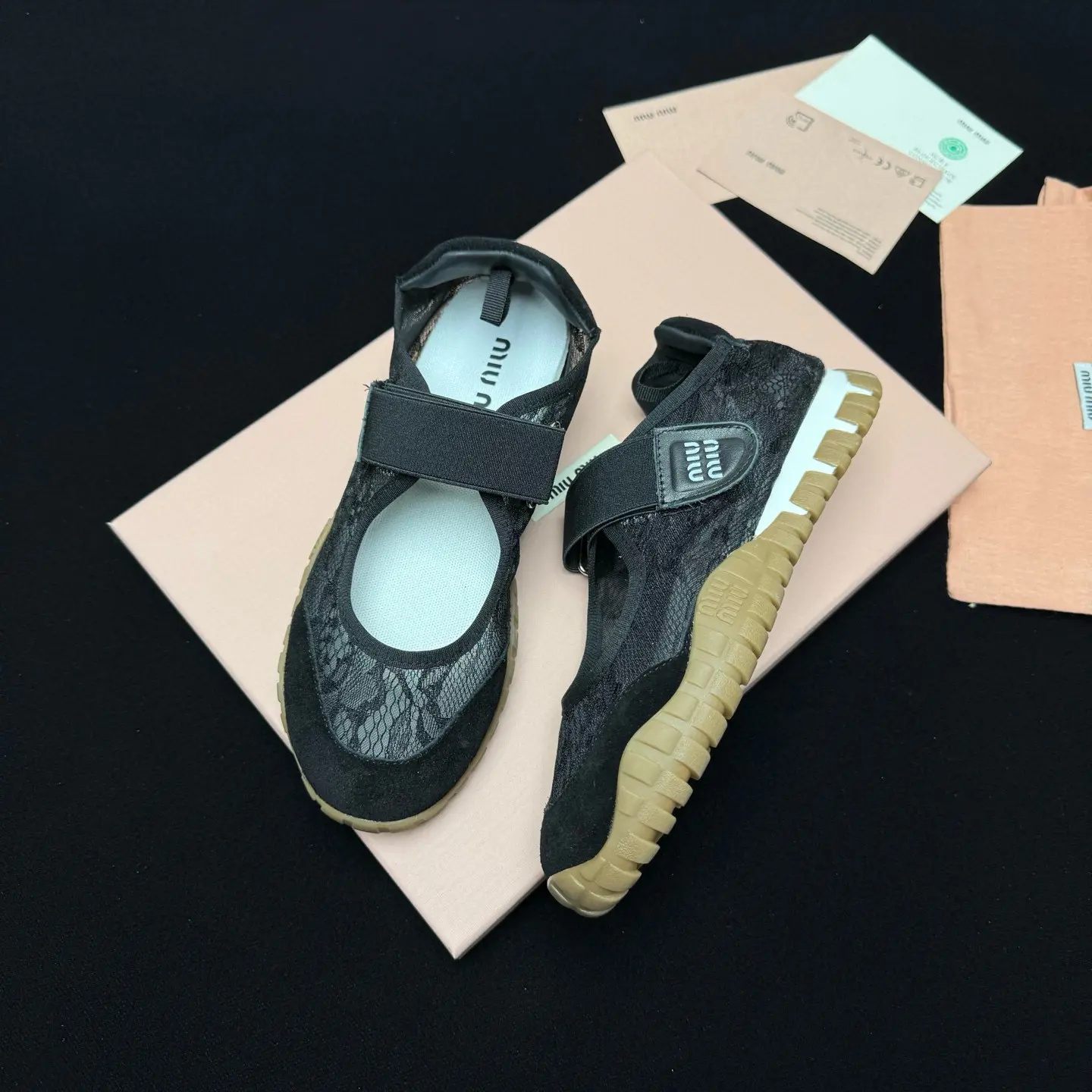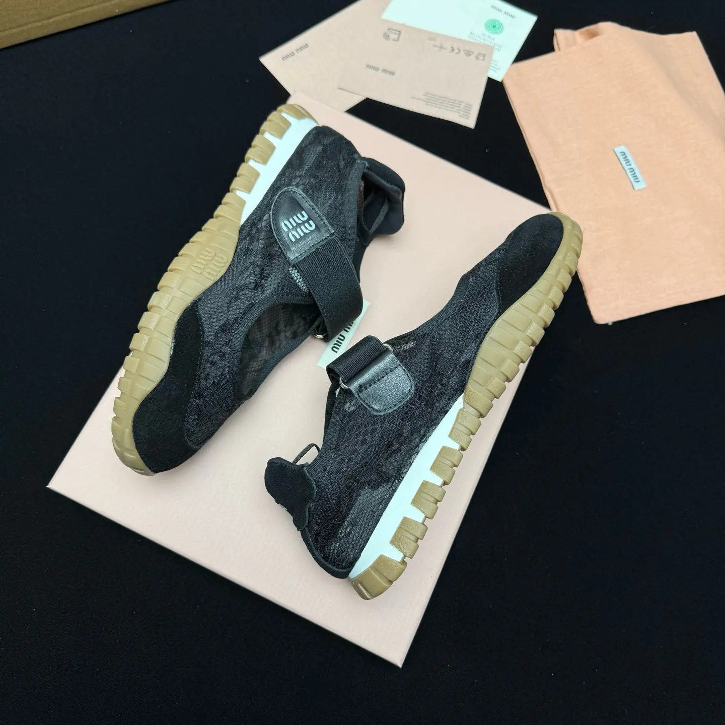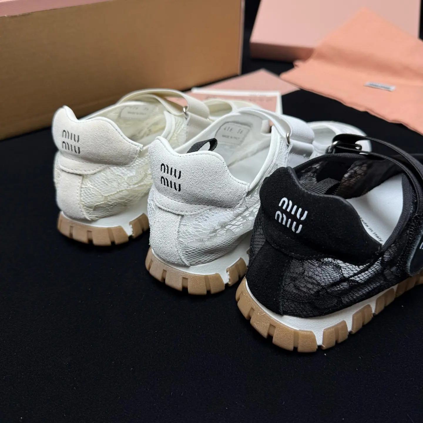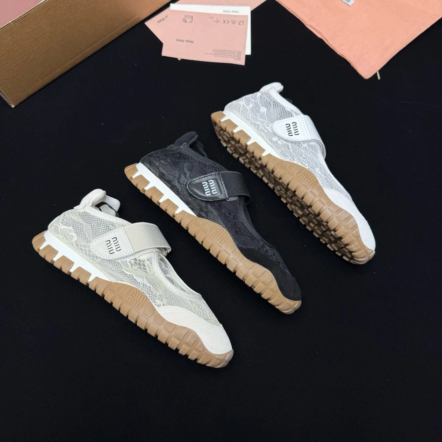 Miu Miu Summer Embroidered Lace Mary Jane Casual Shoes