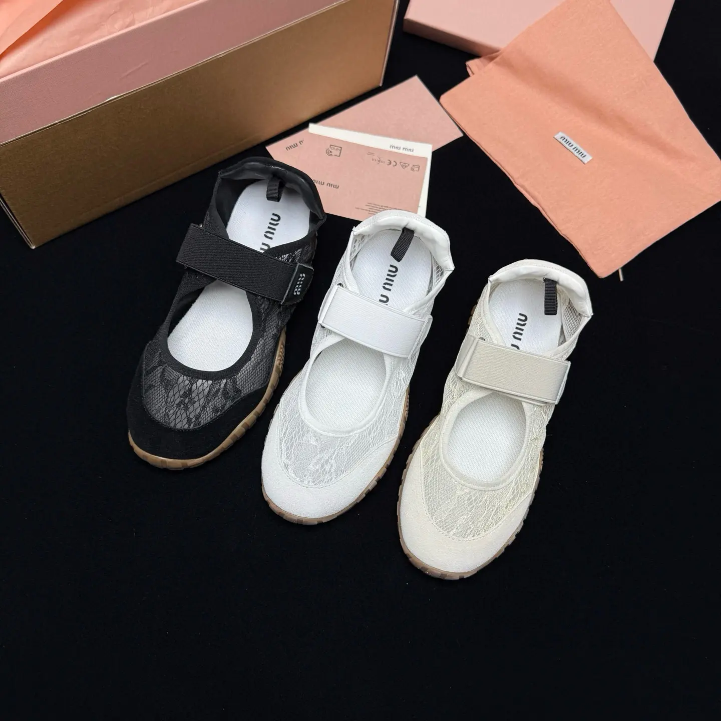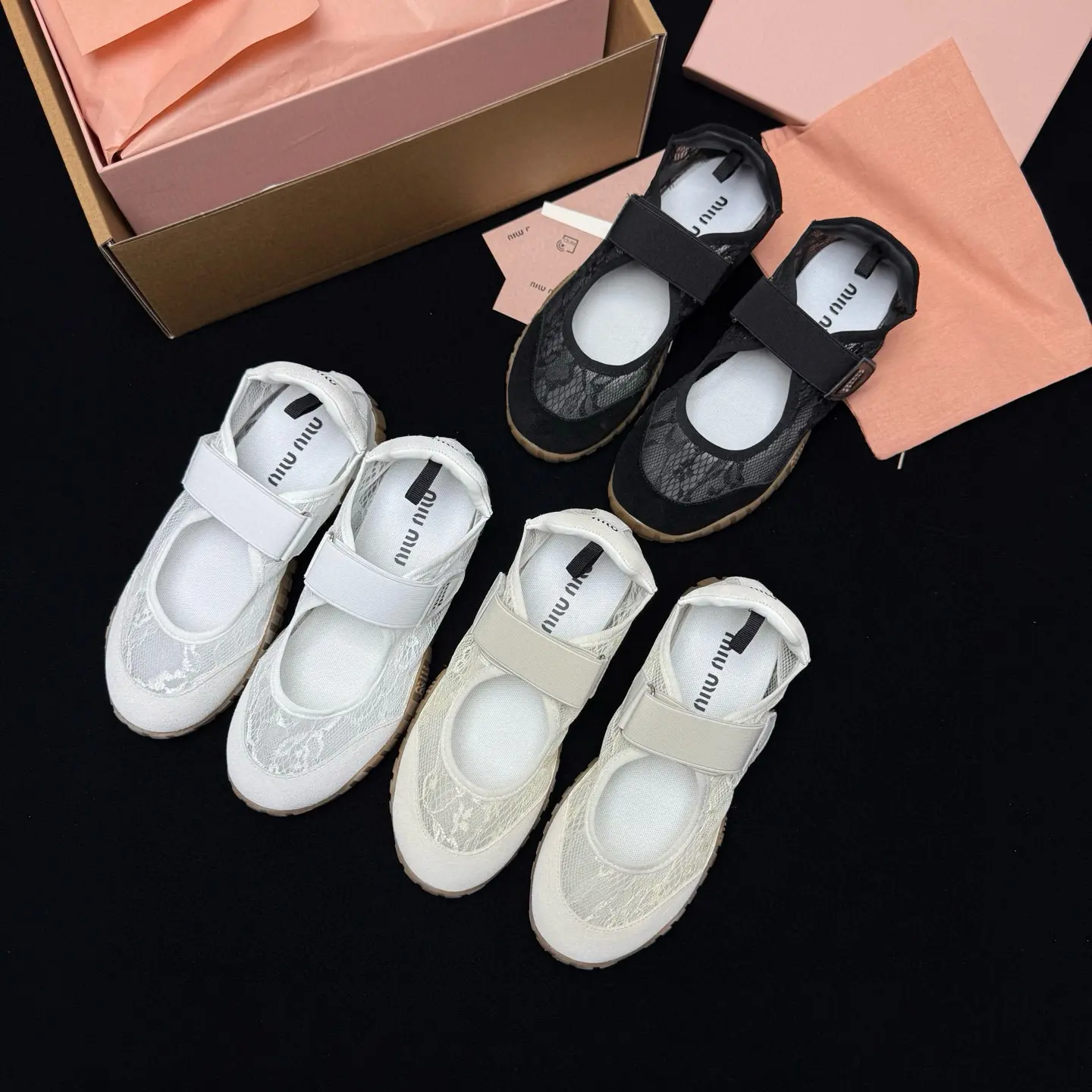 25 new Miu Miu summer embroidered lace Mary Jane casual shoes