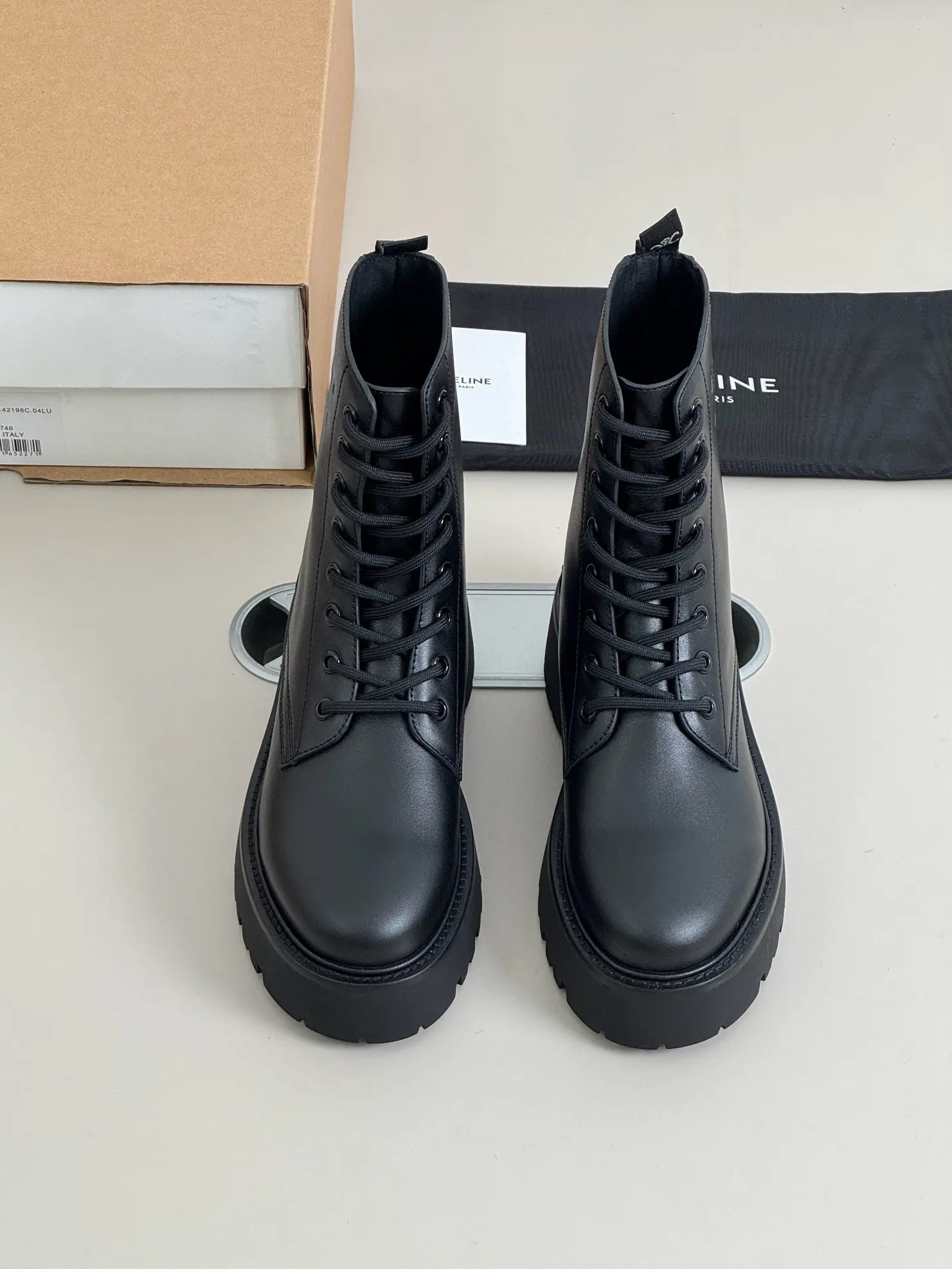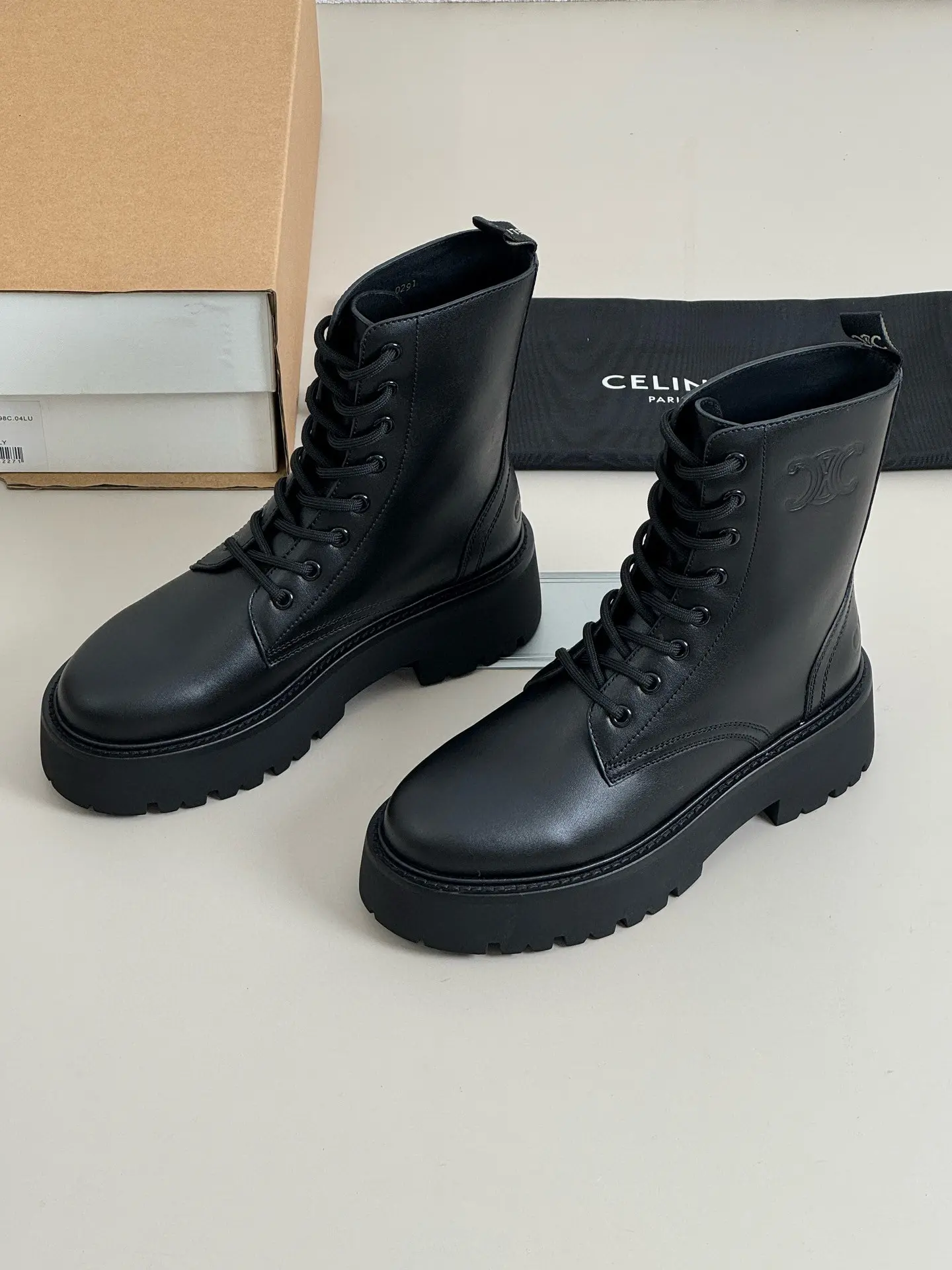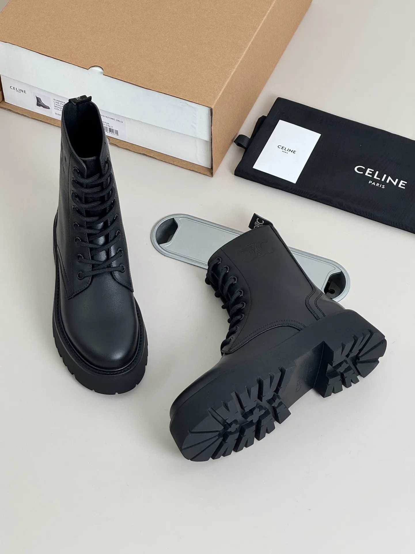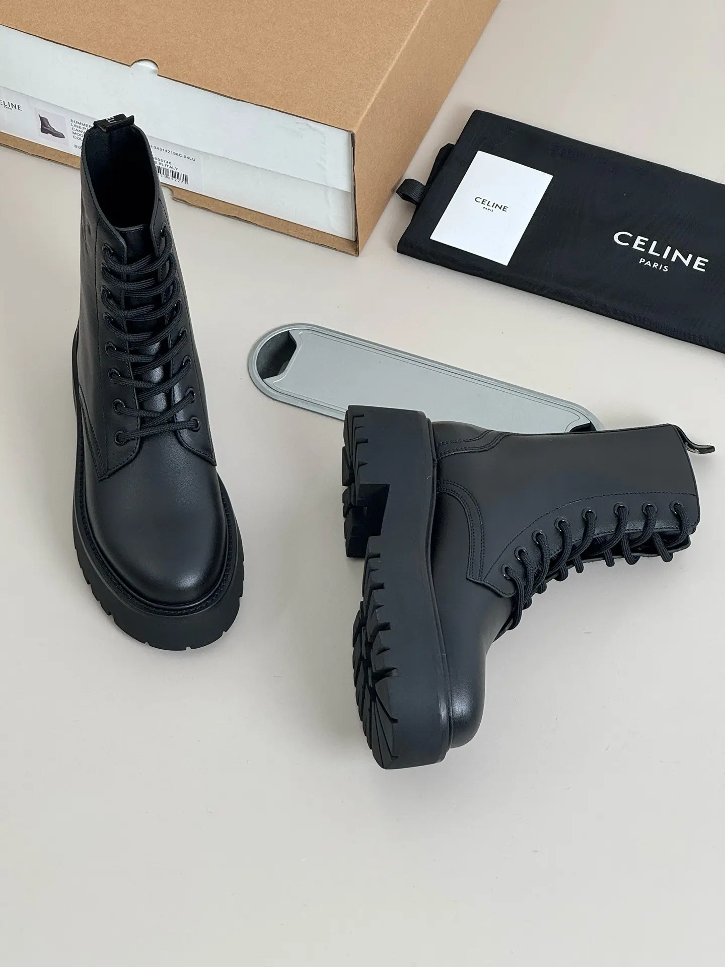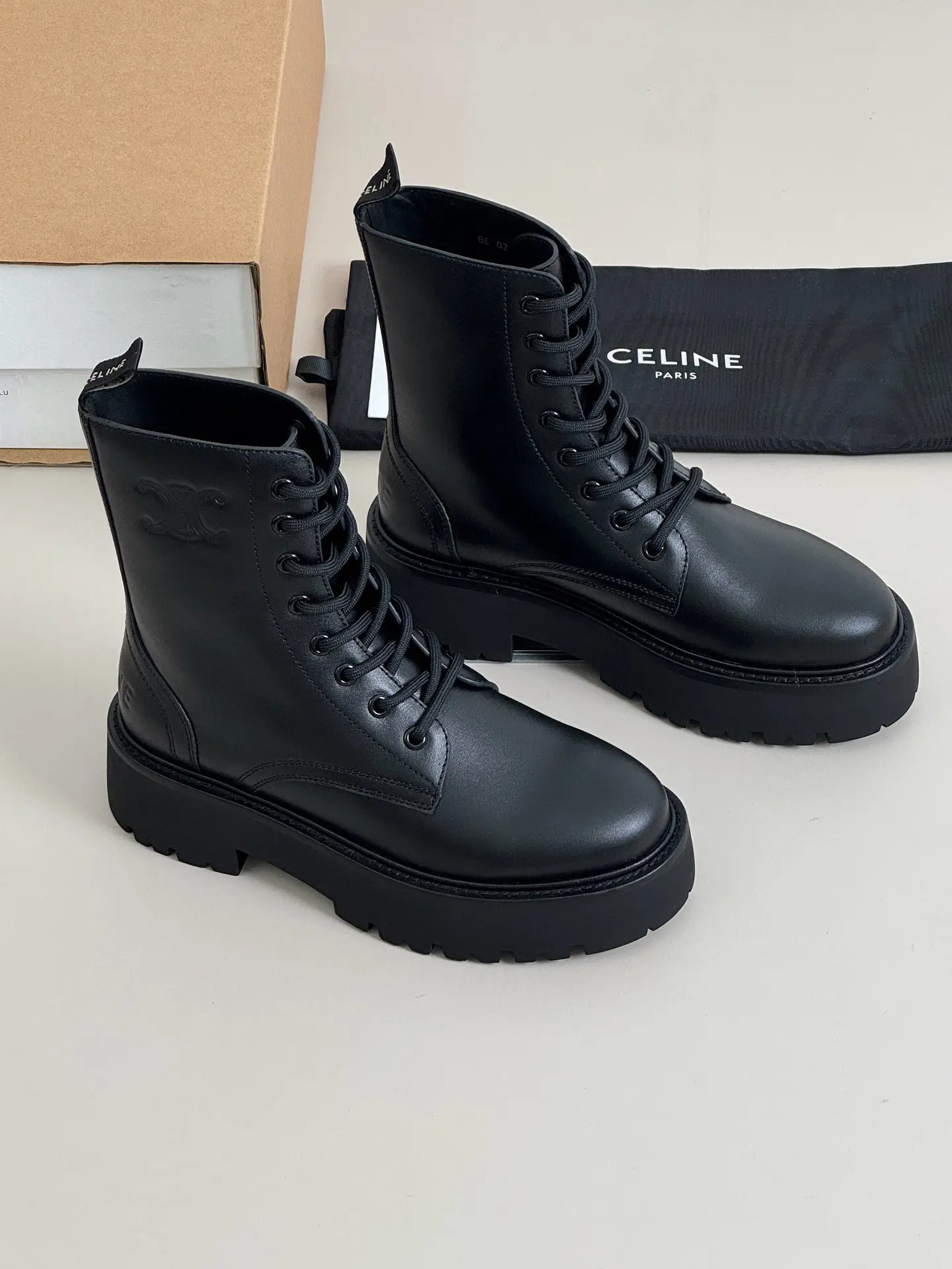 Product Description: Celine New Lace-Up Thick-Sole Martin Boots