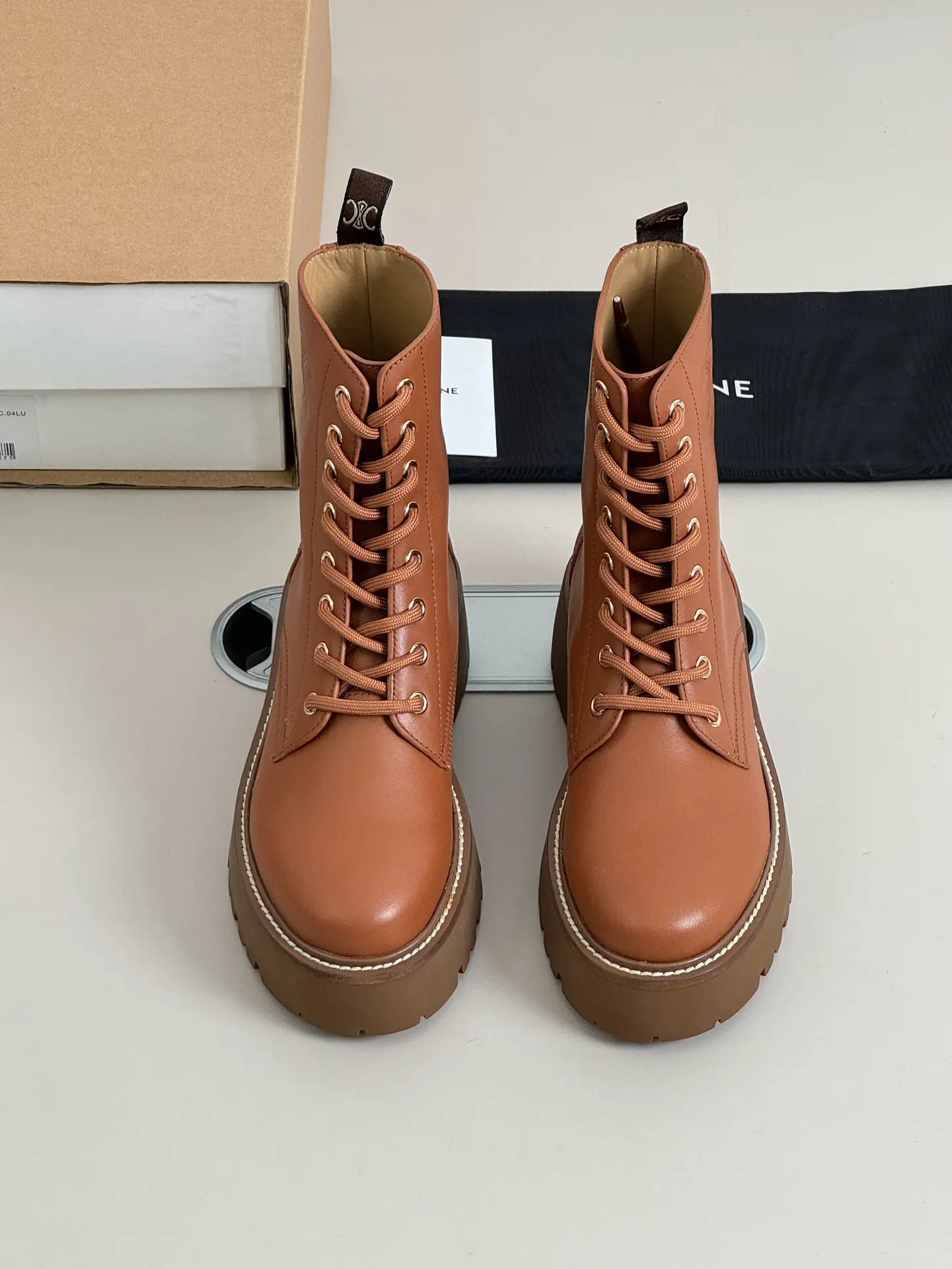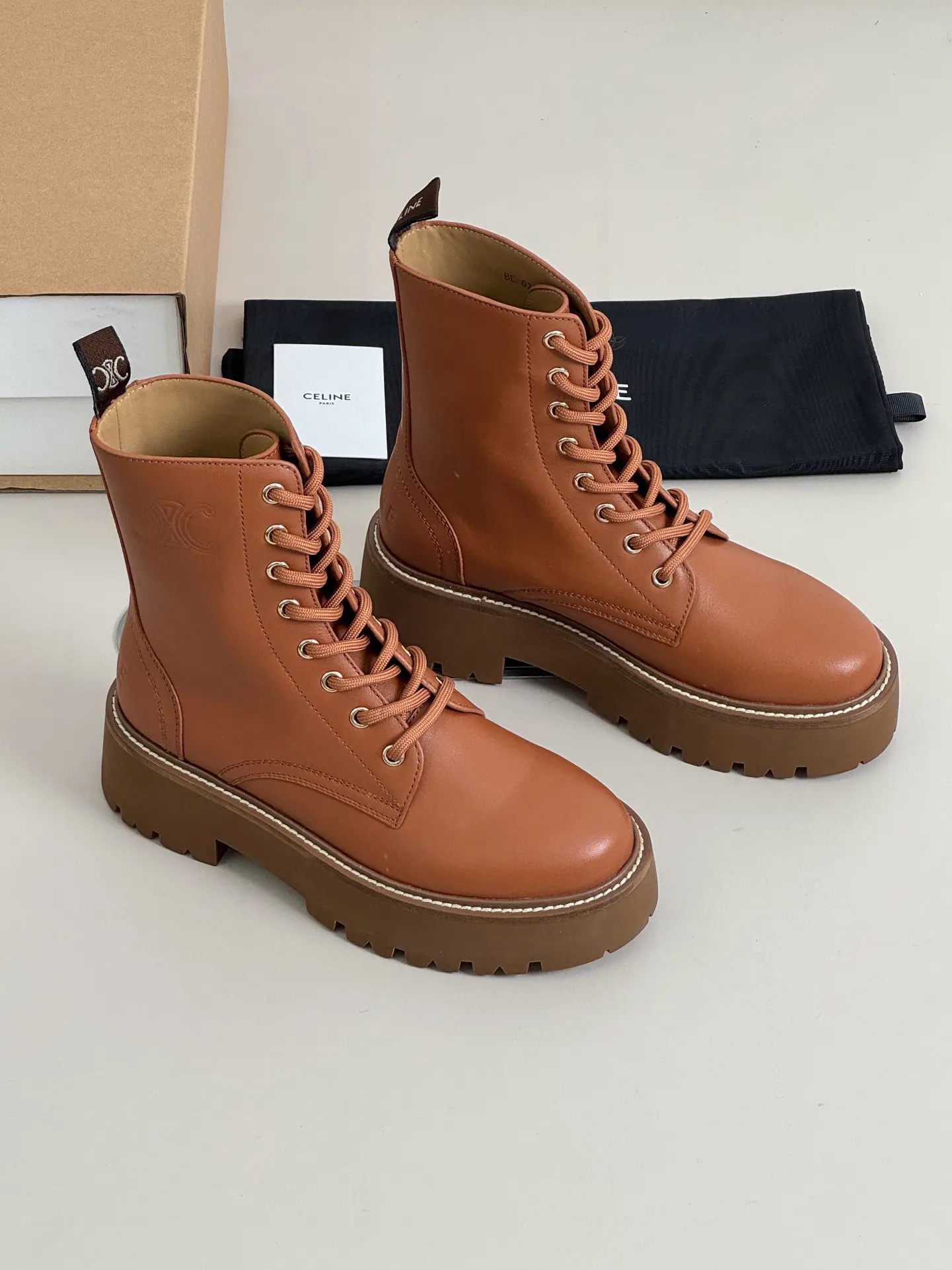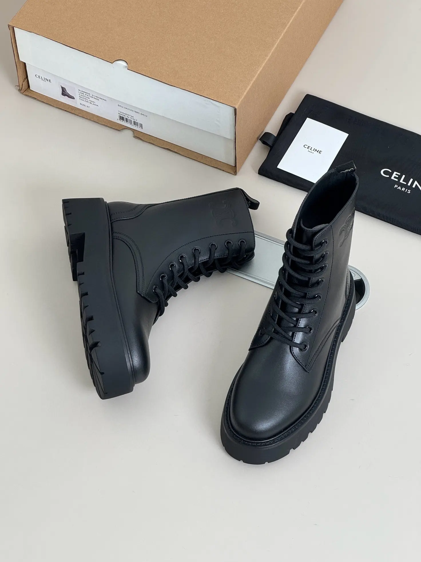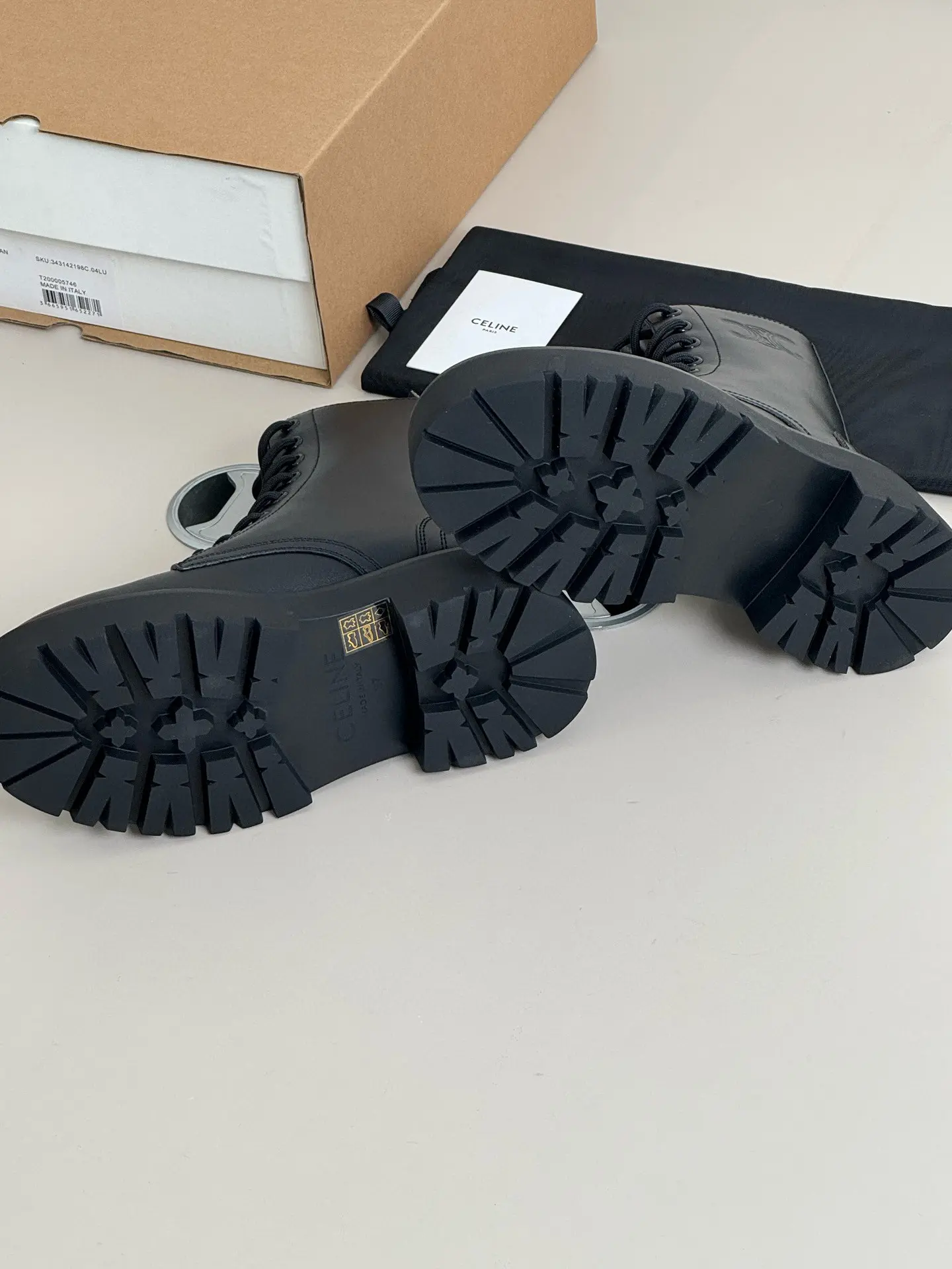 Product Description: Celine New Lace-Up Thick-Sole Martin Boots