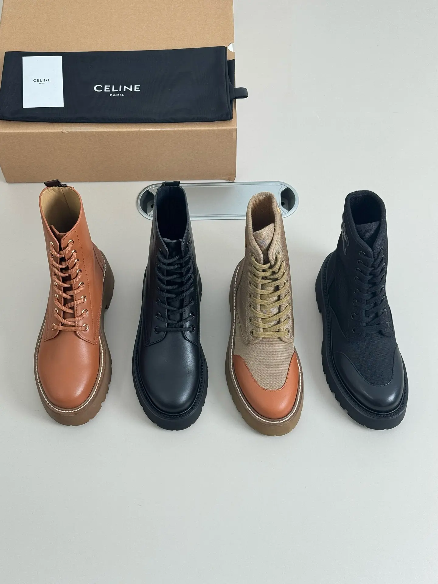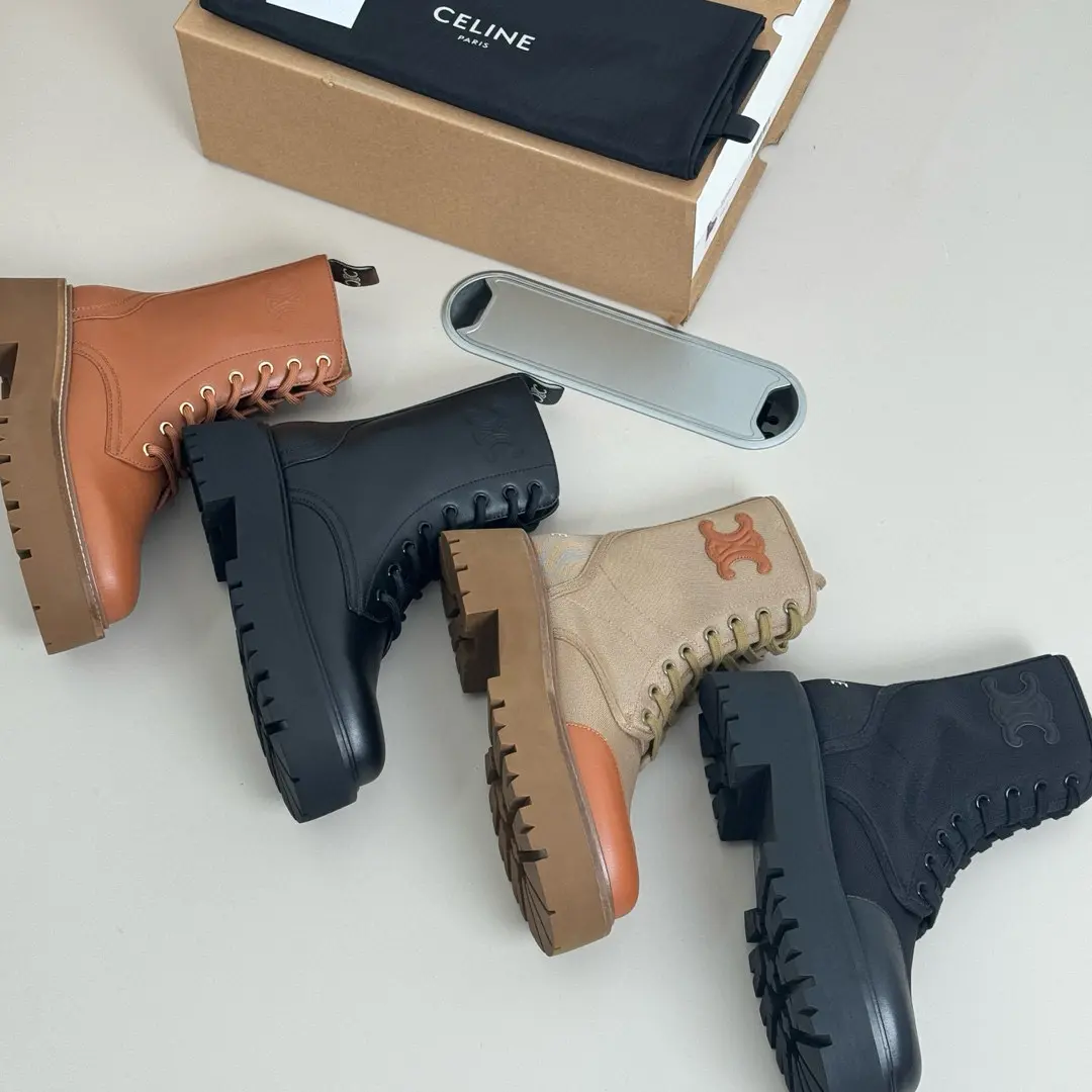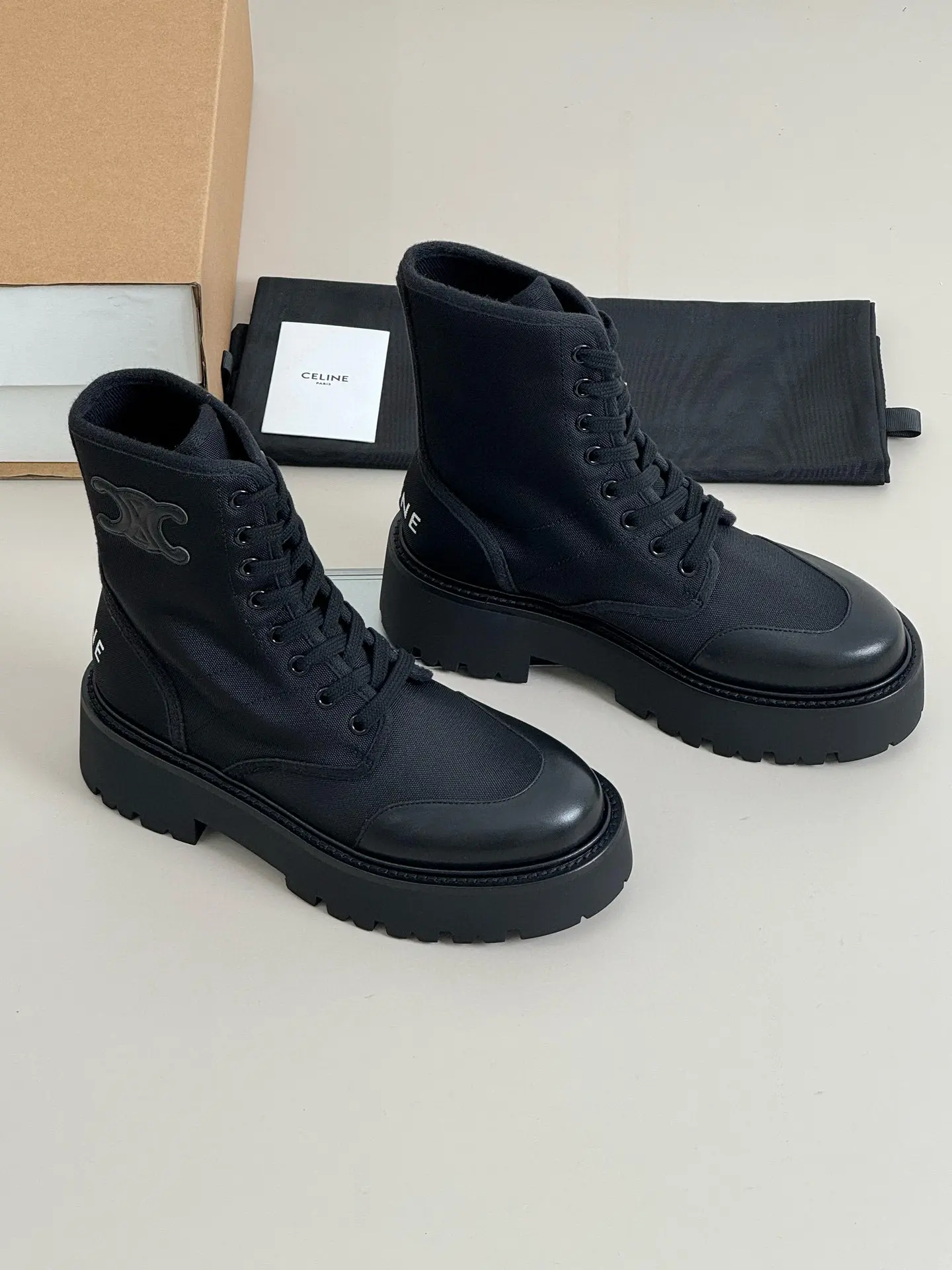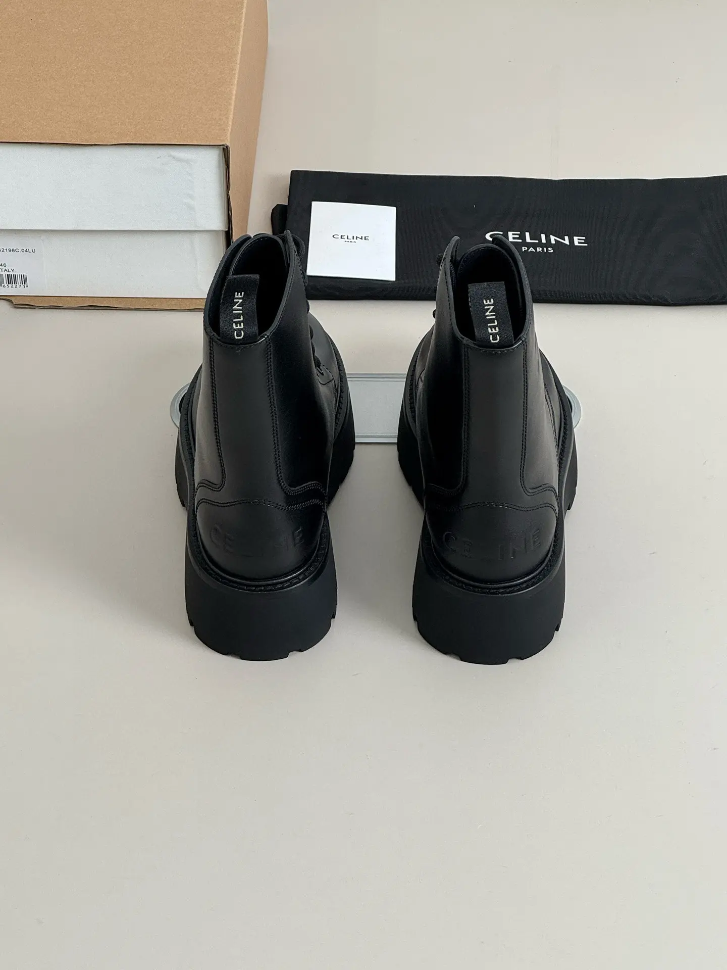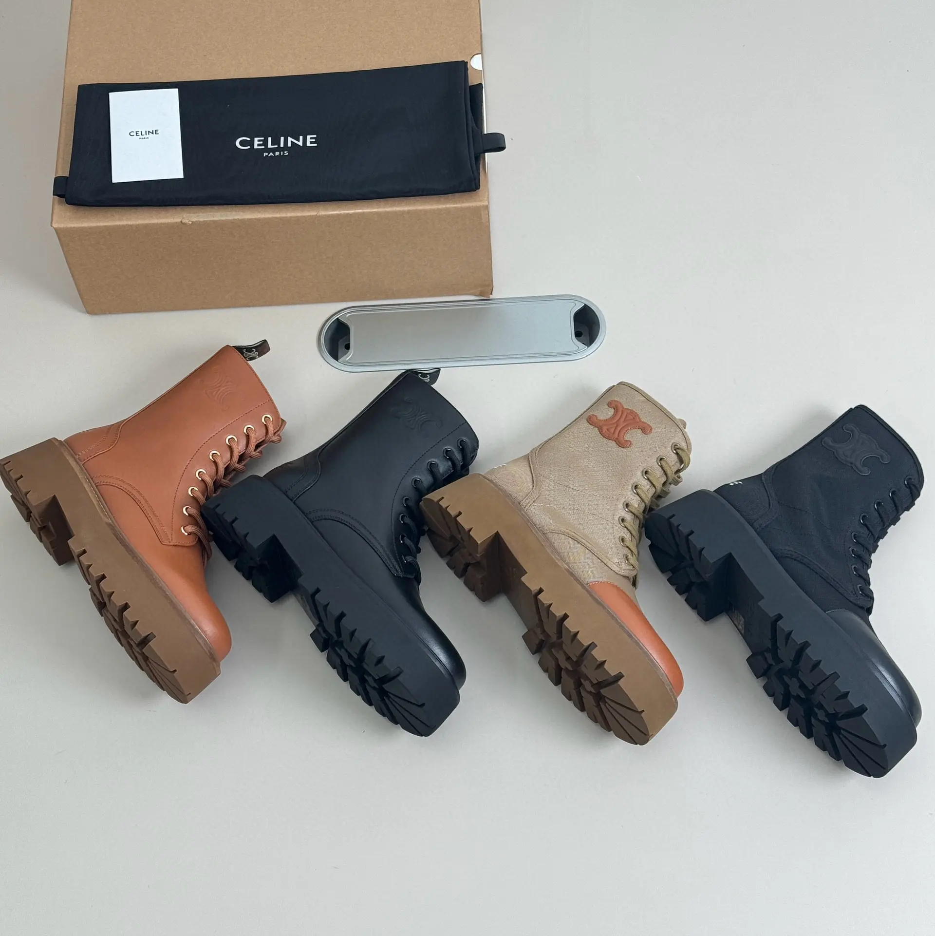 Product Description: Celine New Lace-Up Thick-Sole Martin Boots