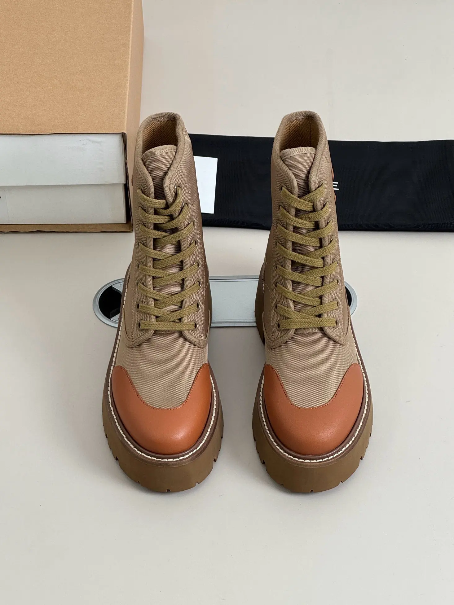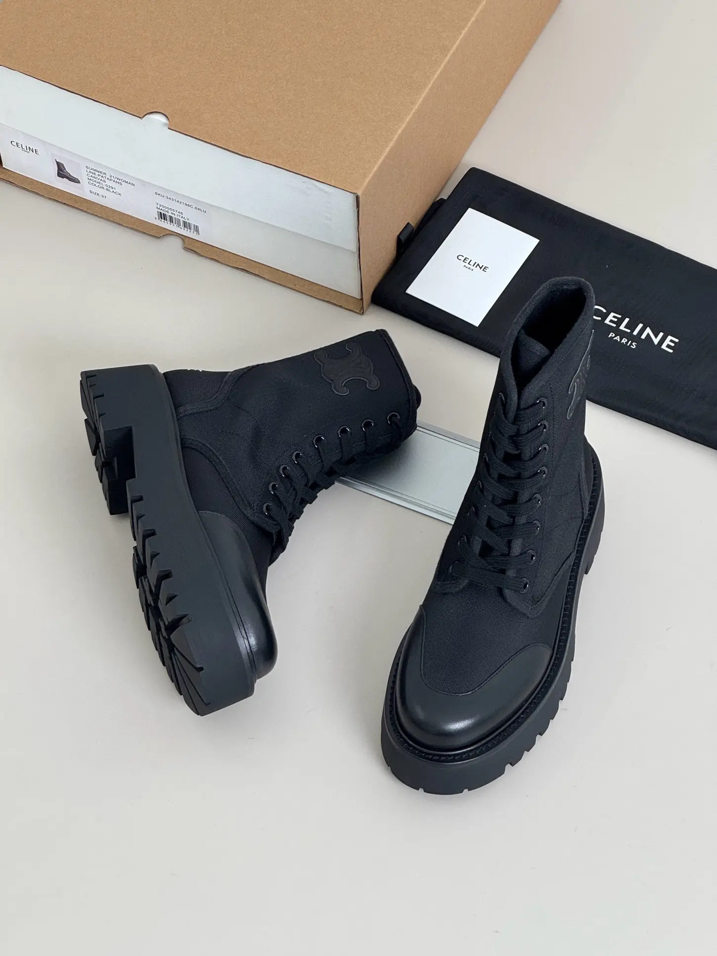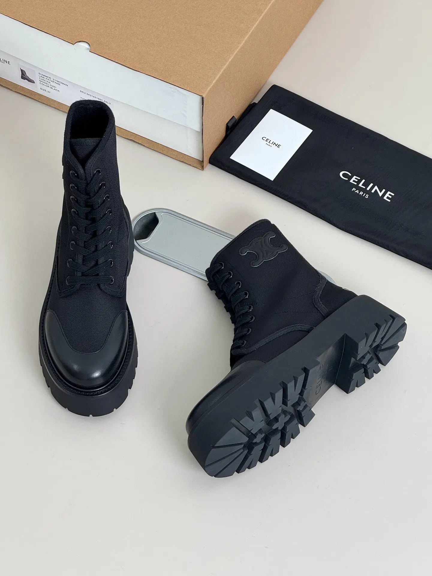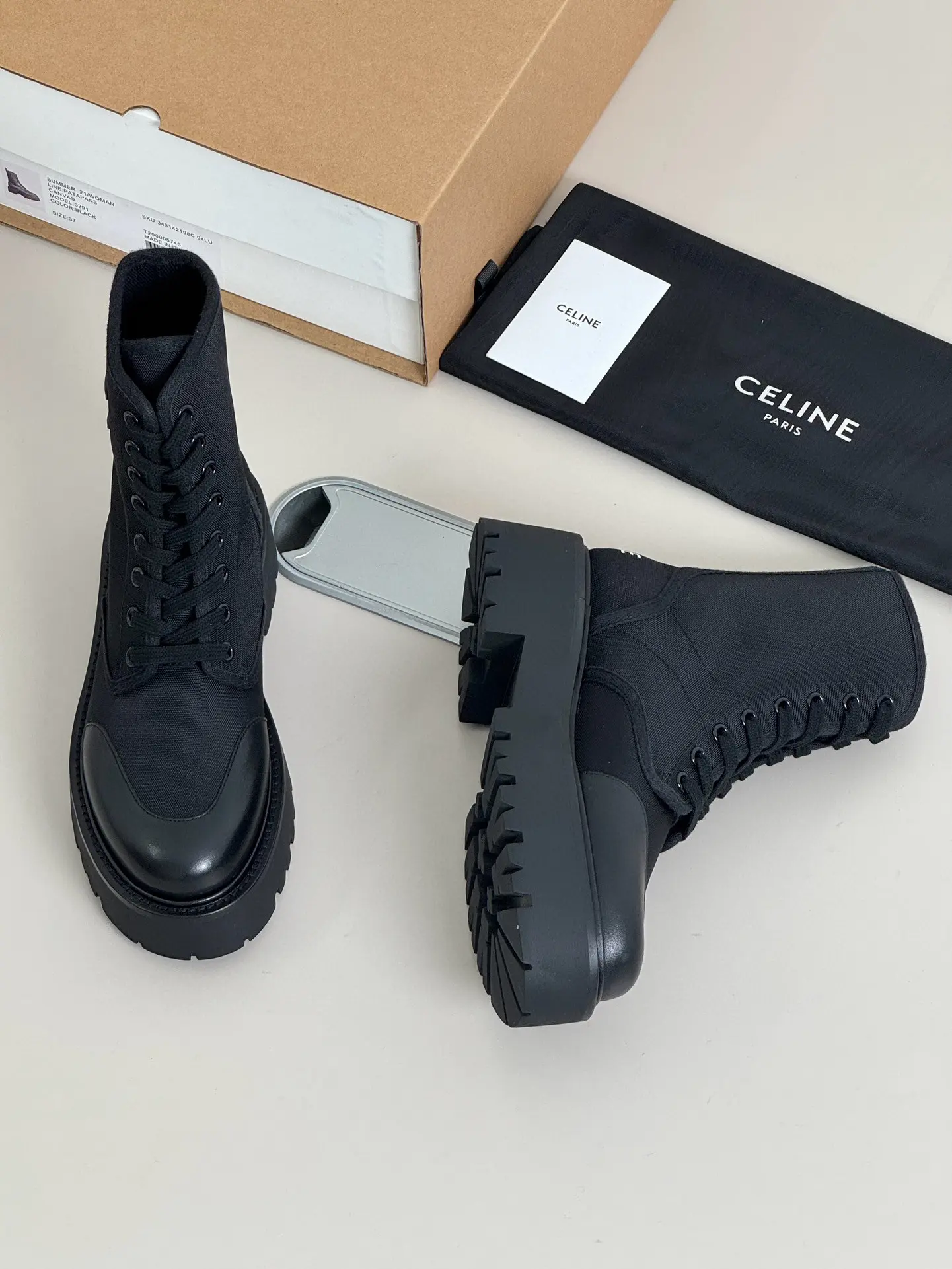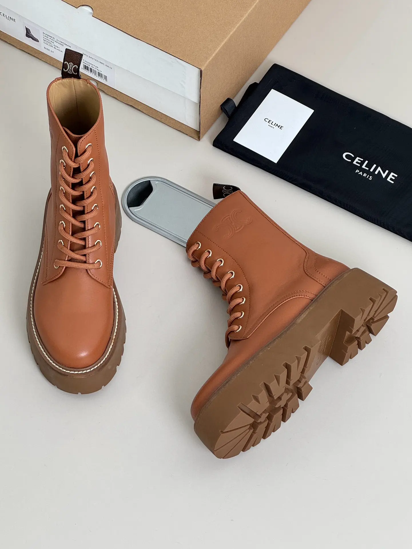 Product Description: Celine New Lace-Up Thick-Sole Martin Boots