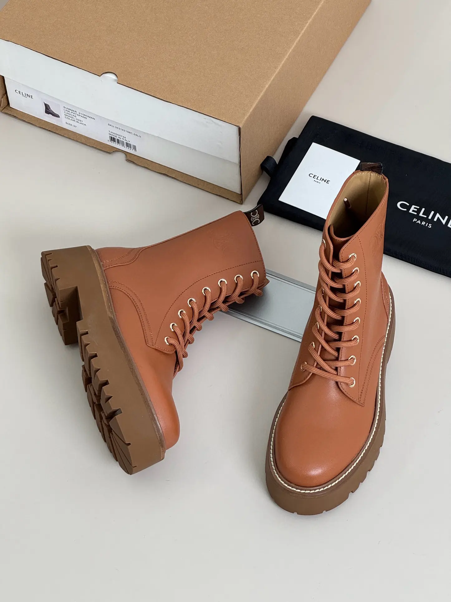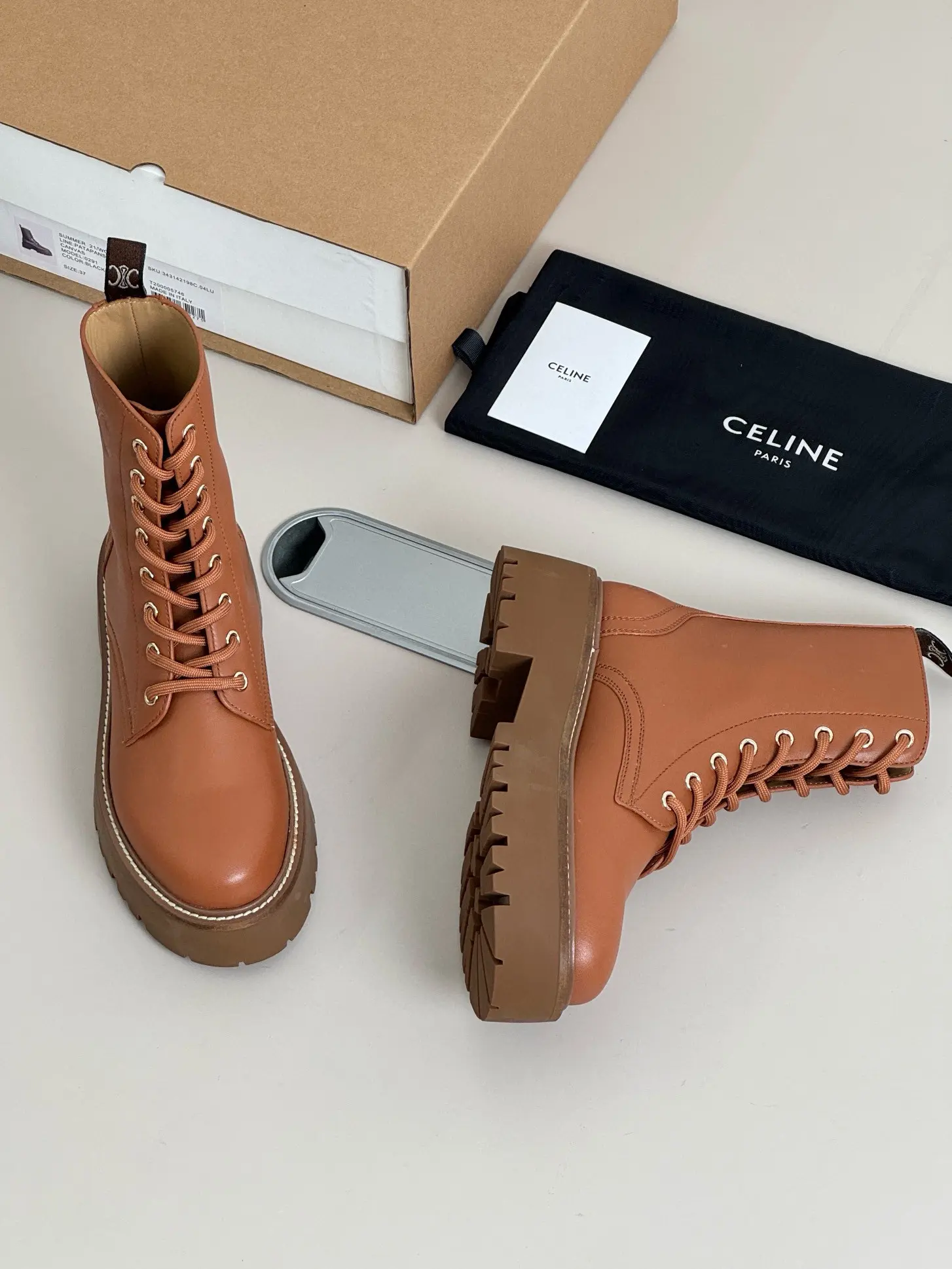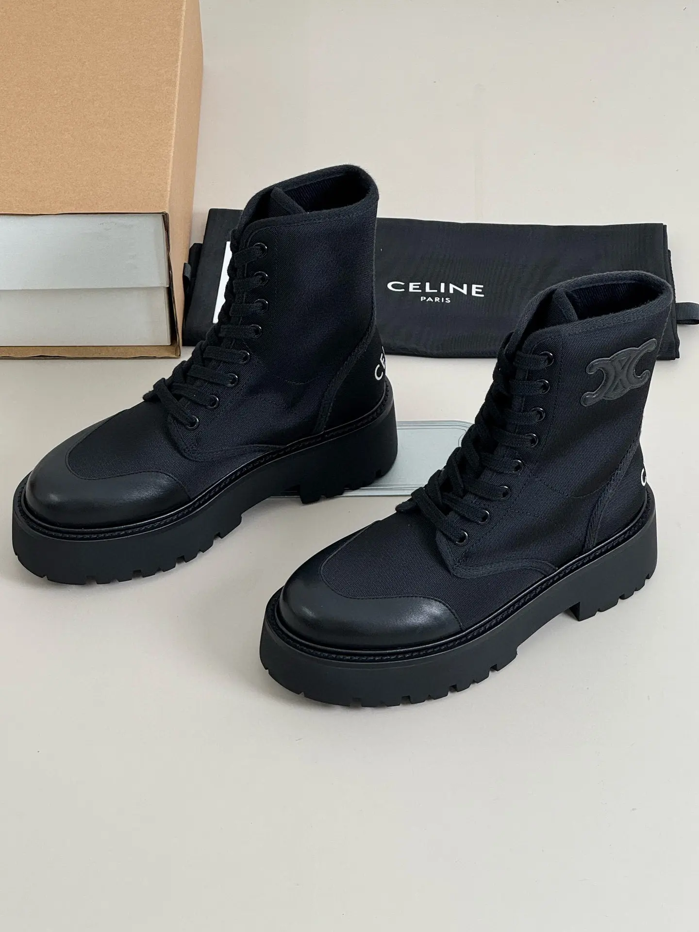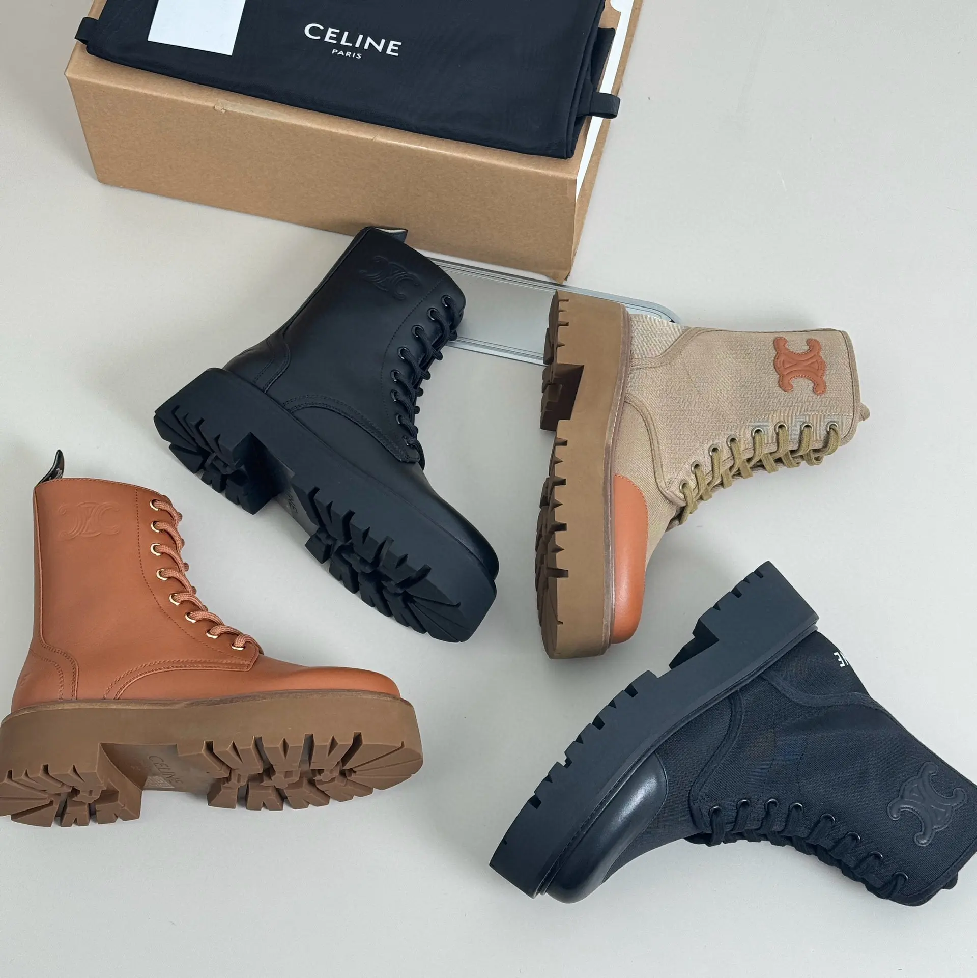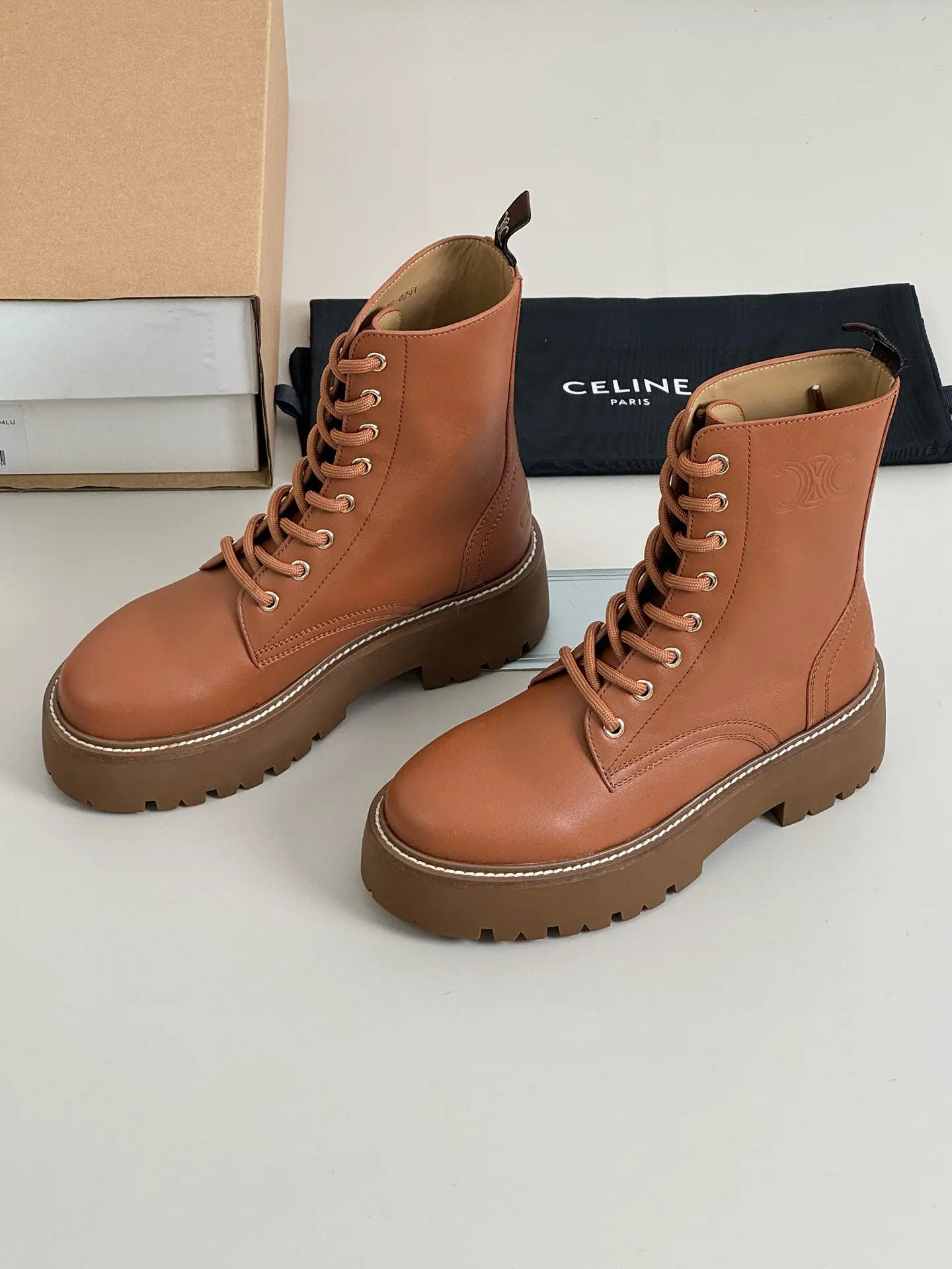 Original Celine New Lace-Up Thick-Sole Martin Boots