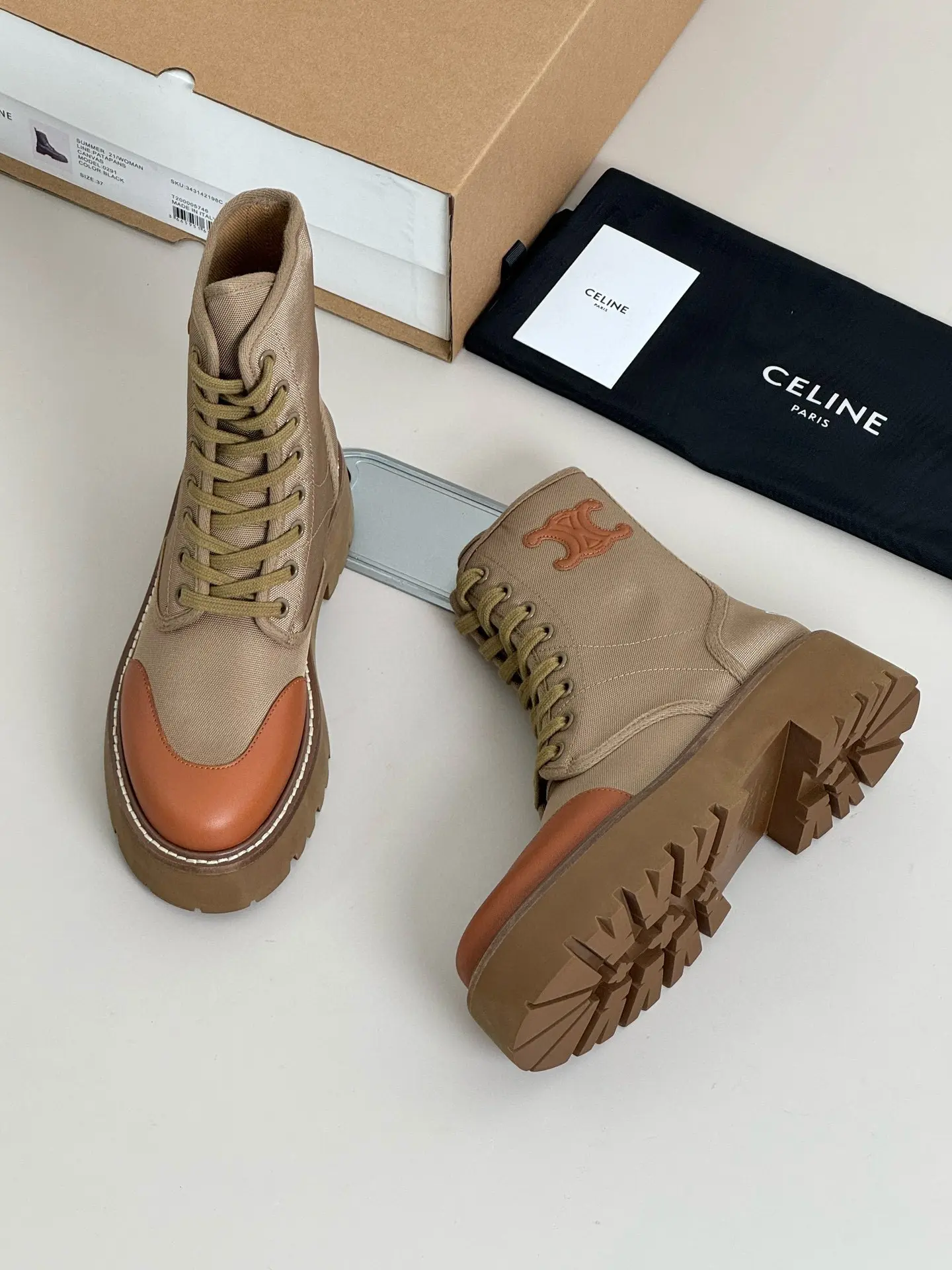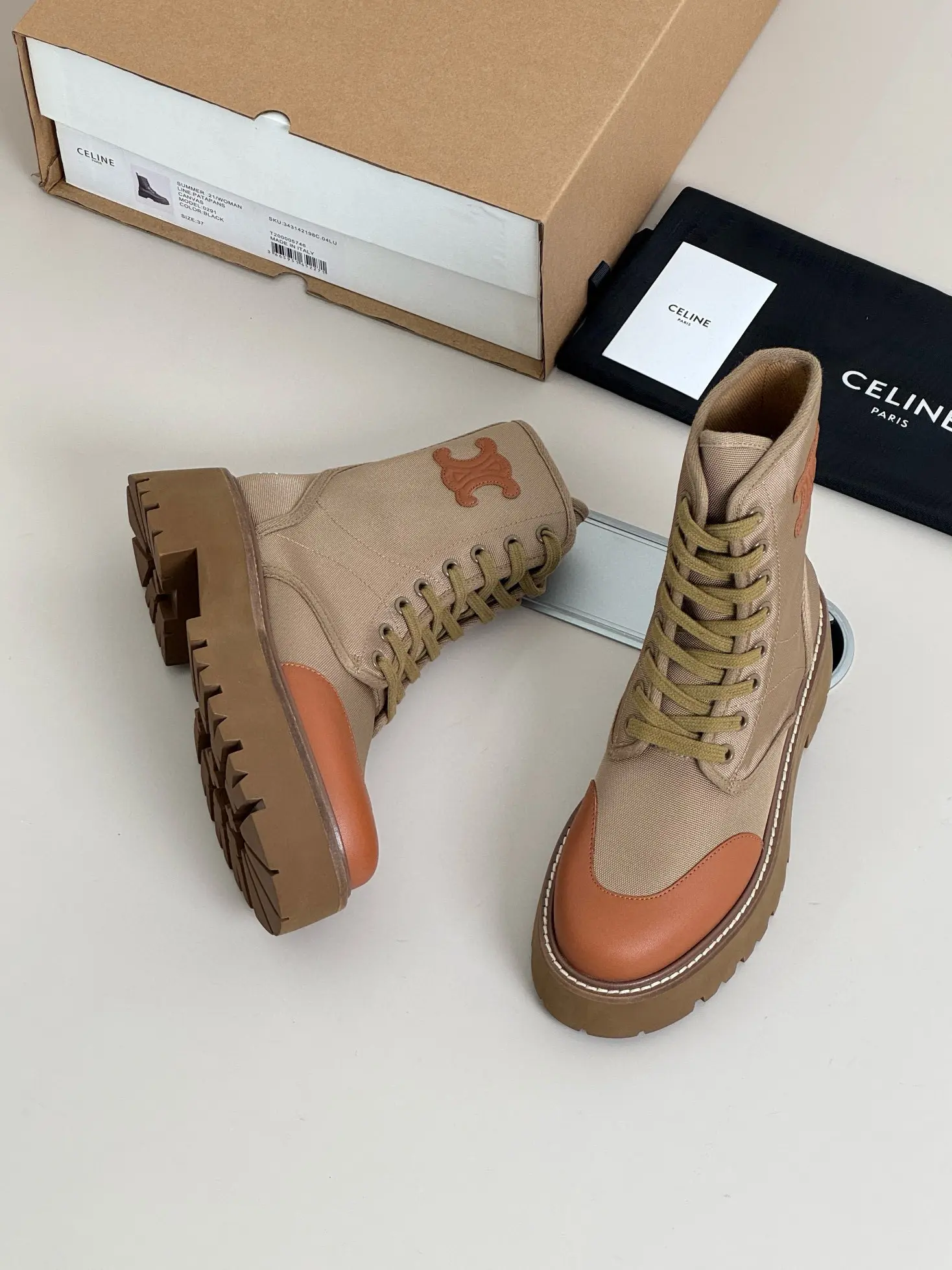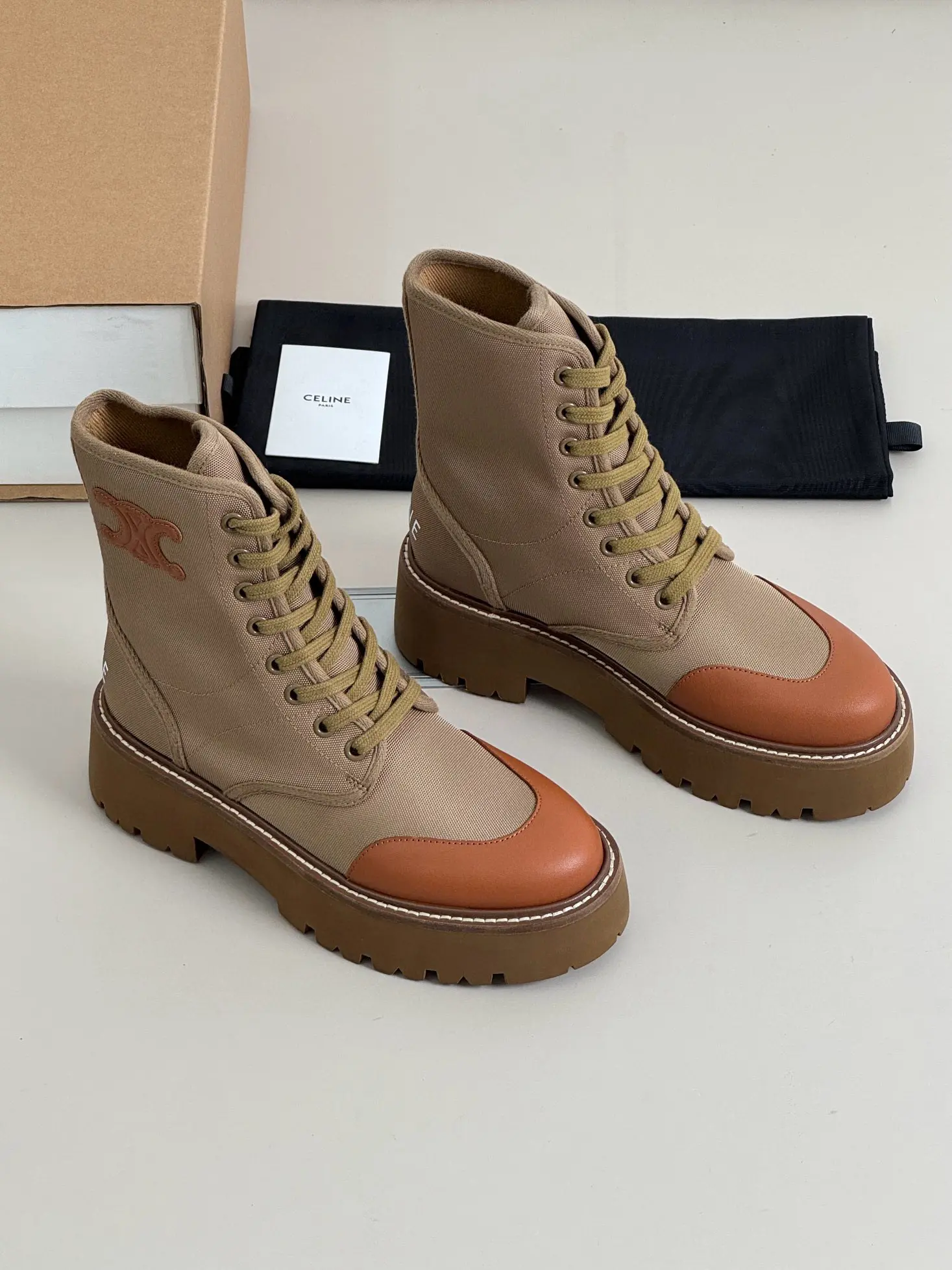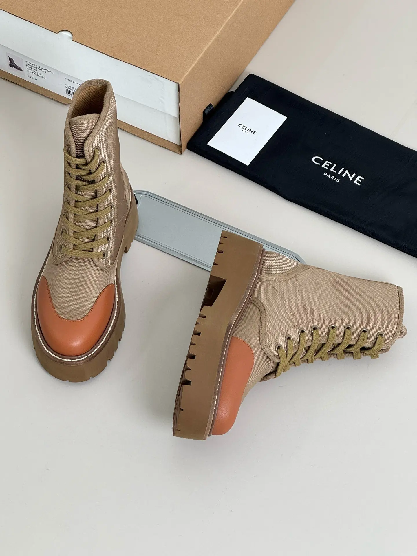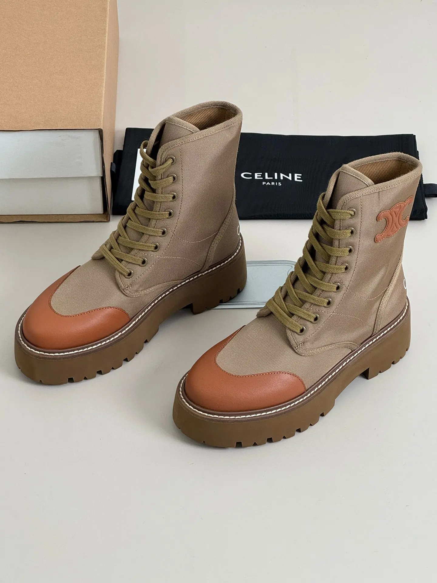 Original Celine New Lace-Up Thick-Sole Martin Boots