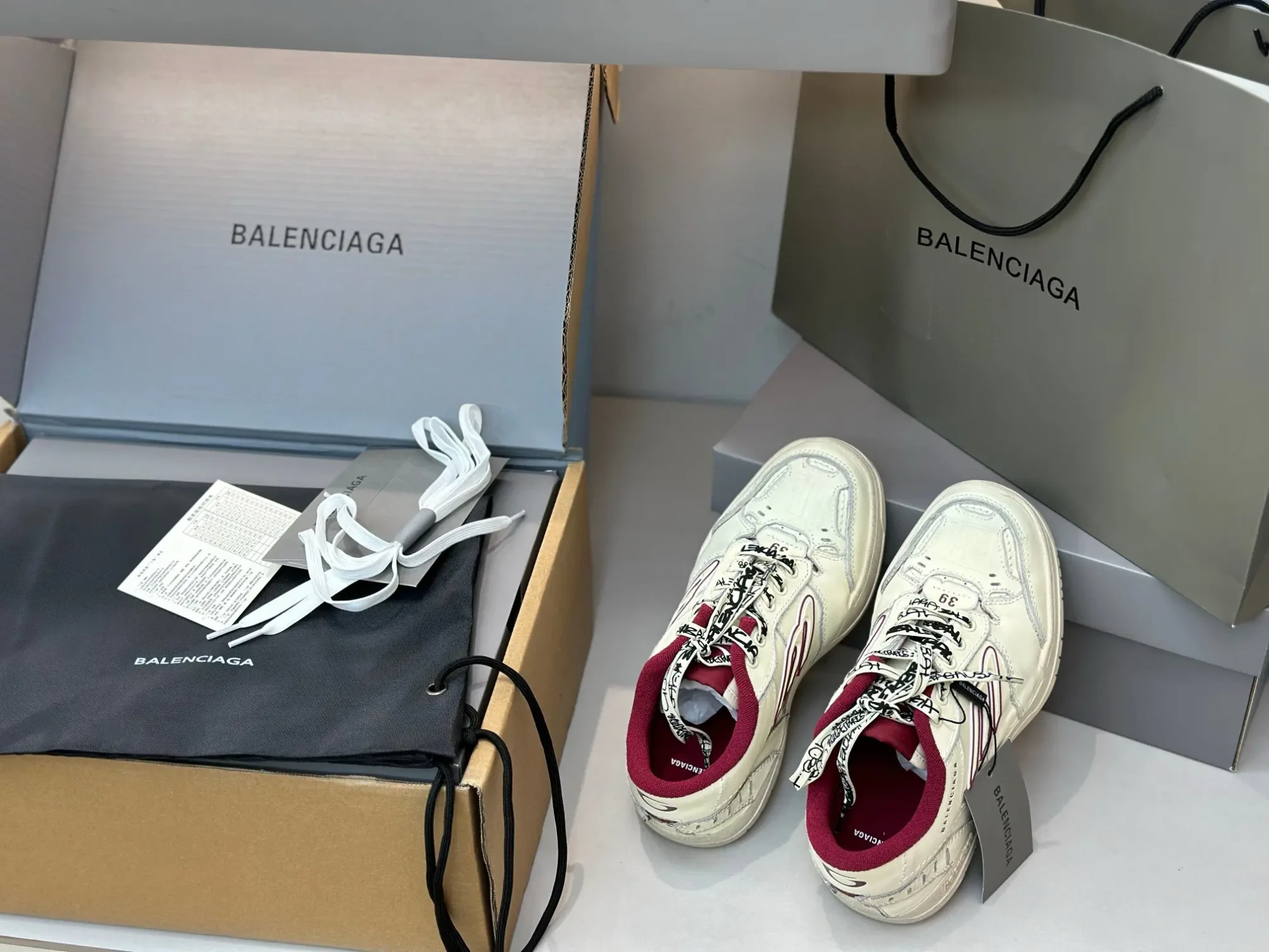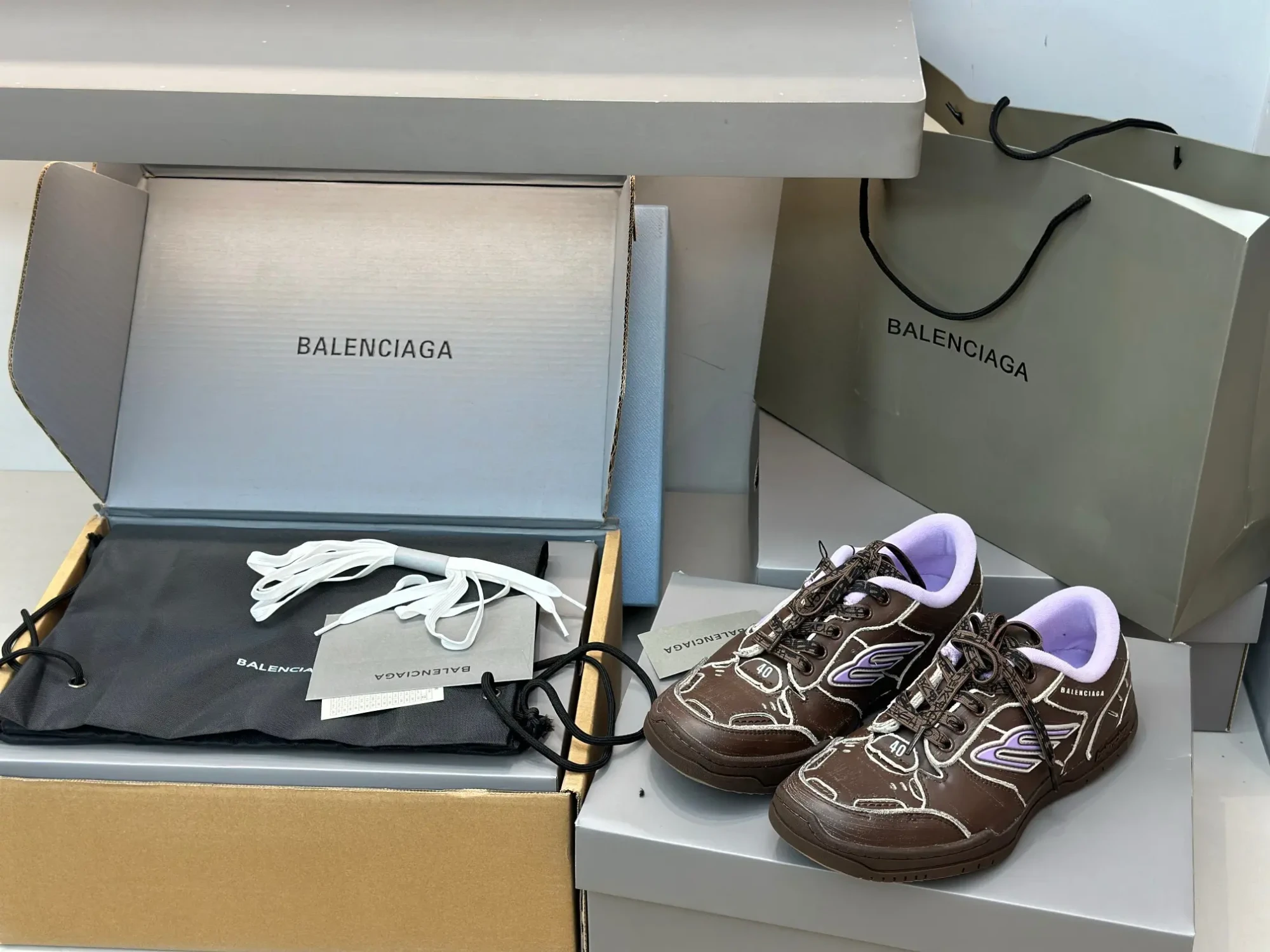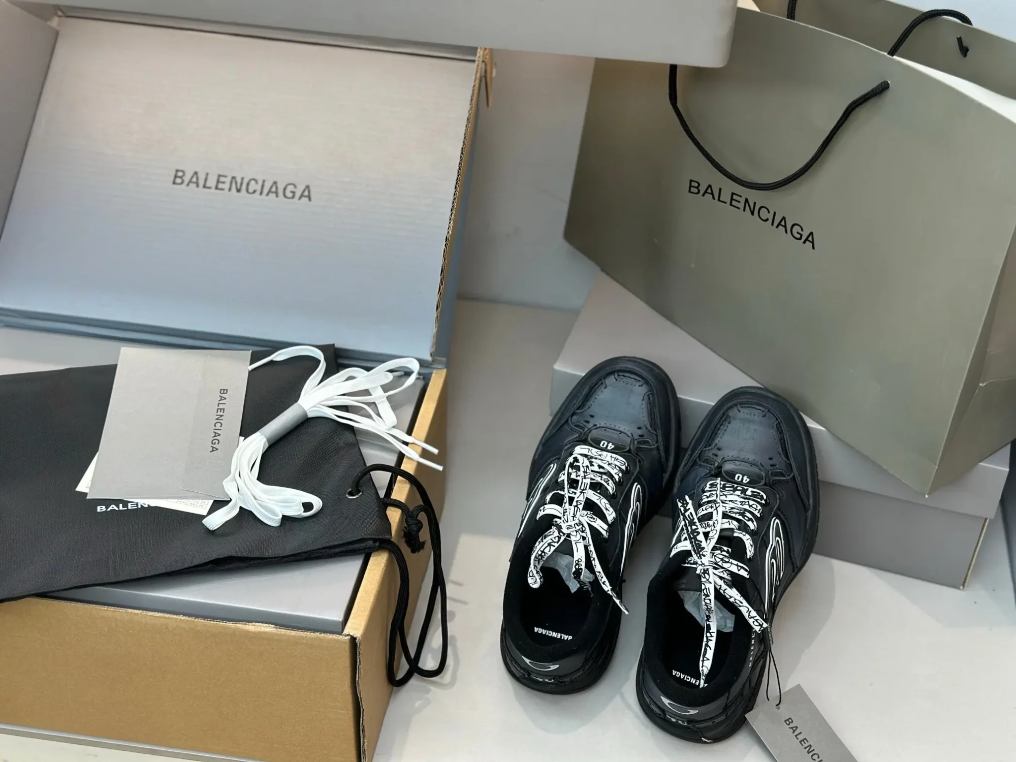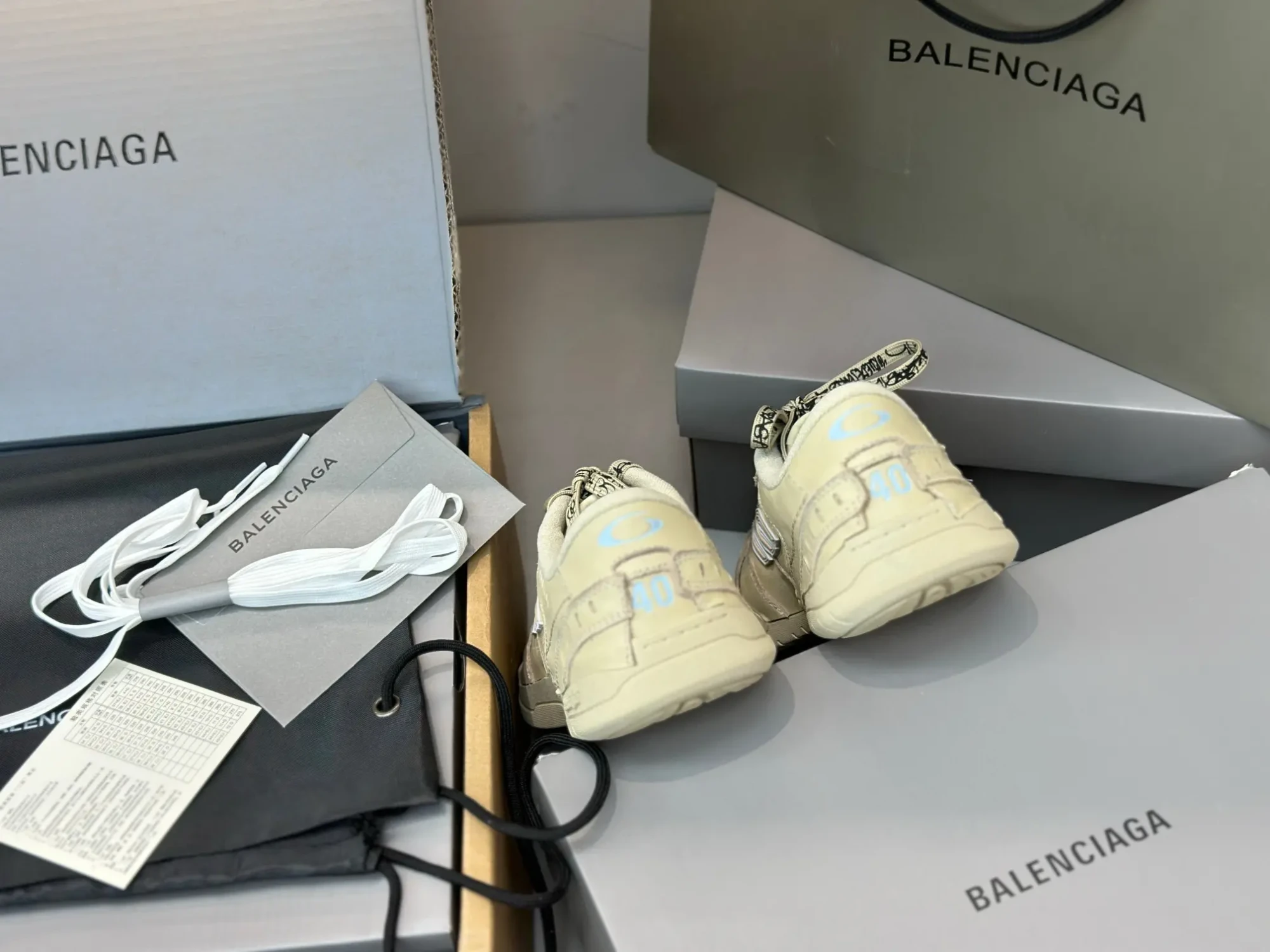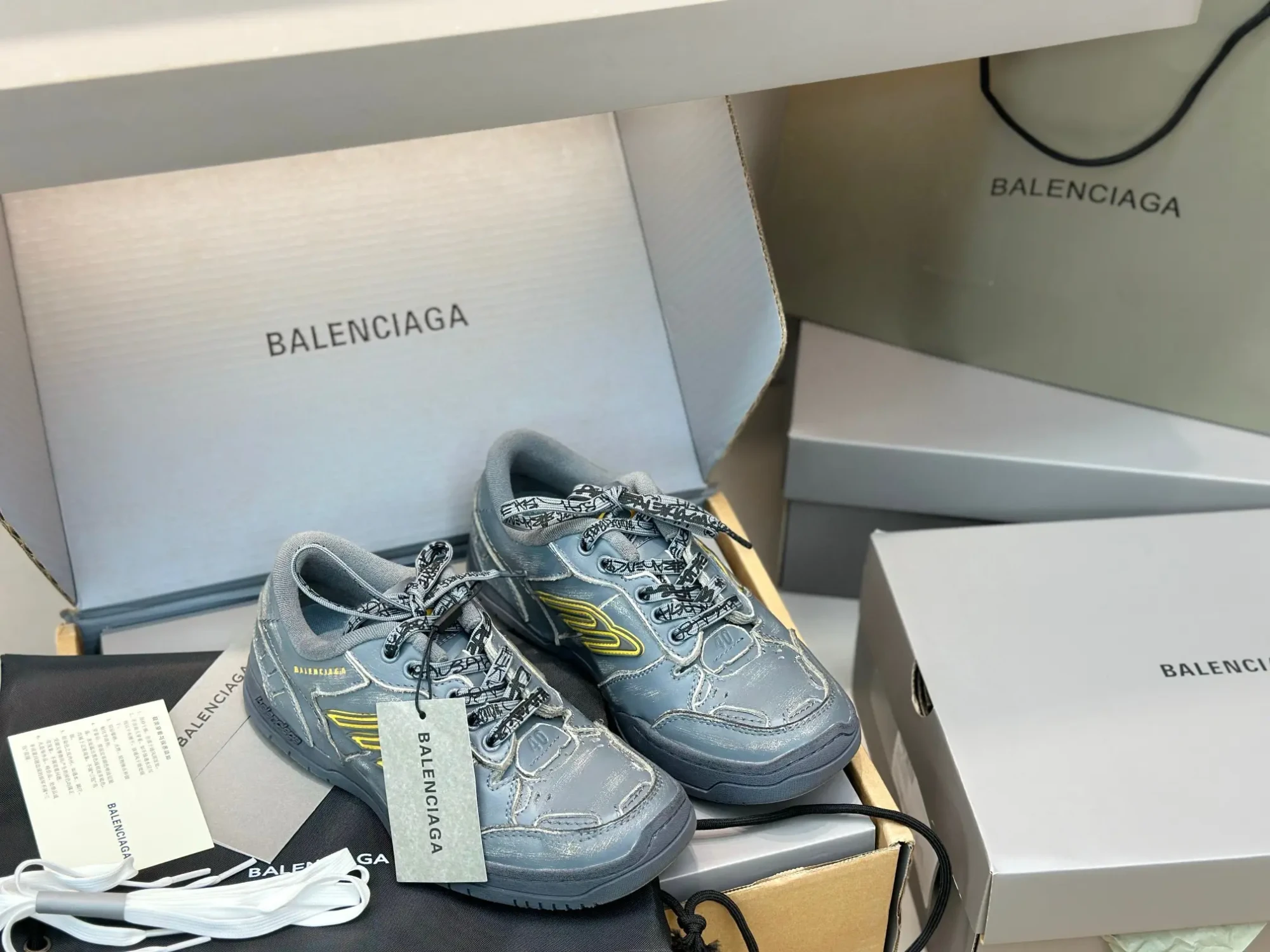 Premium version, couple’s style, Balenciaga Winter 25 Hamptons sneakers. Under the creative genius Deanna’s direction, the Winter 25 collection redefines fashion, using classic footwear as a base, adorned with 3B Spores and the Spores logo, creating a streamlined silhouette. The upper features an asymmetrical cut, complemented by frayed edges, distressed details, exposed stitching, loose stitching, perforations, scratches, and asymmetrical design to create a retro and casual atmosphere. The raven-style brand logo on the laces and the curved toe structure add a touch of DIY freedom and individuality. Comes with full packaging box and shipping box. Sizes 35-45.