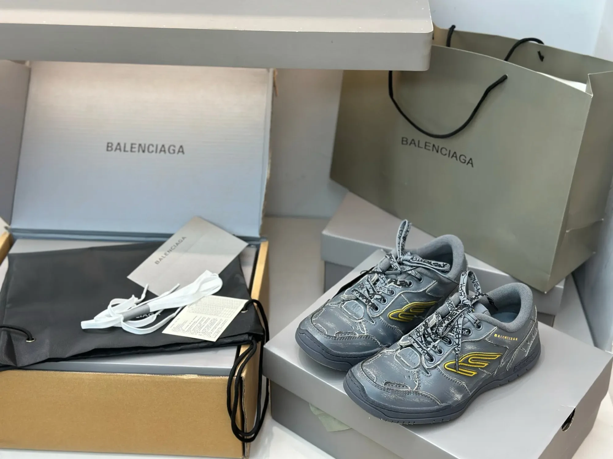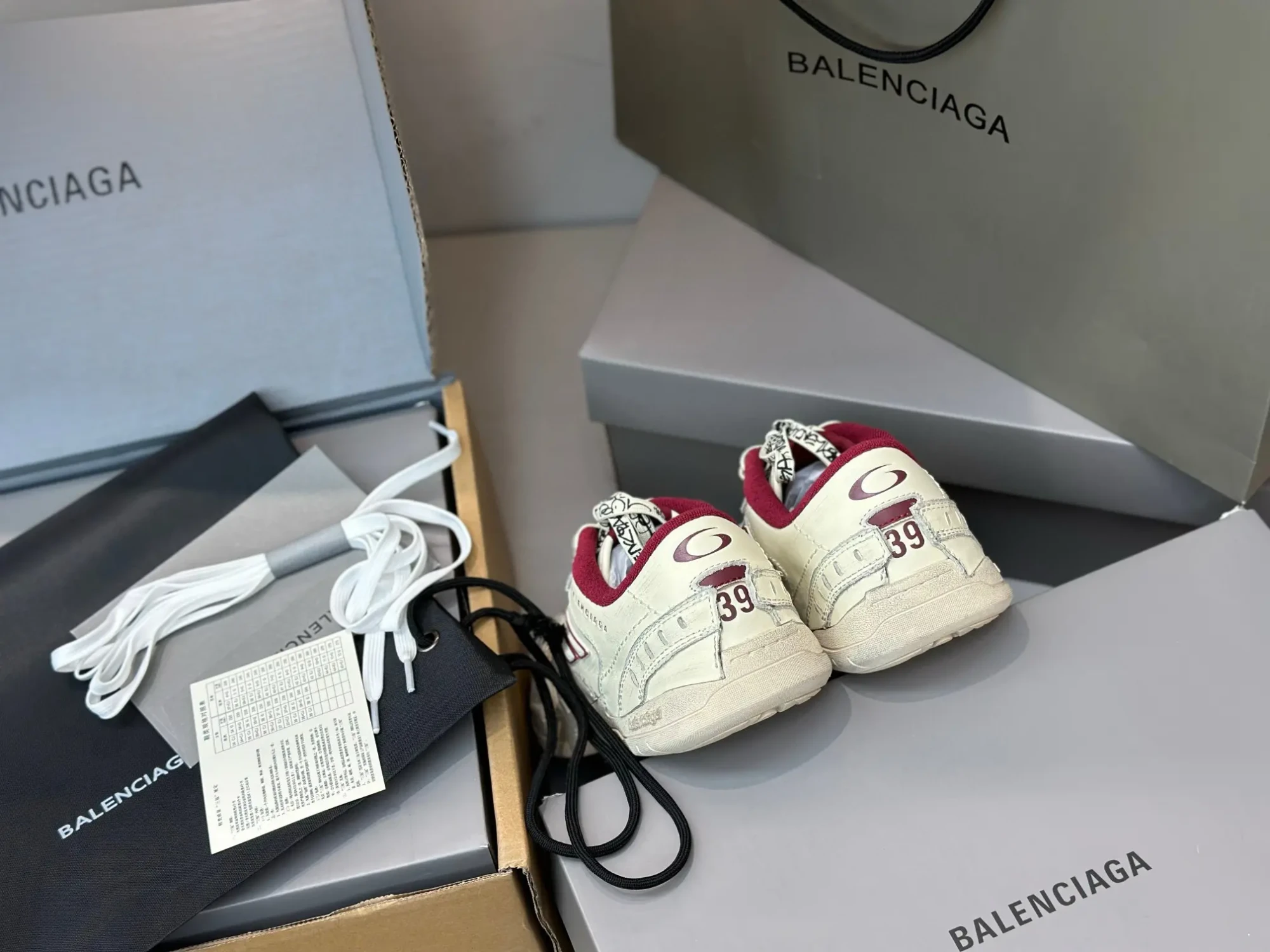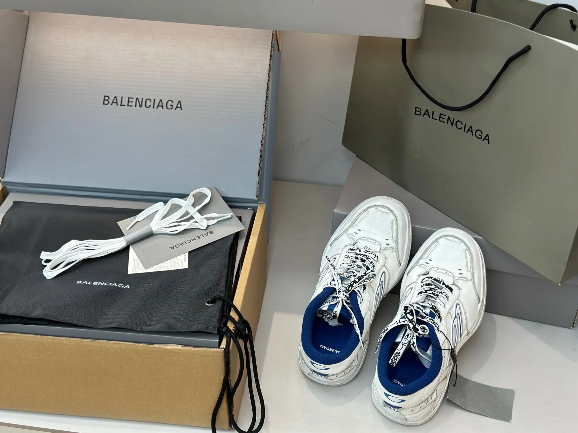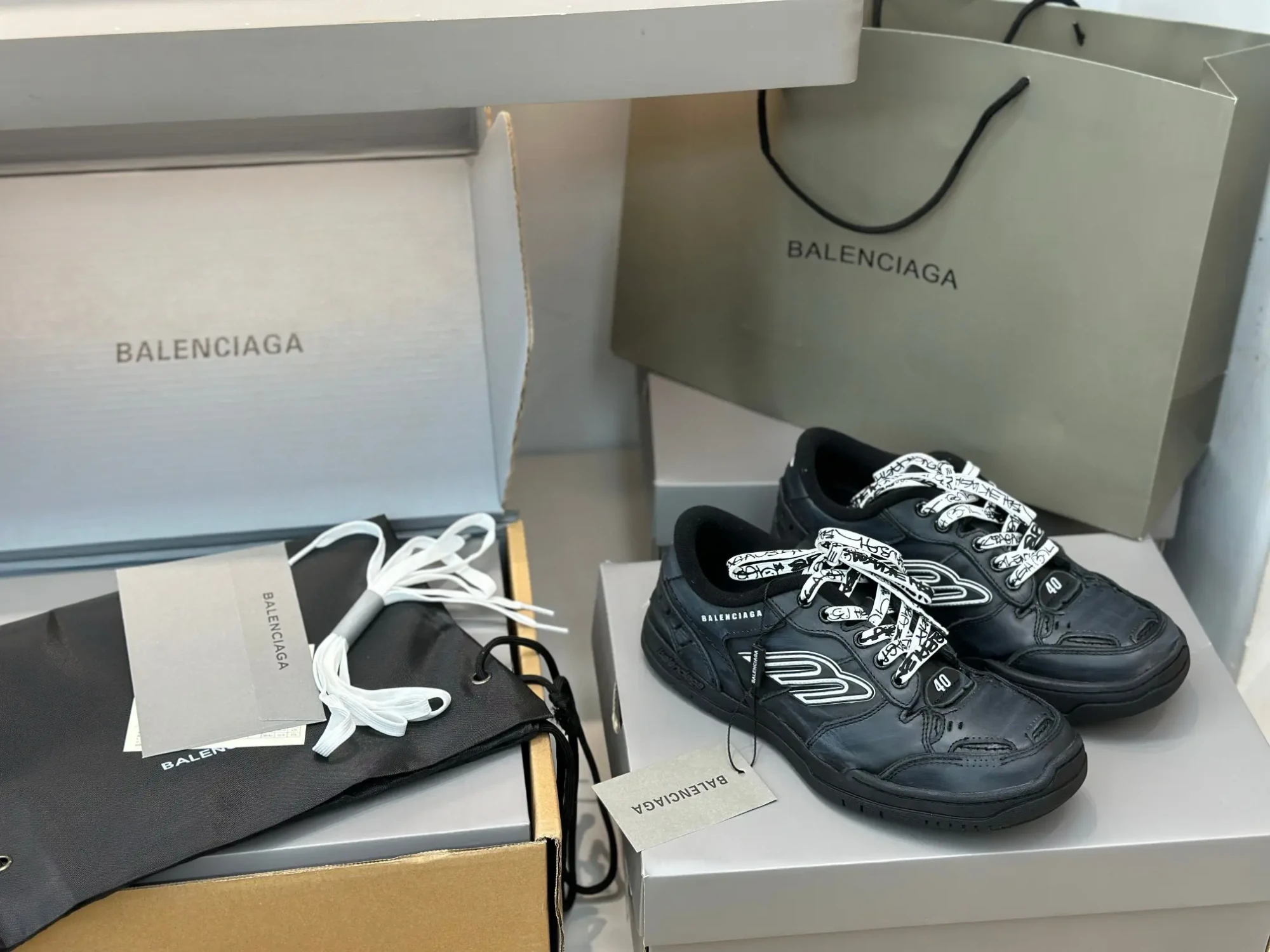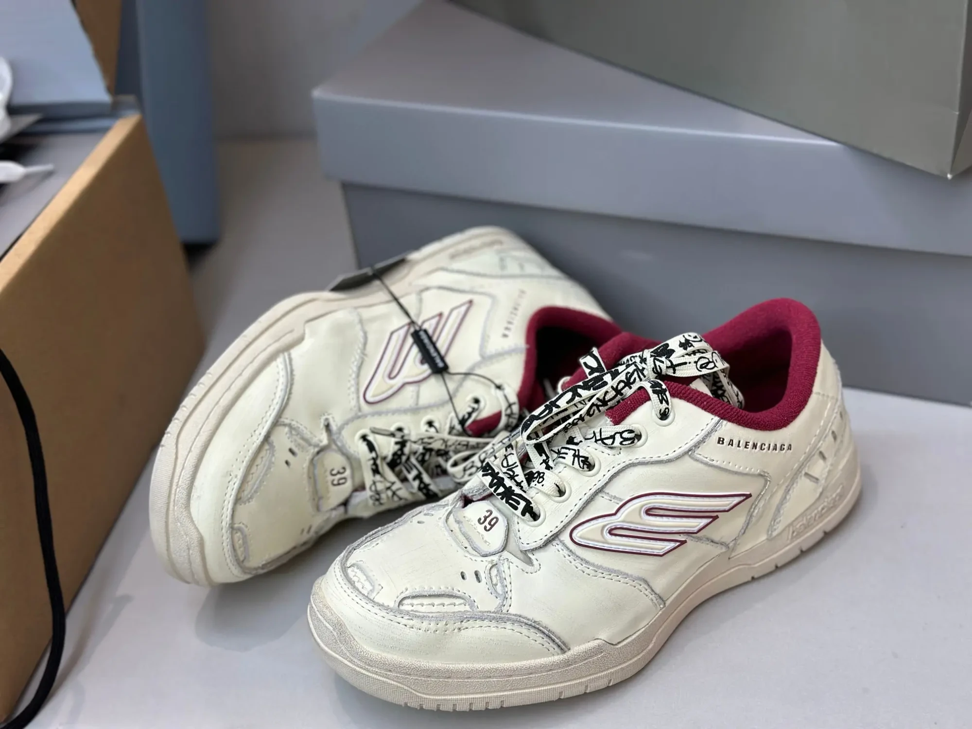 Premium version, couple’s style, Balenciaga Winter 25 Hamptons sneakers. Under the creative genius Deanna’s direction, the Winter 25 collection redefines fashion, using classic footwear as a base, adorned with 3B Spores and the Spores logo, creating a streamlined silhouette. The upper features an asymmetrical cut, complemented by frayed edges, distressed details, exposed stitching, loose stitching, perforations, scratches, and asymmetrical design to create a retro and casual atmosphere. The raven-style brand logo on the laces and the curved toe structure add a touch of DIY freedom and individuality. Comes with full packaging box and shipping box. Sizes 35-45.
